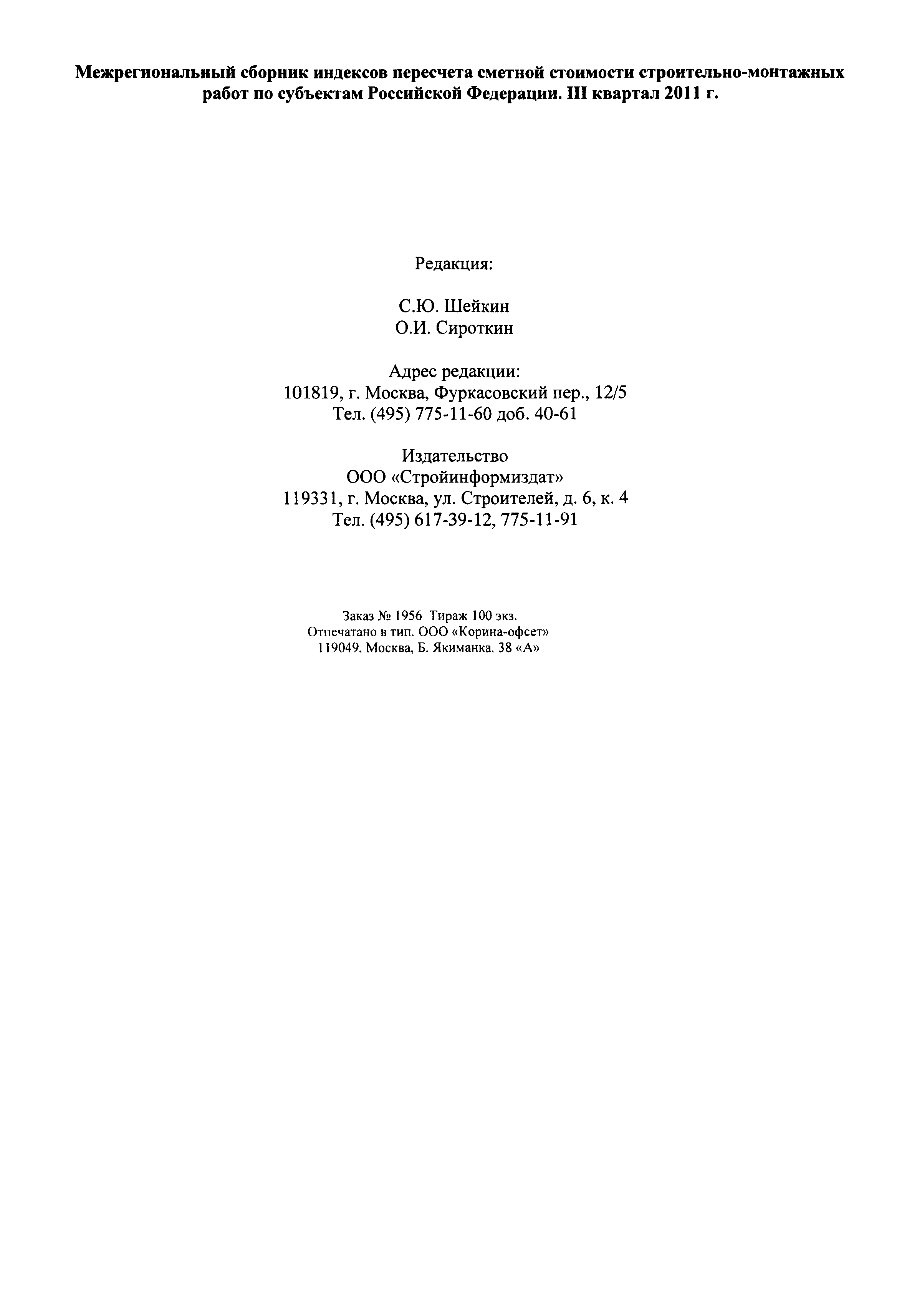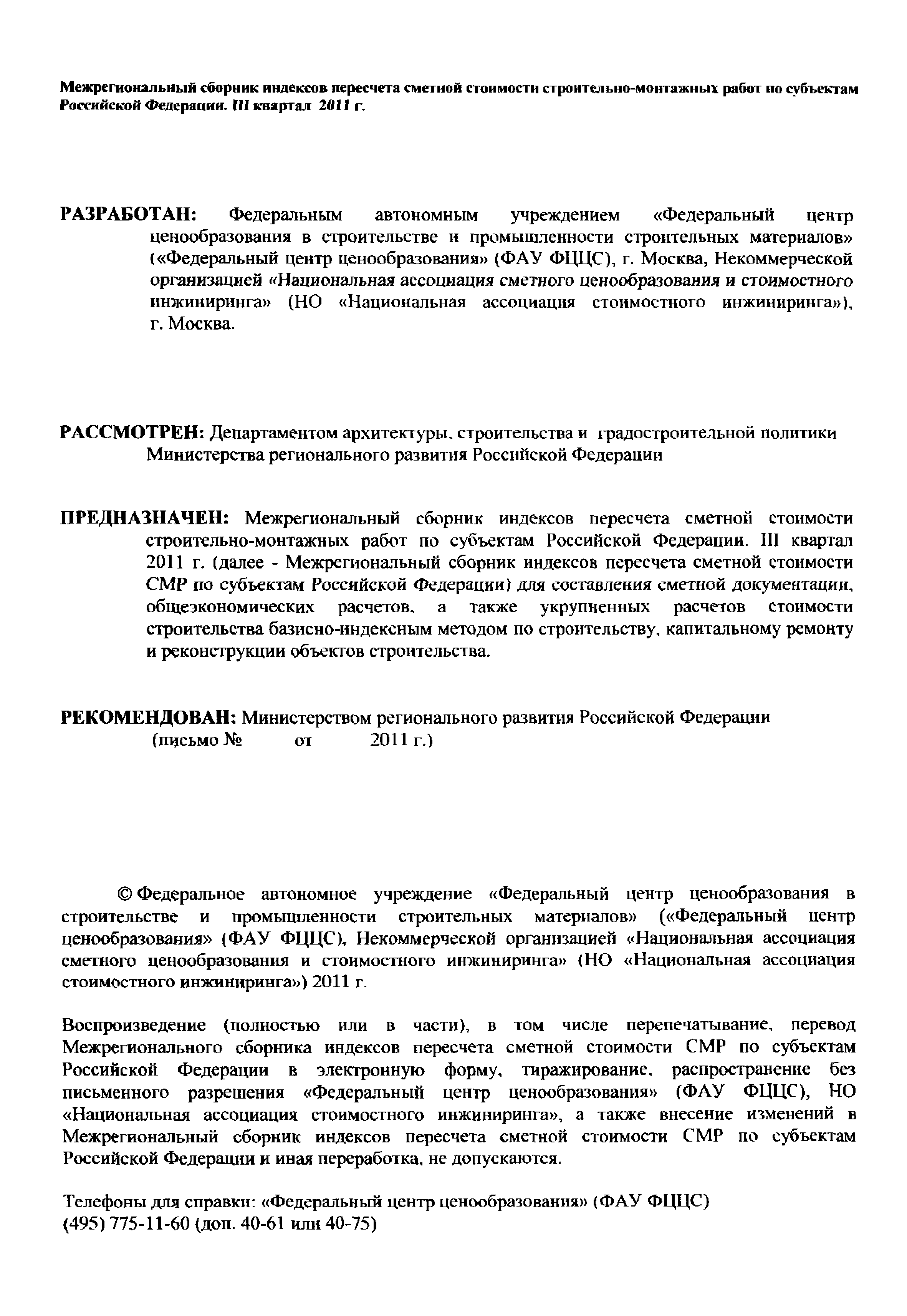 Скачать Межрегиональный сборник индексов пересчета сметной стоимости строительно-монтажных работ по субъектам Российской Федерации на III квартал 2011 г.Дата актуализации: 01.01.2021