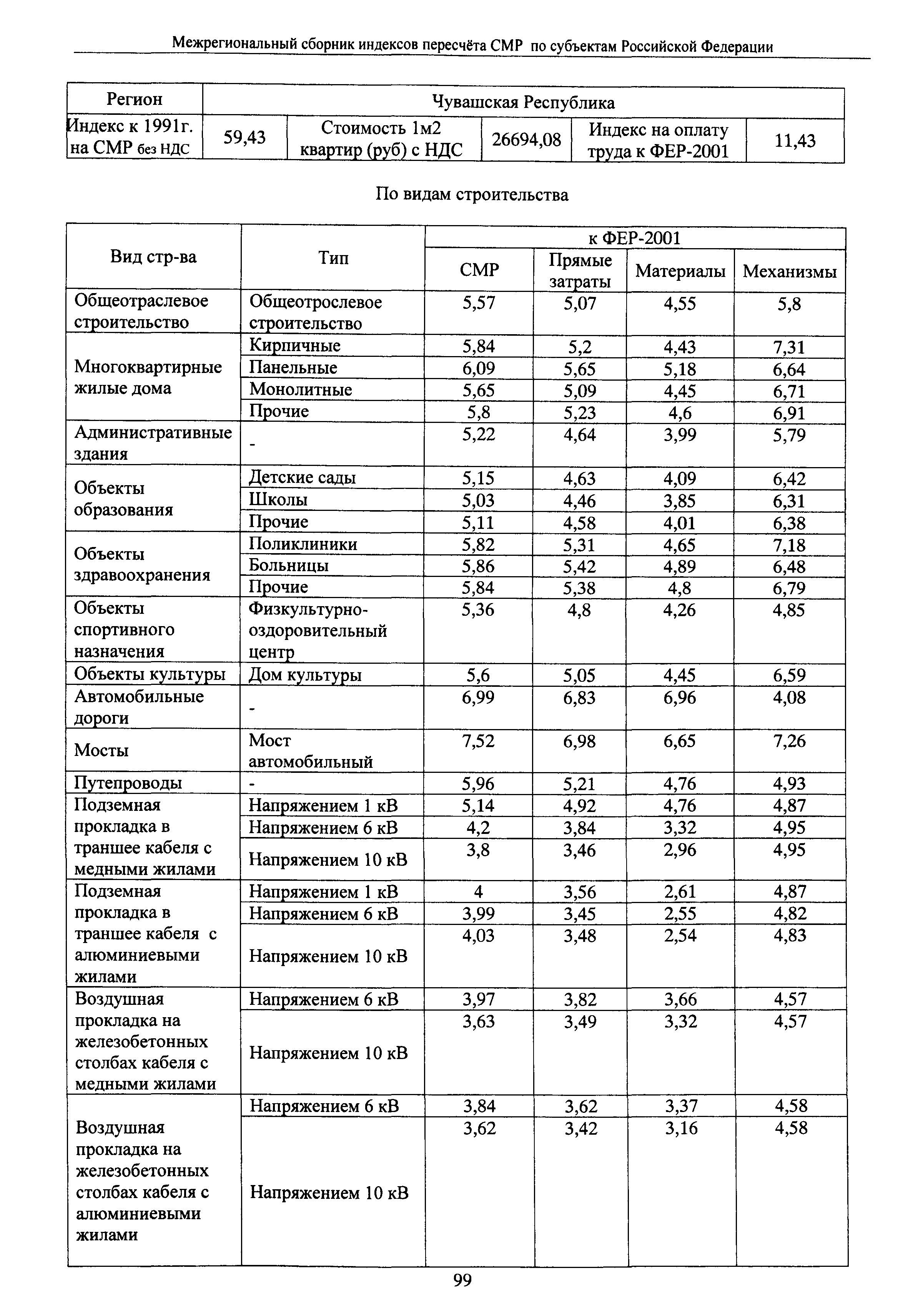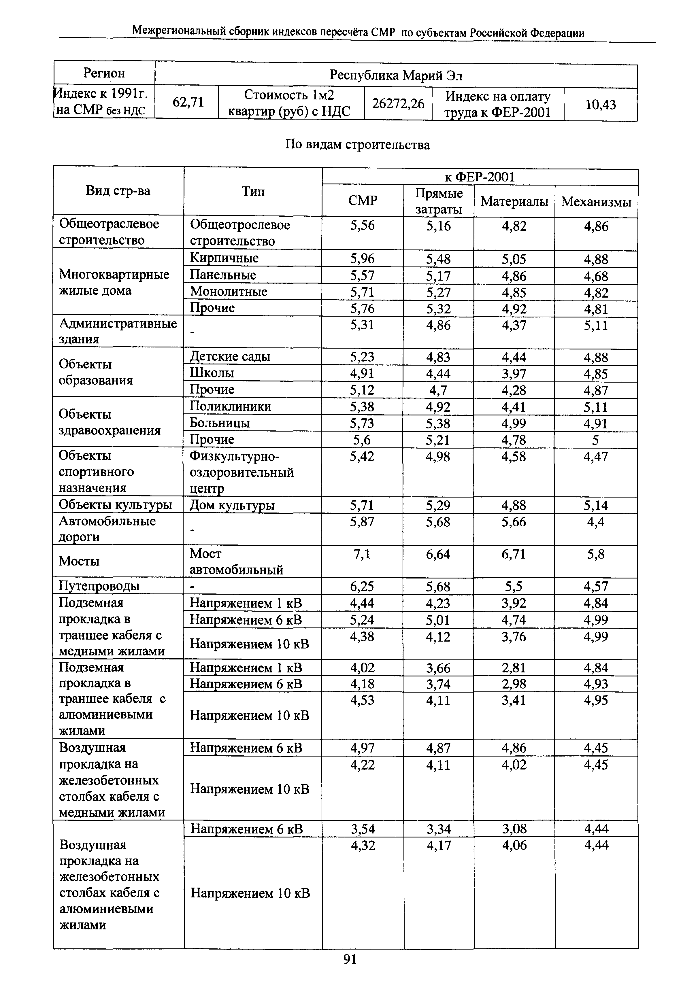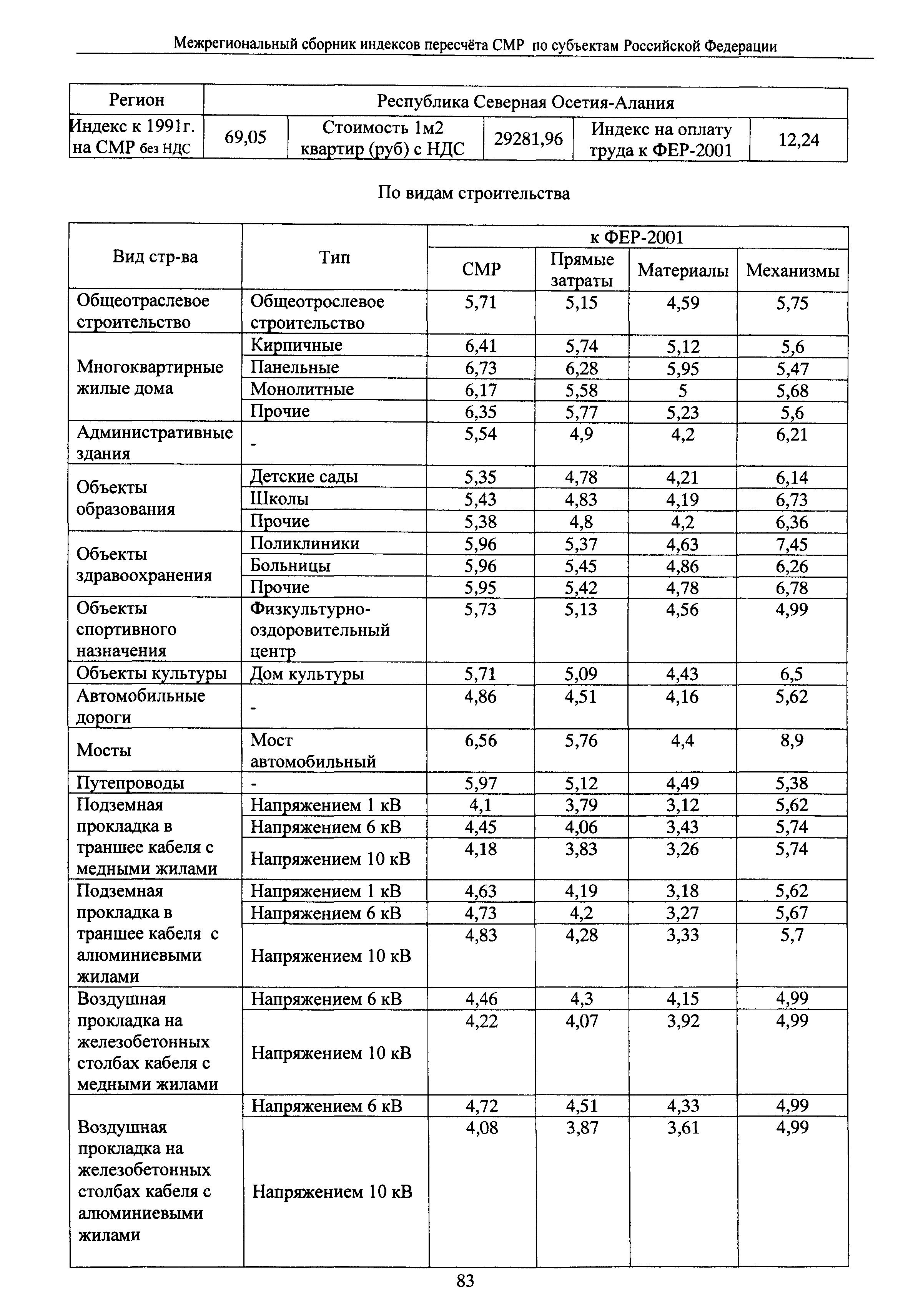 Межрегиональный сборник индексов пересчета сметной стоимости строительно-монтажных работ по субъектам Российской Федерации на III квартал 2011 г.| Статус: | не действует | | Название рус.: | Межрегиональный сборник индексов пересчета сметной стоимости строительно-монтажных работ по субъектам Российской Федерации на III квартал 2011 г. | | Дата добавления в базу: | 01.09.2013 | | Дата актуализации: | 01.09.2013 | | Область применения: | Сборник предназначен для составления сметной документации, общеэкономических расчетов, а также укрупненных расчетов стоимости строительства базисно-индексным методом по строительству, капитальному ремонту и реконструкции объектов строительства | | Оглавление: | Техническая часть Центральный федеральный округ Северо-Западный федеральный округ Южный федеральный округ Северо-Кавказский федеральный округ Приволжский федеральный округ Уральский федеральный округ Сибирский федеральный округ Дальневосточный федеральный округ |