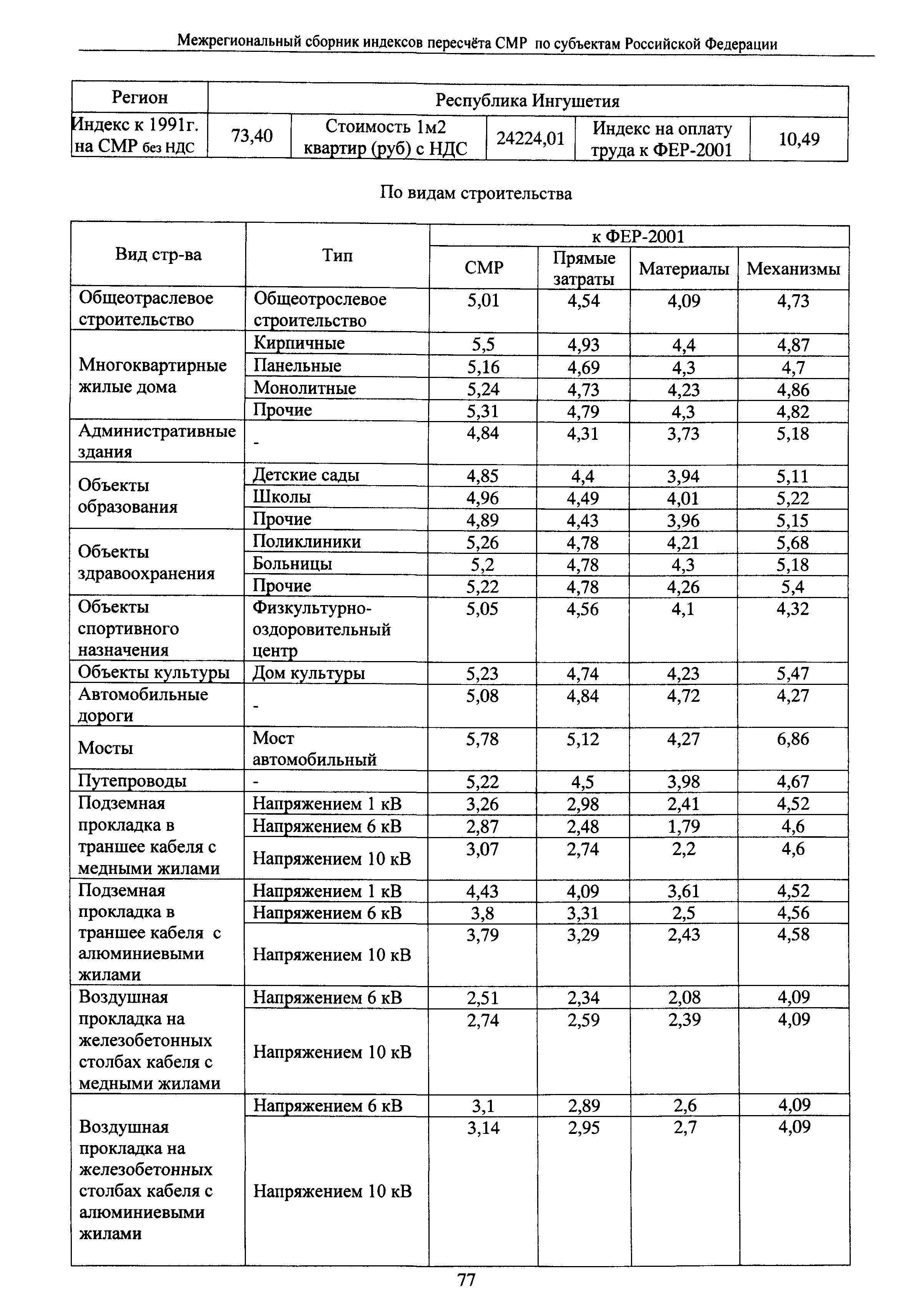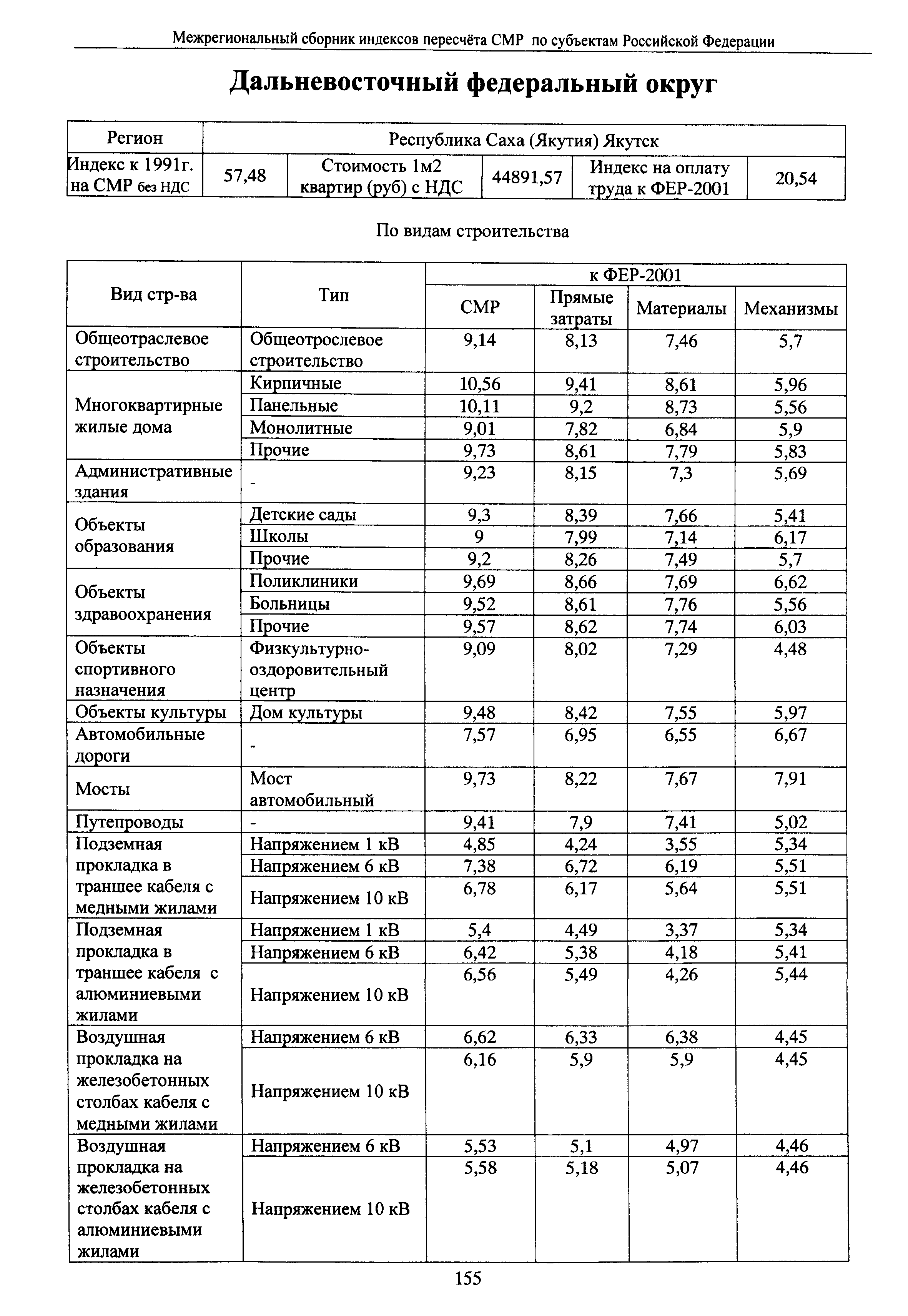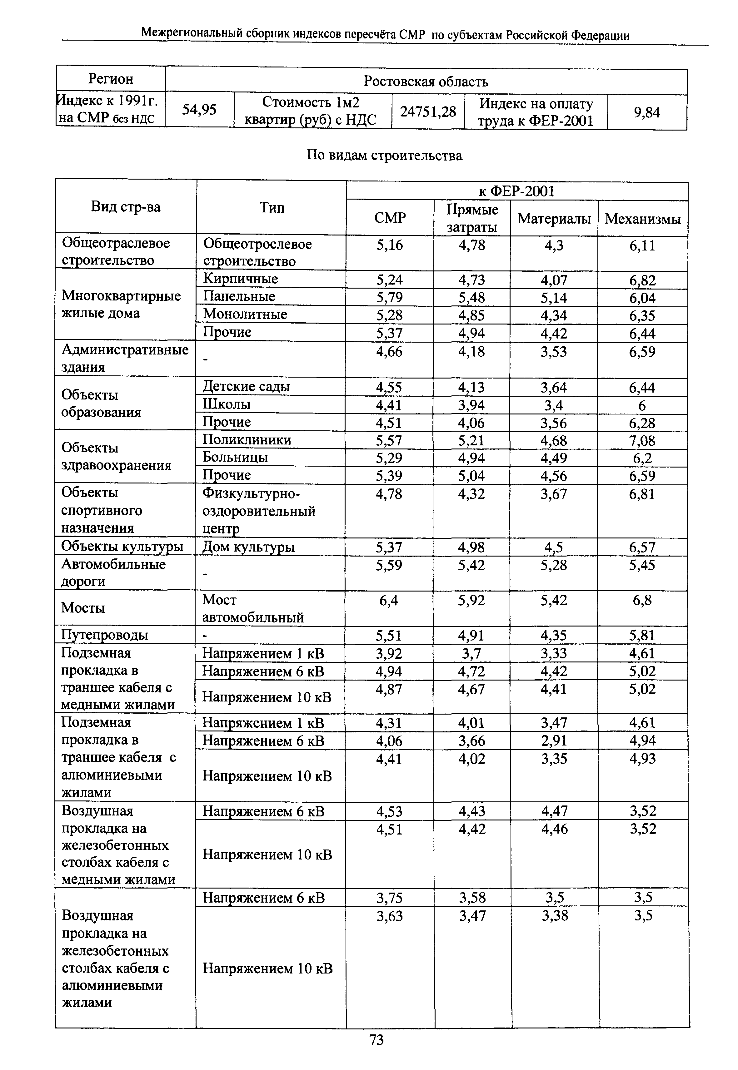 Межрегиональный сборник индексов пересчета сметной стоимости строительно-монтажных работ по субъектам Российской Федерации на III квартал 2011 г.| Статус: | не действует | | Название рус.: | Межрегиональный сборник индексов пересчета сметной стоимости строительно-монтажных работ по субъектам Российской Федерации на III квартал 2011 г. | | Дата добавления в базу: | 01.09.2013 | | Дата актуализации: | 01.09.2013 | | Область применения: | Сборник предназначен для составления сметной документации, общеэкономических расчетов, а также укрупненных расчетов стоимости строительства базисно-индексным методом по строительству, капитальному ремонту и реконструкции объектов строительства | | Оглавление: | Техническая часть Центральный федеральный округ Северо-Западный федеральный округ Южный федеральный округ Северо-Кавказский федеральный округ Приволжский федеральный округ Уральский федеральный округ Сибирский федеральный округ Дальневосточный федеральный округ |