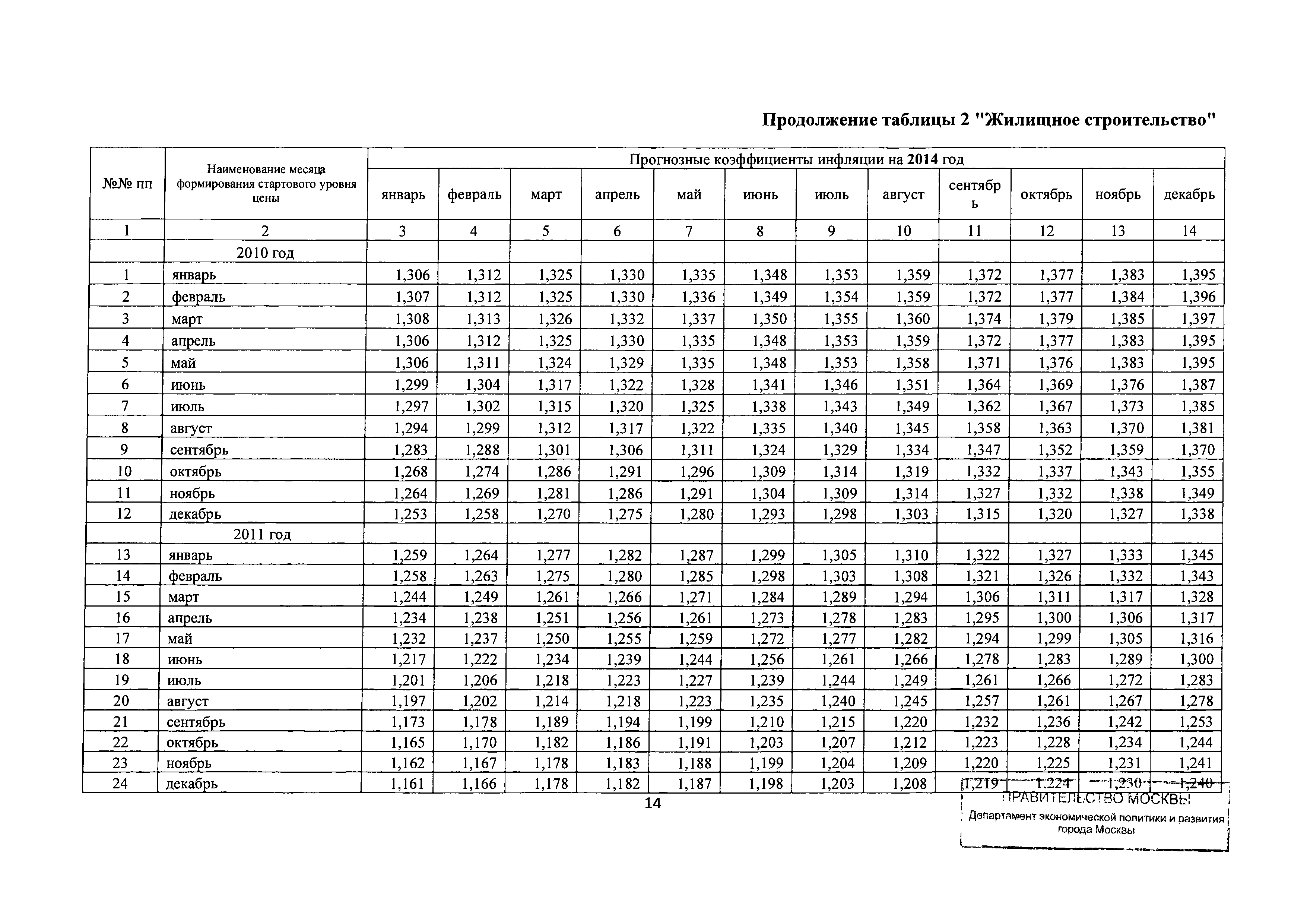 Скачать Прогнозные коэффициенты инфляции на 2012 - 2014 годы (с фактическими коэффициентами инфляции за период 2010 - 2011 гг.) для формирования начальной (максимальной) цены государственного контракта, гражданско-правового договора при размещении заказа на выполнение работ по строительству, реконструкции, капитальному ремонту объектов капитального строительства и других строительных работ, выполняемых на объектах, не являющихся объектами капитального строительства, финансируемых с привлечением средств бюджета города МосквыДата актуализации: 01.01.2021