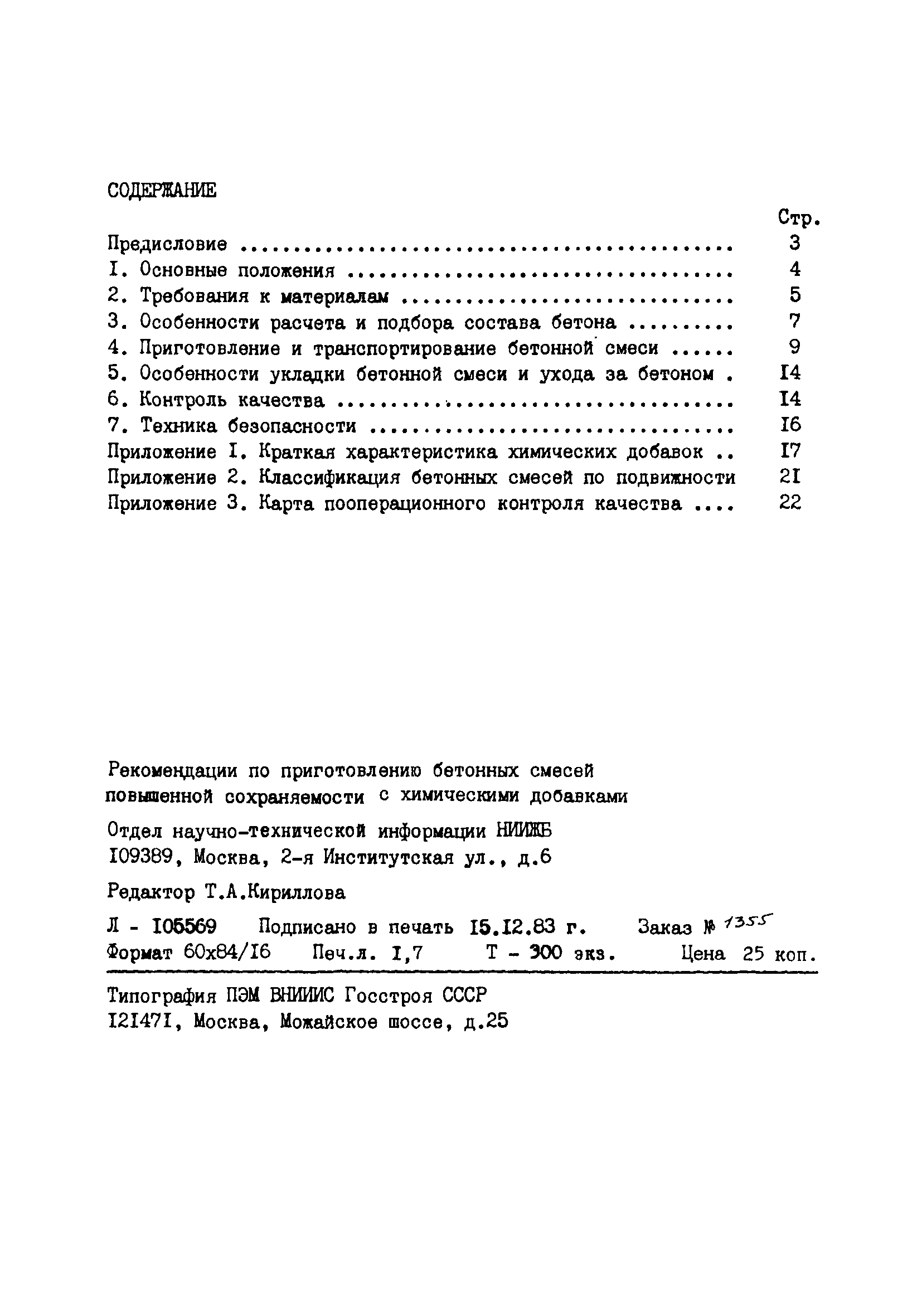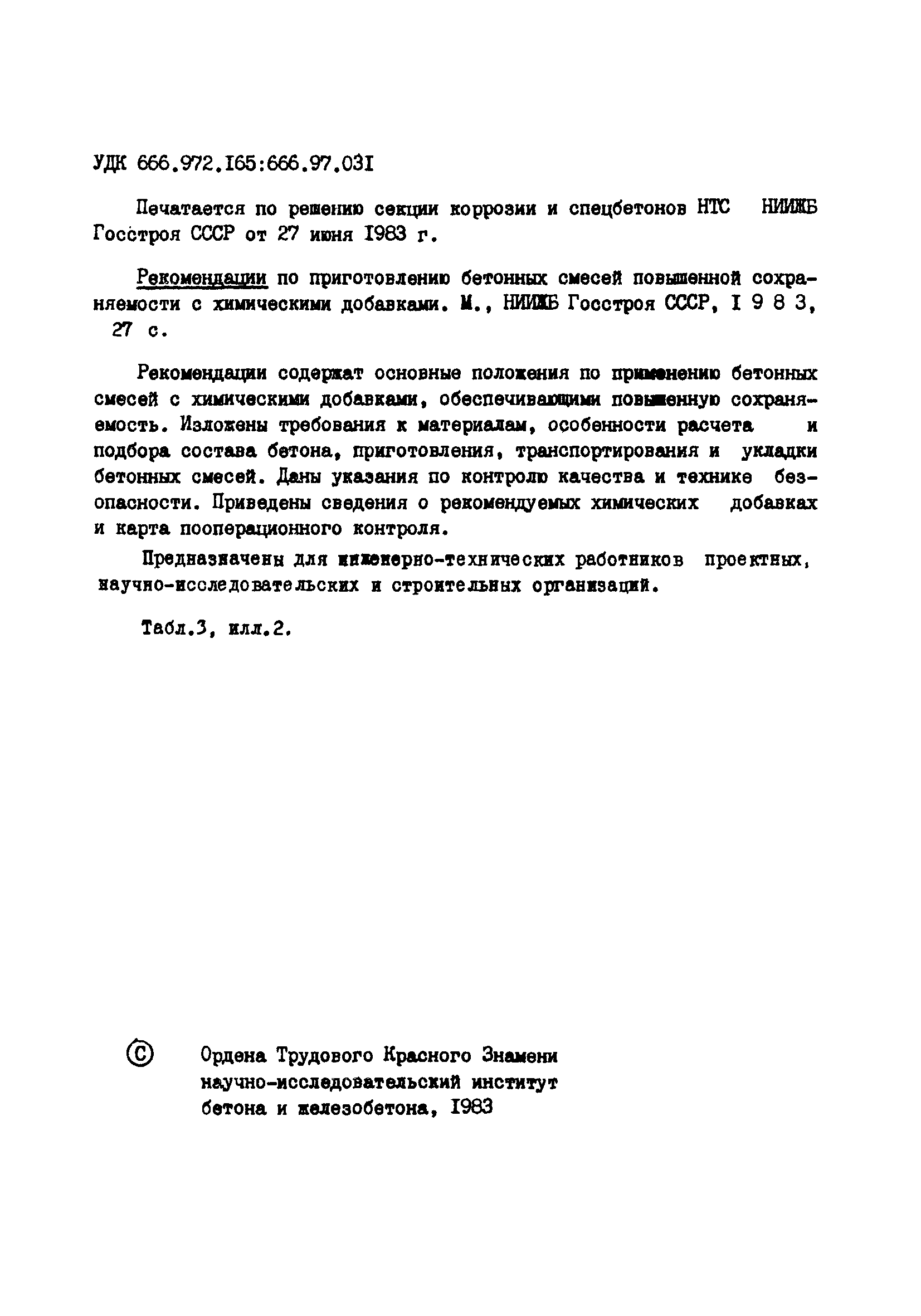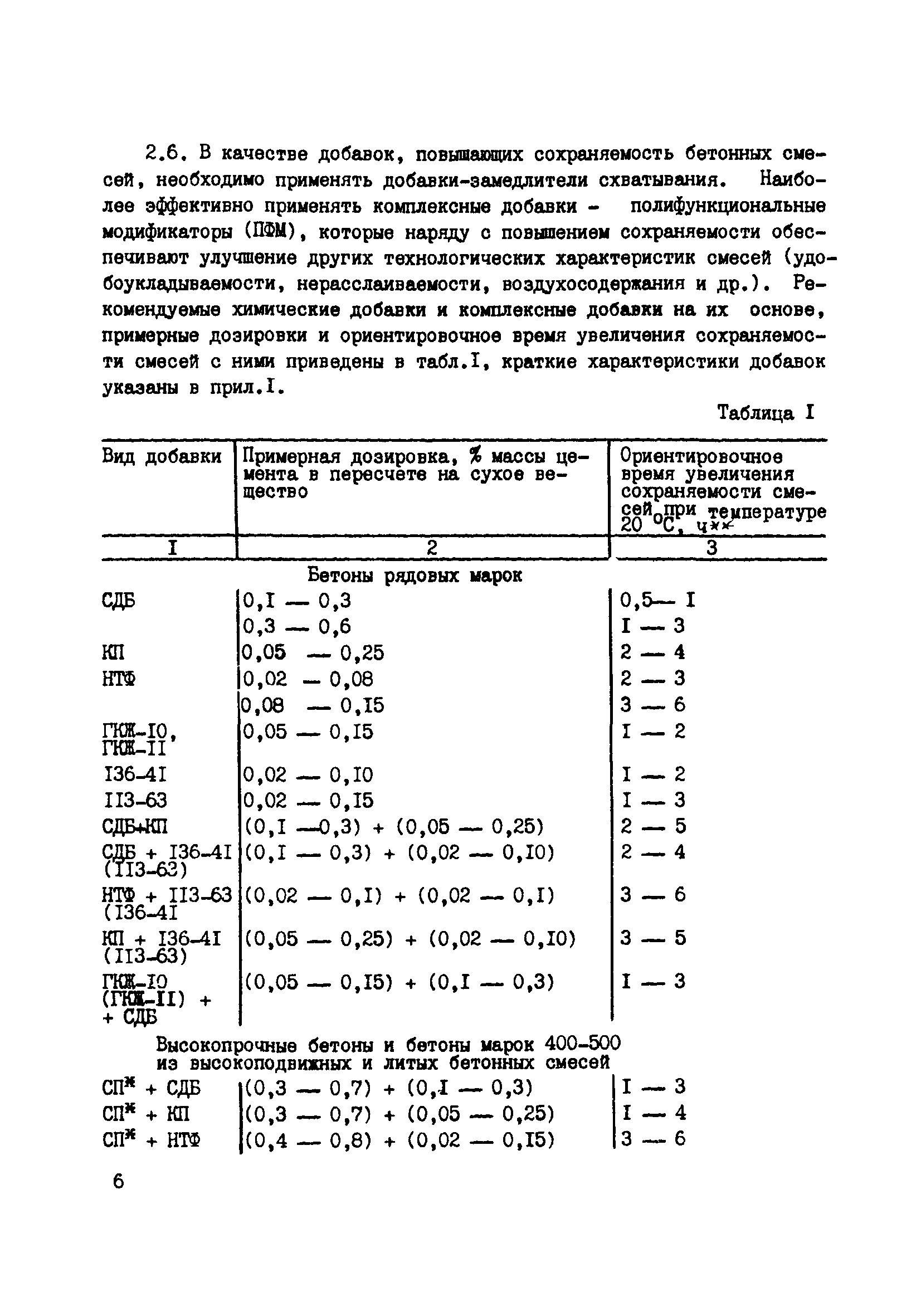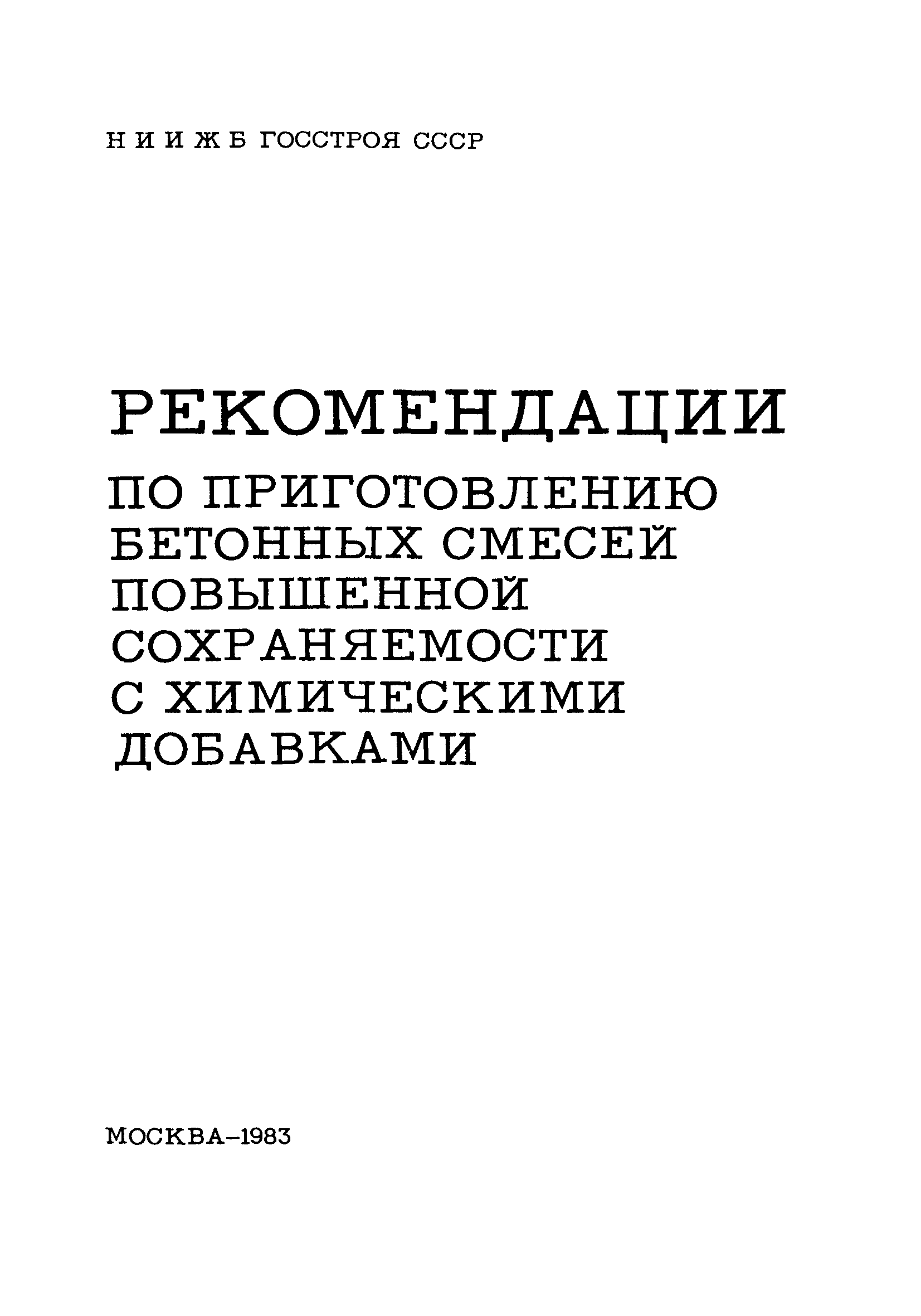 | Область применения: | Рекомендации распространяются на тяжелые бетоны, приготовленные из бетонных смесей с химическими добавками и обладающие повышенной сохраняемостью. Положения Рекомендаций направлены на применение бетонных смесей с пластификаторами, суперпластификаторами (СП) и комплексами на их основе. Выполнение положений позволит в значительной мере устранить один из основных недостатков добавок СП — относительно небольшую сохраняемость смесей с этими добавками. |