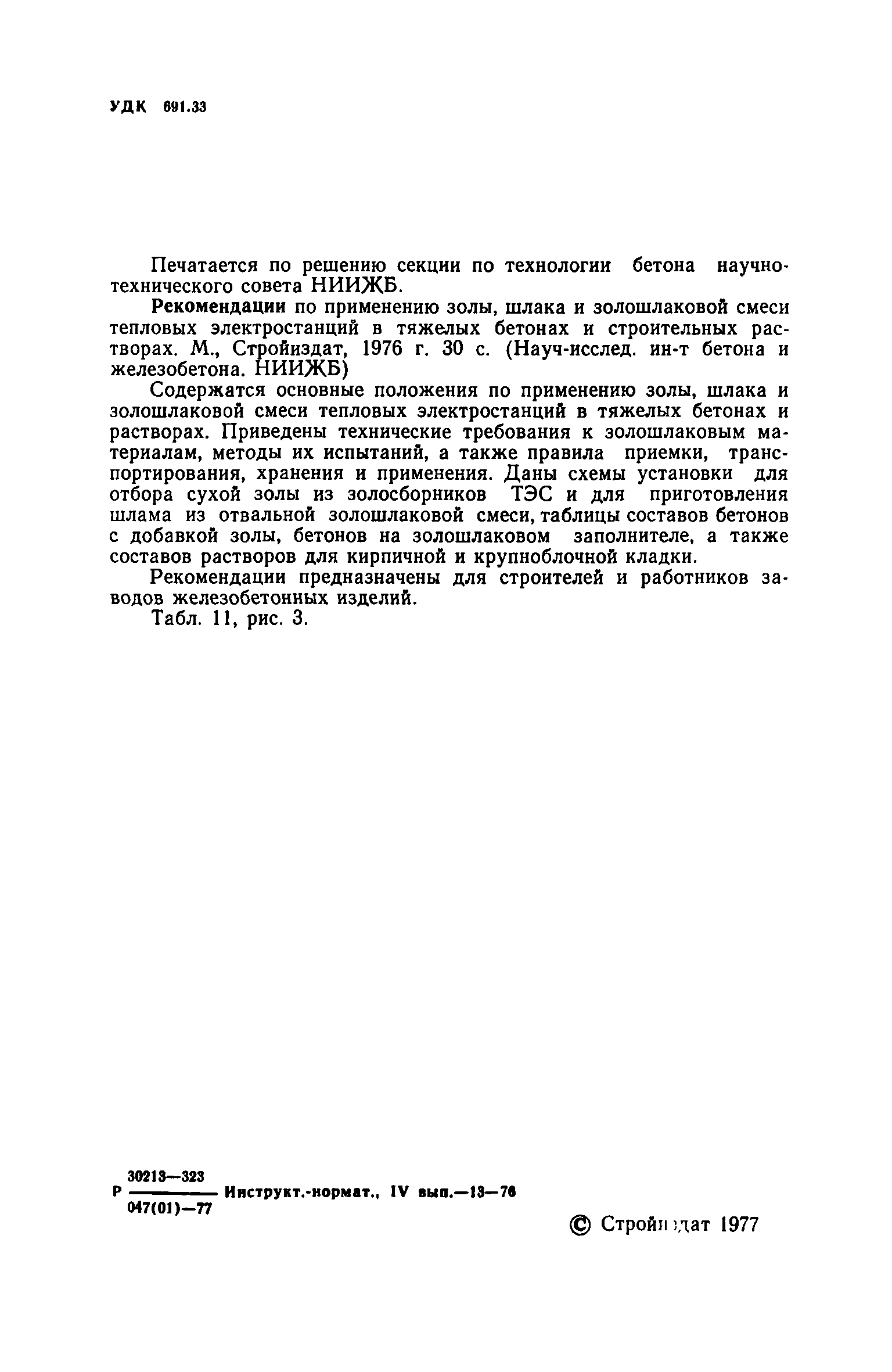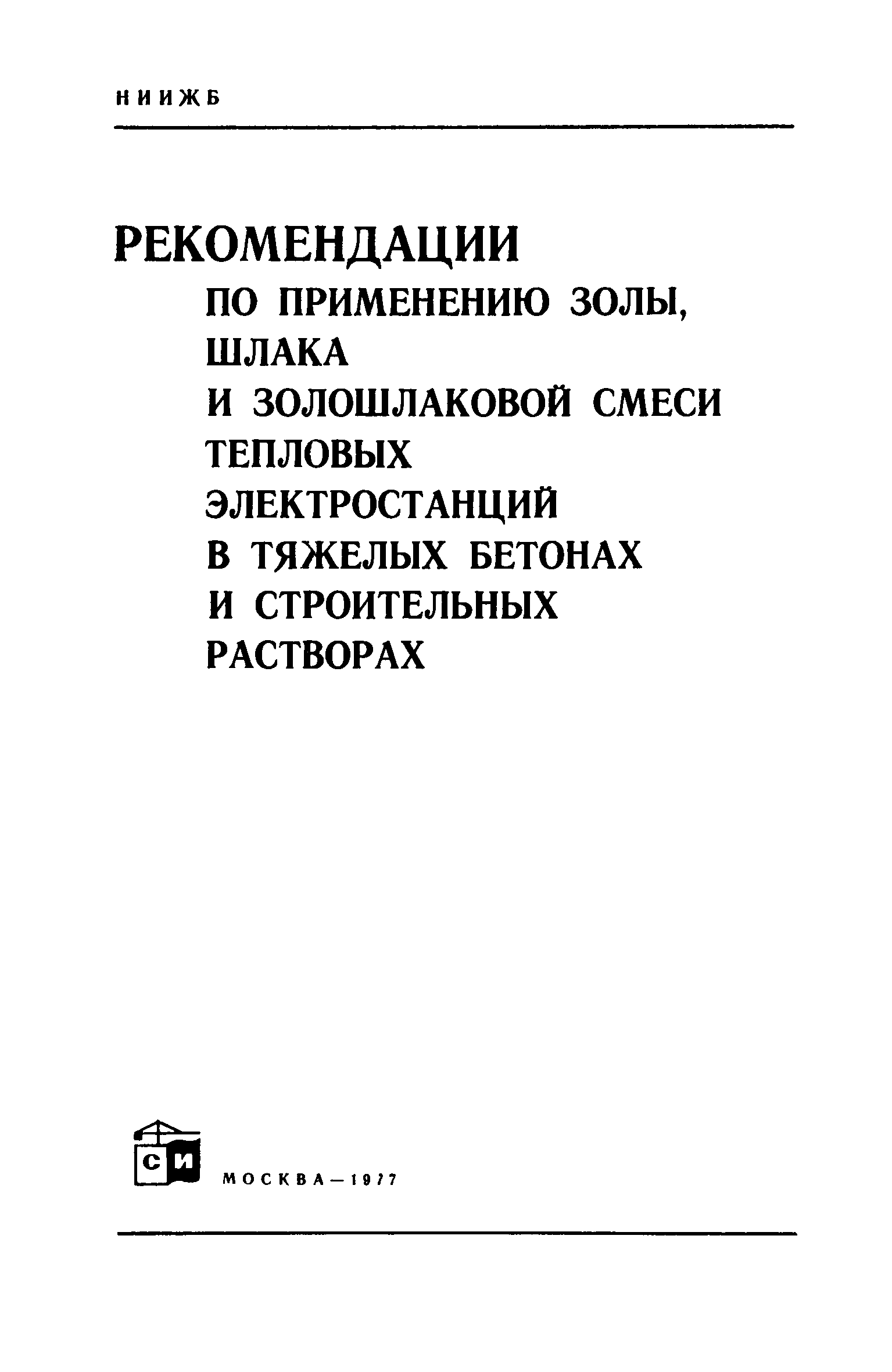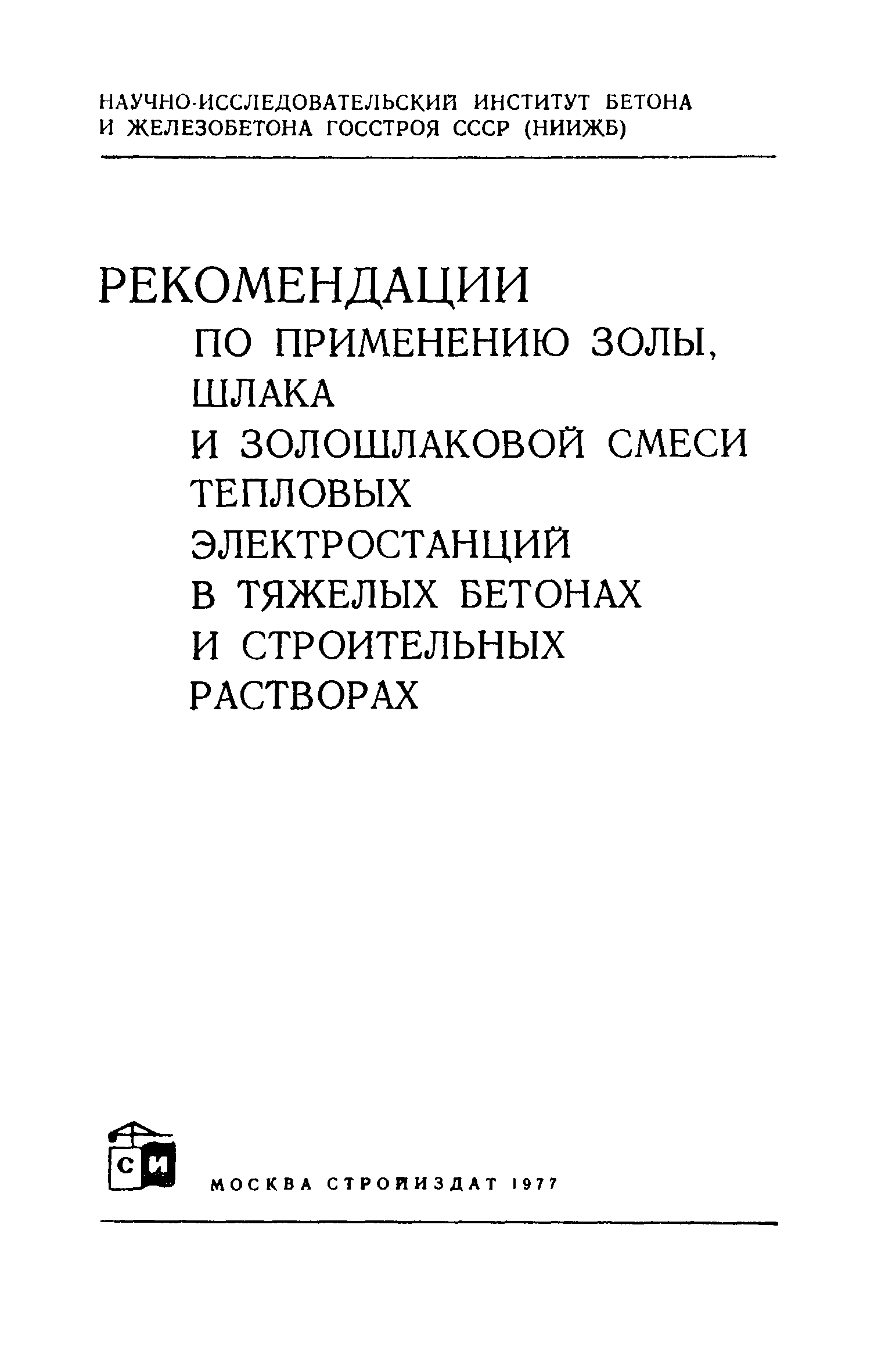| Название рус.: | Рекомендации по применению золы, шлака и золошлаковой смеси тепловых электростанций в тяжелых бетонах и строительных растворах |