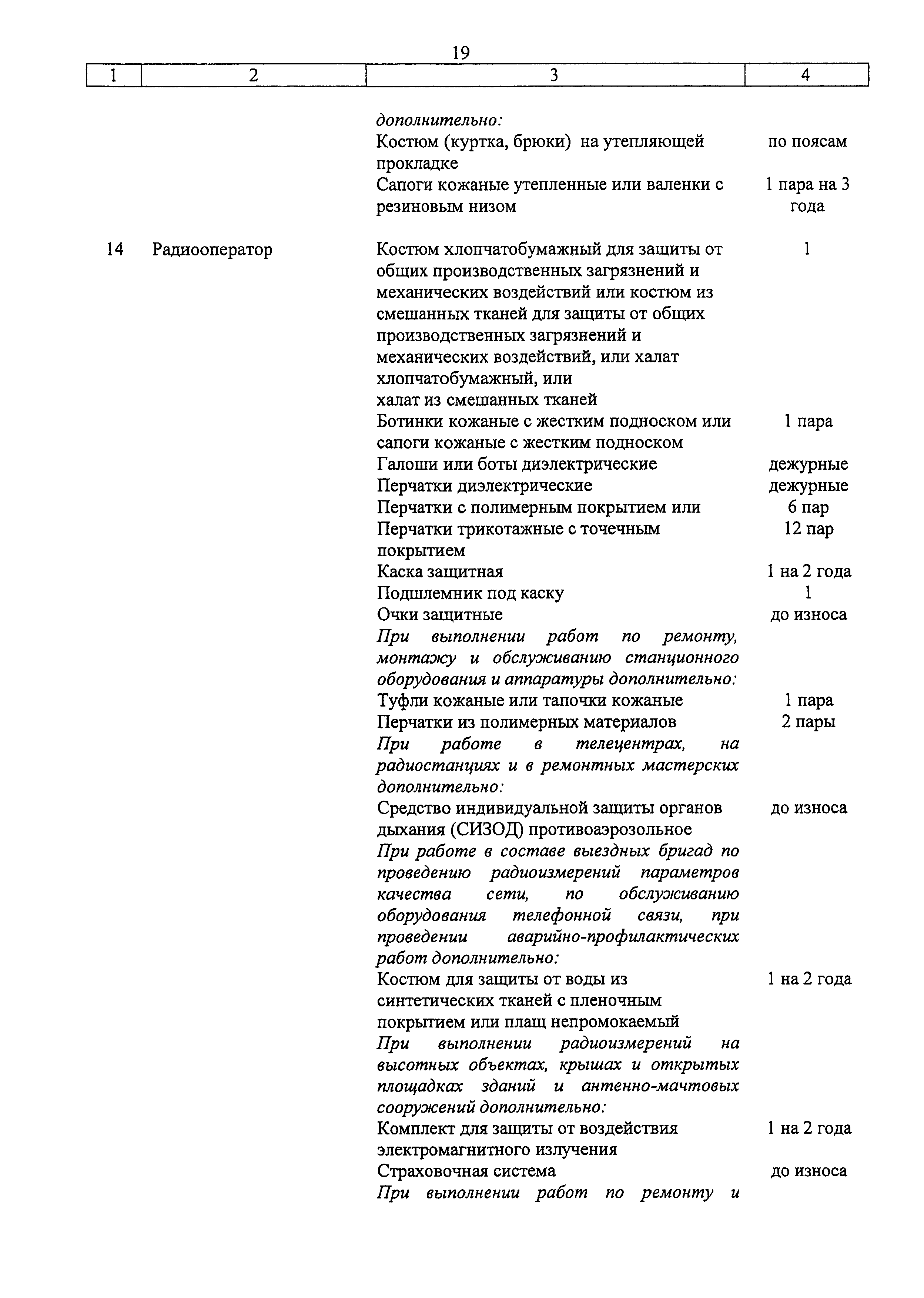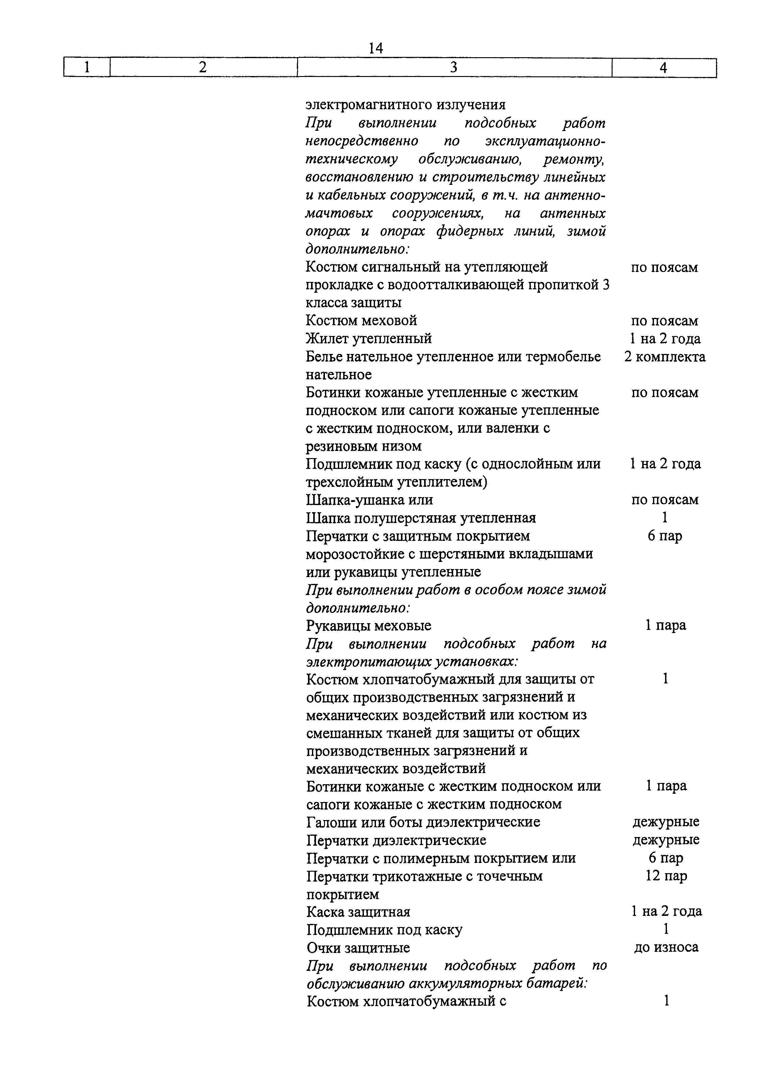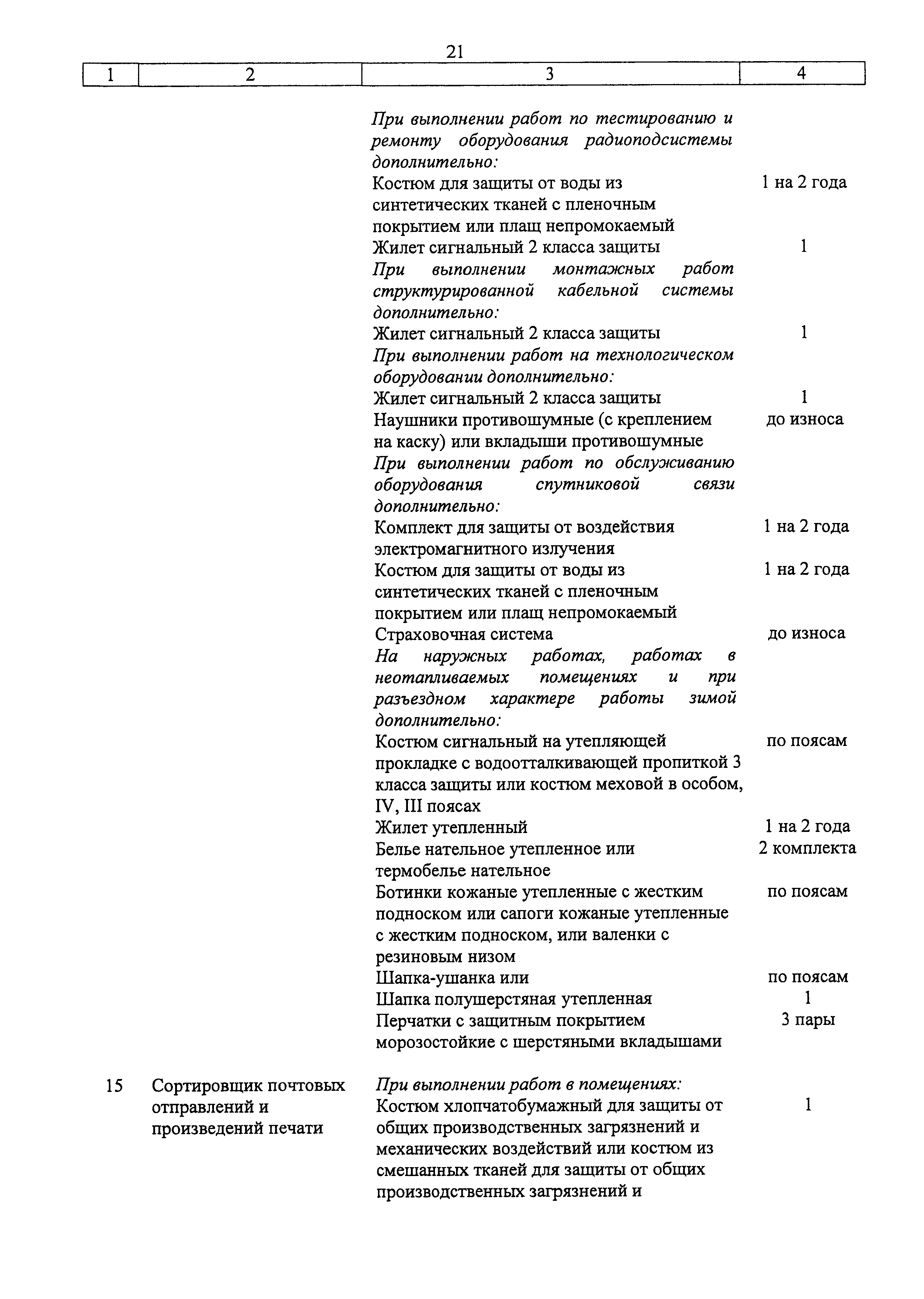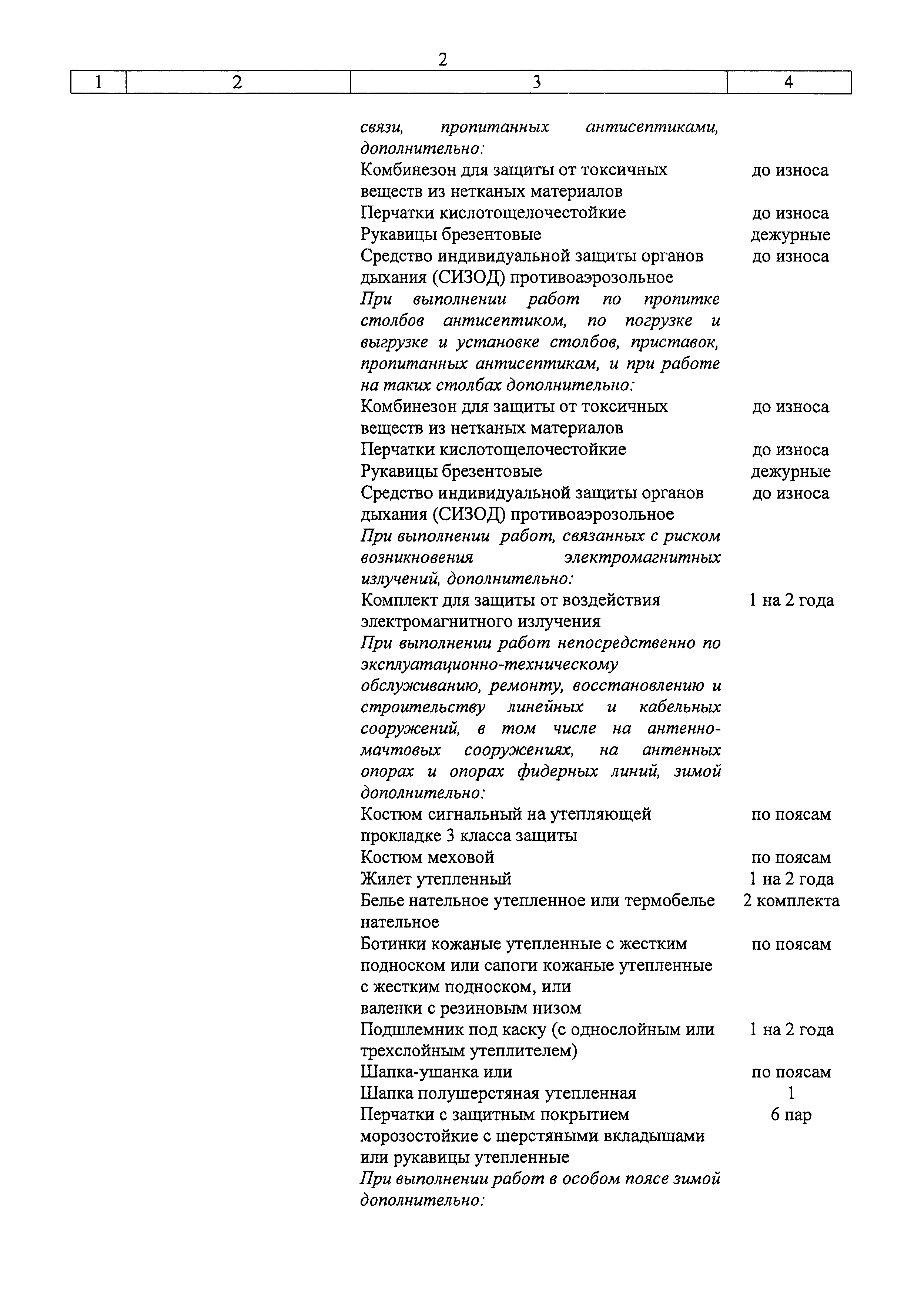 | Название рус.: | Типовые нормы бесплатной выдачи специальной одежды, специальной обуви и других средств индивидуальной защиты работникам связи, занятым на работах с вредными и (или) опасными условиями труда, а также на работах, выполняемых в особых температурных условиях или связанных с загрязнением |