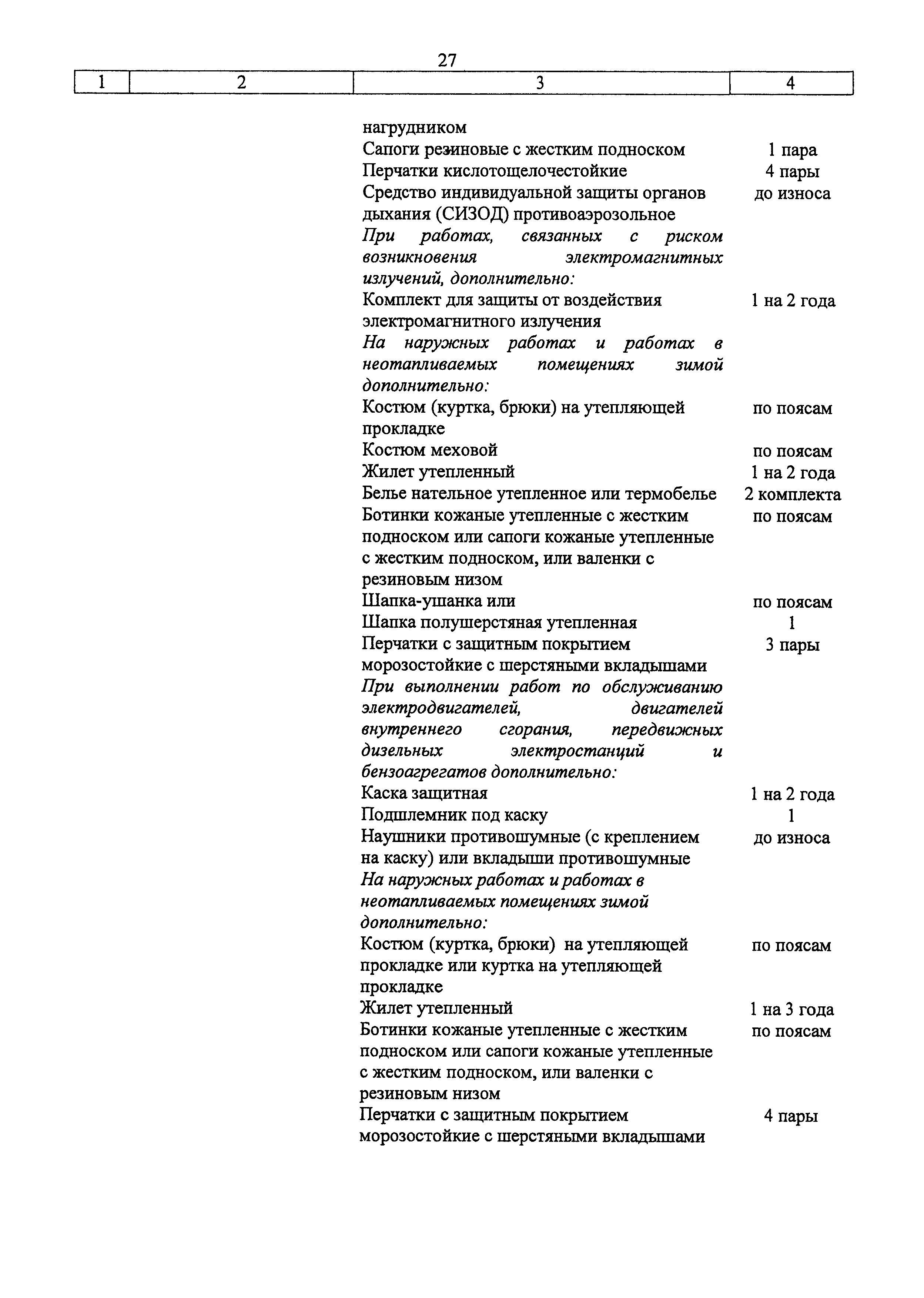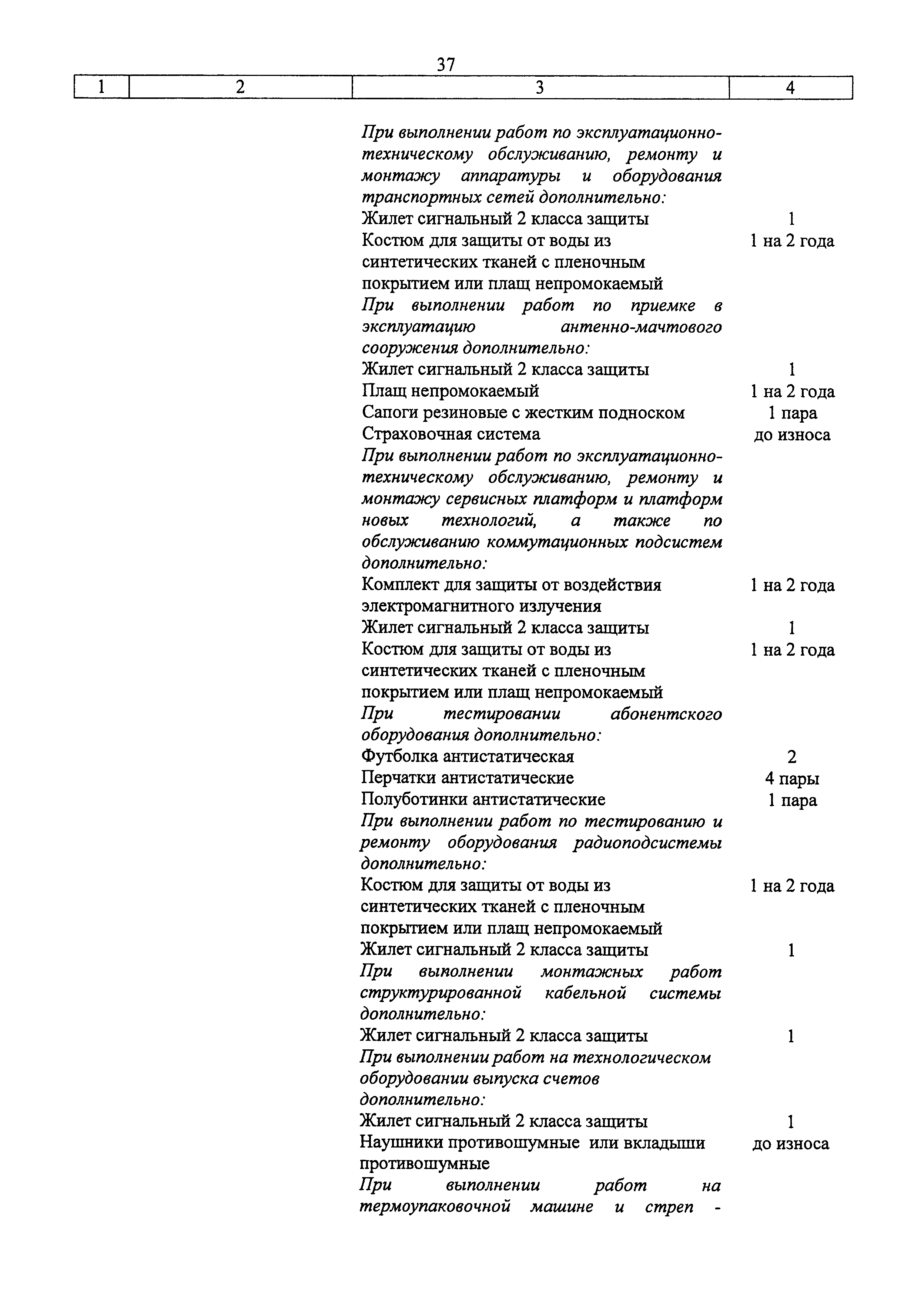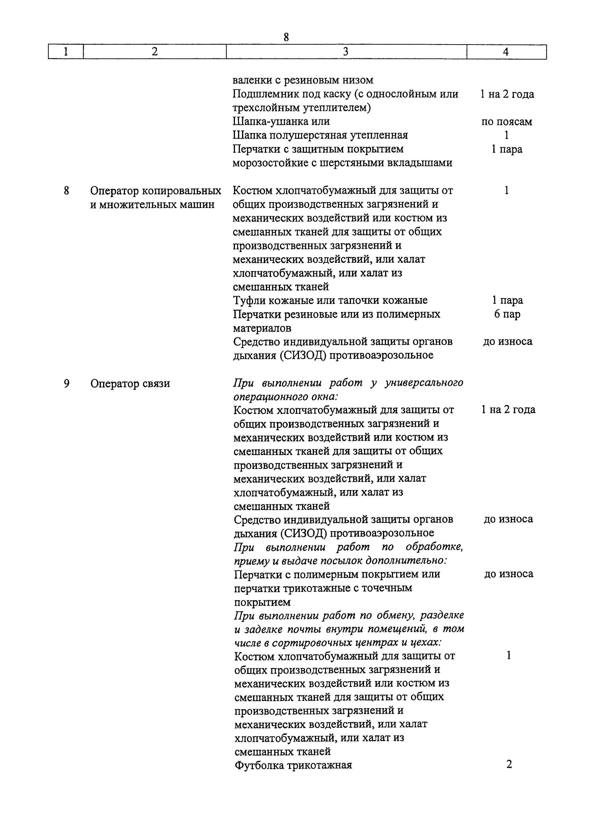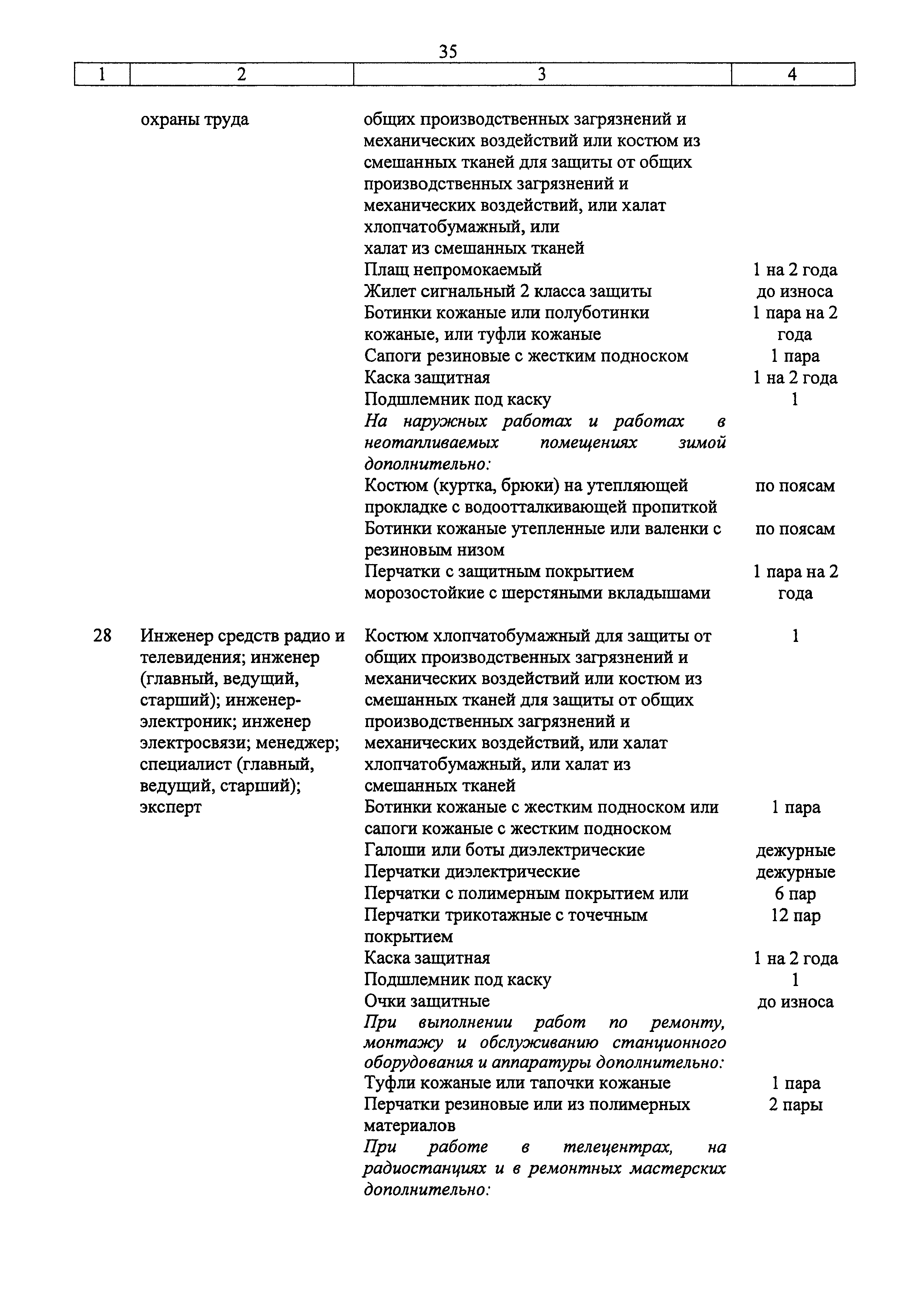 | Название рус.: | Типовые нормы бесплатной выдачи специальной одежды, специальной обуви и других средств индивидуальной защиты работникам связи, занятым на работах с вредными и (или) опасными условиями труда, а также на работах, выполняемых в особых температурных условиях или связанных с загрязнением |