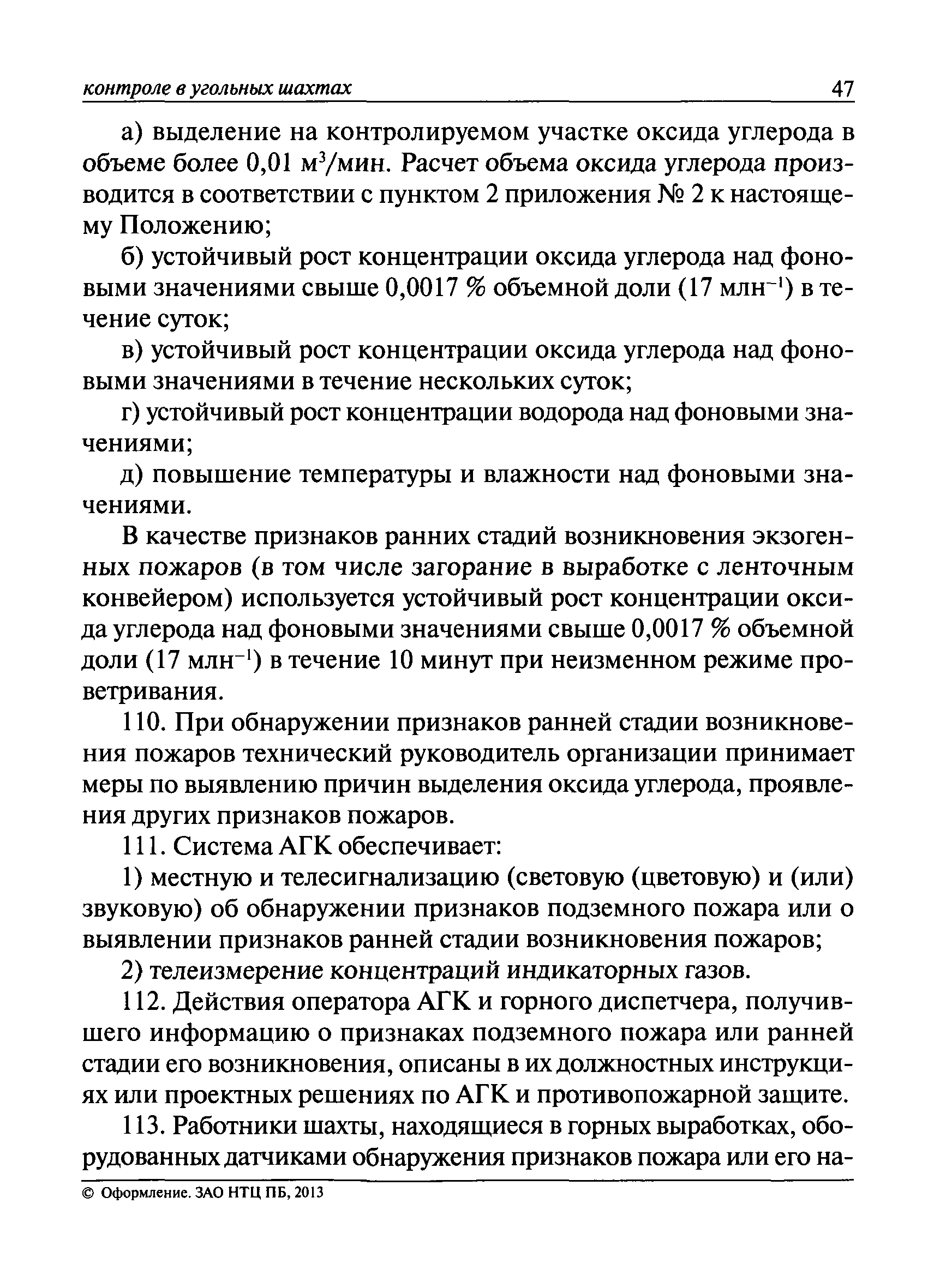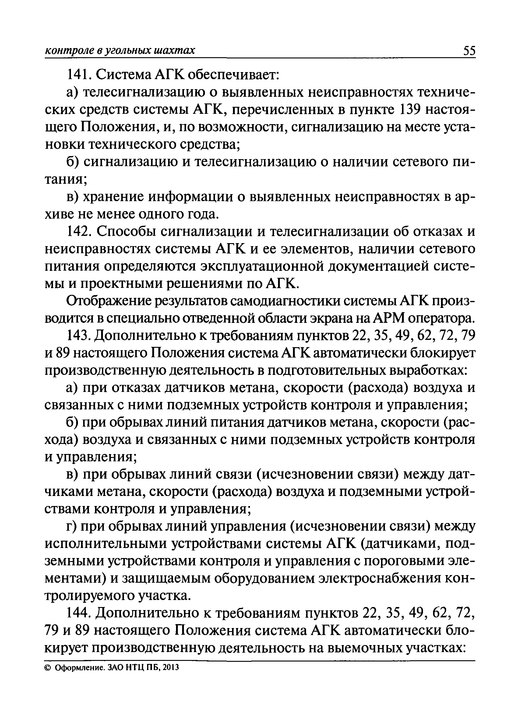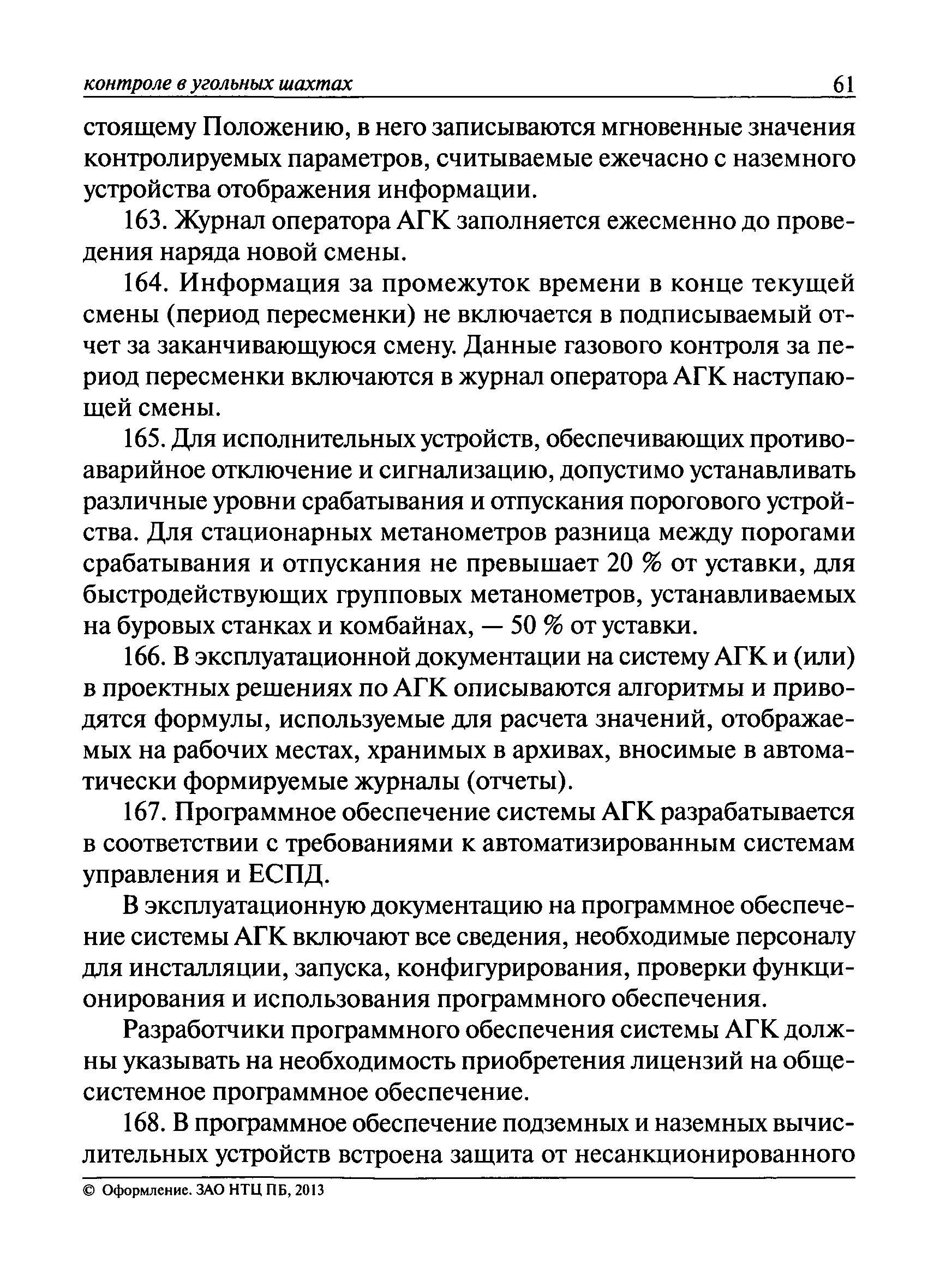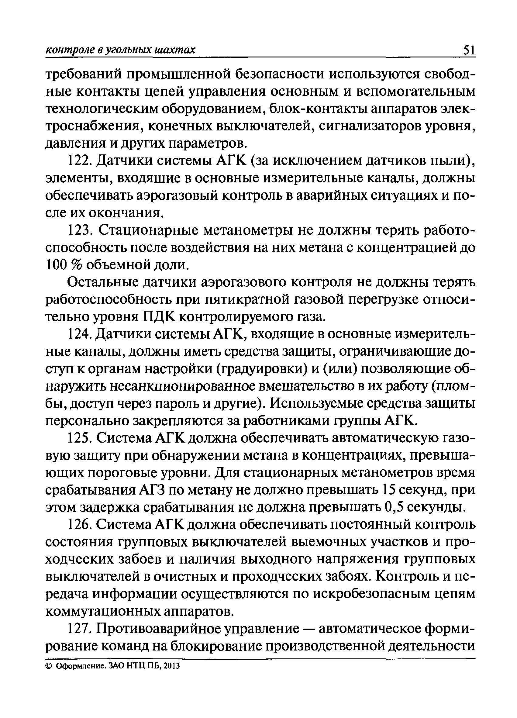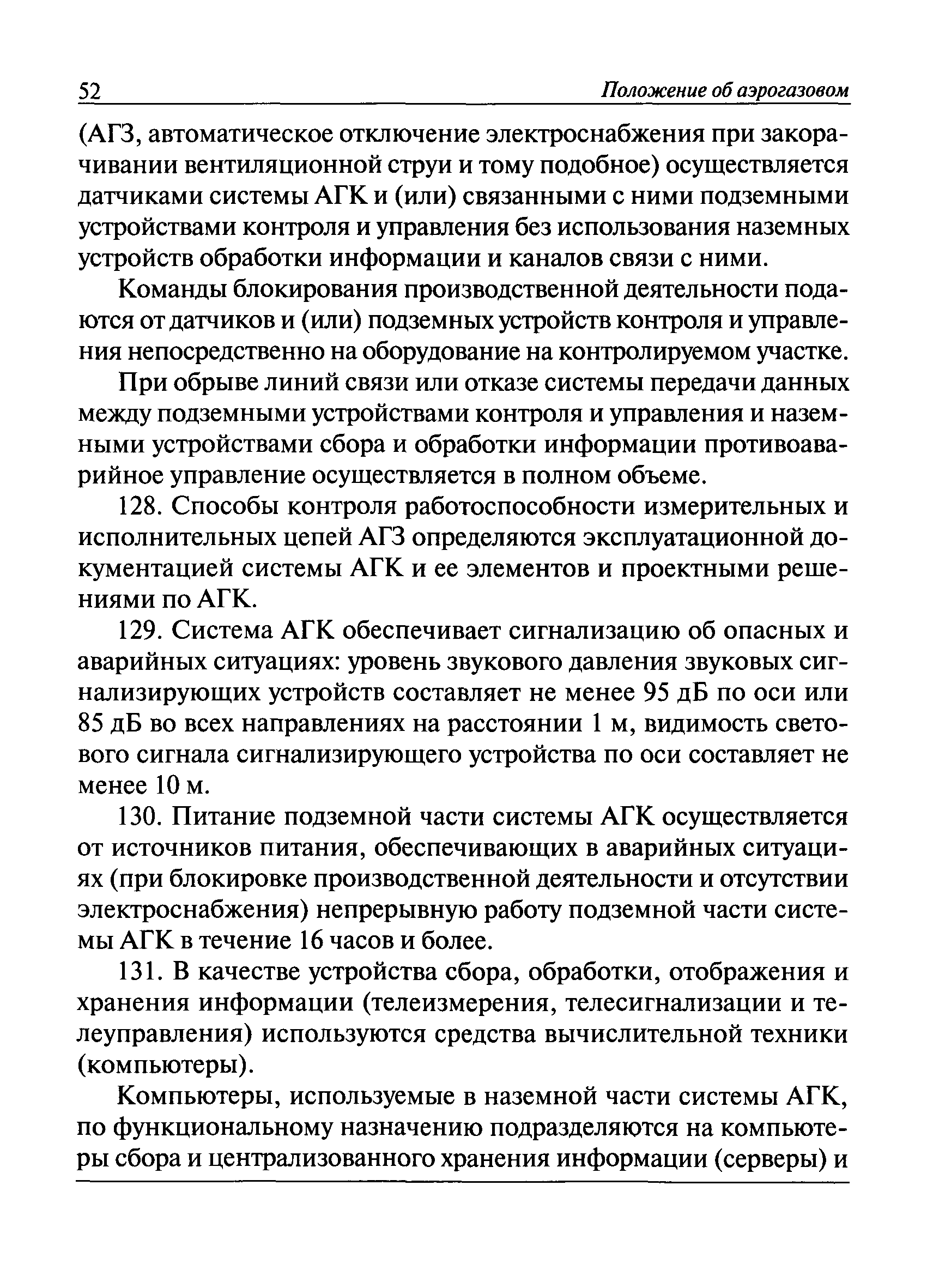 | Оглавление: | I. Общие положения II. Назначение, область применения и состав системы АГК III. Контроль метана IV. Контроль оксида углерода, опасных и вредных газов и кислорода V. Контроль пыли VI. Контроль расхода воздуха VII. Контроль и управление установками и оборудованием для поддержания безопасного аэрогазового режима VIII. Контроль параметров рудничной атмосферы в целях обнаружения подземных пожаров IX. Техническое обеспечение системы АГК X. Информационное, математическое и программное обеспечение системы АГК XI. Метрологическое обеспечение системы АГК XII. Организационное обеспечение системы АГК XIII. Проектирование, монтаж и сдача в эксплуатацию системы АГК XIV. Эксплуатация и обслуживание системы АГК Приложение № 1. Термины и их определения Приложение № 2. Методики расчета расхода воздуха и выделяемого объема оксида углерода Приложение № 3. Методика определения фона индикаторных газов Приложение № 4. Журнал эксплуатации и обслуживания системы АГК Приложение № 5. Журнал оператора АГК Приложение № 6. Акт сдачи-приемки в эксплуатацию системы АГК Приложение № 7. Методика приготовления метановоздушных смесей для проверки датчиков метана Приложение № 8. Журнал плановой проверки системы АГК |