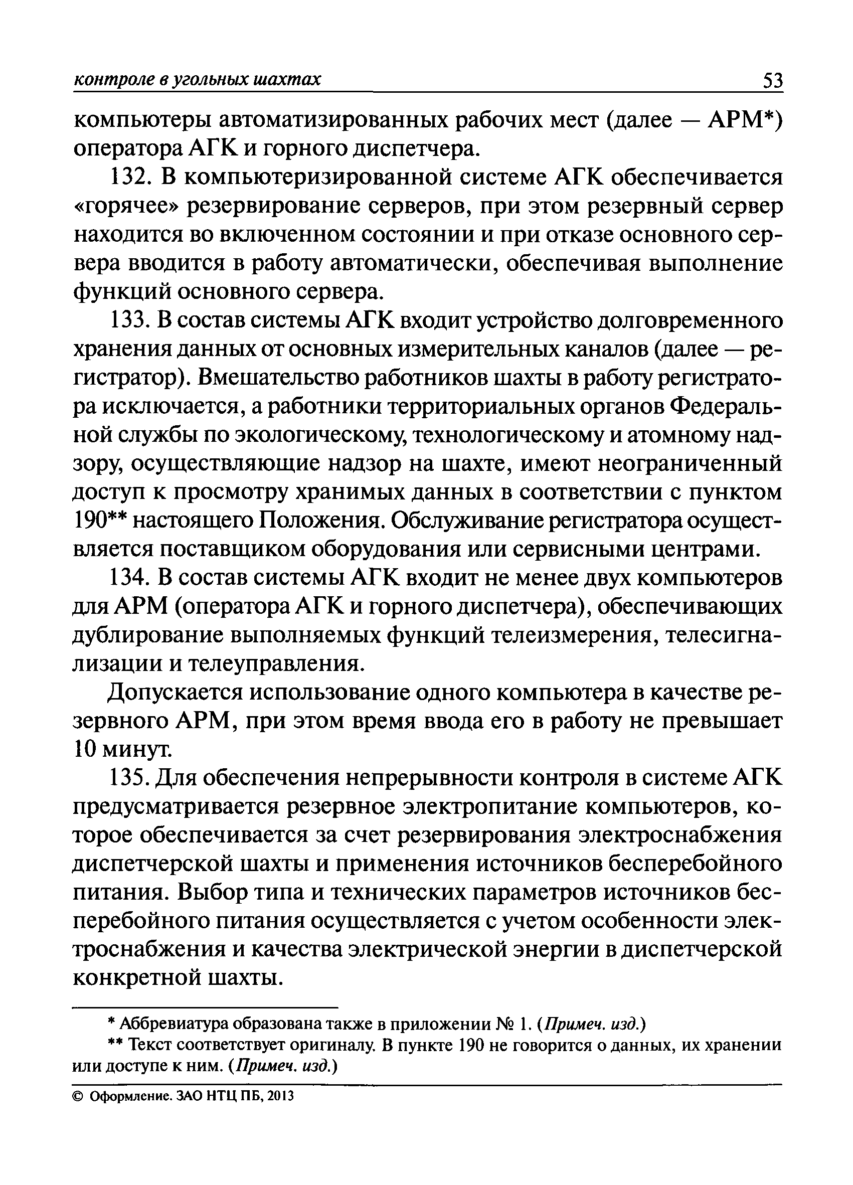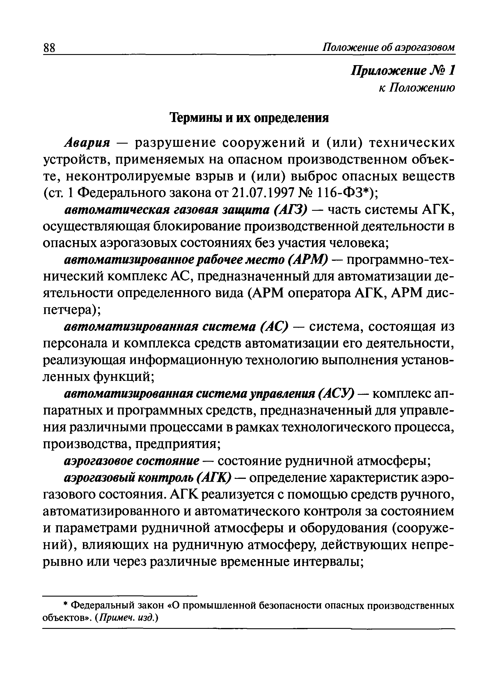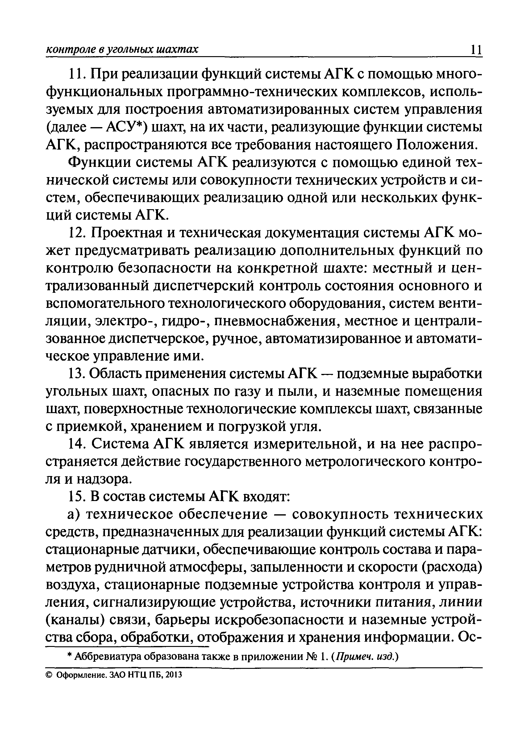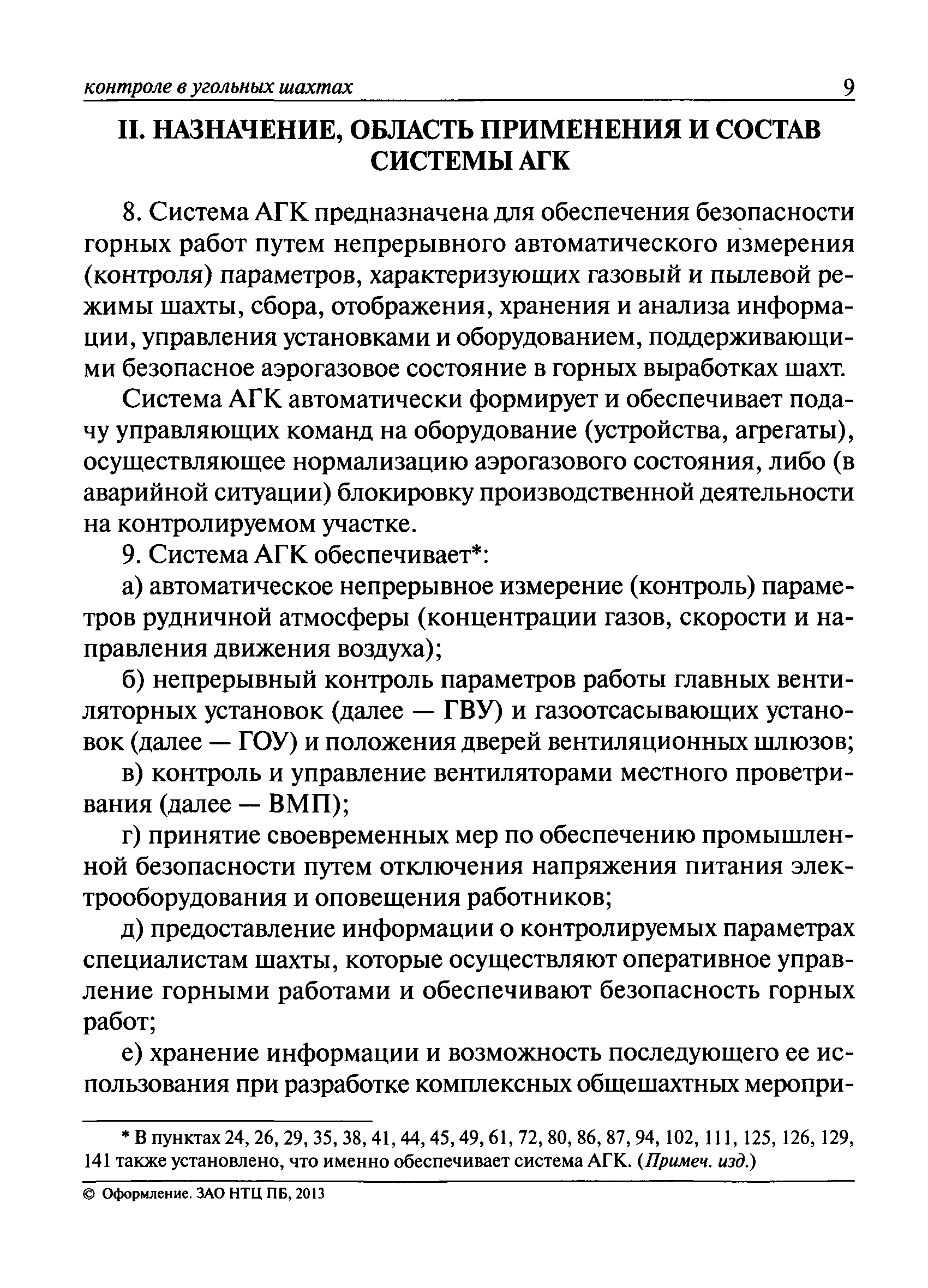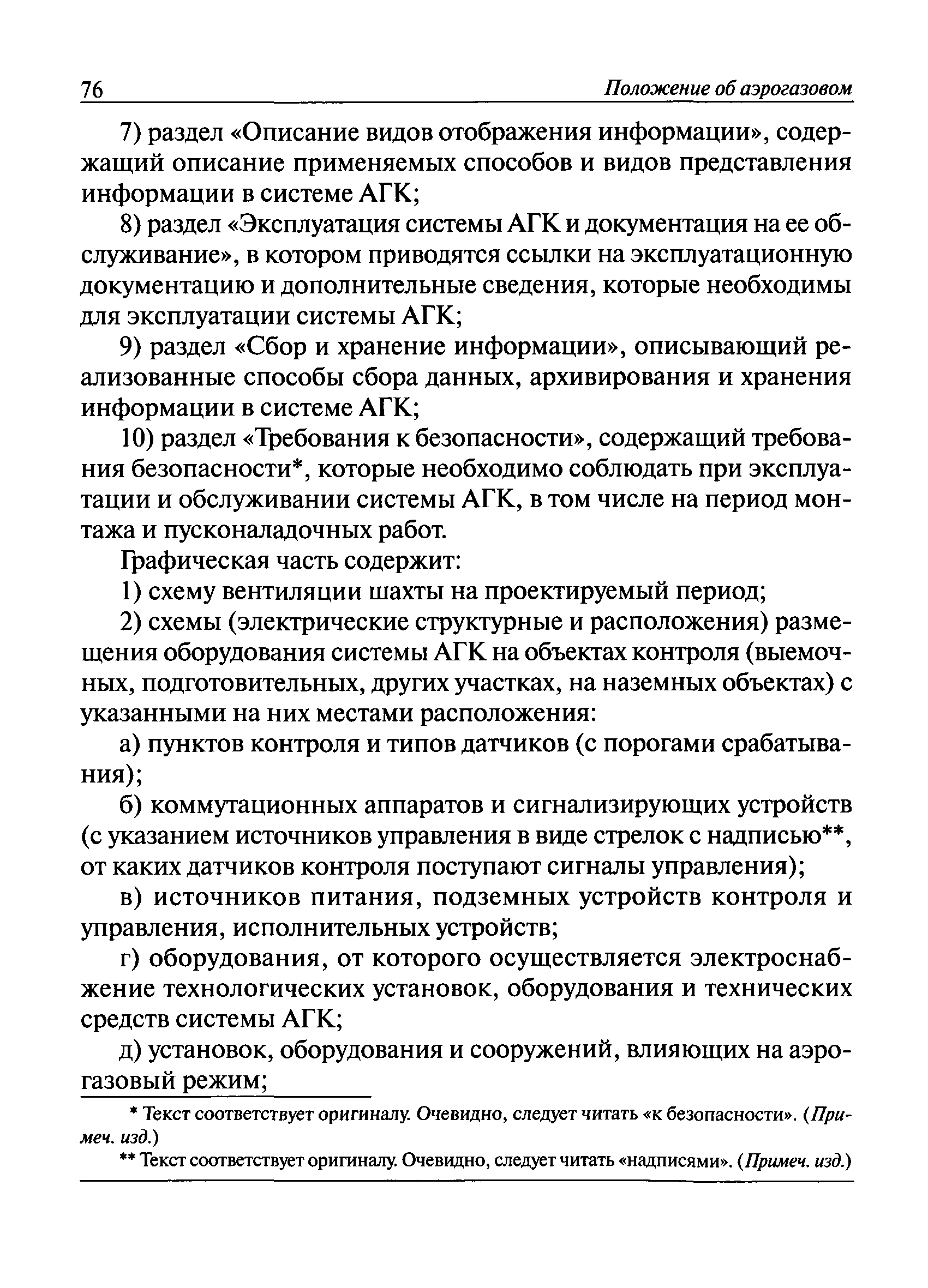 | Оглавление: | I. Общие положения II. Назначение, область применения и состав системы АГК III. Контроль метана IV. Контроль оксида углерода, опасных и вредных газов и кислорода V. Контроль пыли VI. Контроль расхода воздуха VII. Контроль и управление установками и оборудованием для поддержания безопасного аэрогазового режима VIII. Контроль параметров рудничной атмосферы в целях обнаружения подземных пожаров IX. Техническое обеспечение системы АГК X. Информационное, математическое и программное обеспечение системы АГК XI. Метрологическое обеспечение системы АГК XII. Организационное обеспечение системы АГК XIII. Проектирование, монтаж и сдача в эксплуатацию системы АГК XIV. Эксплуатация и обслуживание системы АГК Приложение № 1. Термины и их определения Приложение № 2. Методики расчета расхода воздуха и выделяемого объема оксида углерода Приложение № 3. Методика определения фона индикаторных газов Приложение № 4. Журнал эксплуатации и обслуживания системы АГК Приложение № 5. Журнал оператора АГК Приложение № 6. Акт сдачи-приемки в эксплуатацию системы АГК Приложение № 7. Методика приготовления метановоздушных смесей для проверки датчиков метана Приложение № 8. Журнал плановой проверки системы АГК |