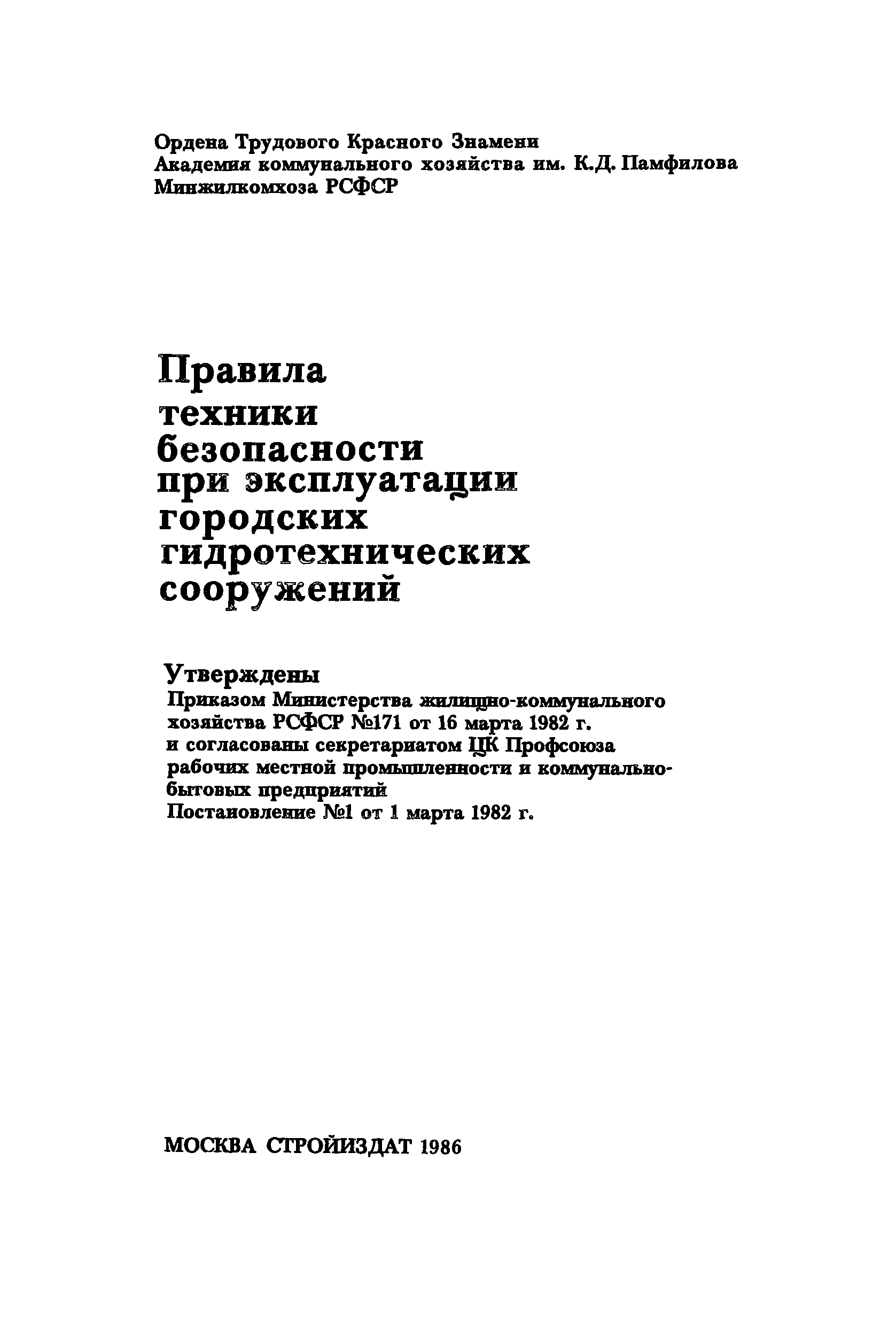 | Название рус.: | Правила техники безопасности при эксплуатации городских гидротехнических сооружений |