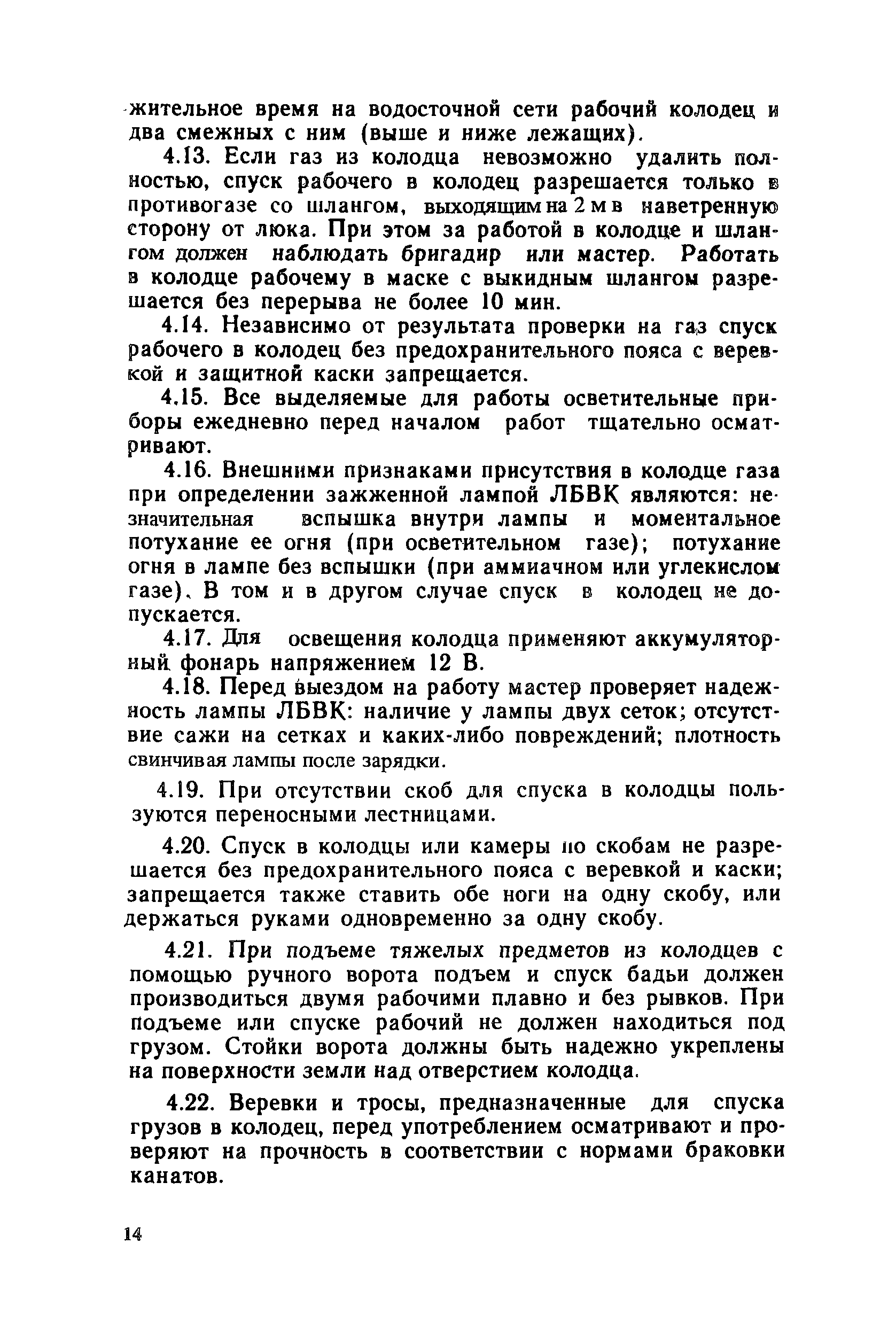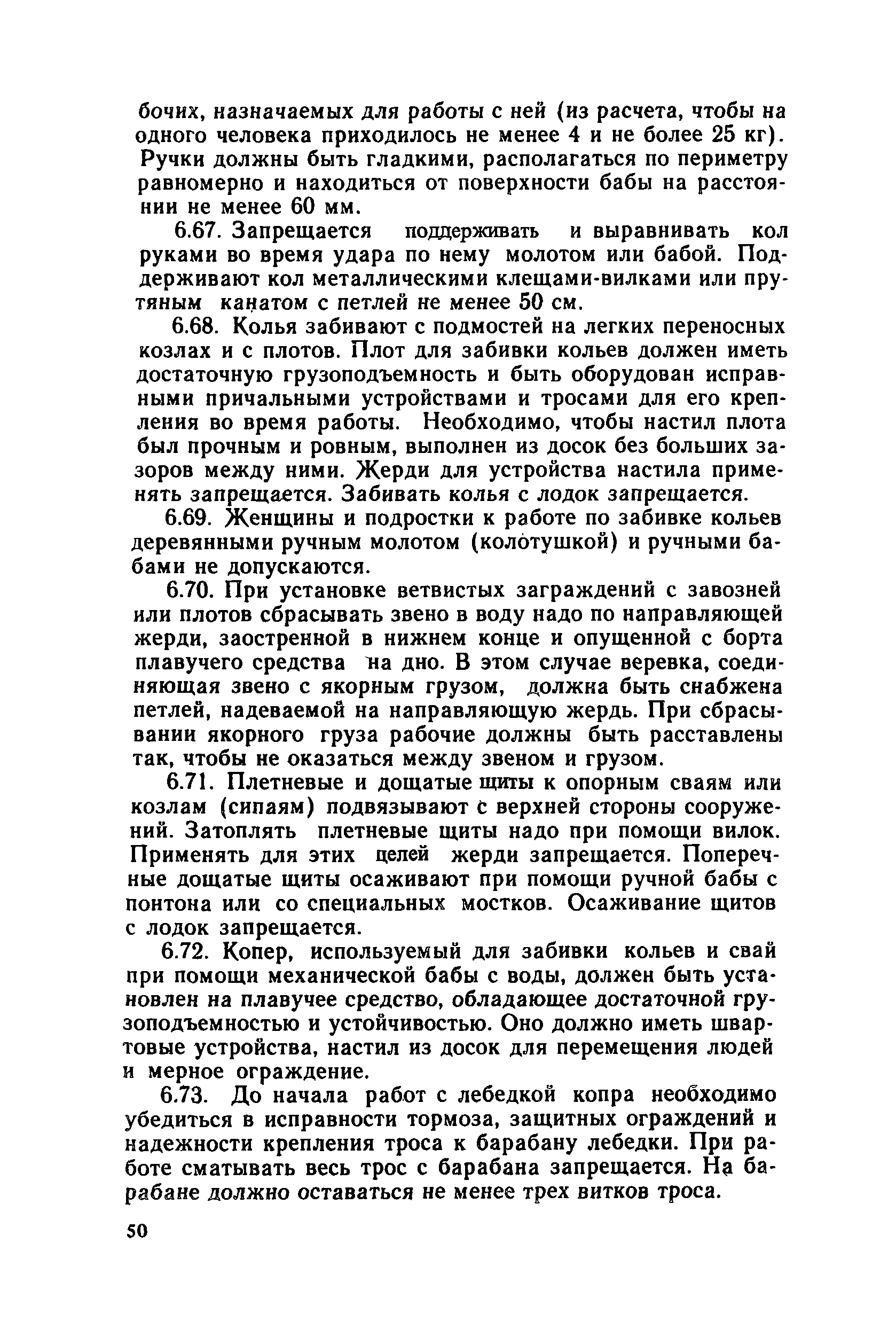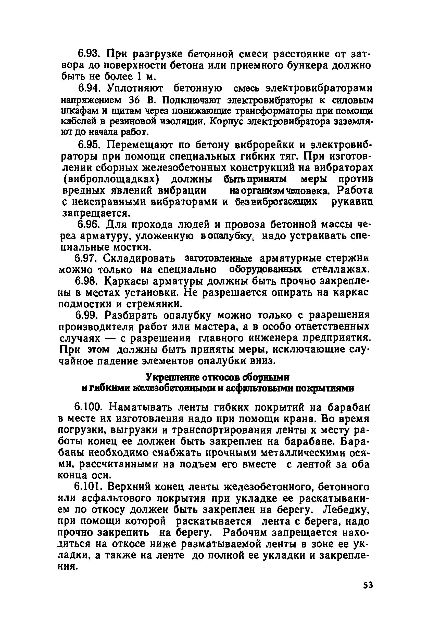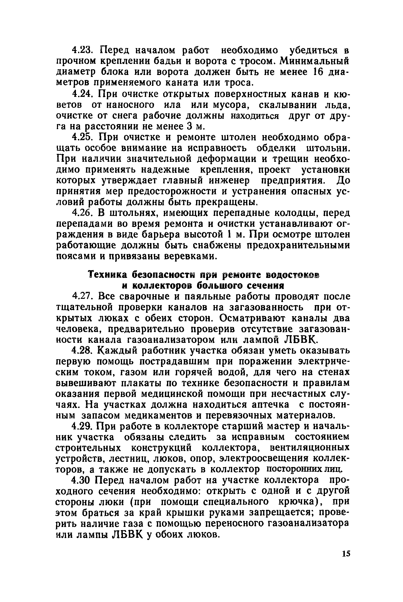 | Оглавление: | 1. Общие положения Область и порядок применения правил 2. Общие требования безопасности при эксплуатации электрических установок 3. Безопасная эксплуатация водосточных и дренажных насосных станций гидротехнических сооружений Общие требования безопасности к устройству и размещению оборудования насосных станций Безопасная организация работы и эксплуатация водосточных и дренажных насосных станций 4. Техника безопасности при эксплуатации и ремонте подземных коллекторов и галерей Безопасная эксплуатация и проведение ремонтных работ в колодцах, коллекторах, камерах, дренажах, ливнеприемниках, смотровых колодцах штолен и других сооружениях с возможным появлением вредных газов Техника безопасности при ремонте водостоков и коллекторов большого сечения Техника безопасности при работе на передвижных парообразователях Техника безопасности при работе на илососах Техника безопасности при промывке водостоков и колодцев с применением поливомоечных машин Техника безопасности при работе на машинах для гидромеханической очистки водосточных коллекторов струями высокого давления 5. Техника безопасности при производстве отдельных видов работ Организация места производства работ Опасные работы Оградительные мероприятия при выполнении работ на действующих дорогах, мостах и набережных Устройство и эксплуатация лесов, подмостей, приставных лестниц и других приспособлений для выполнения работ Вибраторы и трамбующие средства Очистка поверхности гидротехнических сооружений пескоструйными аппаратами Расшивочные работы с подвесных люлек и передвижных подмостей Торкретирование поверхностей Компрессоры Безопасность при работе с газонокосилкой СК-20 на склонах Безопасность работы при устройстве газонов методом гидропосева Безопасность при работах на камышекосилках 6. Техника безопасности при эксплуатации и ремонте береговых укреплений, набережных и откосов Берегоочистительные работы Разборка старых конструкций, сооружений и зданий Работа на гидротехнических сооружениях в условиях суточного колебания уровня воды Земляные плотины и дамбы Подпорные стены Возведение насыпных и намывных сооружений Возведение хворостяных сооружений Укрепление откосов монолитными асфальтобетонными, бетонными и железобетонными покрытиями Укрепление откосов сборными и гибкими железобетонными и асфальтобетонными покрытиями Укрепление береговых откосов химическими веществами Укрепление откосов камнем, посевом трав, посадкой ивняка и одерновкой Работа над водой и на воде и безопасная эксплуатация плавучих средств Работы со льда при эксплуатации и ремонте гидротехнических сооружений Пропуск ледохода и паводковых вод Правила безопасности при осмотре и ремонте береговых укреплений откосного типа Приложение 1. Выписка из "Положения об организации работы по охране труда в системе Минжилкомхоза РСФСР" Приложение 2. Список производств и профессий, для которых обязательны предварительные при поступлении на работу и периодические медицинские осмотры в целях предупреждения заболеваний, несчастных случаев и обеспечения безопасности труда Приложение 3. Типовые отраслевые нормы бесплатной выдачи специальной одежды, специальной обуви и других средств индивидуальной защиты рабочим и служащим жилищно-коммунального х