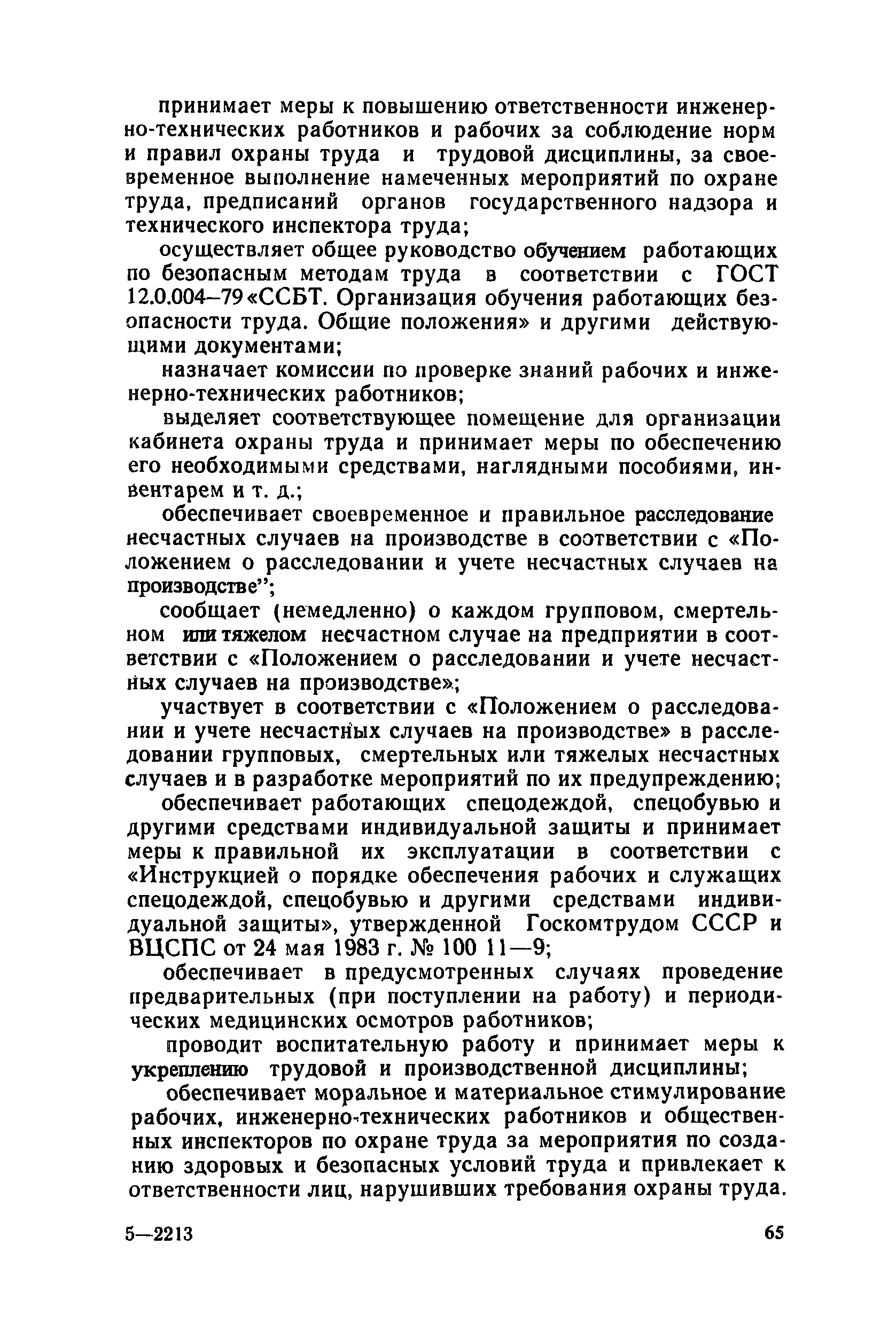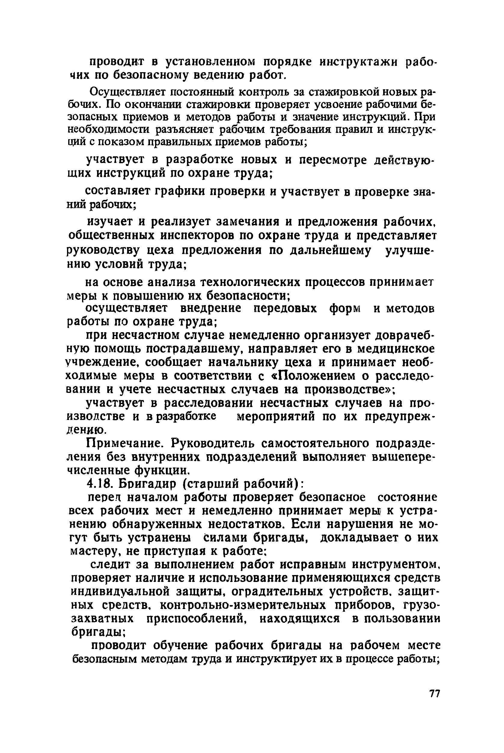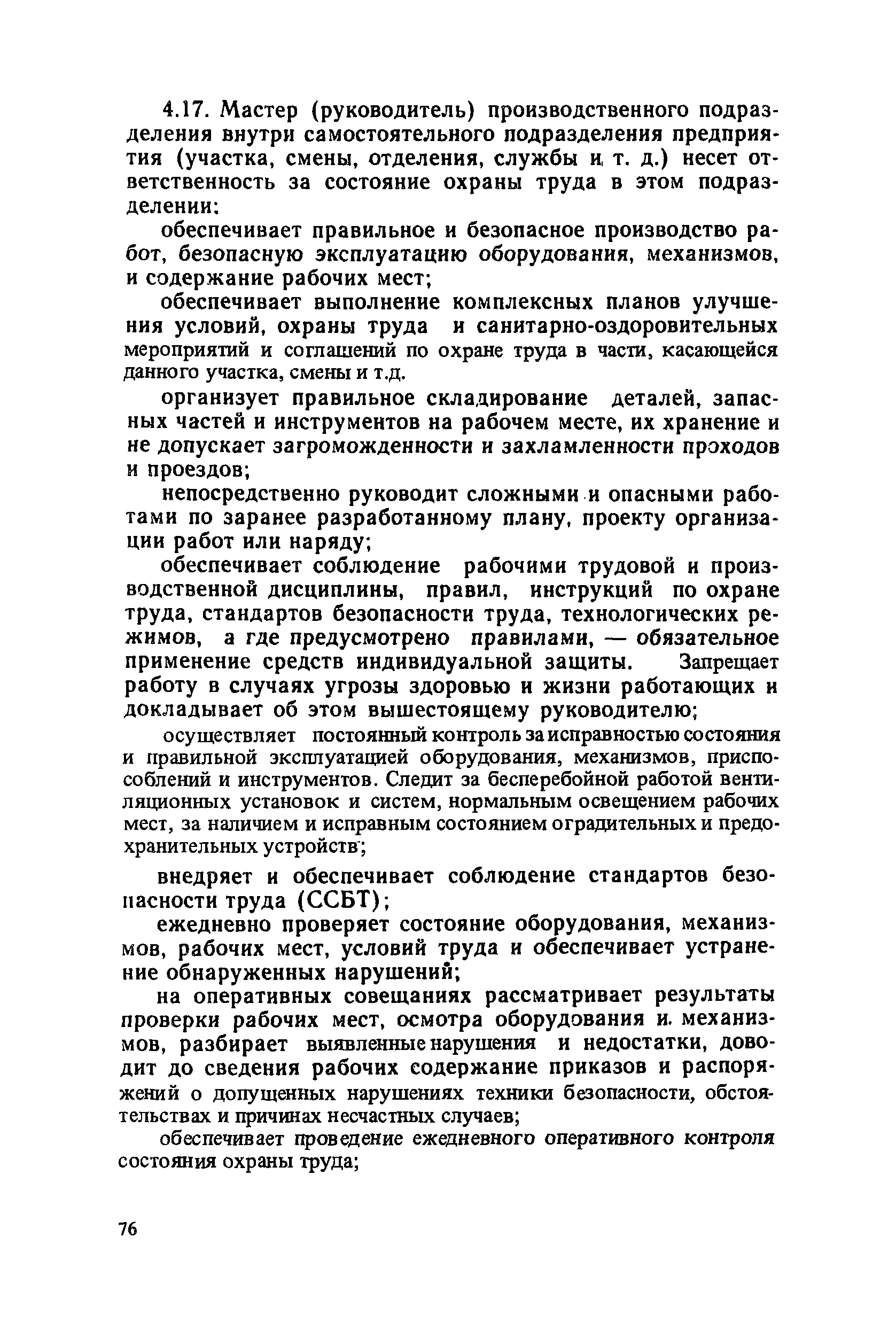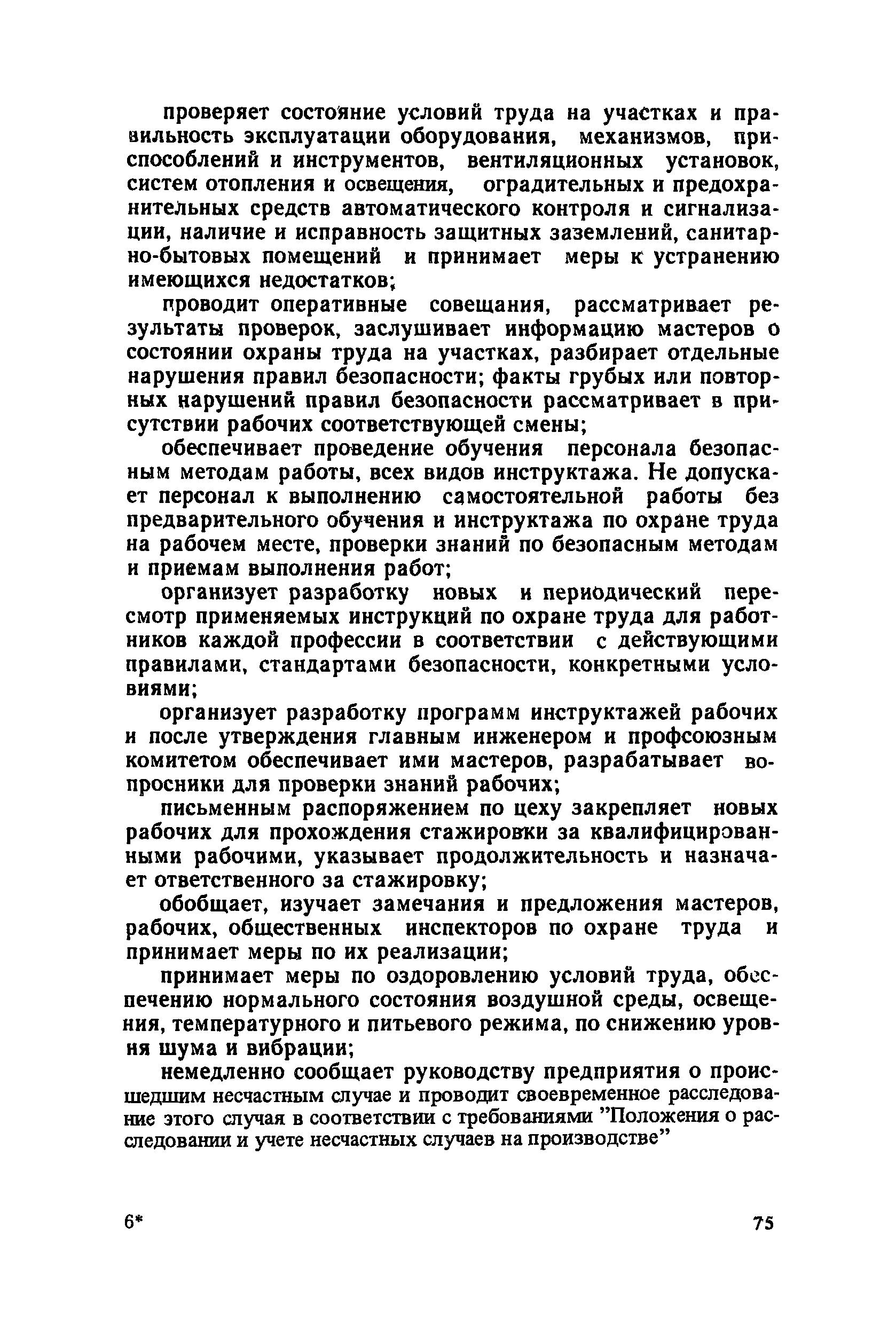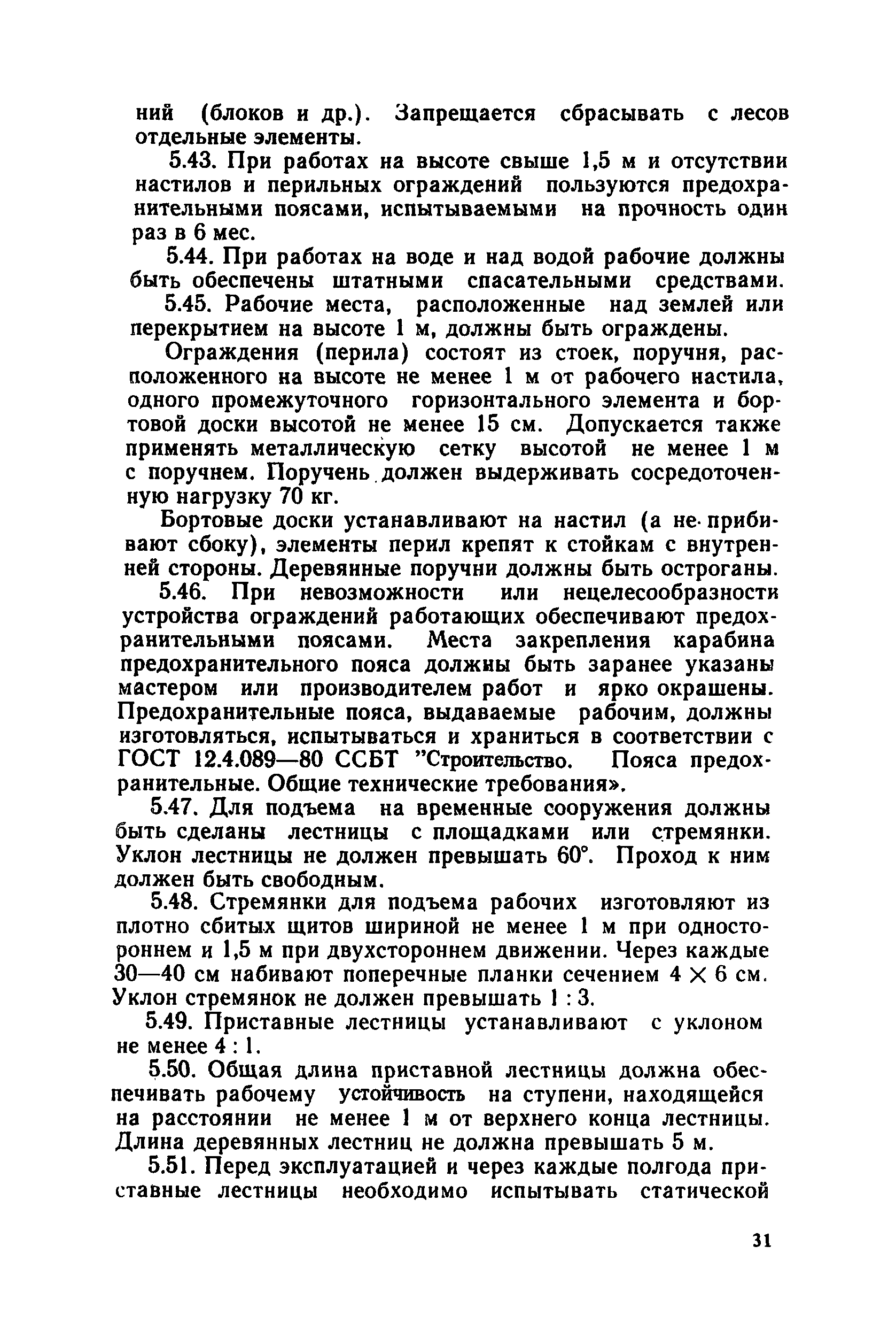 | Оглавление: | 1. Общие положения Область и порядок применения правил 2. Общие требования безопасности при эксплуатации электрических установок 3. Безопасная эксплуатация водосточных и дренажных насосных станций гидротехнических сооружений Общие требования безопасности к устройству и размещению оборудования насосных станций Безопасная организация работы и эксплуатация водосточных и дренажных насосных станций 4. Техника безопасности при эксплуатации и ремонте подземных коллекторов и галерей Безопасная эксплуатация и проведение ремонтных работ в колодцах, коллекторах, камерах, дренажах, ливнеприемниках, смотровых колодцах штолен и других сооружениях с возможным появлением вредных газов Техника безопасности при ремонте водостоков и коллекторов большого сечения Техника безопасности при работе на передвижных парообразователях Техника безопасности при работе на илососах Техника безопасности при промывке водостоков и колодцев с применением поливомоечных машин Техника безопасности при работе на машинах для гидромеханической очистки водосточных коллекторов струями высокого давления 5. Техника безопасности при производстве отдельных видов работ Организация места производства работ Опасные работы Оградительные мероприятия при выполнении работ на действующих дорогах, мостах и набережных Устройство и эксплуатация лесов, подмостей, приставных лестниц и других приспособлений для выполнения работ Вибраторы и трамбующие средства Очистка поверхности гидротехнических сооружений пескоструйными аппаратами Расшивочные работы с подвесных люлек и передвижных подмостей Торкретирование поверхностей Компрессоры Безопасность при работе с газонокосилкой СК-20 на склонах Безопасность работы при устройстве газонов методом гидропосева Безопасность при работах на камышекосилках 6. Техника безопасности при эксплуатации и ремонте береговых укреплений, набережных и откосов Берегоочистительные работы Разборка старых конструкций, сооружений и зданий Работа на гидротехнических сооружениях в условиях суточного колебания уровня воды Земляные плотины и дамбы Подпорные стены Возведение насыпных и намывных сооружений Возведение хворостяных сооружений Укрепление откосов монолитными асфальтобетонными, бетонными и железобетонными покрытиями Укрепление откосов сборными и гибкими железобетонными и асфальтобетонными покрытиями Укрепление береговых откосов химическими веществами Укрепление откосов камнем, посевом трав, посадкой ивняка и одерновкой Работа над водой и на воде и безопасная эксплуатация плавучих средств Работы со льда при эксплуатации и ремонте гидротехнических сооружений Пропуск ледохода и паводковых вод Правила безопасности при осмотре и ремонте береговых укреплений откосного типа Приложение 1. Выписка из "Положения об организации работы по охране труда в системе Минжилкомхоза РСФСР" Приложение 2. Список производств и профессий, для которых обязательны предварительные при поступлении на работу и периодические медицинские осмотры в целях предупреждения заболеваний, несчастных случаев и обеспечения безопасности труда Приложение 3. Типовые отраслевые нормы бесплатной выдачи специальной одежды, специальной обуви и других средств индивидуальной защиты рабочим и служащим жилищно-коммунального х