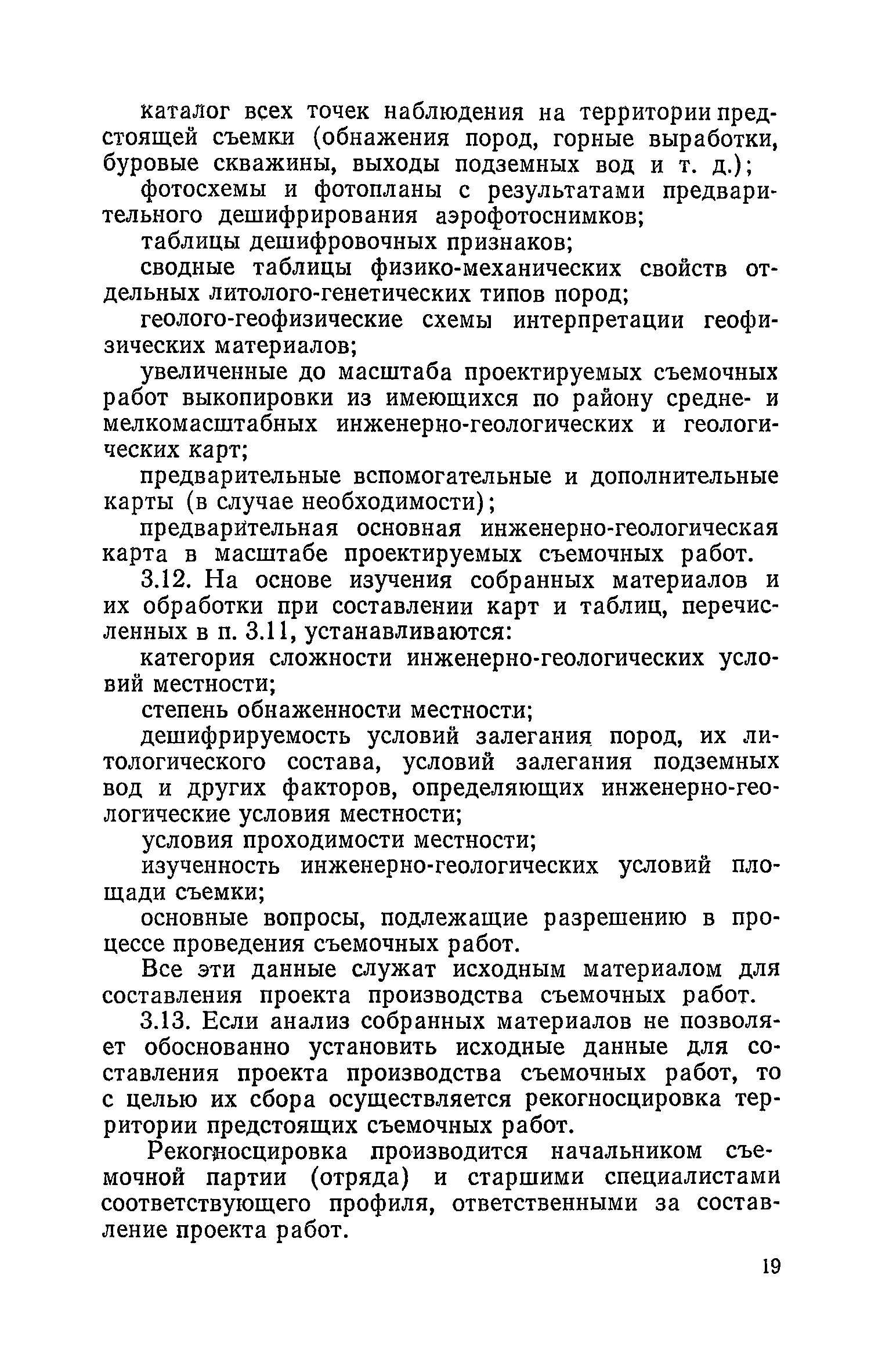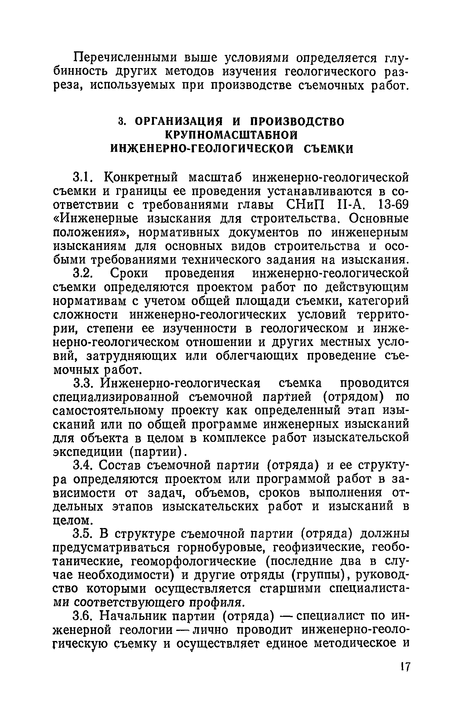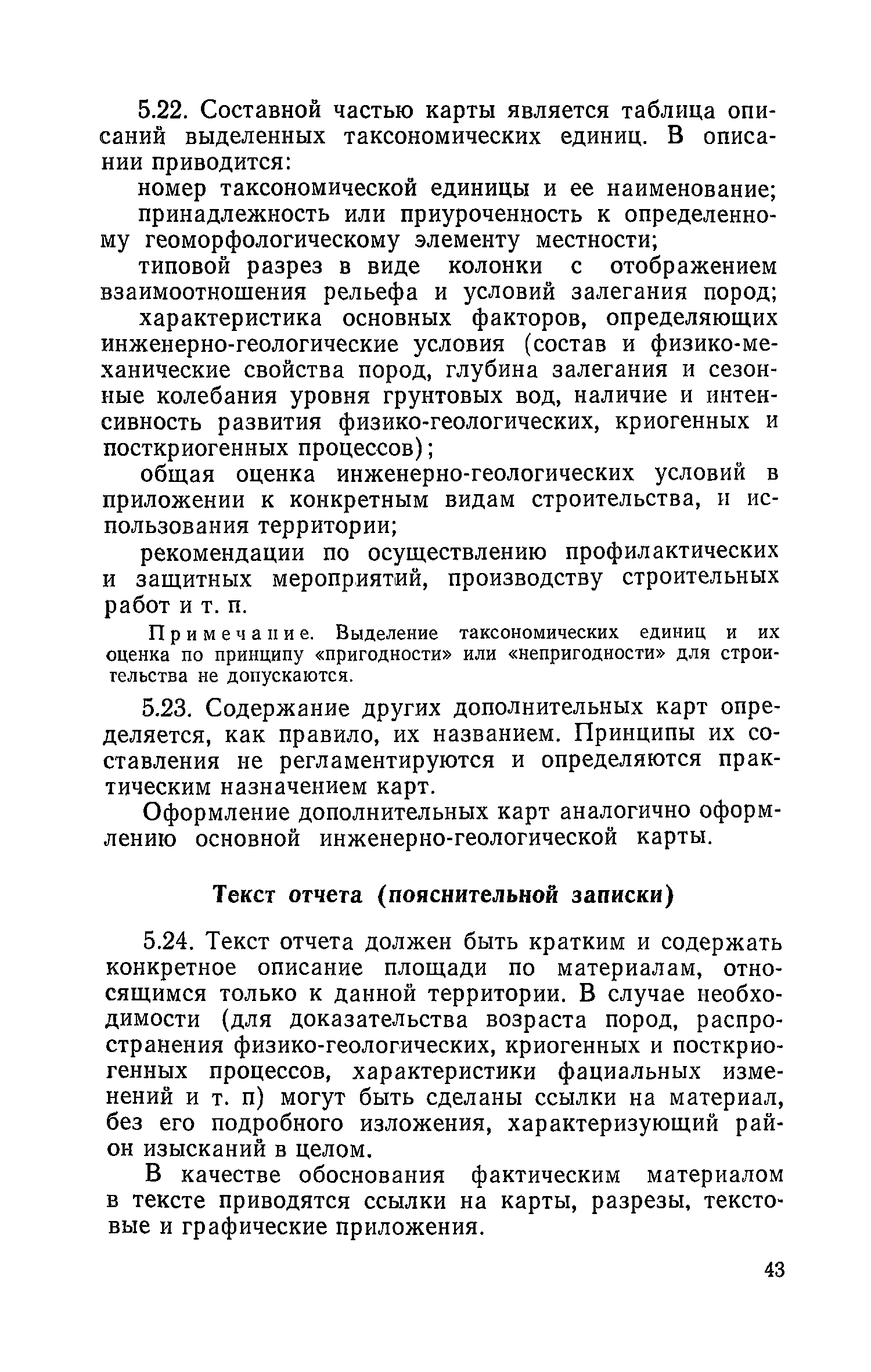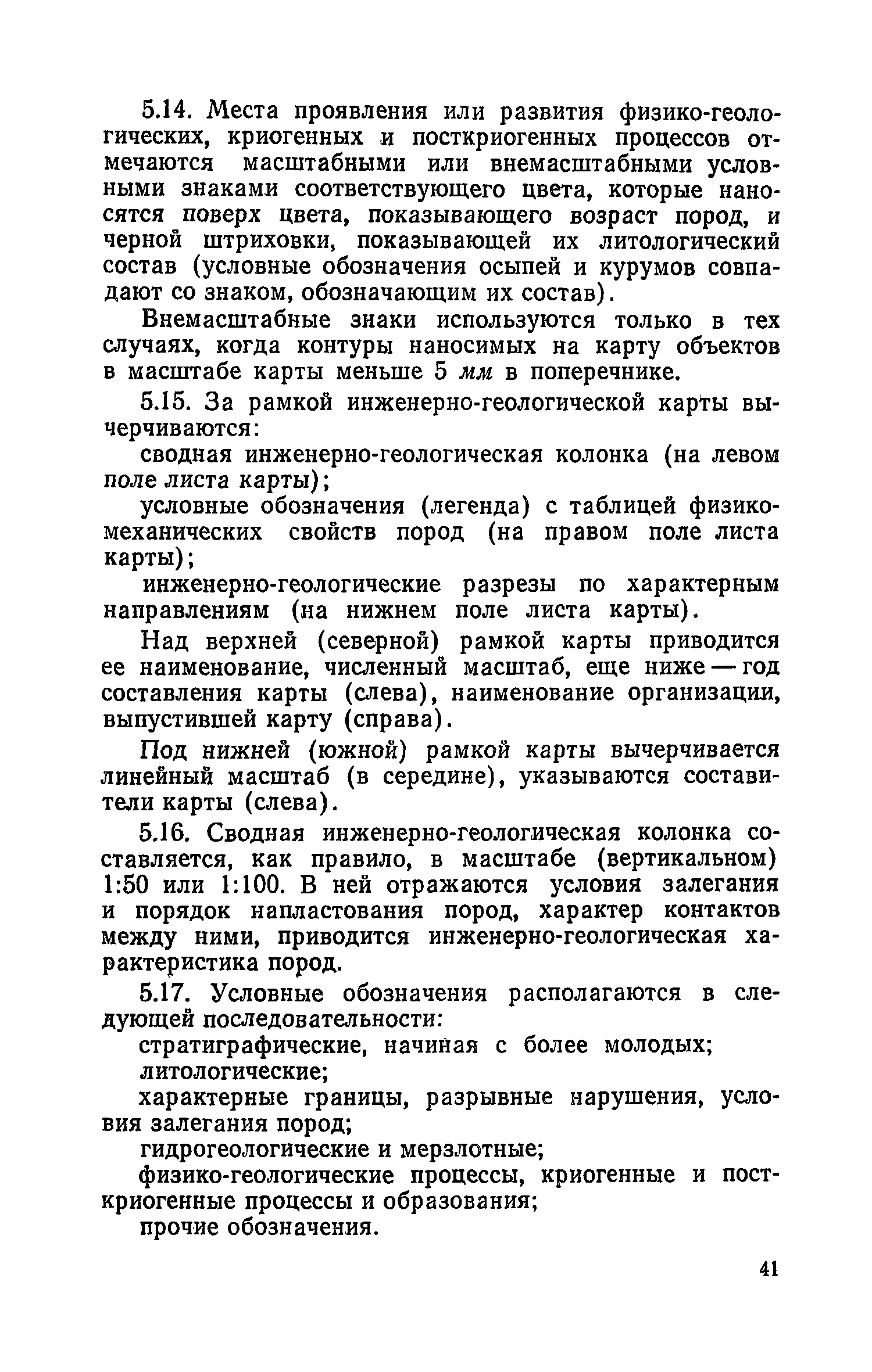 | Оглавление: | 1. Общие положения 2. Содержание крупномасштабной инженерно-геологической съемки Данные о составе, возрасте и генезисе горных пород Данные о физико-механических свойствах пород Данные о подземных водах Данные о тектонике Данные о геоморфологии Данные о физико-геологических процессах и явлениях Глубина освещения инженерно-геологических условий территории съемки 3. Организация и производство крупномасштабной инженерно-геологической съемки 4. Содержание отдельных видов полевых работ Описание местности Геофизические исследования Динамическое и статическое зондирование, пенетрационно-каротажные работы Проходка горных выработок и буровых скважин Гидрогеологические наблюдения и исследования Определение классификационных и косвенных расчетных показателей физико-механических свойств пород Обследование состояния зданий и сооружений 5. Камеральная обработка материалов, составление инженерно-геологических карт и отчета Содержание и оформление основной инженерно-геологической карты Содержание и оформление карты инженерно-геологического районирования Текст отчета (пояснительной записки) Текстовые, табличные и графические приложения Апробация отчета |