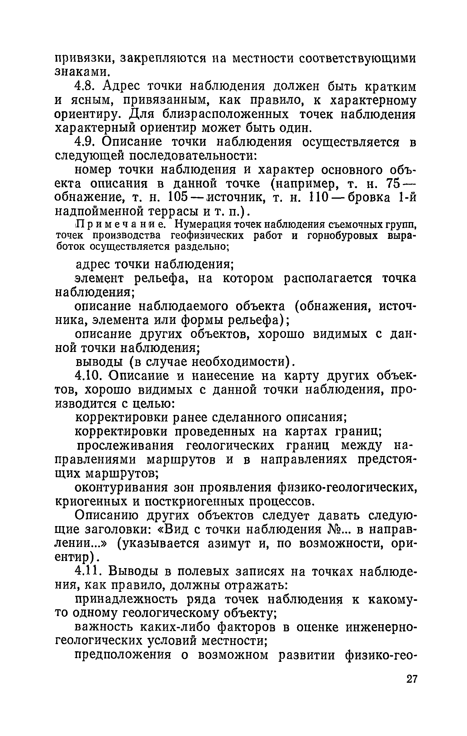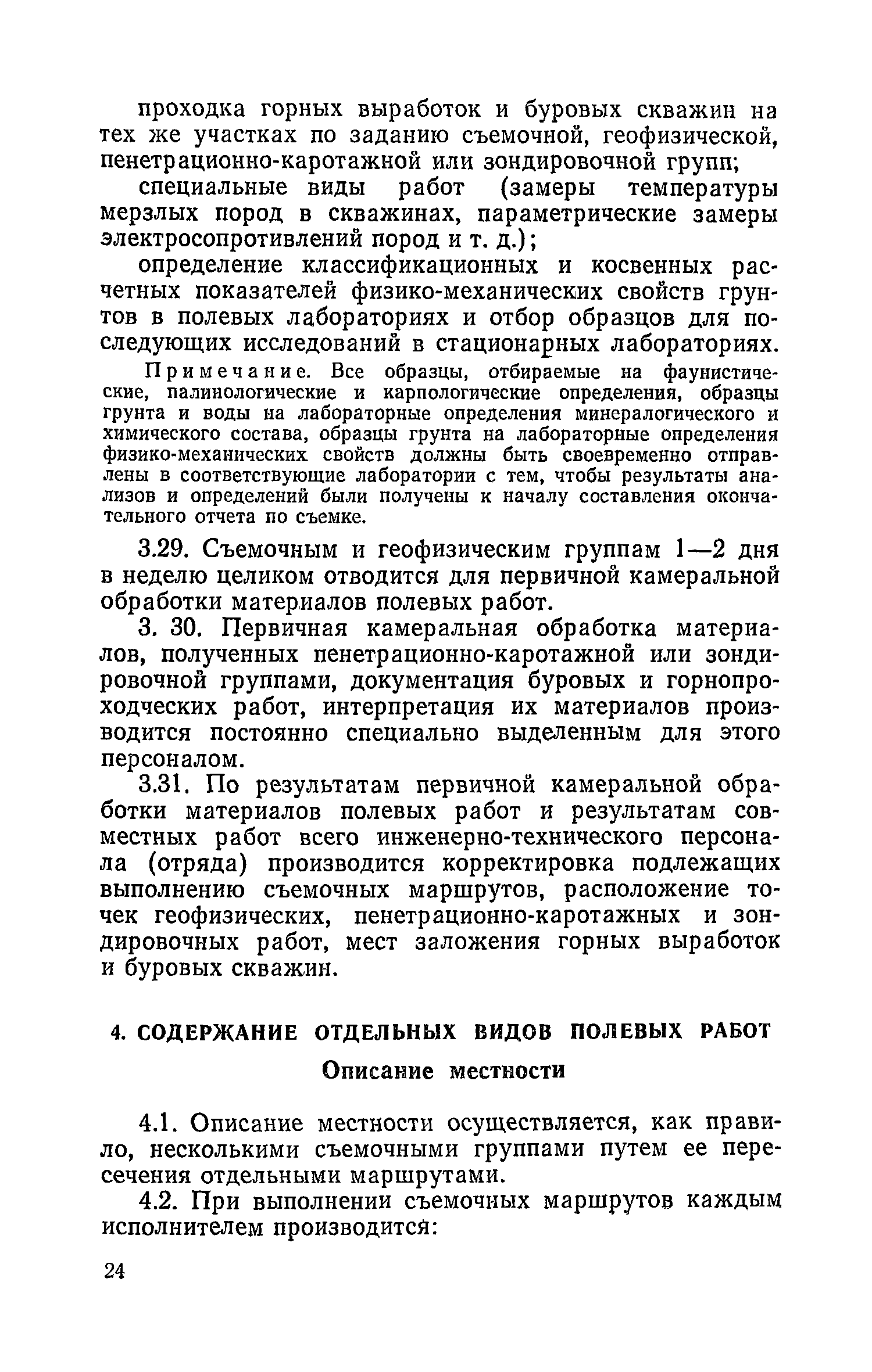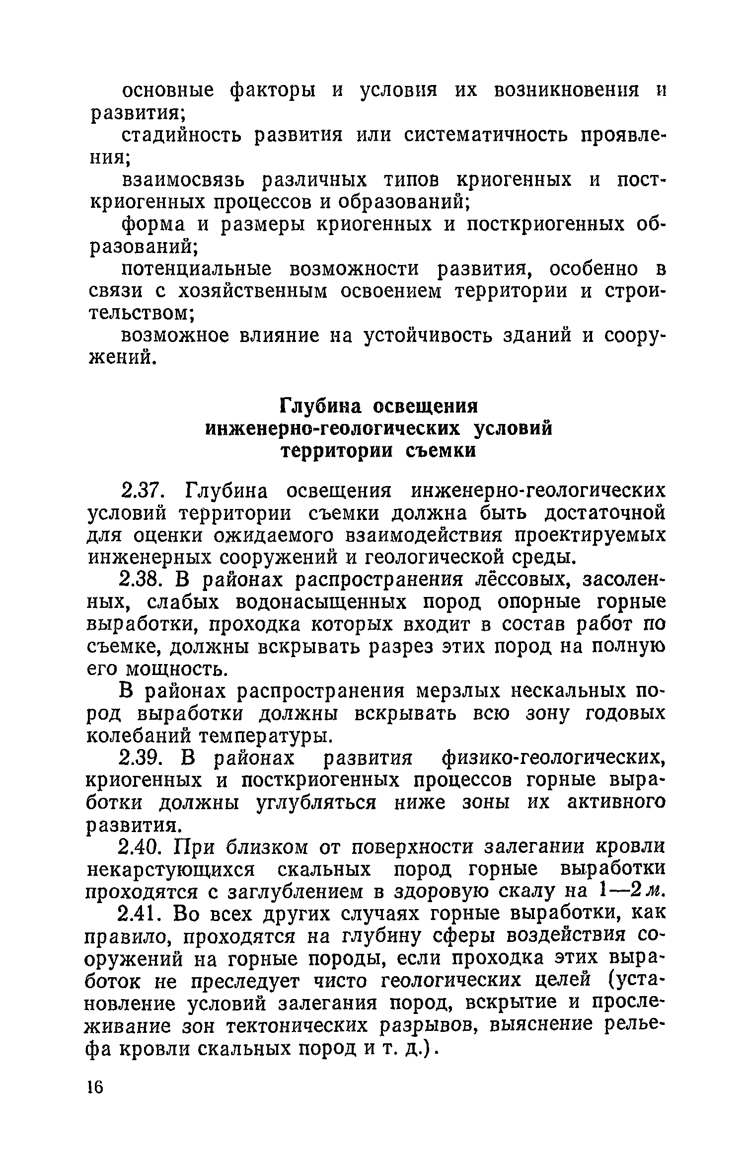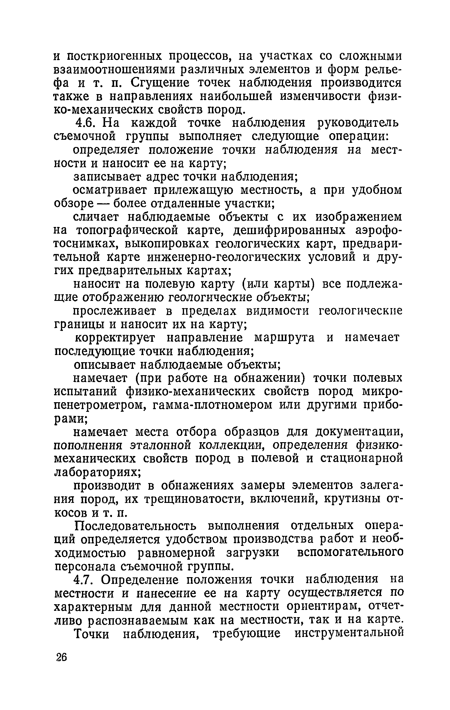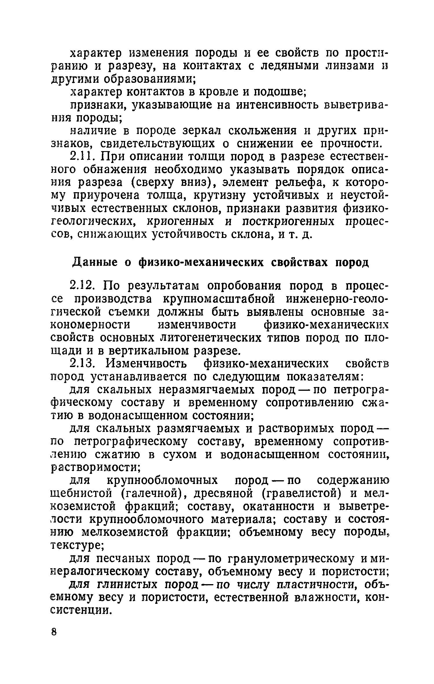 | Оглавление: | 1. Общие положения 2. Содержание крупномасштабной инженерно-геологической съемки Данные о составе, возрасте и генезисе горных пород Данные о физико-механических свойствах пород Данные о подземных водах Данные о тектонике Данные о геоморфологии Данные о физико-геологических процессах и явлениях Глубина освещения инженерно-геологических условий территории съемки 3. Организация и производство крупномасштабной инженерно-геологической съемки 4. Содержание отдельных видов полевых работ Описание местности Геофизические исследования Динамическое и статическое зондирование, пенетрационно-каротажные работы Проходка горных выработок и буровых скважин Гидрогеологические наблюдения и исследования Определение классификационных и косвенных расчетных показателей физико-механических свойств пород Обследование состояния зданий и сооружений 5. Камеральная обработка материалов, составление инженерно-геологических карт и отчета Содержание и оформление основной инженерно-геологической карты Содержание и оформление карты инженерно-геологического районирования Текст отчета (пояснительной записки) Текстовые, табличные и графические приложения Апробация отчета |
