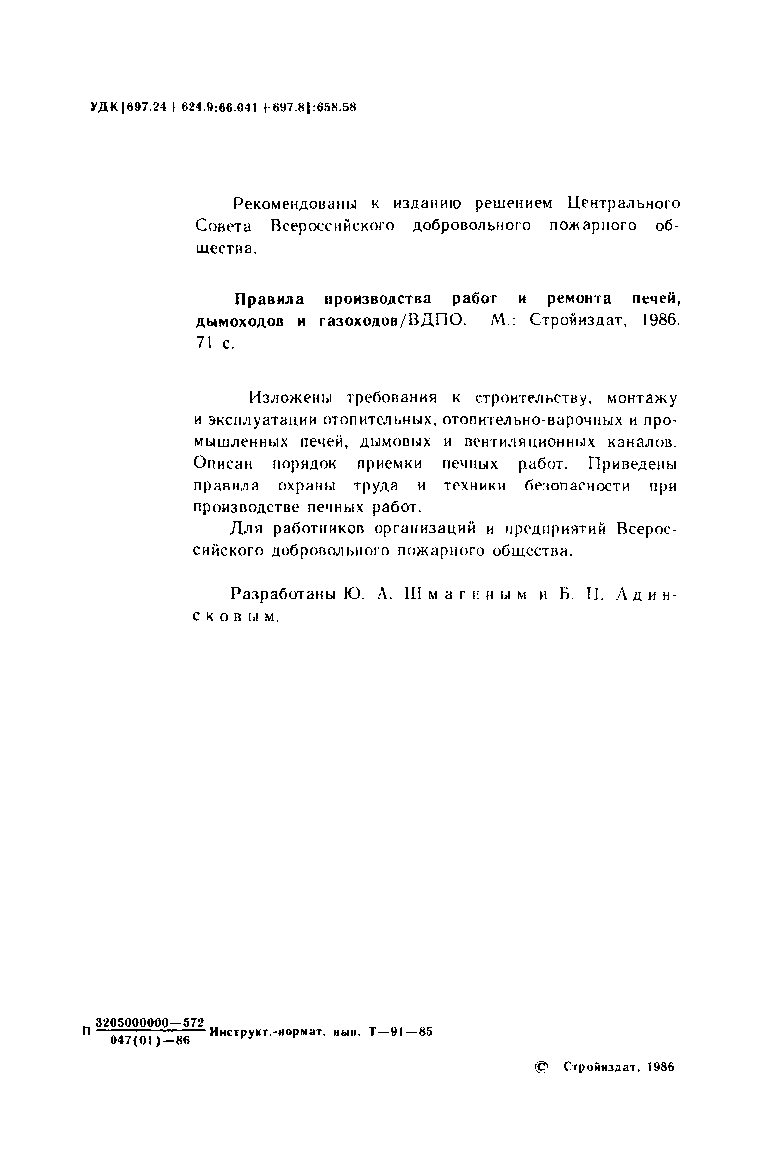 | | Чем заменён: | - «Правила производства работ, ремонта печей и дымовых каналов» (1991 год)