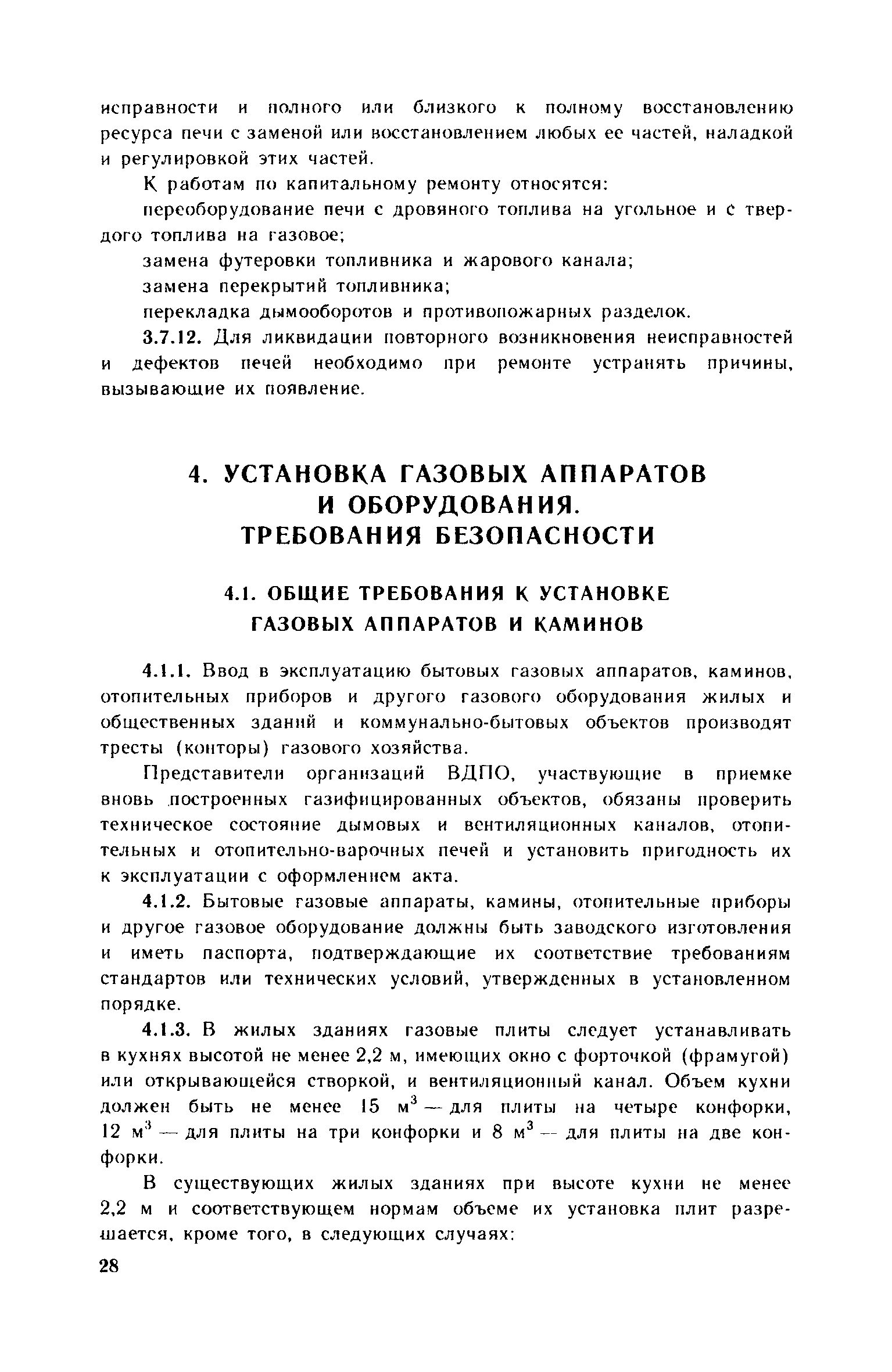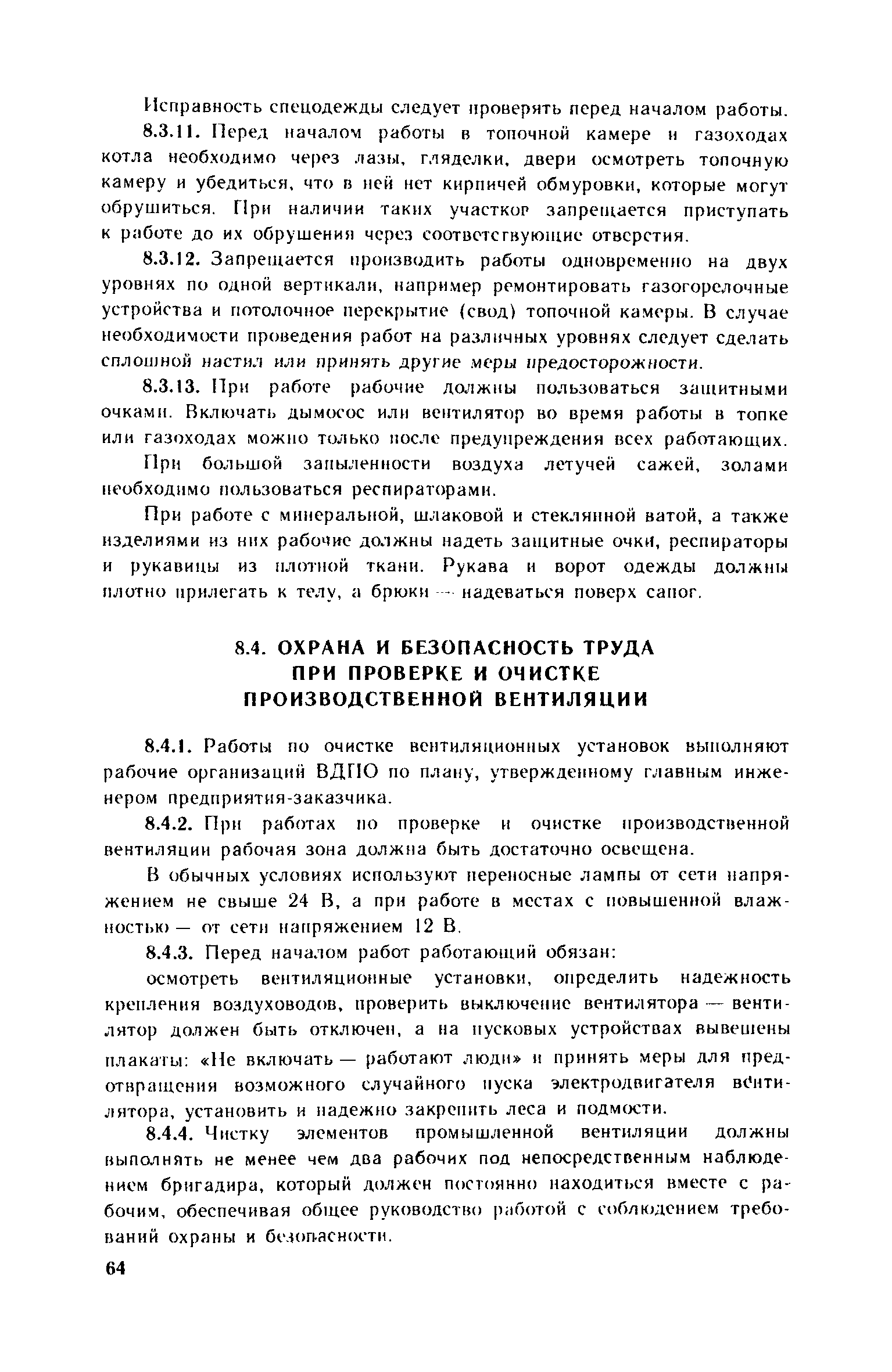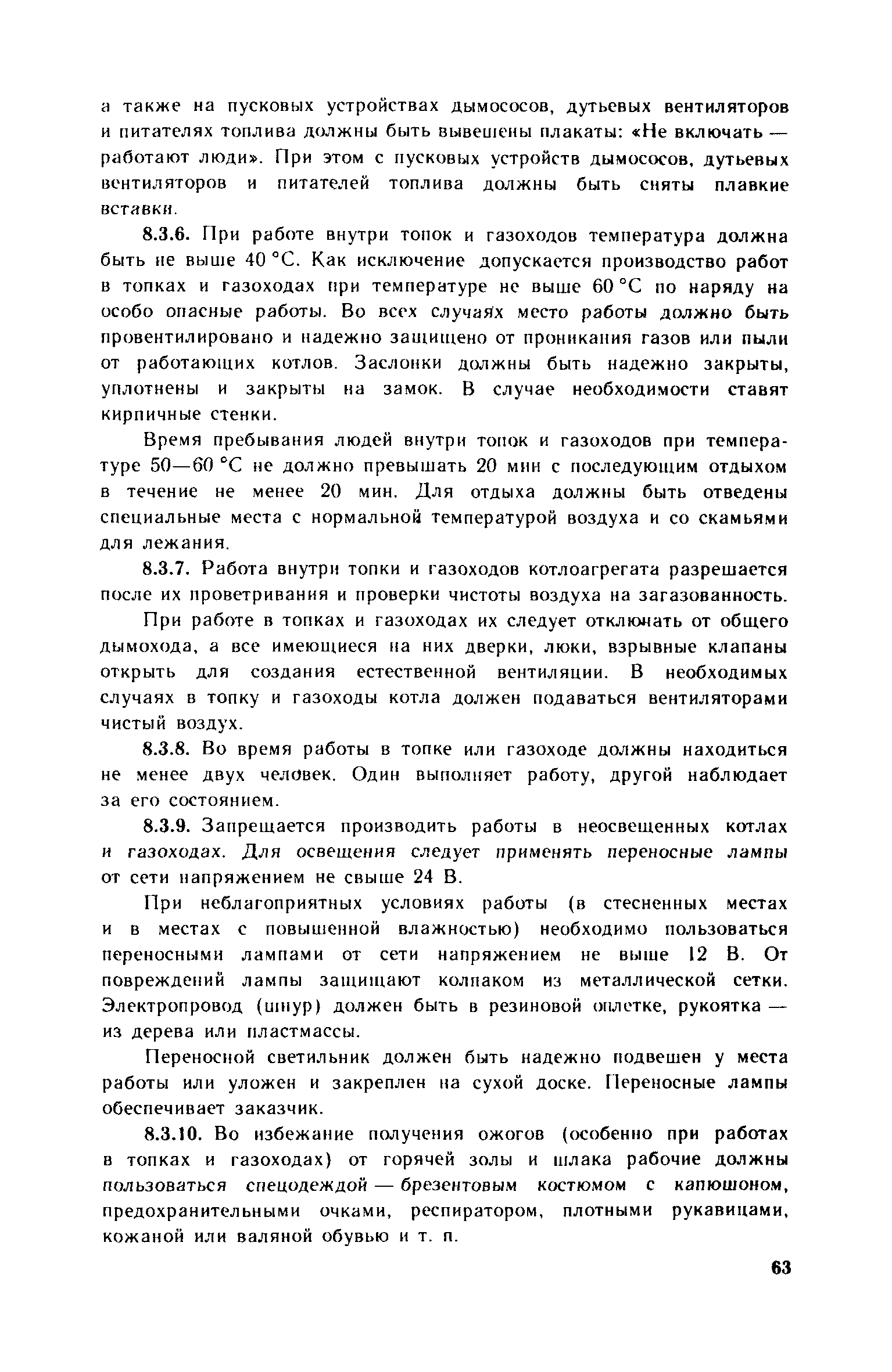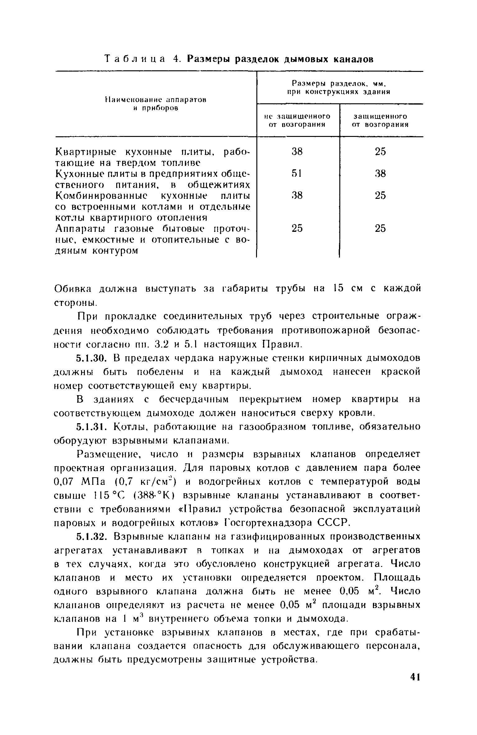 Правила производства работ и ремонта печей, дымоходов и газоходов| Статус: | заменен | | Название рус.: | Правила производства работ и ремонта печей, дымоходов и газоходов | | Дата добавления в базу: | 01.09.2013 | | Дата актуализации: | 01.01.2021 | | Дата окончания срока действия: | 01.07.1991 | | Область применения: | Изложены требования к строительству, монтажу и эксплуатации отопительных, отопительно-варочных и промышленных печей, дымовых вентиляционных каналов. Описан порядок приемки печных работ. Приведены правила охраны труда и техники безопасности при производстве печных работ. Для работников организаций и предприятий Всероссийского добровольного пожарного общества. | | Оглавление: | 1. Общие положения 2. Права, обязанности и взаимоотношения исполнителя работ и заказчика 3. Производство и ремонт печей. Переоборудование печей на газовое топливо 3.1. Основные требования к печному отоплению и печам 3.2. Требования противопожарной безопасности 3.3. Материалы, применяемые при строительстве печей 3.4. Производство печных работ и ремонт печей 3.5. Перевод отопительных и отопительно-варочных печей на газовое топливо 3.6. Приемка печных работ 3.7. Требования к эксплуатации печей 4. Установка газовых аппаратов и оборудования. Требования безопасности 4.1. Общие требования к установке газовых аппаратов и каминов 4.2. Требования к газифицированным котлам, печам и другим устройствам 5. Устройство, проверка, очистка и эксплуатация дымовых и вентиляционных каналов 5.1. Общие требования к устройству дымовых и вентиляционных каналов. Требования к присоединению аппаратов и приборов к каналам 5.2. Проверка и очистка эксплуатируемых дымовых и вентиляционных каналов 5.3. Приемка в эксплуатацию дымовых и вентиляционных каналов после их строительства и капитального ремонта 5.4. Эксплуатация дымовых и вентиляционных каналов 6. Обмуровка, футеровка, проверка и очистка котлов и боровов отопительных котельных 6.1. Обмуровка и футеровка котлов. Строительные материалы, производство работ 6.2. Проверка и очистка котлов и боровов 7. Проверка и очистка производственной вентиляции 8. Охрана и безопасность труда при производстве работ и ремонте печей, дымоходов и газоходов. Обмуровке, футеровке, проверке и очистке котлов и боровов отопительных котельных и производственной вентиляции 8.1. Общие требования по охране и безопасности труда 8.2. Охрана и безопасность труда при производстве работ и ремонте печей, дымоходов и газоходов 8.3. Охрана и безопасность труда при обмуровке, футеровке, проверке, очистке котлов и боровов отопительных котельных 8.4. Охрана и безопасность труда при проверке и очистке производственной вентиляции 8.5. Организация рабочих мест. Требования к лесам и подмостям 8.6. Основные технические данные защитных приборов и приспособлений. Методы их испытаний | | Разработан: | ВДПО