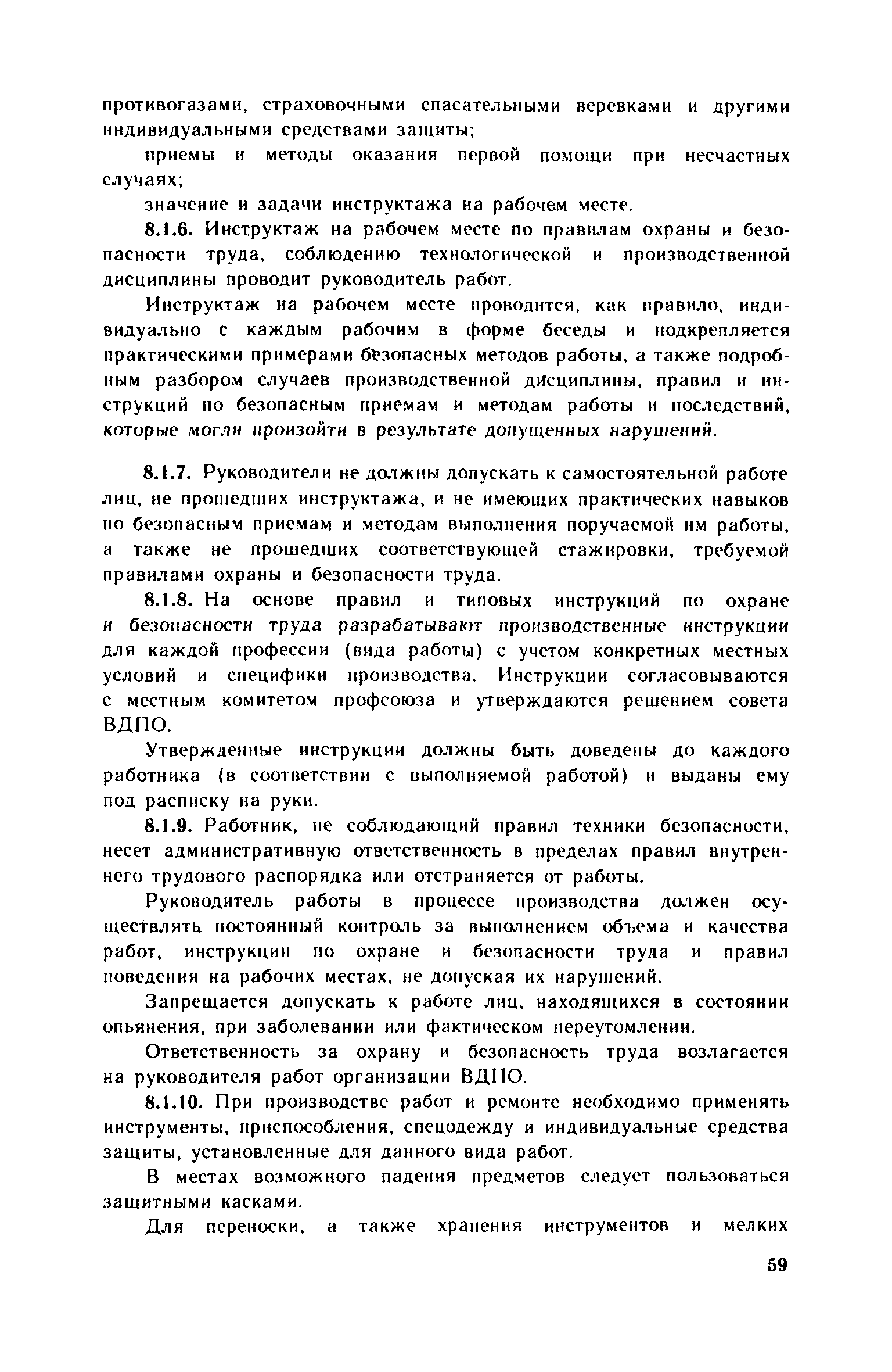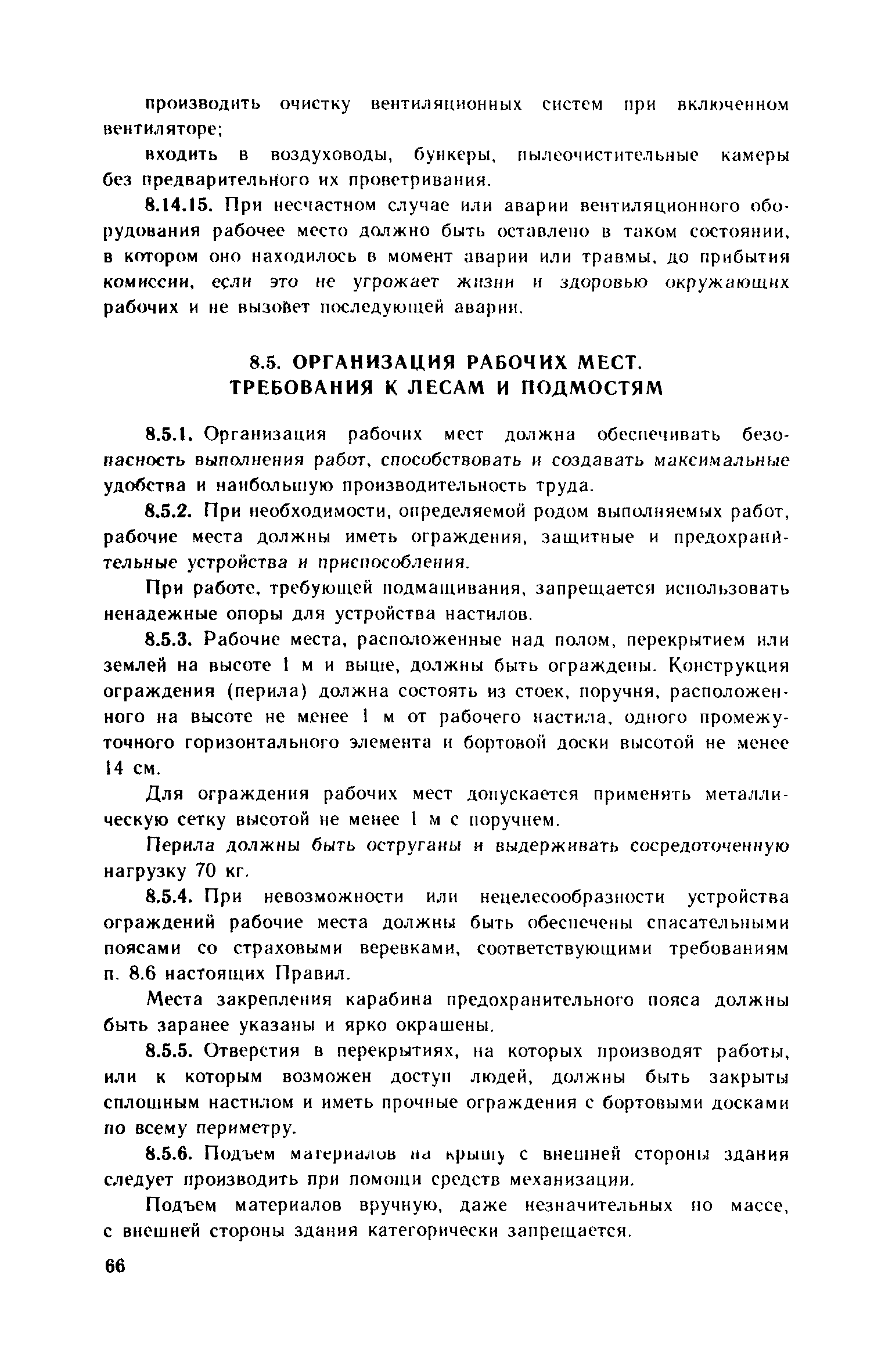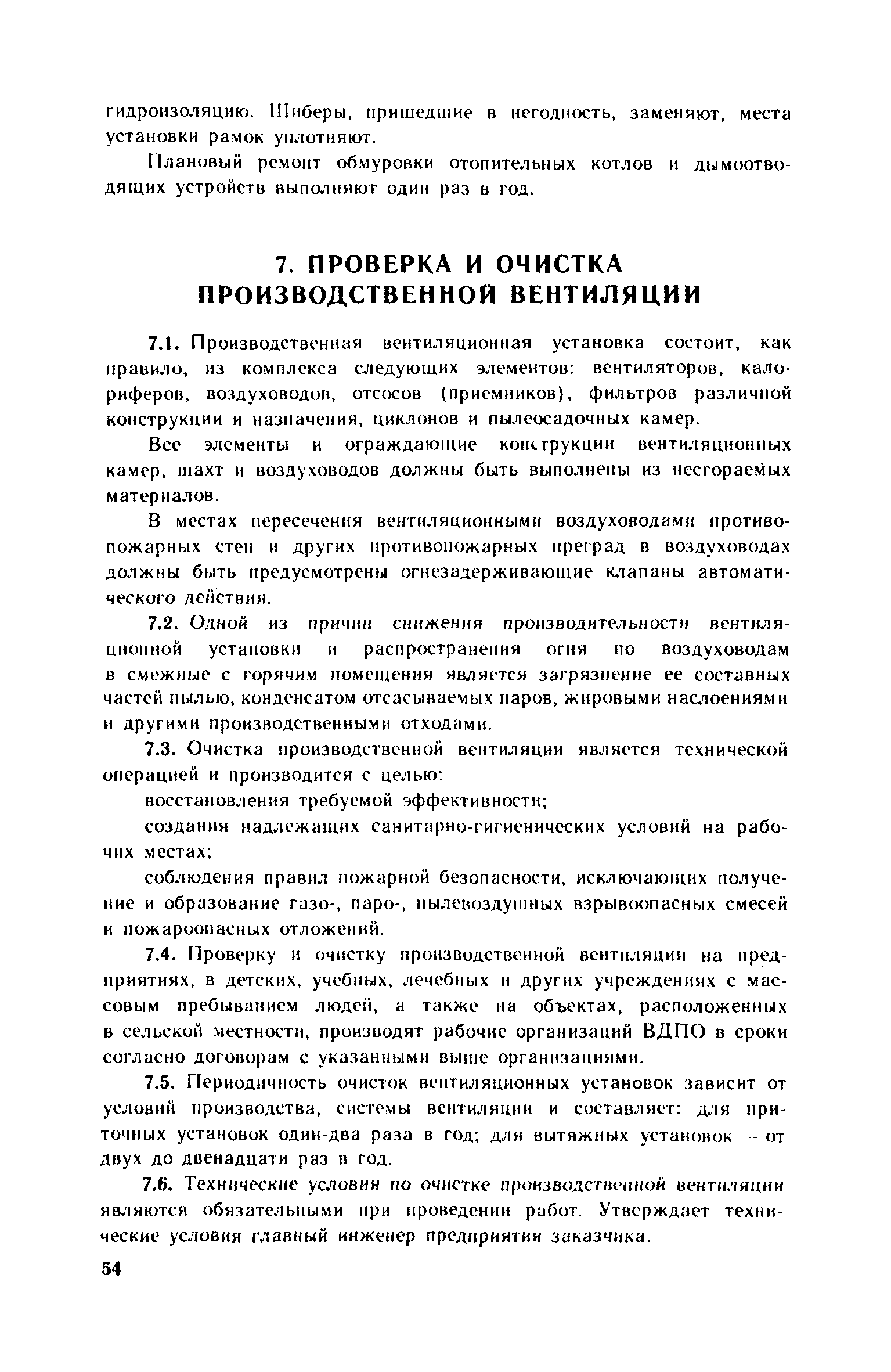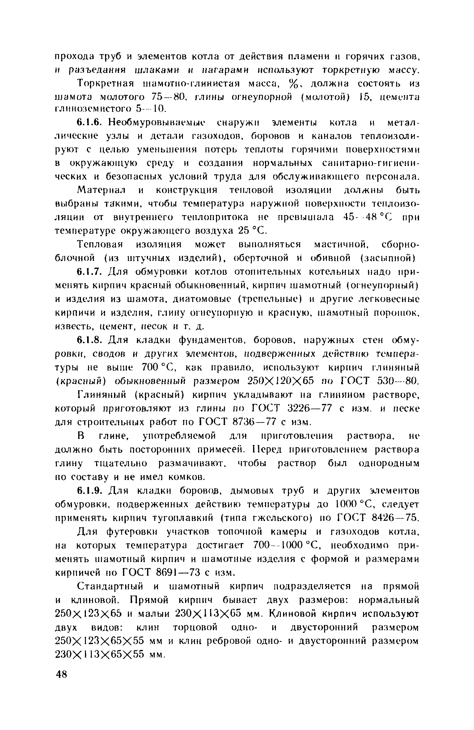Правила производства работ и ремонта печей, дымоходов и газоходов| Статус: | заменен | | Название рус.: | Правила производства работ и ремонта печей, дымоходов и газоходов | | Дата добавления в базу: | 01.09.2013 | | Дата актуализации: | 01.01.2021 | | Дата окончания срока действия: | 01.07.1991 | | Область применения: | Изложены требования к строительству, монтажу и эксплуатации отопительных, отопительно-варочных и промышленных печей, дымовых вентиляционных каналов. Описан порядок приемки печных работ. Приведены правила охраны труда и техники безопасности при производстве печных работ. Для работников организаций и предприятий Всероссийского добровольного пожарного общества. | | Оглавление: | 1. Общие положения 2. Права, обязанности и взаимоотношения исполнителя работ и заказчика 3. Производство и ремонт печей. Переоборудование печей на газовое топливо 3.1. Основные требования к печному отоплению и печам 3.2. Требования противопожарной безопасности 3.3. Материалы, применяемые при строительстве печей 3.4. Производство печных работ и ремонт печей 3.5. Перевод отопительных и отопительно-варочных печей на газовое топливо 3.6. Приемка печных работ 3.7. Требования к эксплуатации печей 4. Установка газовых аппаратов и оборудования. Требования безопасности 4.1. Общие требования к установке газовых аппаратов и каминов 4.2. Требования к газифицированным котлам, печам и другим устройствам 5. Устройство, проверка, очистка и эксплуатация дымовых и вентиляционных каналов 5.1. Общие требования к устройству дымовых и вентиляционных каналов. Требования к присоединению аппаратов и приборов к каналам 5.2. Проверка и очистка эксплуатируемых дымовых и вентиляционных каналов 5.3. Приемка в эксплуатацию дымовых и вентиляционных каналов после их строительства и капитального ремонта 5.4. Эксплуатация дымовых и вентиляционных каналов 6. Обмуровка, футеровка, проверка и очистка котлов и боровов отопительных котельных 6.1. Обмуровка и футеровка котлов. Строительные материалы, производство работ 6.2. Проверка и очистка котлов и боровов 7. Проверка и очистка производственной вентиляции 8. Охрана и безопасность труда при производстве работ и ремонте печей, дымоходов и газоходов. Обмуровке, футеровке, проверке и очистке котлов и боровов отопительных котельных и производственной вентиляции 8.1. Общие требования по охране и безопасности труда 8.2. Охрана и безопасность труда при производстве работ и ремонте печей, дымоходов и газоходов 8.3. Охрана и безопасность труда при обмуровке, футеровке, проверке, очистке котлов и боровов отопительных котельных 8.4. Охрана и безопасность труда при проверке и очистке производственной вентиляции 8.5. Организация рабочих мест. Требования к лесам и подмостям 8.6. Основные технические данные защитных приборов и приспособлений. Методы их испытаний | | Разработан: | ВДПО