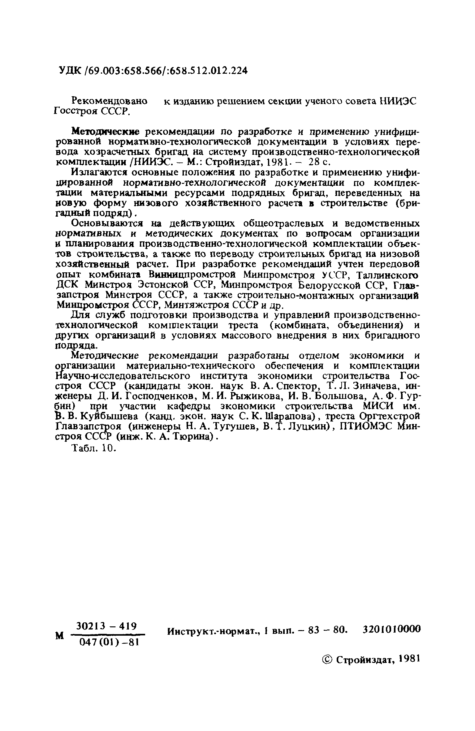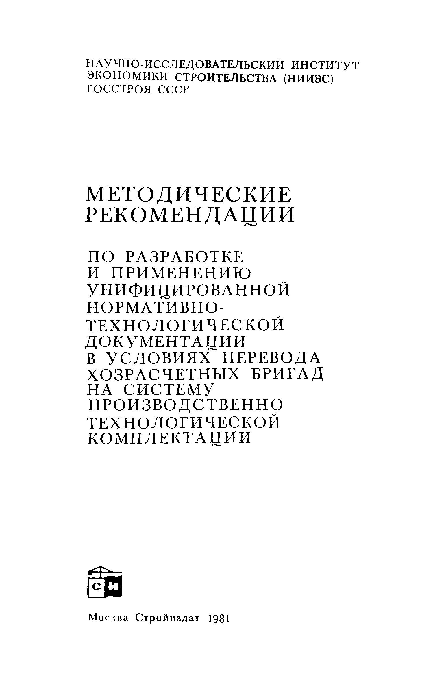 | Название рус.: | Методические рекомендации по разработке и применению унифицированной нормативно-технологической документации в условиях перевода хозрасчетных бригад на систему производственно-технологической комплектации |