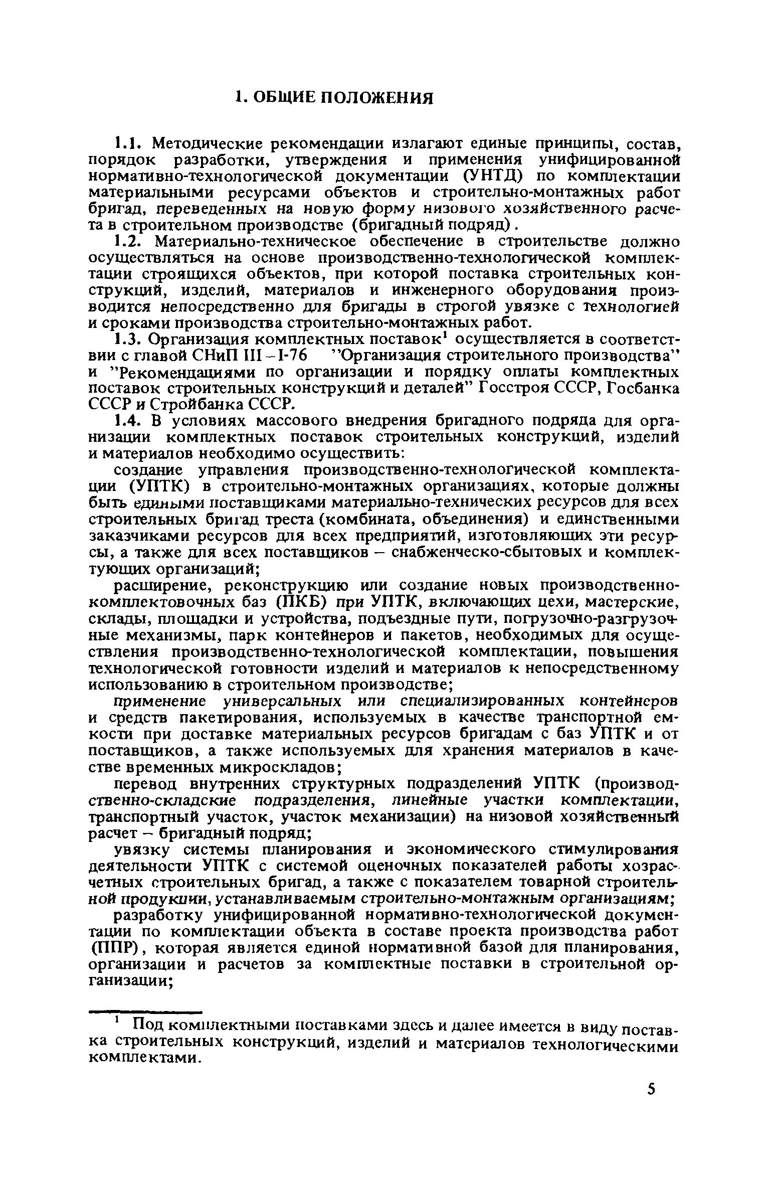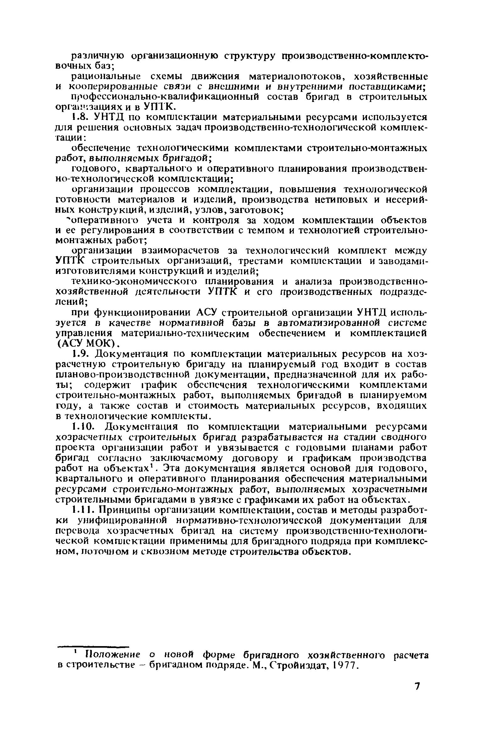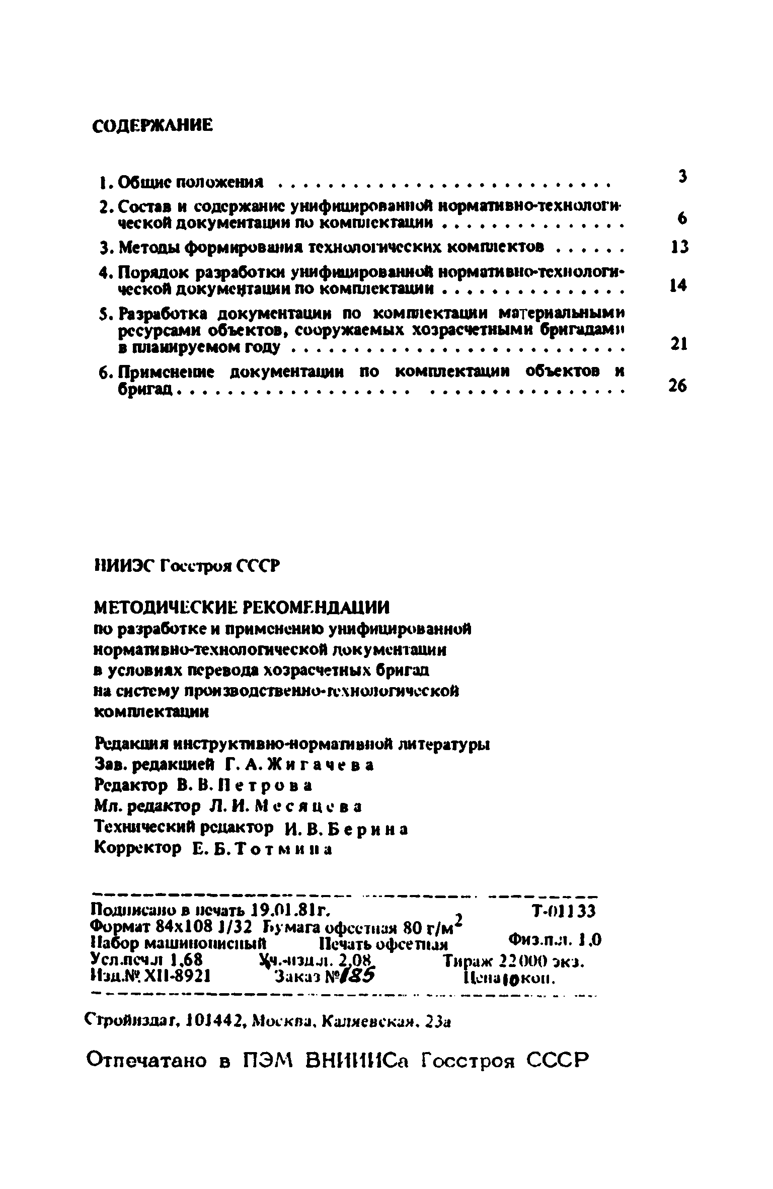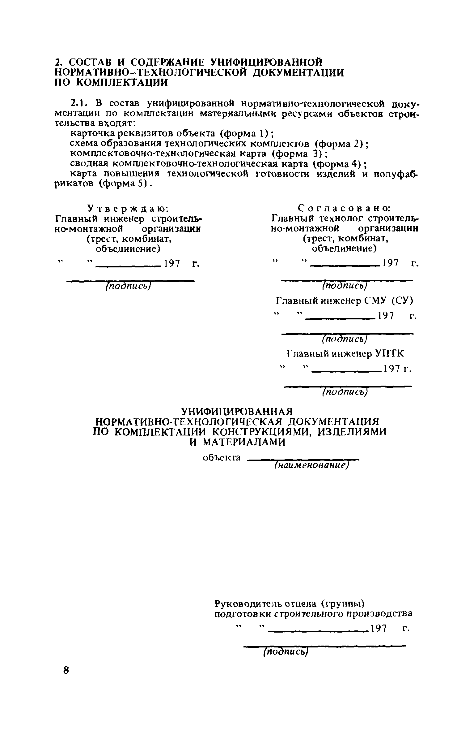 | Оглавление: | 1. Общие положения 2. Состав и содержание унифицированной нормативно-технологической документации по комплектации 3. Методы формирования технологических комплектов 4. Порядок разработки унифицированной нормативно-технологической документации по комплектации 5. Разработка документации по комплектации материальными ресурсами объектов, сооружаемых хозрасчетными бригадами в планируемом году 6. Применение документации по комплектации объектов и бригад |