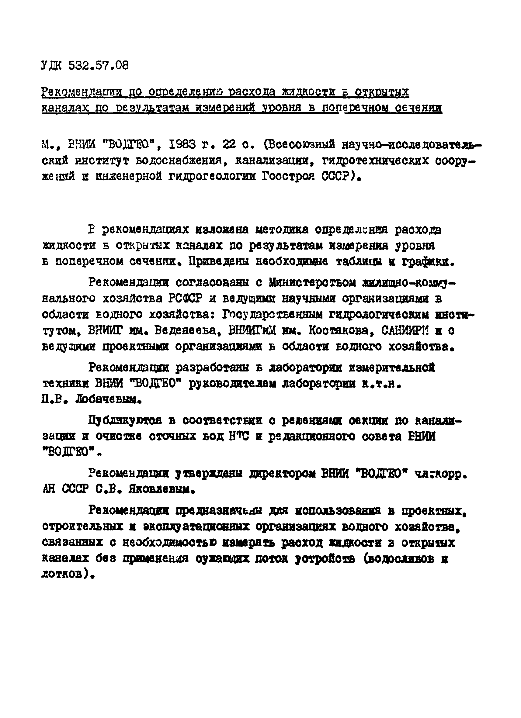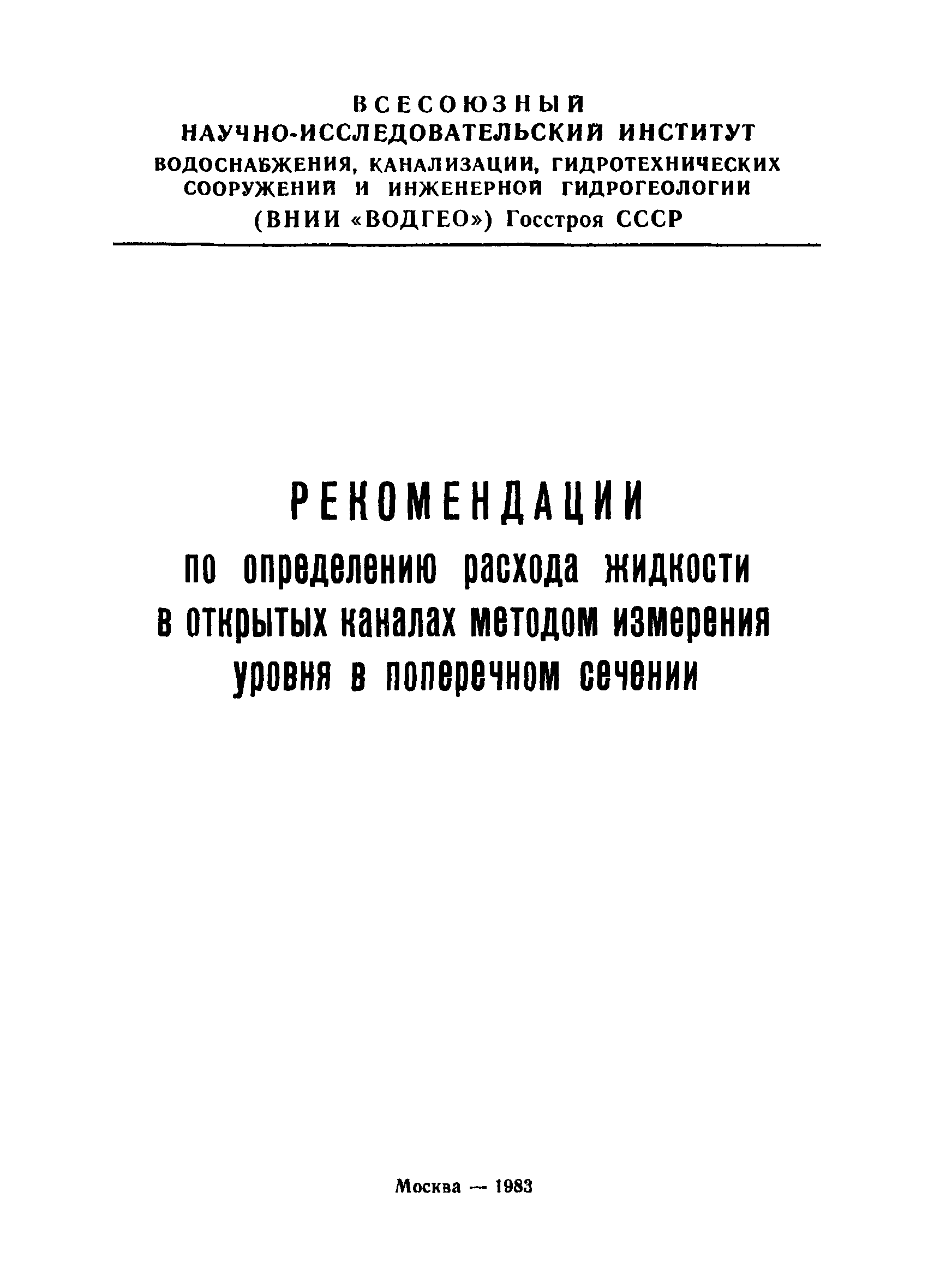 | Утверждён: | 10.12.1982 ВНИИ ВОДГЕО Госстроя СССР (VNII VODGEO, USSR Gosstroy )