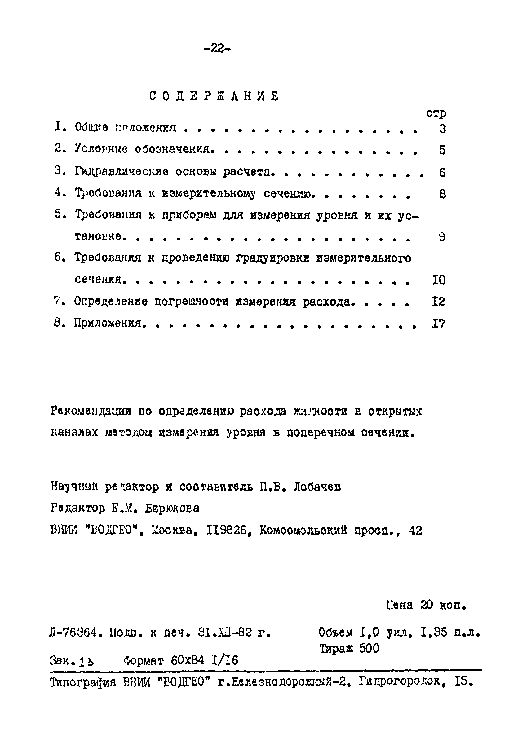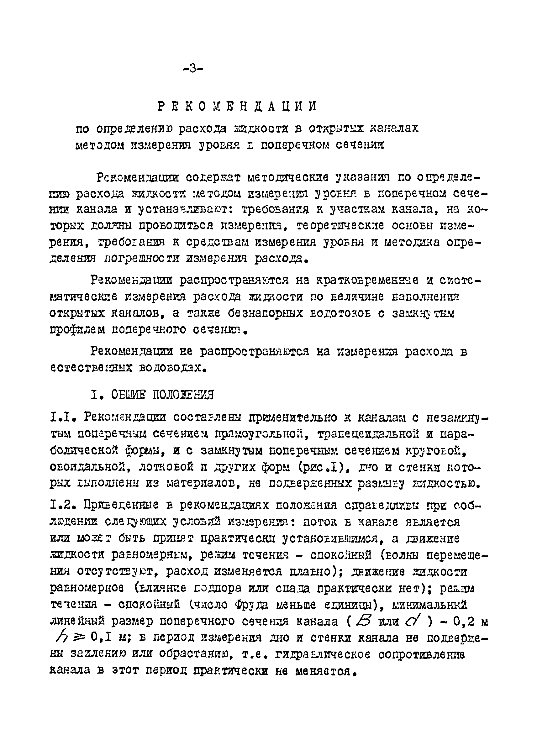 | Оглавление: | 1. Общие положения 2. Условные обозначения 3. Гидравлические основы расчета 4. Требования к измерительному сечению 5. Требования к приборам для измерения уровня и их установке 6. Требования к проведению градуировке измерительного сечения 7. Определение погрешности измерения расхода 8. Приложения |