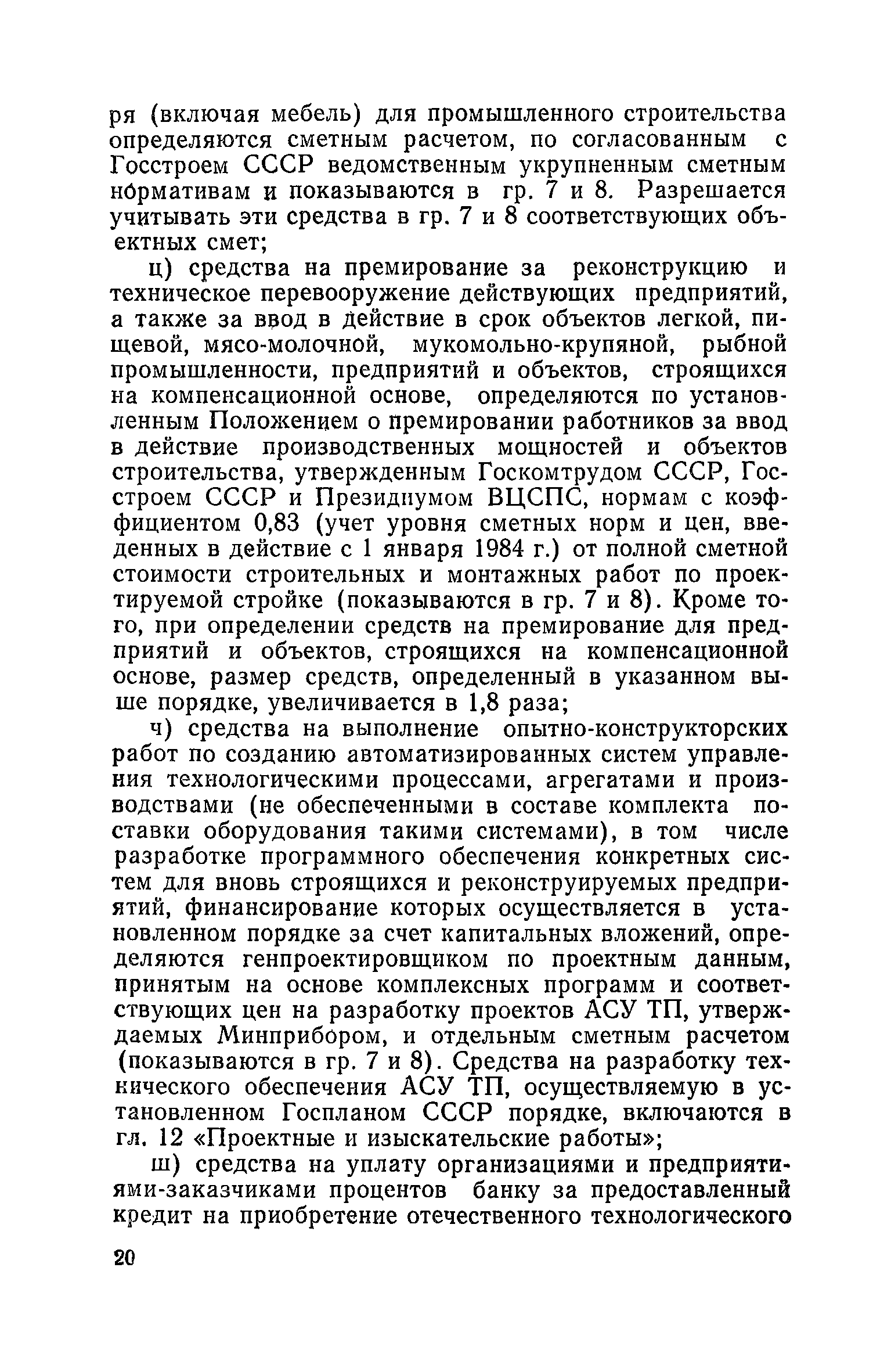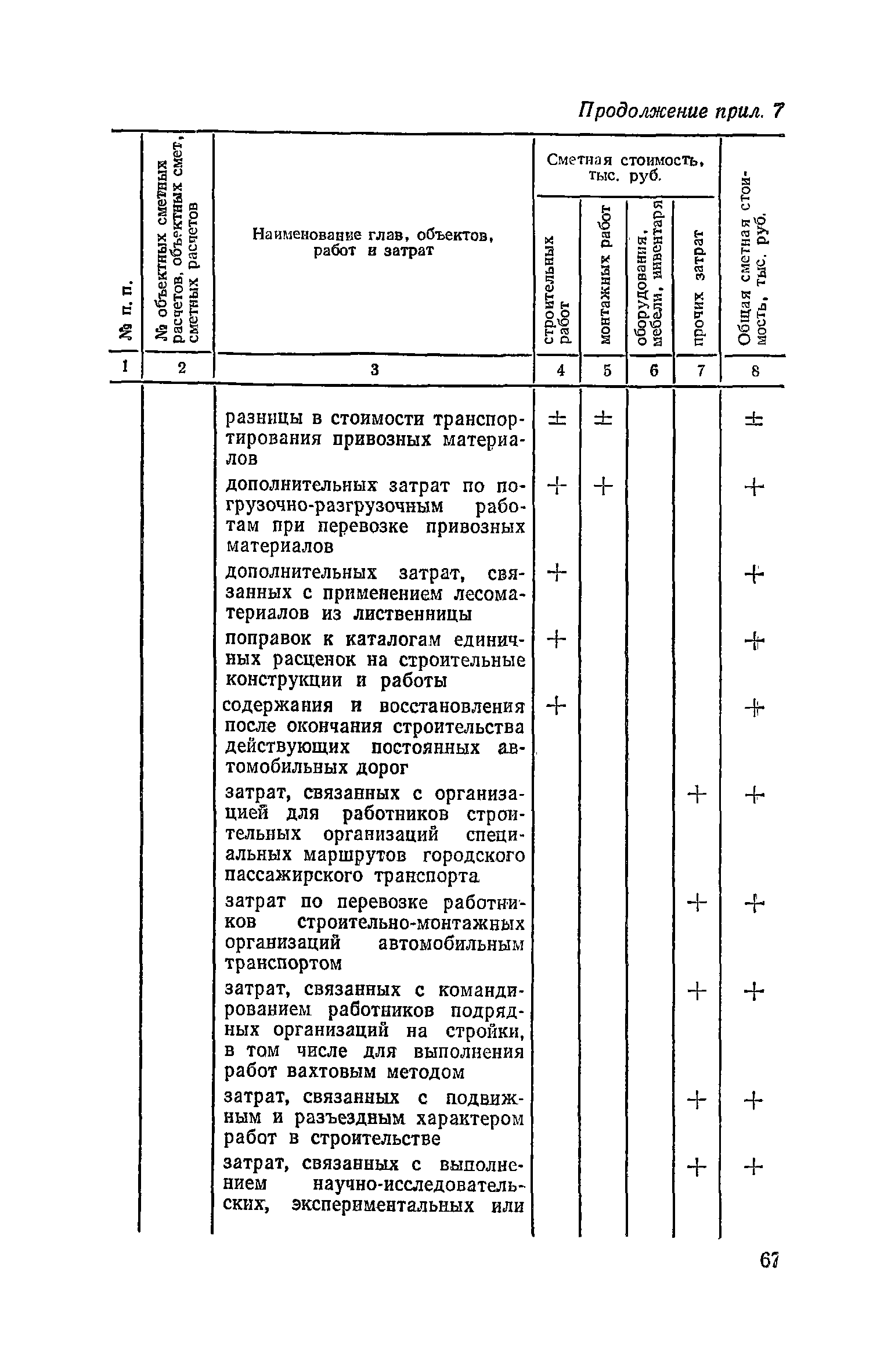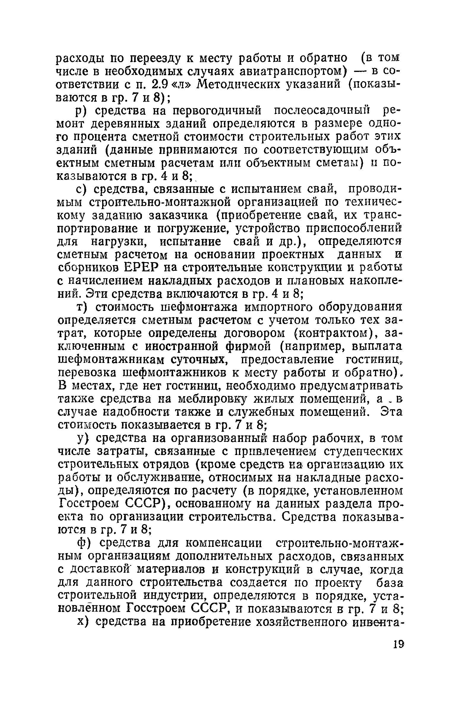 Методические указания по определению стоимости строительства предприятий, зданий и сооружений и составлению сводных сметных расчетов и смет| Статус: | заменен | | Название рус.: | Методические указания по определению стоимости строительства предприятий, зданий и сооружений и составлению сводных сметных расчетов и смет | | Дата добавления в базу: | 01.09.2013 | | Дата актуализации: | 01.01.2021 | | Дата введения: | 01.07.1984 | | Дата окончания срока действия: | 01.04.1994 | | Область применения: | Документ содержит положения, которыми следует руководствоваться при определении стоимости строительства предприятий, зданий, сооружений и составлении сводных сметных расчетов, объектных и локальных смет и сметных расчетов в нормах и ценах, введенных в действие с 1 января 1984 г. Изложен порядок учета изменения ценообразующих факторов для производственного строительства. | | Оглавление: | 1. Общие положения 2. Составление сметной документации Сводный сметный расчет стоимости строительства Сводка затрат Объектные сметы Локальные сметы Объектные и локальные сметные расчеты 3. Ведомость сметной стоимости строительства объектов, входящих в пусковой комплекс 4. Ведомость сметной стоимости товарной строительной продукции 5. Расчет стоимости строительства 6. Контроль за сметной стоимостью в строительстве Приложение 1. Индивидуальная единичная расценка (форма №10) Приложение 2. Индивидуальная расценка на монтаж оборудования (форма №11) Приложение 3. Каталог единичных расценок (форма №12) Приложение 4. Калькуляция стоимости материалов, конструкций и изделий (форма №13) Приложение 5. Калькуляция транспортных расходов на 1 т (форма №14) Приложение 6. Указания по заполнению форм сметной документации Приложение 7. Примерная номенклатура сводного сметного расчета стоимости строительства | | Разработан: | ЦНИИЭП жилища