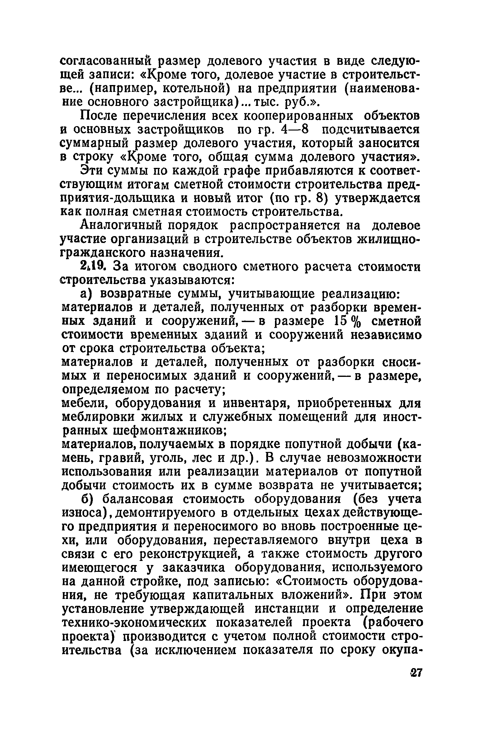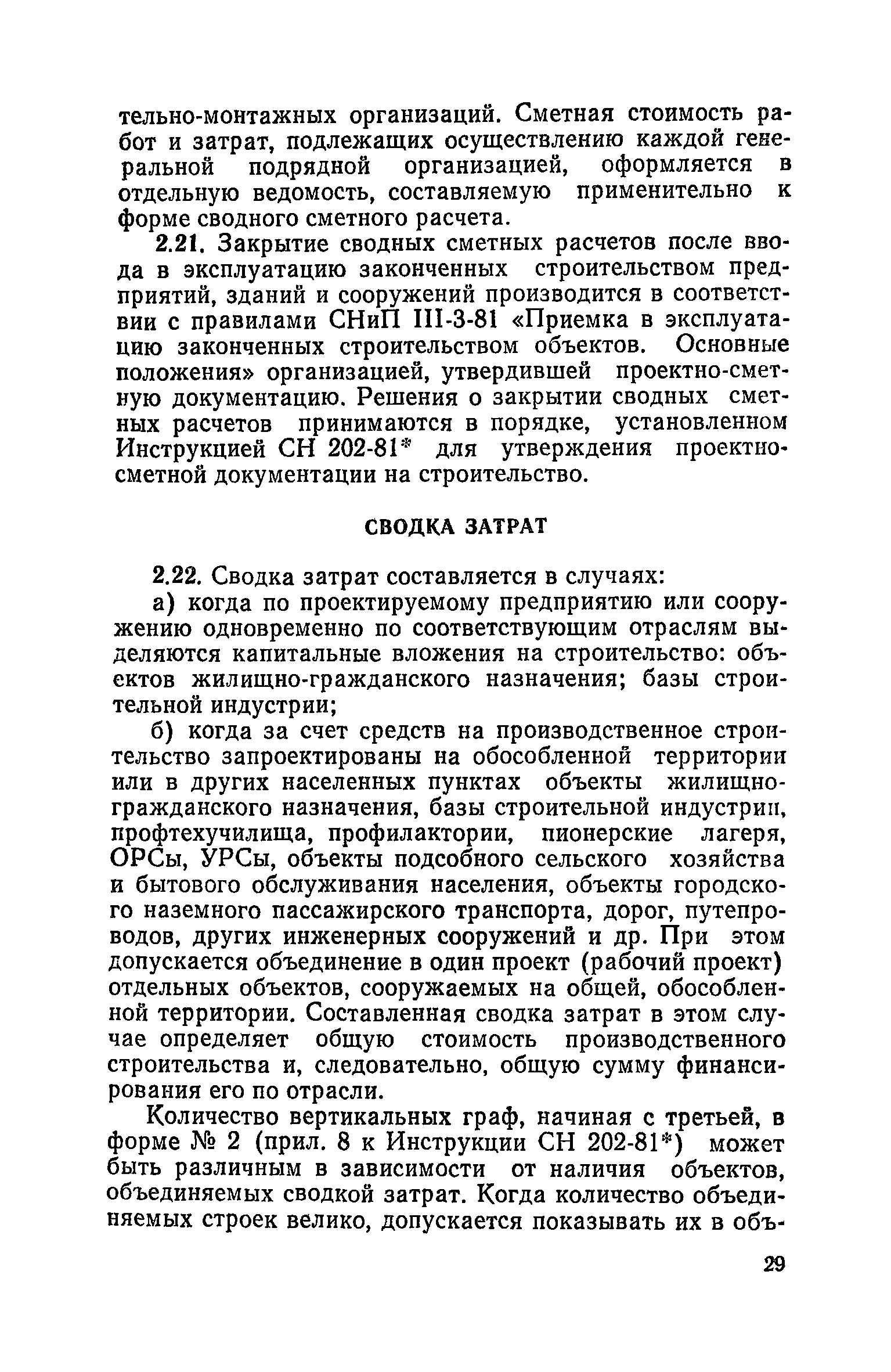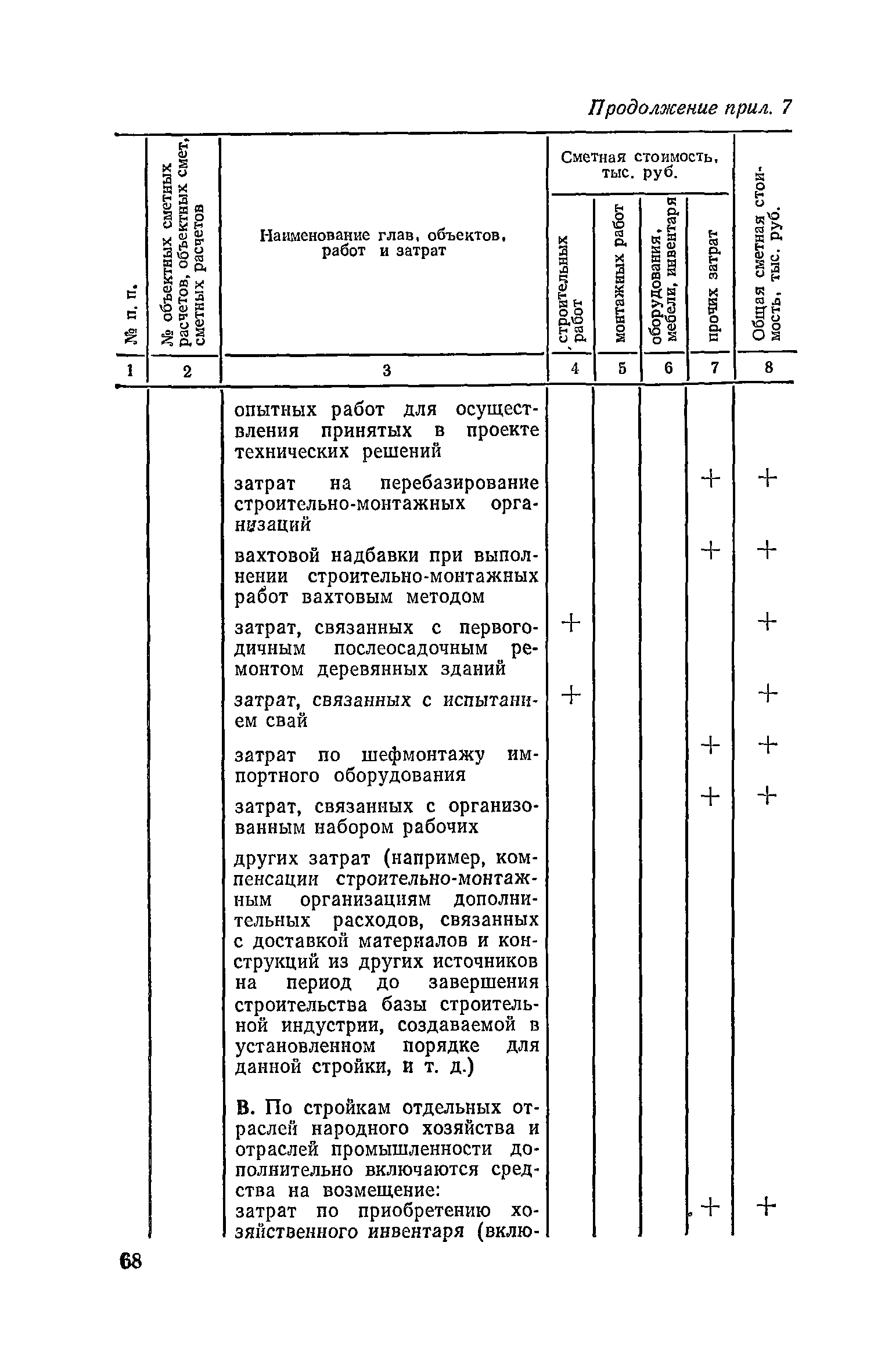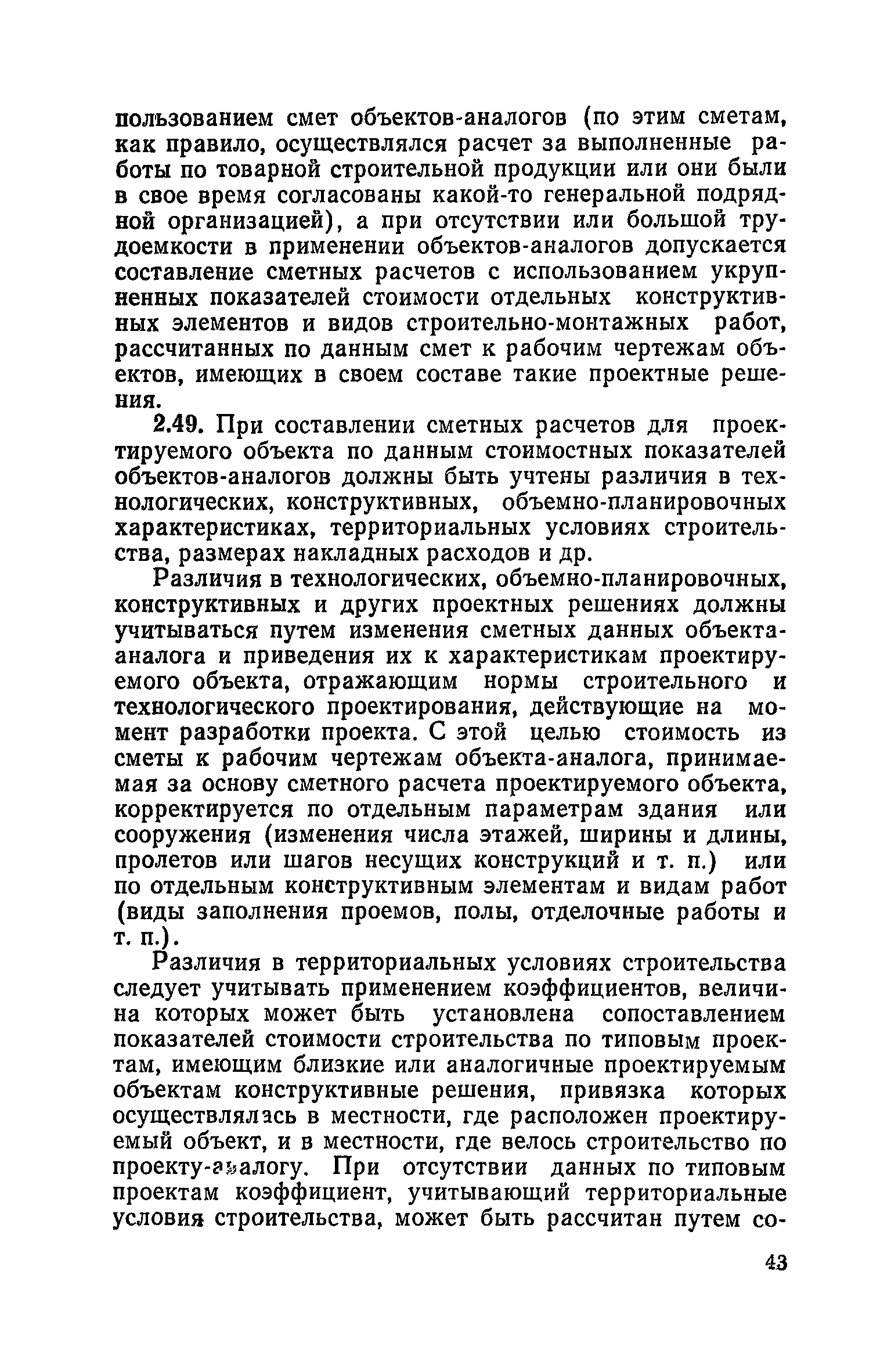 Методические указания по определению стоимости строительства предприятий, зданий и сооружений и составлению сводных сметных расчетов и смет| Статус: | заменен | | Название рус.: | Методические указания по определению стоимости строительства предприятий, зданий и сооружений и составлению сводных сметных расчетов и смет | | Дата добавления в базу: | 01.09.2013 | | Дата актуализации: | 01.01.2021 | | Дата введения: | 01.07.1984 | | Дата окончания срока действия: | 01.04.1994 | | Область применения: | Документ содержит положения, которыми следует руководствоваться при определении стоимости строительства предприятий, зданий, сооружений и составлении сводных сметных расчетов, объектных и локальных смет и сметных расчетов в нормах и ценах, введенных в действие с 1 января 1984 г. Изложен порядок учета изменения ценообразующих факторов для производственного строительства. | | Оглавление: | 1. Общие положения 2. Составление сметной документации Сводный сметный расчет стоимости строительства Сводка затрат Объектные сметы Локальные сметы Объектные и локальные сметные расчеты 3. Ведомость сметной стоимости строительства объектов, входящих в пусковой комплекс 4. Ведомость сметной стоимости товарной строительной продукции 5. Расчет стоимости строительства 6. Контроль за сметной стоимостью в строительстве Приложение 1. Индивидуальная единичная расценка (форма №10) Приложение 2. Индивидуальная расценка на монтаж оборудования (форма №11) Приложение 3. Каталог единичных расценок (форма №12) Приложение 4. Калькуляция стоимости материалов, конструкций и изделий (форма №13) Приложение 5. Калькуляция транспортных расходов на 1 т (форма №14) Приложение 6. Указания по заполнению форм сметной документации Приложение 7. Примерная номенклатура сводного сметного расчета стоимости строительства | | Разработан: | ЦНИИЭП жилища