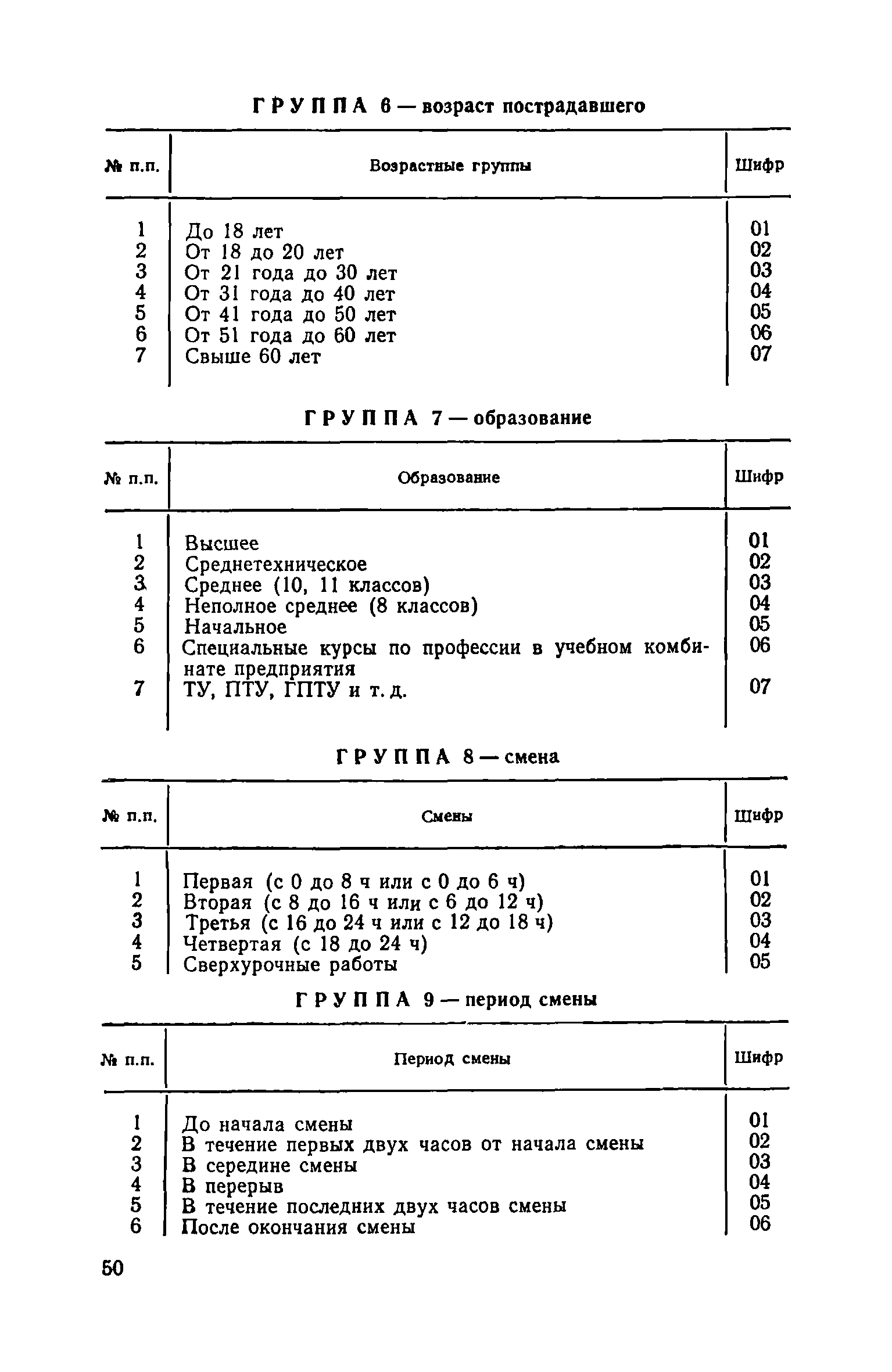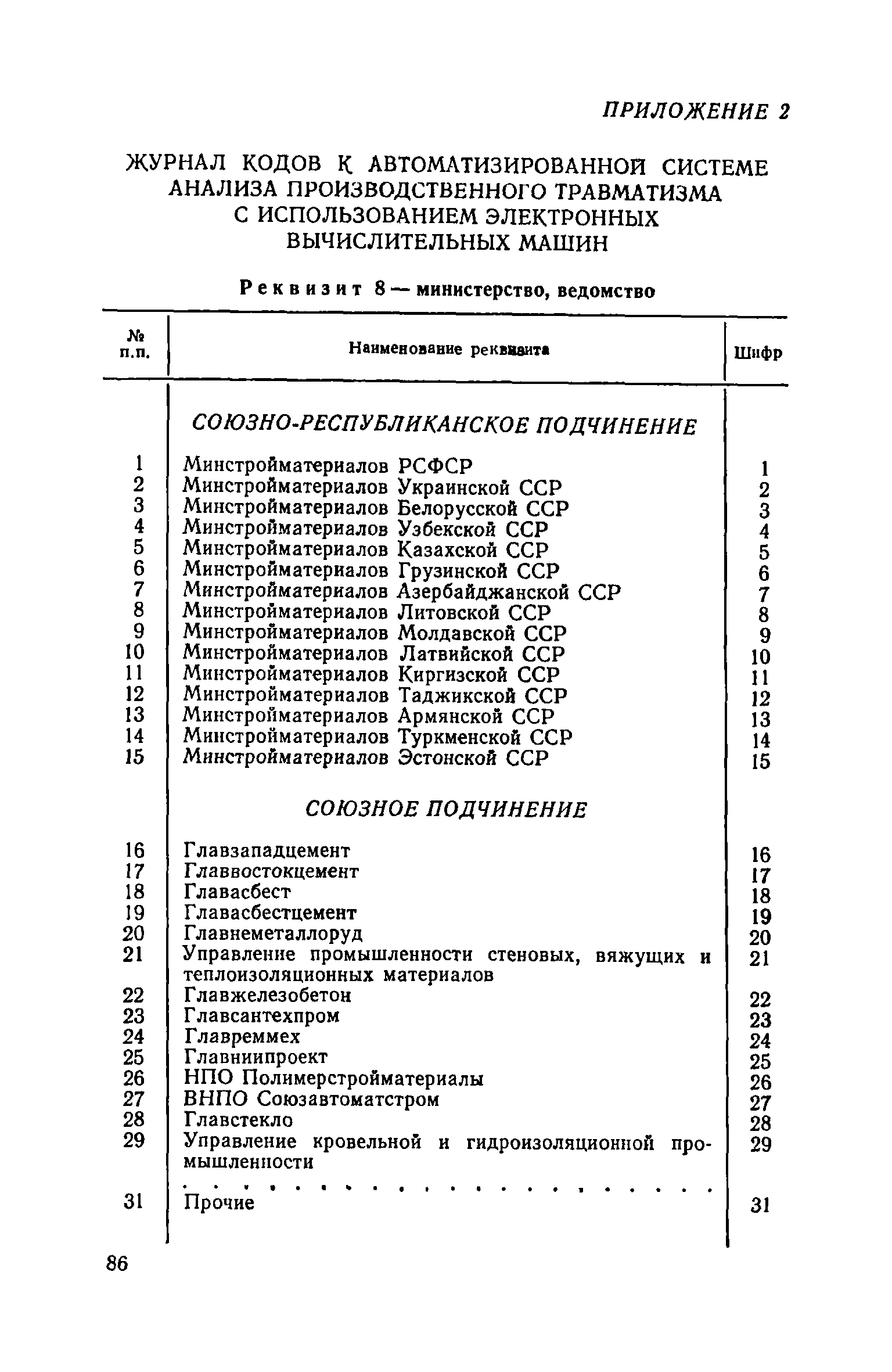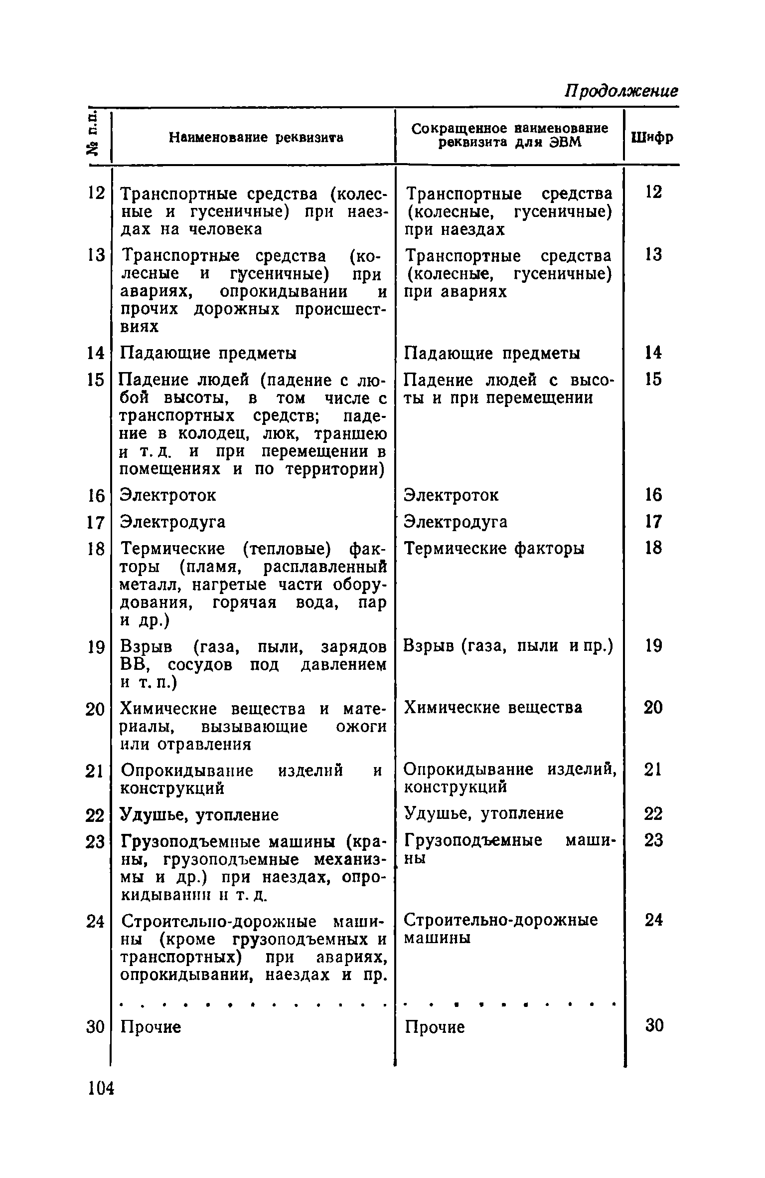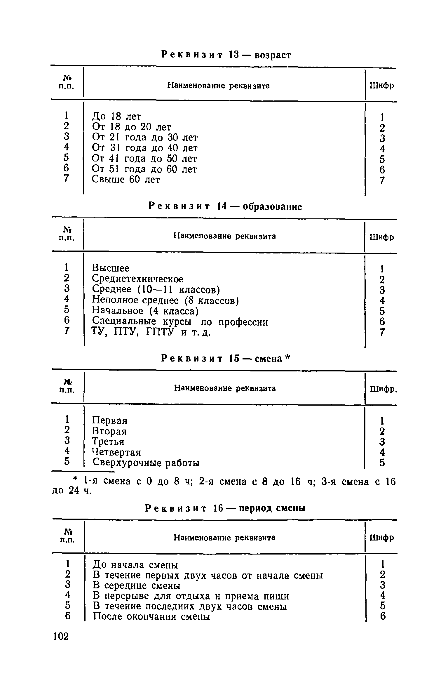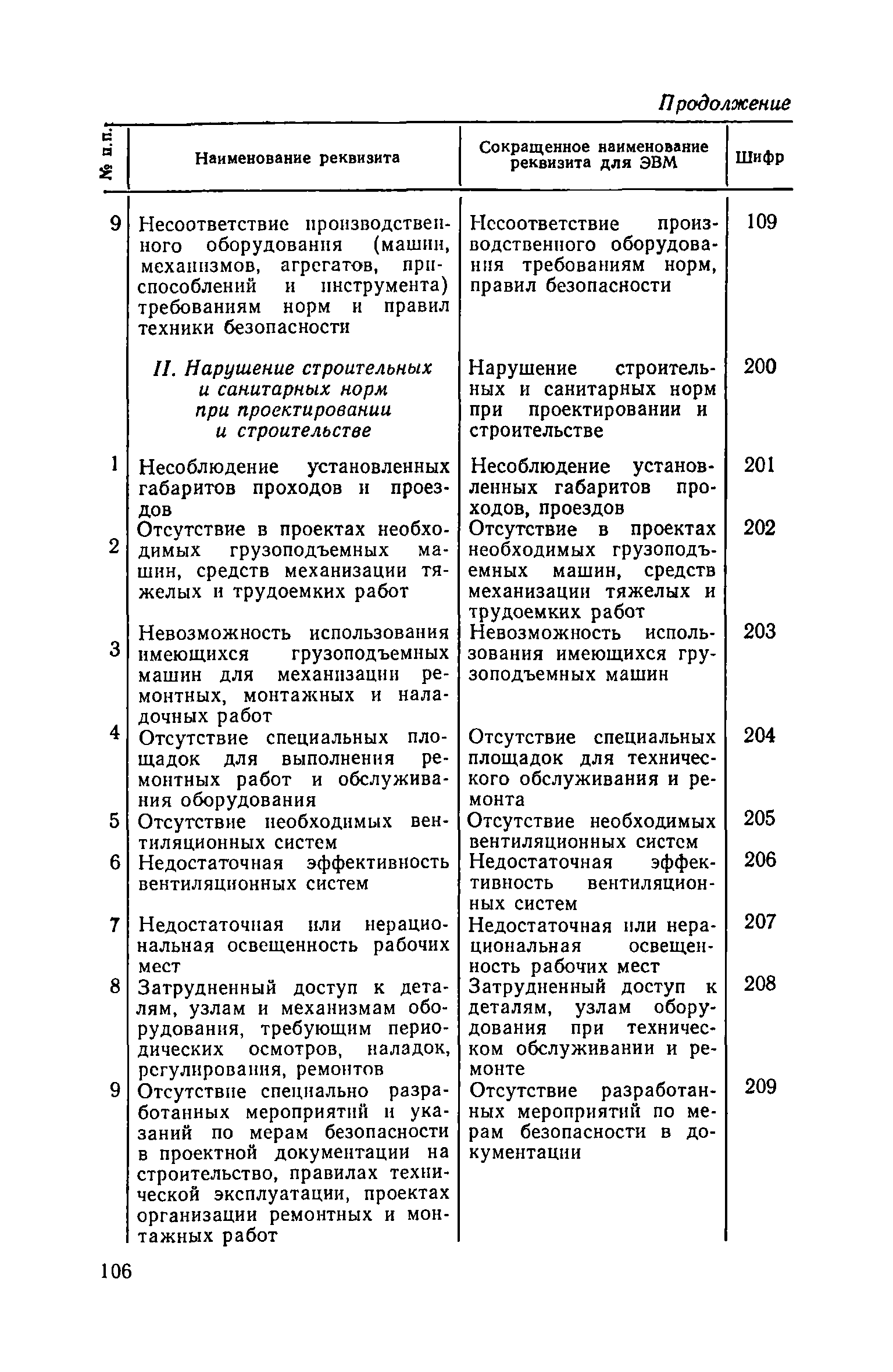 | Оглавление: | Введение 1. Перфокартная информационно-поисковая система анализа производственного травматизма Описание перфокартной системы Способ кодирования перфокарт Пояснения к отдельным поисковым признакам Порядок отбора информации о несчастных случаях на перфокартах Обработка и анализ информации 2. Автоматизированная система анализа производственного травматизма с использованием электронных вычислительных машин (АСАПТ-ЭВМ) Описание системы Кодирование информации Выходные ЭВМ Приложение 1. Журнал кодов поисковых признаков к перфокартной информационно-поисковой системе производственного травматизма Приложение 2. Журнал кодов к автоматизированной системе анализа производственного травматизма с использованием электронных вычислительных машин Приложение 3. Формы выходных таблиц |