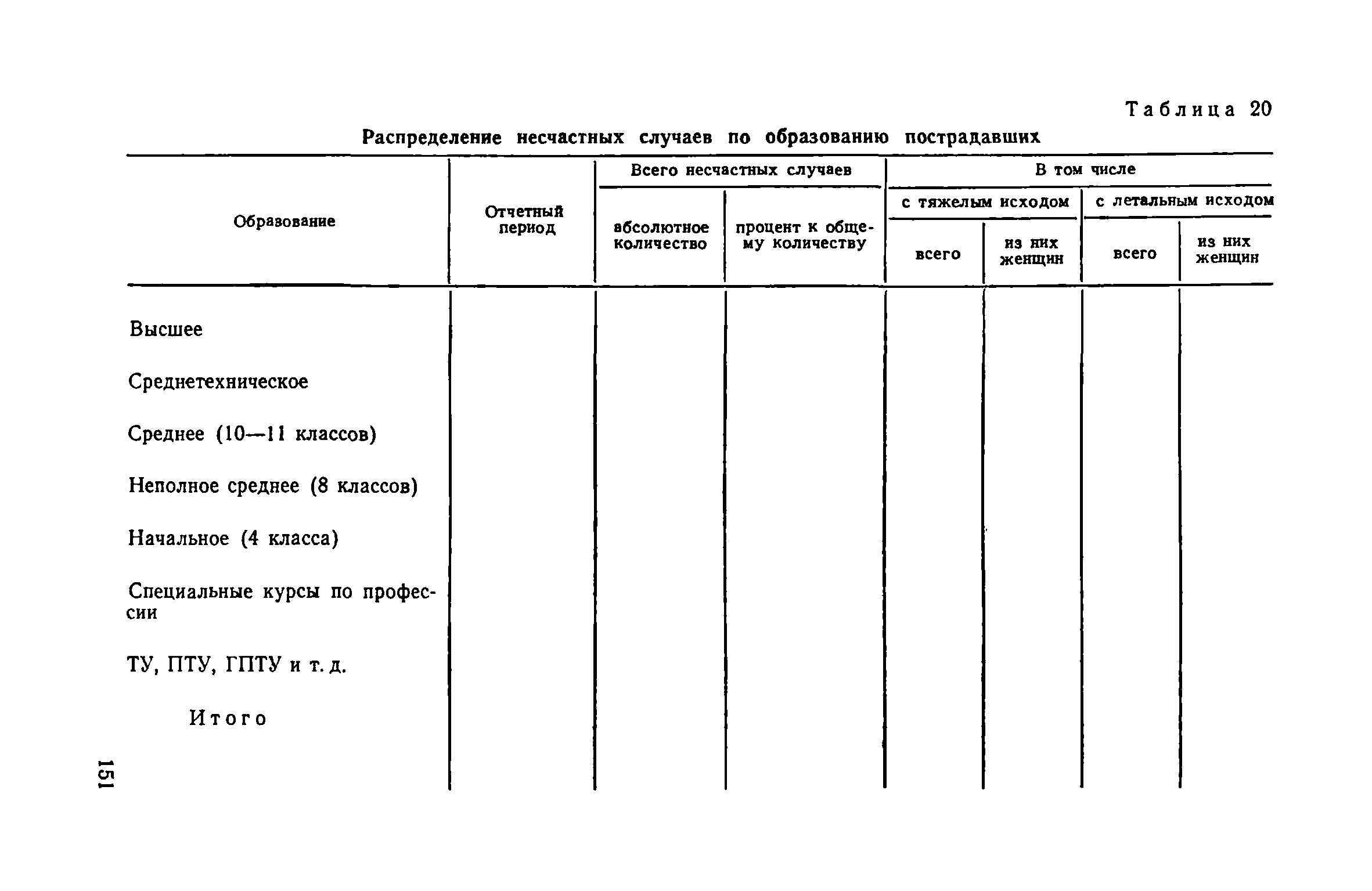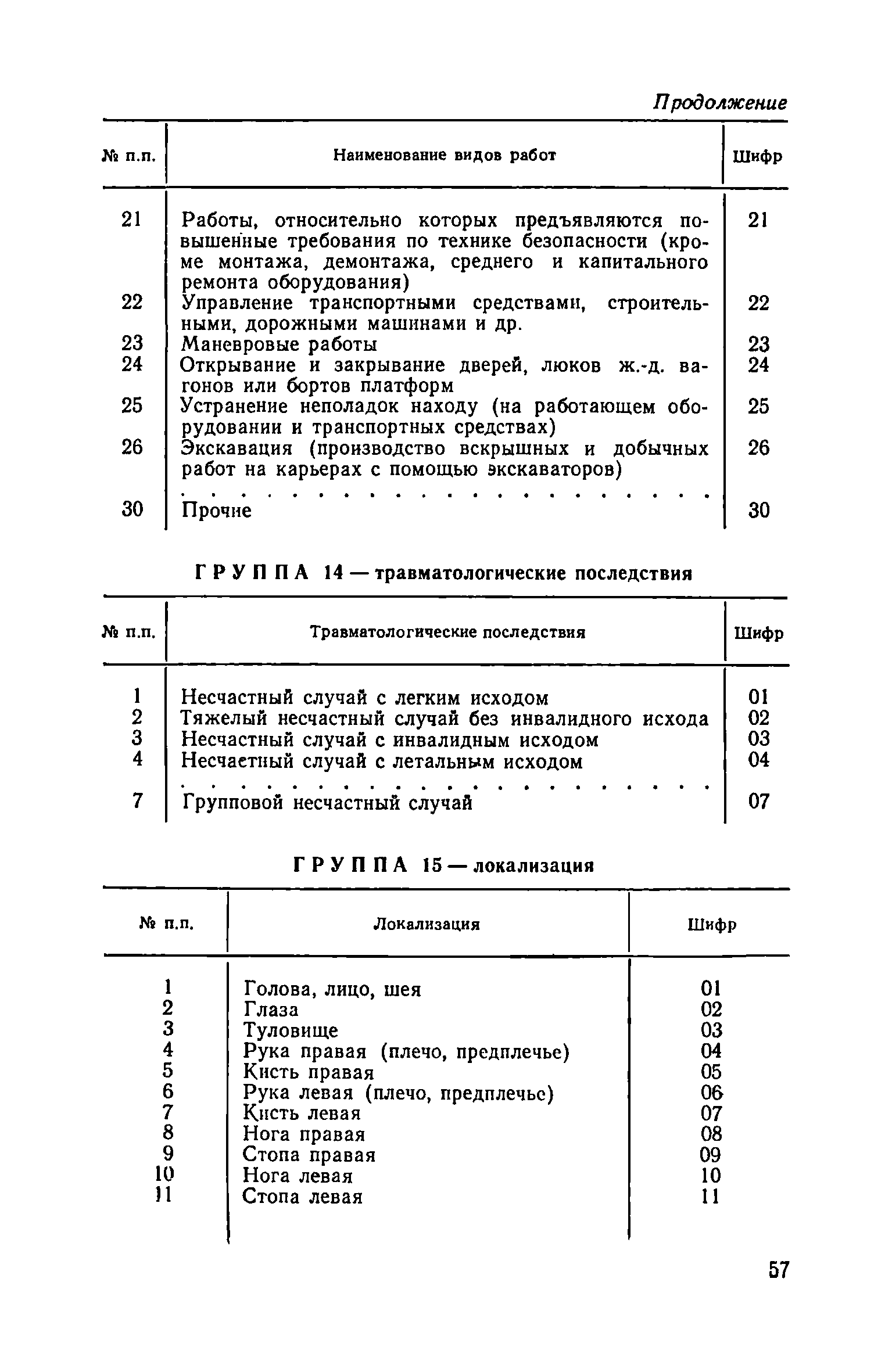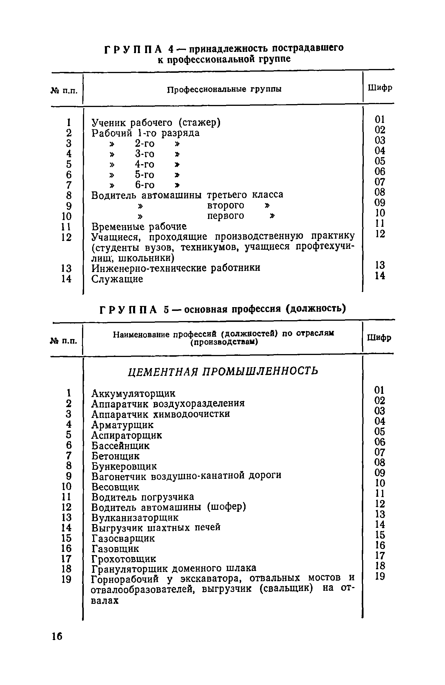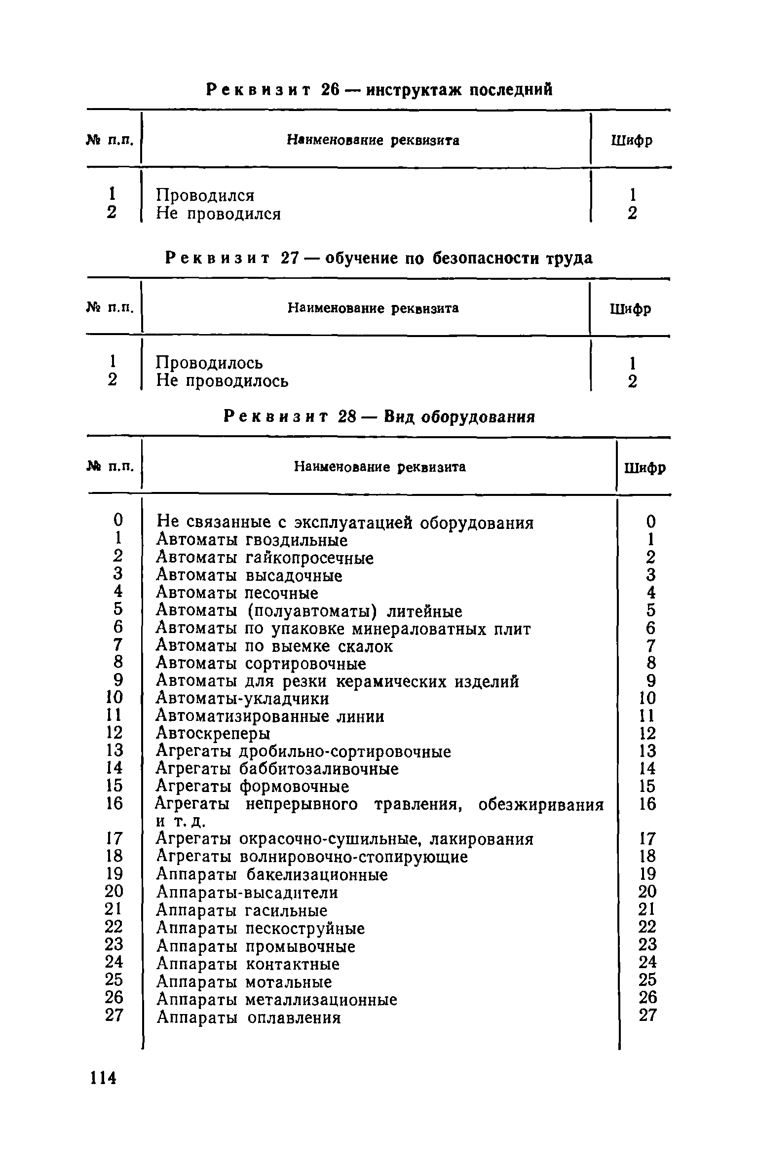 | Оглавление: | Введение 1. Перфокартная информационно-поисковая система анализа производственного травматизма Описание перфокартной системы Способ кодирования перфокарт Пояснения к отдельным поисковым признакам Порядок отбора информации о несчастных случаях на перфокартах Обработка и анализ информации 2. Автоматизированная система анализа производственного травматизма с использованием электронных вычислительных машин (АСАПТ-ЭВМ) Описание системы Кодирование информации Выходные ЭВМ Приложение 1. Журнал кодов поисковых признаков к перфокартной информационно-поисковой системе производственного травматизма Приложение 2. Журнал кодов к автоматизированной системе анализа производственного травматизма с использованием электронных вычислительных машин Приложение 3. Формы выходных таблиц |