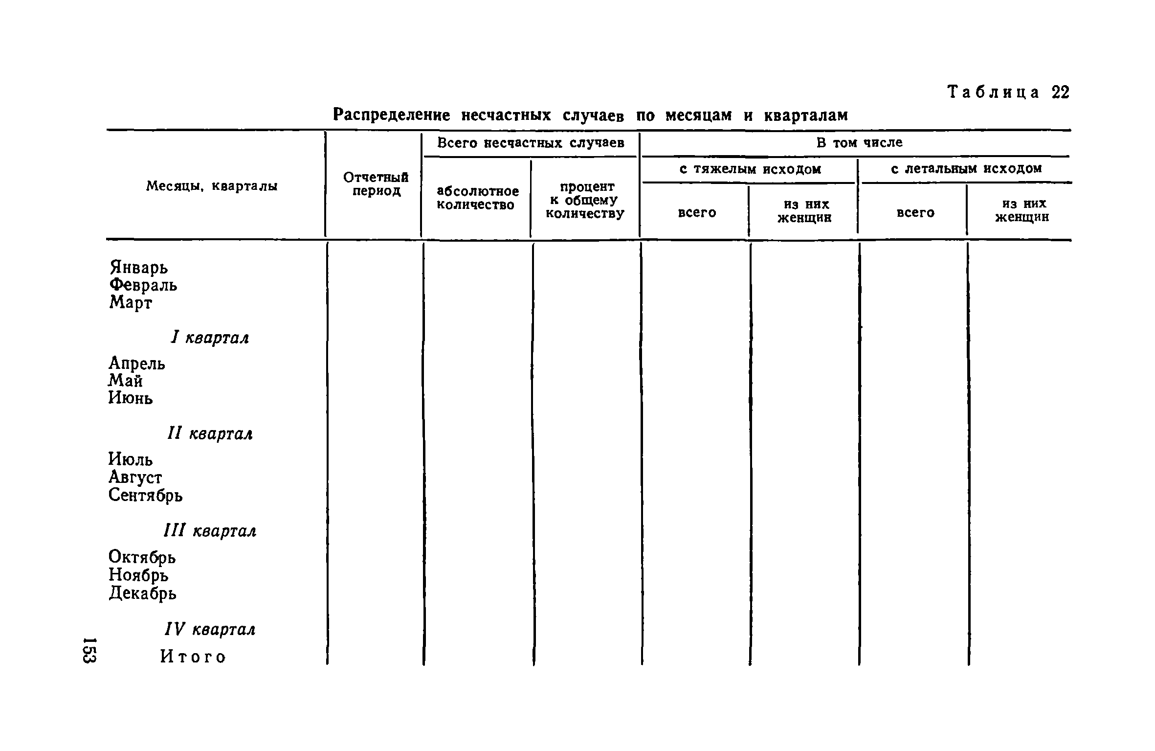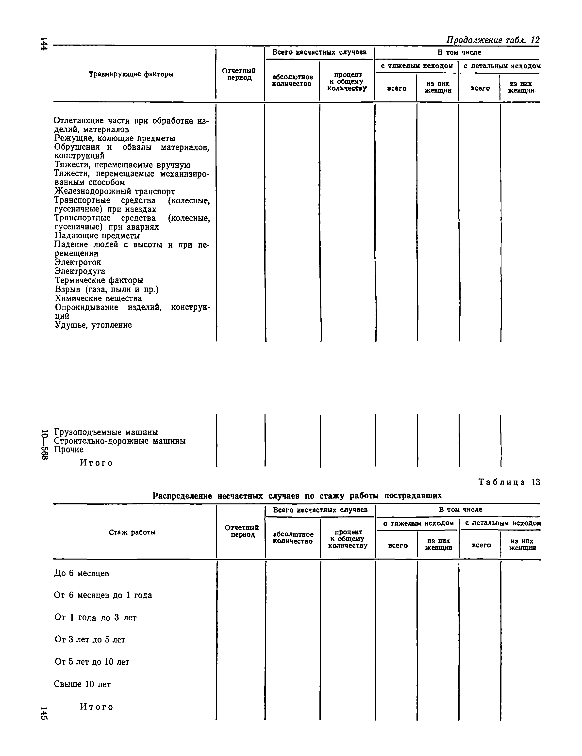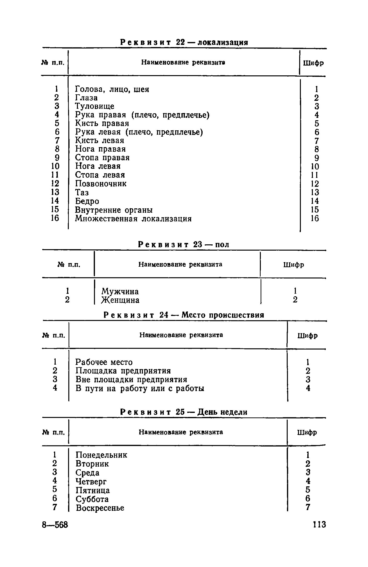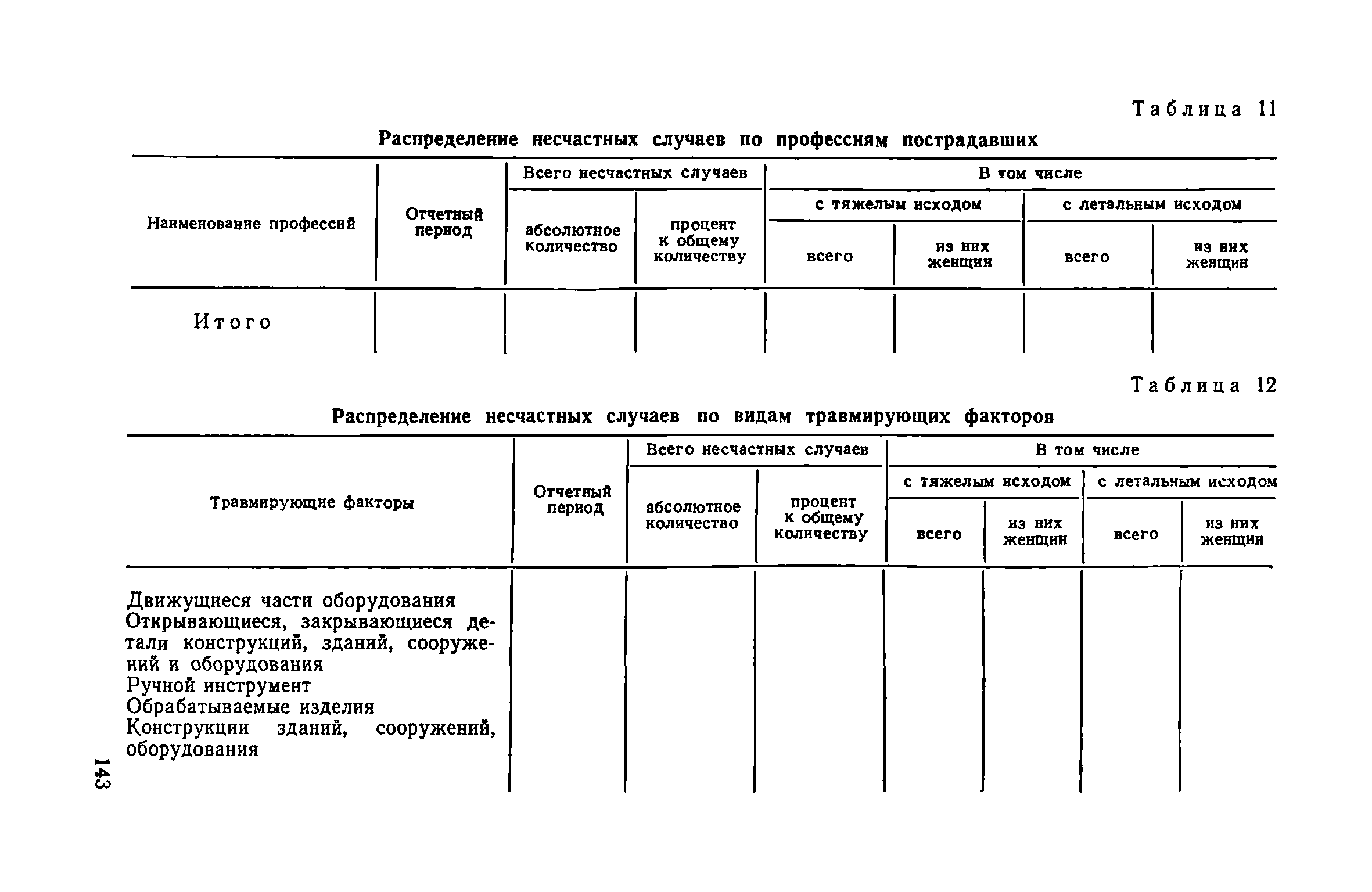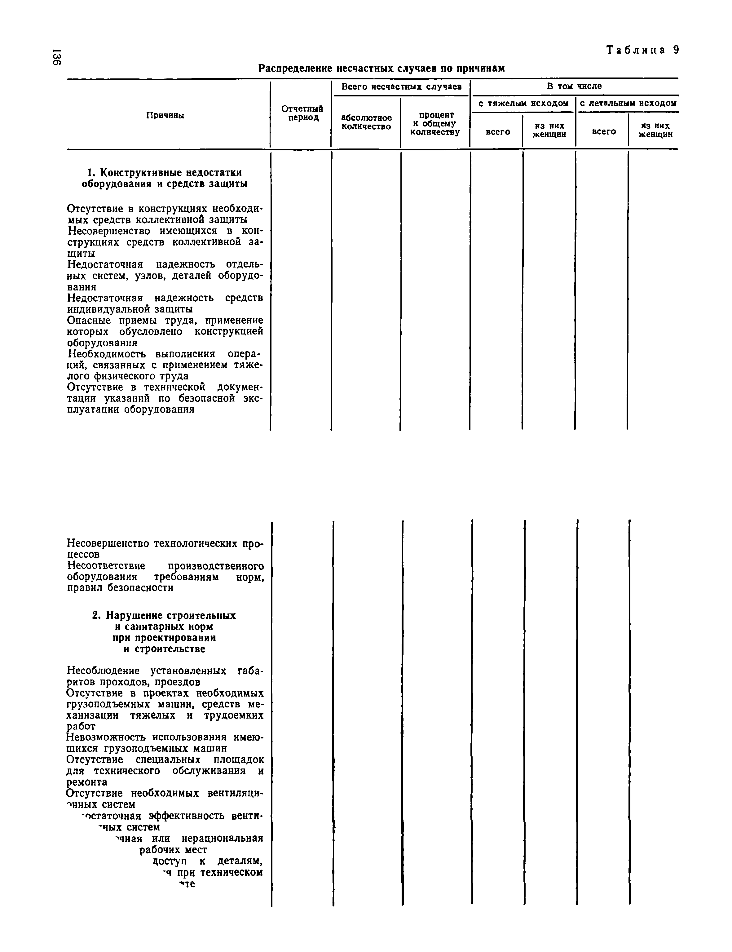 | Оглавление: | Введение 1. Перфокартная информационно-поисковая система анализа производственного травматизма Описание перфокартной системы Способ кодирования перфокарт Пояснения к отдельным поисковым признакам Порядок отбора информации о несчастных случаях на перфокартах Обработка и анализ информации 2. Автоматизированная система анализа производственного травматизма с использованием электронных вычислительных машин (АСАПТ-ЭВМ) Описание системы Кодирование информации Выходные ЭВМ Приложение 1. Журнал кодов поисковых признаков к перфокартной информационно-поисковой системе производственного травматизма Приложение 2. Журнал кодов к автоматизированной системе анализа производственного травматизма с использованием электронных вычислительных машин Приложение 3. Формы выходных таблиц |