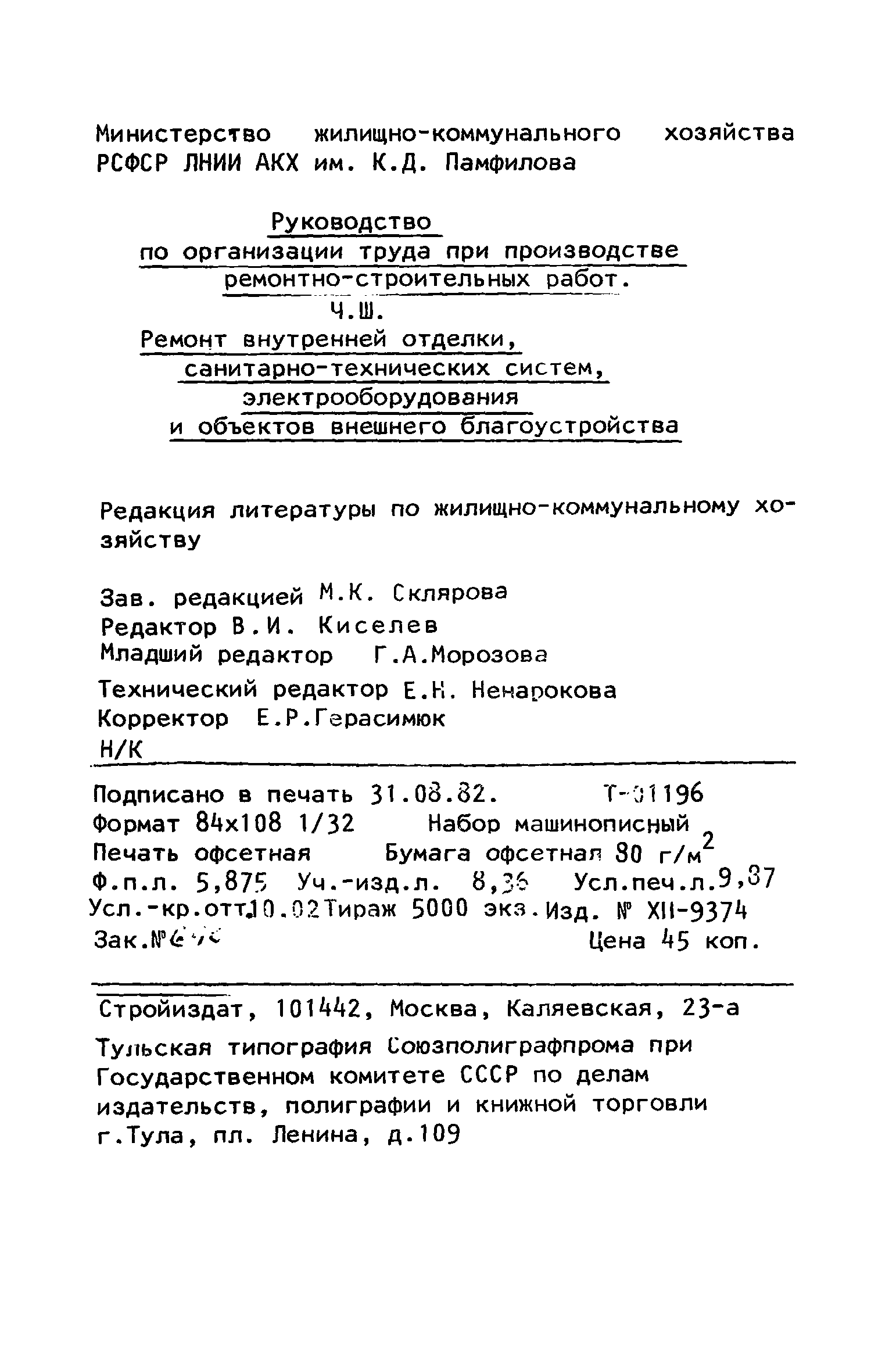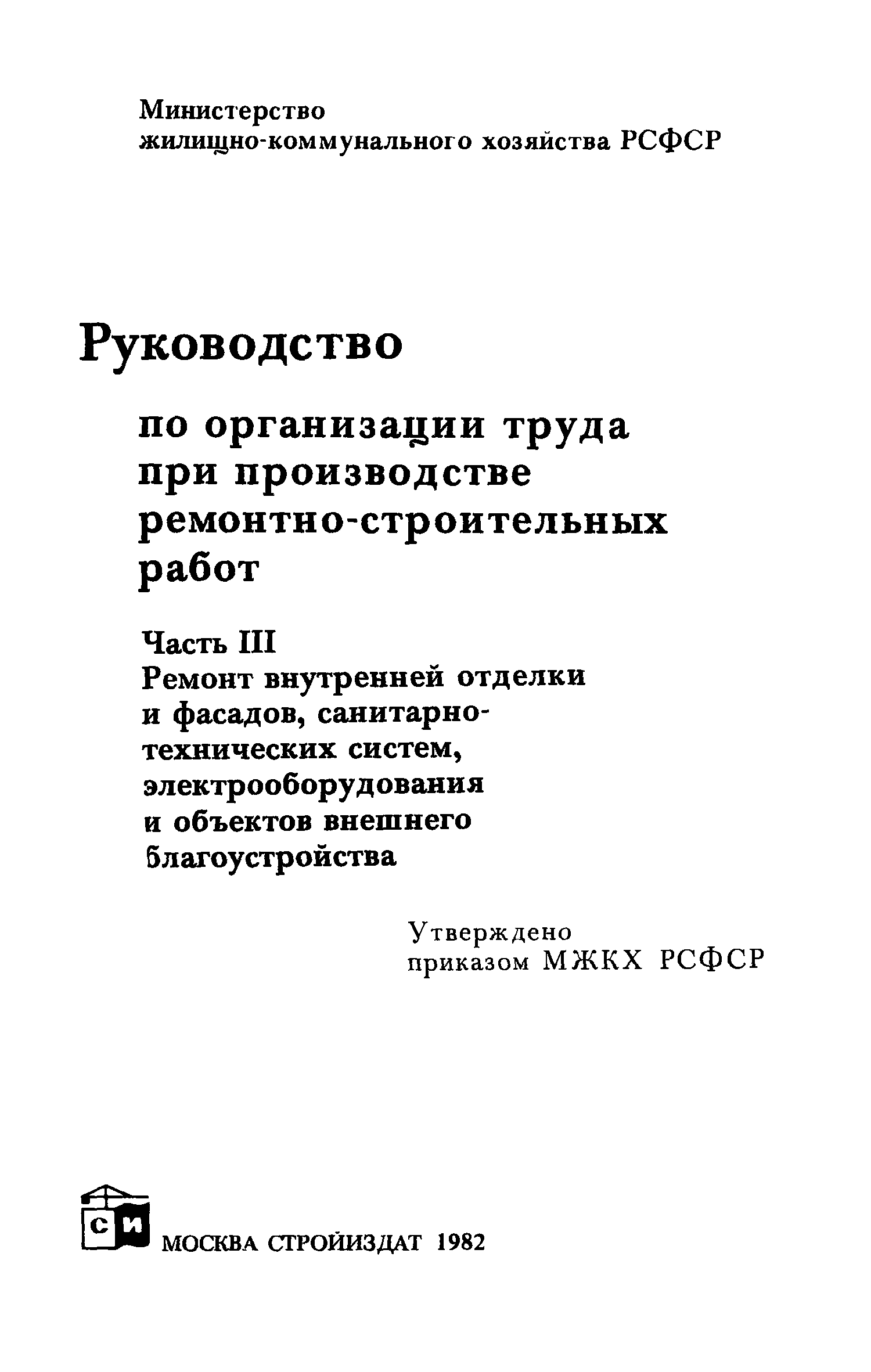Скачать Руководство по организации труда при производстве ремонтно-строительных работ. Часть III. Ремонт внутренней отделки и фасадов, санитарно-технических систем, электрооборудования и объектов внешнего благоустройстваДата актуализации: 01.01.2021