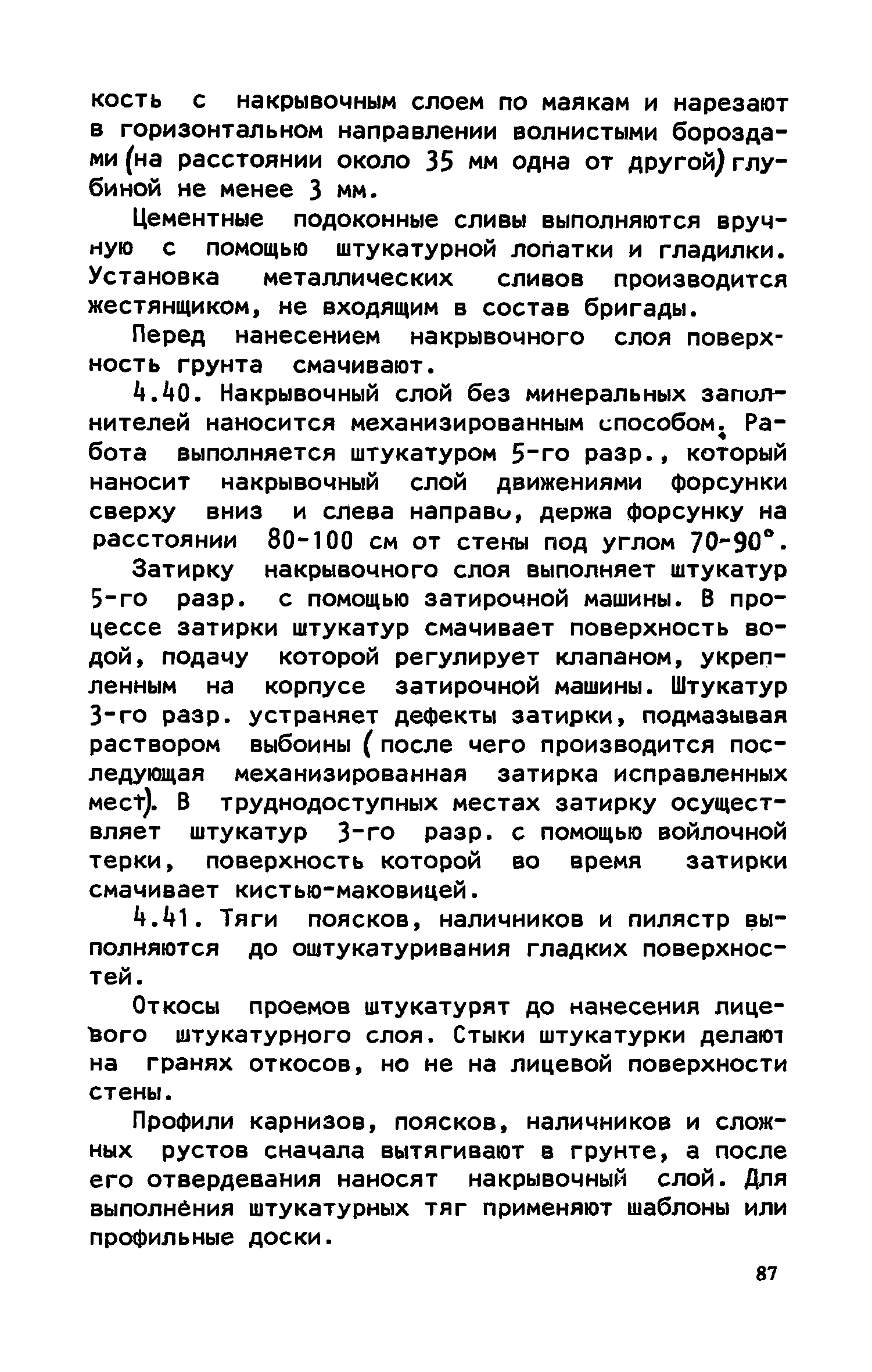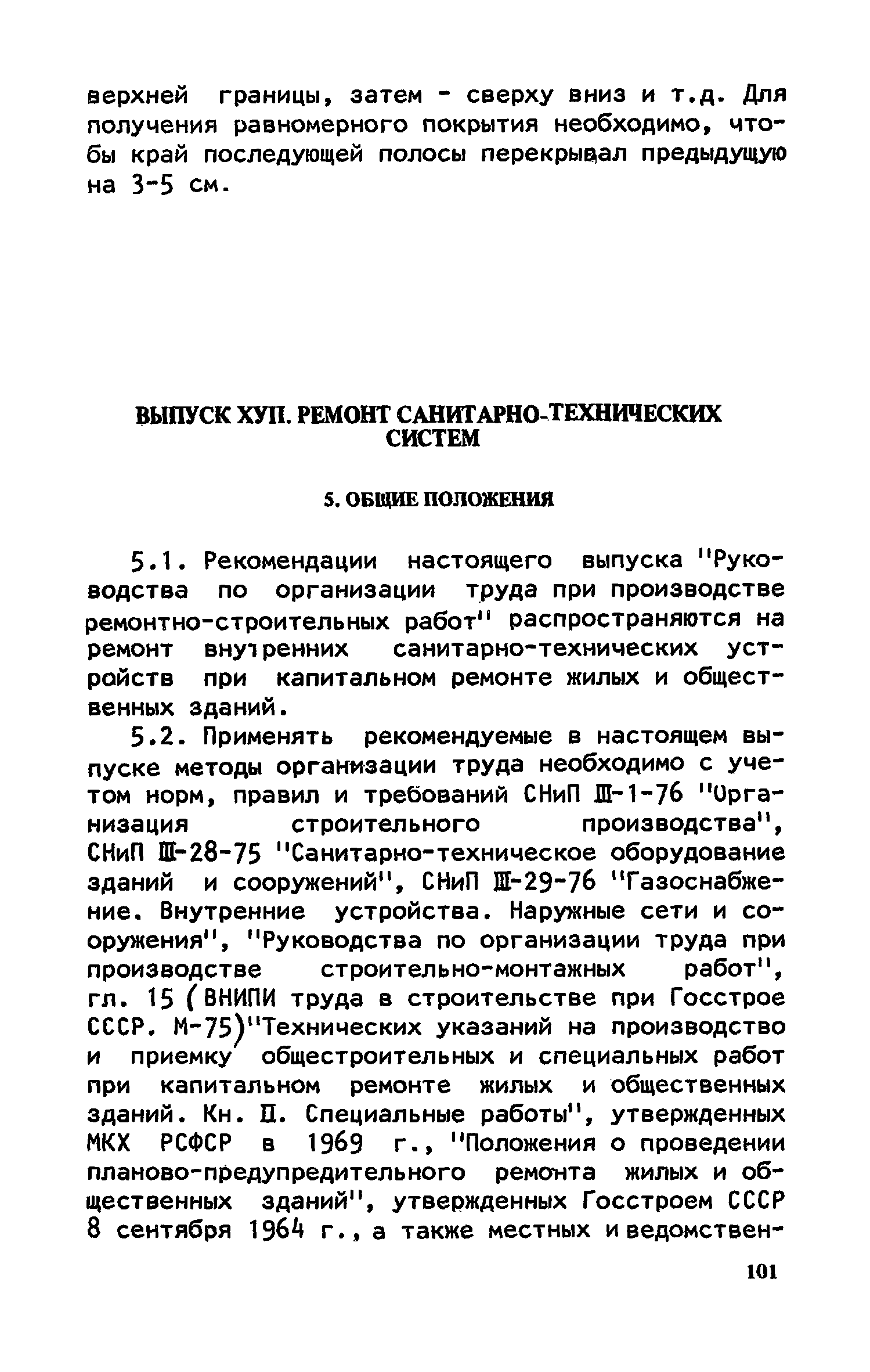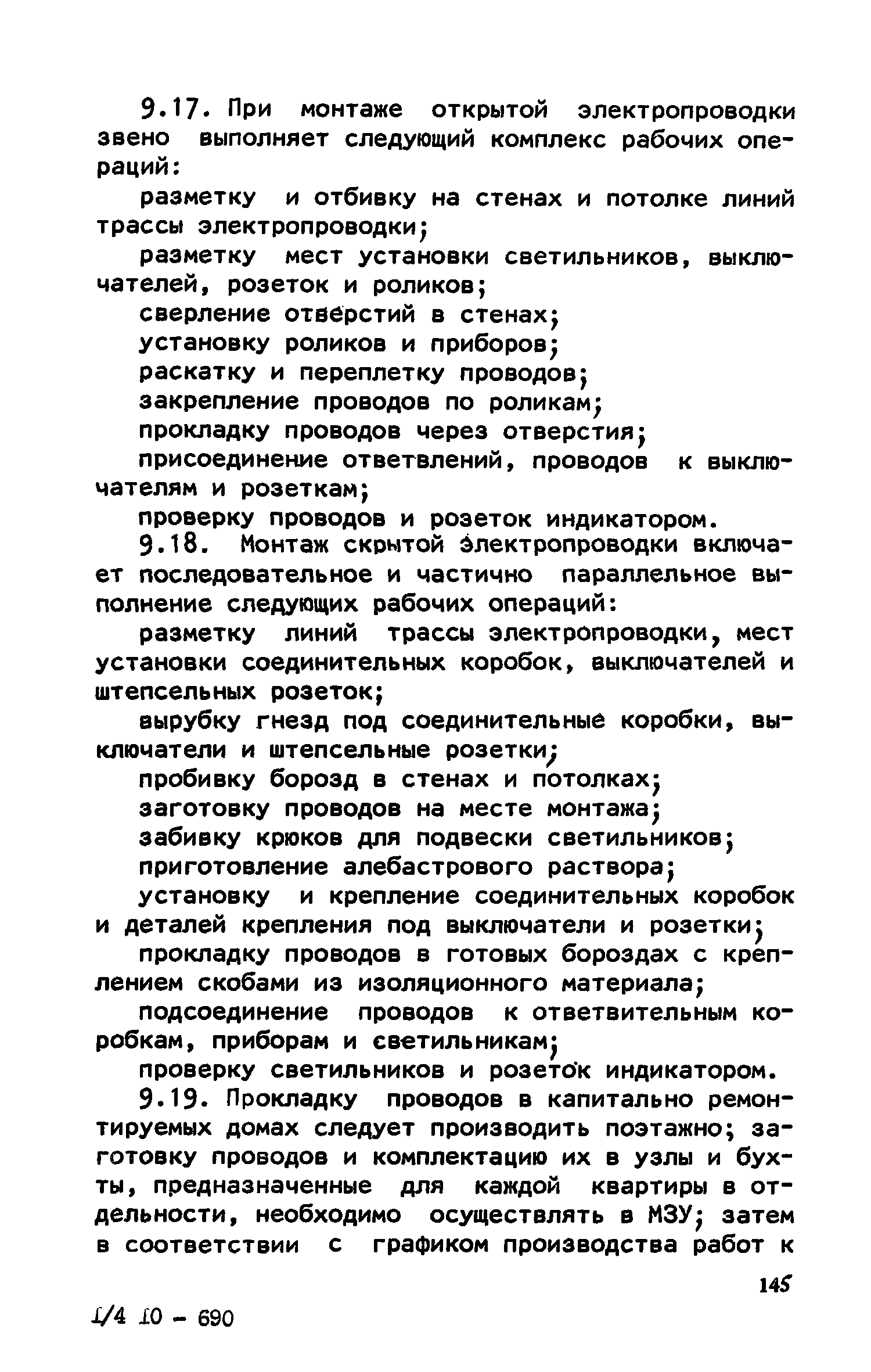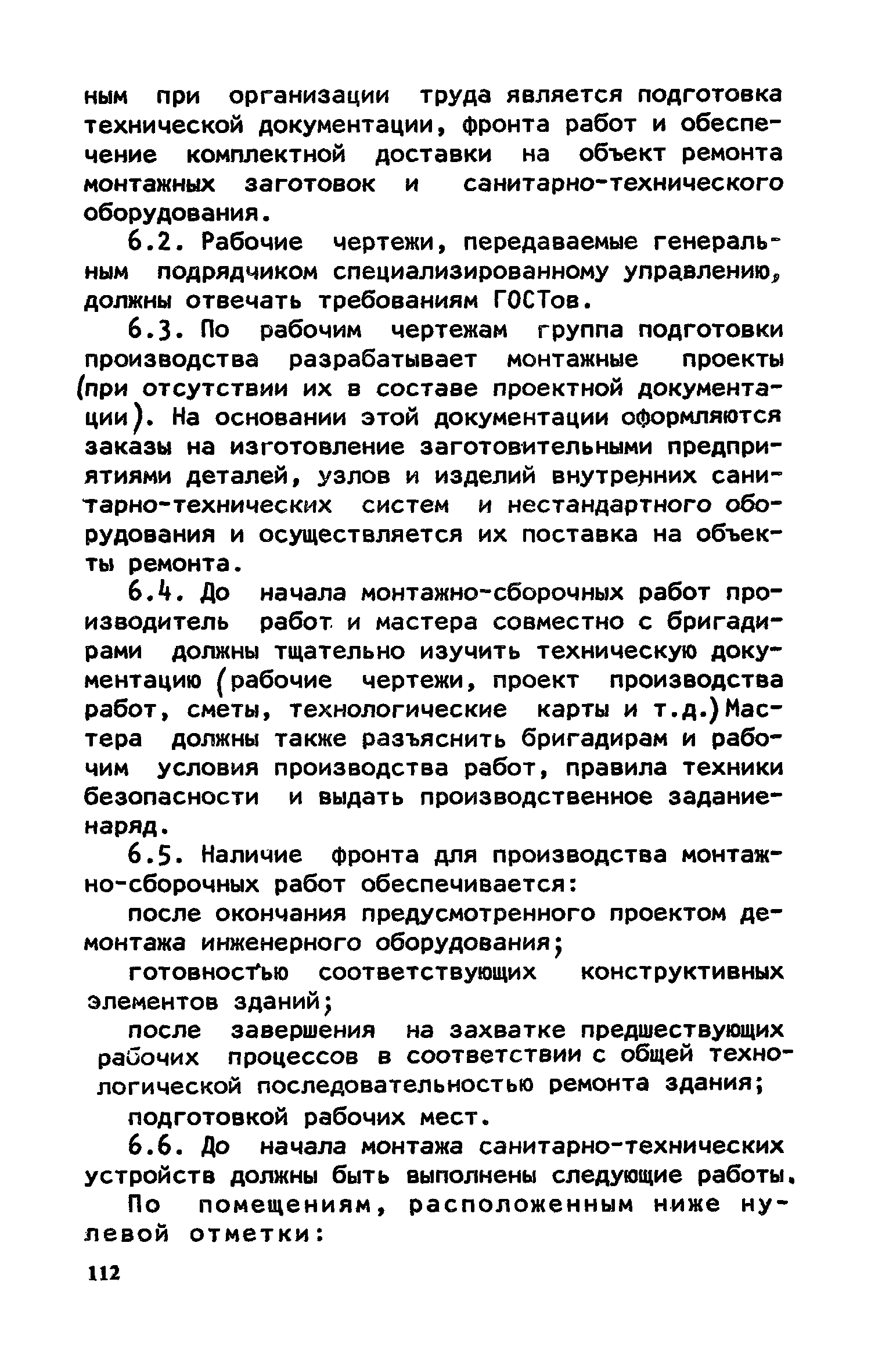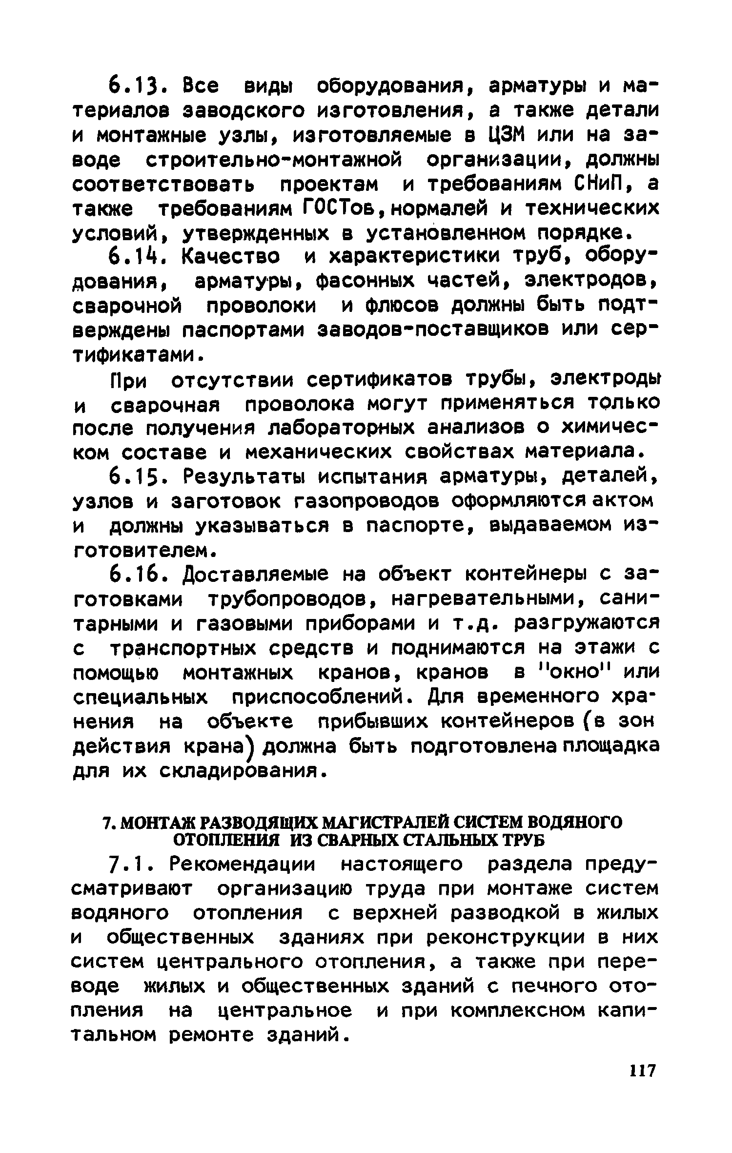 Руководство по организации труда при производстве ремонтно-строительных работ. Часть III. Ремонт внутренней отделки и фасадов, санитарно-технических систем, электрооборудования и объектов внешнего благоустройства| Статус: | действует | | Название рус.: | Руководство по организации труда при производстве ремонтно-строительных работ. Часть III. Ремонт внутренней отделки и фасадов, санитарно-технических систем, электрооборудования и объектов внешнего благоустройства | | Дата добавления в базу: | 01.09.2013 | | Дата актуализации: | 01.01.2021 | | Область применения: | В документе даны рекомендации по оптимальной структуре и оснащению строительных звеньев и бригад инструментами, приспособлениями, механизмами и специальным оборудованием | | Оглавление: | Выпуск XV. Ремонт внутренней отделки 1. Общие положения 2. Производство улучшенной штукатурки механизированным способом Организация труда в звеньях Организация и обслуживание рабочих мест Методы и приемы труда Выпуск XVI. Ремонт фасадов 3. Общие положения Техника безопасности 4. Ремонт и покраска фасадов зданий силикатными красками А. Подготовка поверхности фасадов к оштукатуриванию Организация труда в звеньях Организация рабочих мест Методы труда Б. Ремонт штукатурки Организация труда в звеньях и бригадах Организация рабочих мест Методы и приемы труда В. Покраска фасада силикатными красками Организация труда в звеньях Методы и приемы труда Выпуск XVII. Ремонт санитарно-технических систем 5. Общие положения 6. Подготовка производства 7. Монтаж разводящих магистралей систем водяного отопления из сварных стальных труб Организация труда в звене Методы и приемы труда Выпуск XVIII. Ремонт электрооборудования 8. Общие положения 9. Монтаж электропроводки Организация труда в звеньях Организация рабочего места Методы и приемы труда при монтаже открытой электропроводки Методы и приемы труда при монтаже скрытой электропроводки Выпуск XIX. Ремонт объектов внешнего благоустройства 10. Общие положения 11. Устройство асфальтобетонных покрытий Организация труда в бригаде Организация рабочего места Методы труда при установке боковых упоров Методы труда при укладке асфальтобетонной смеси Методы труда при уплотнении бетонной смеси Список литературы | | Разработан: | ЛНИИ АКХ им. К.Д. Памфилова Минжилкомхоза РСФСР