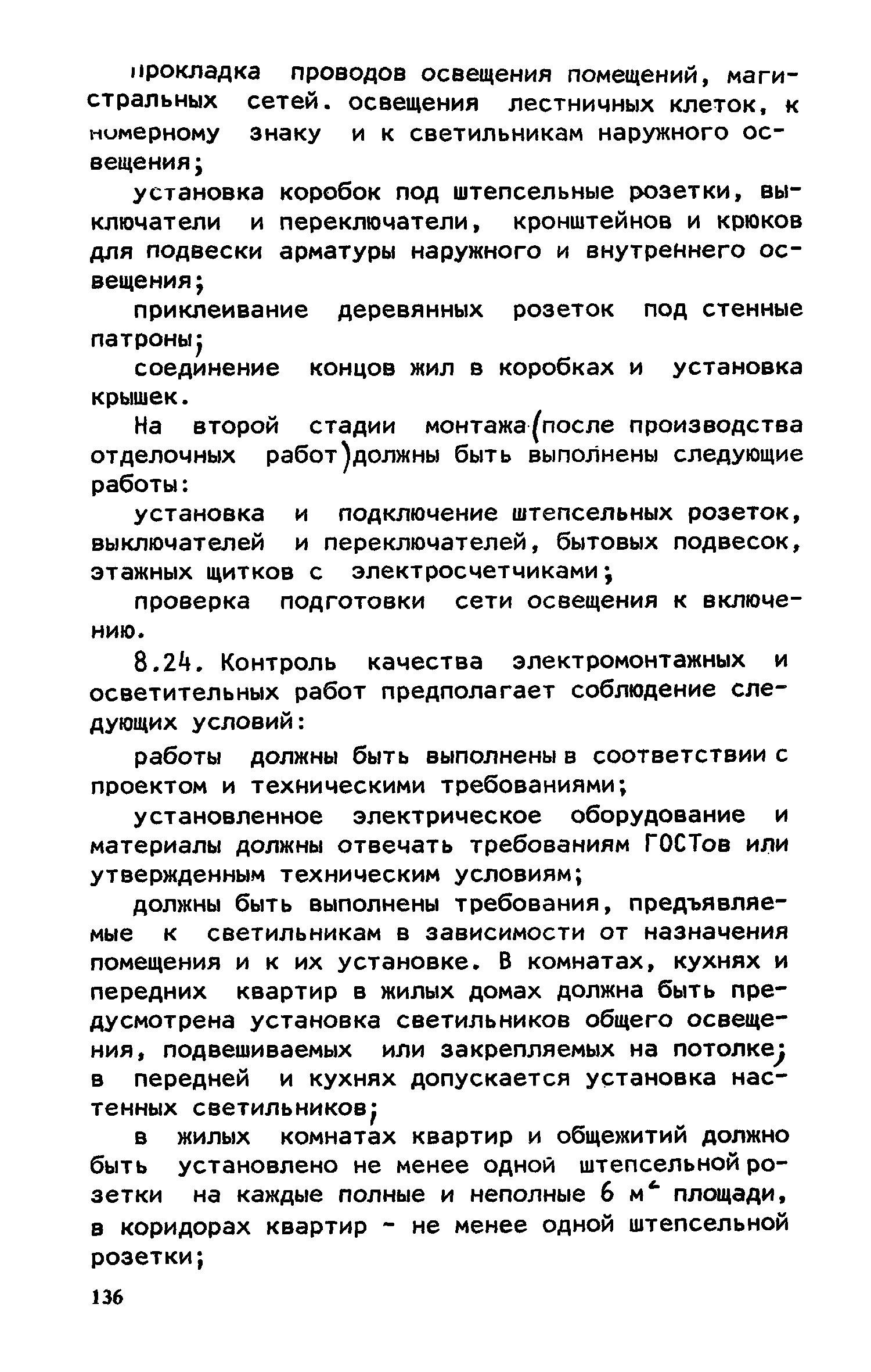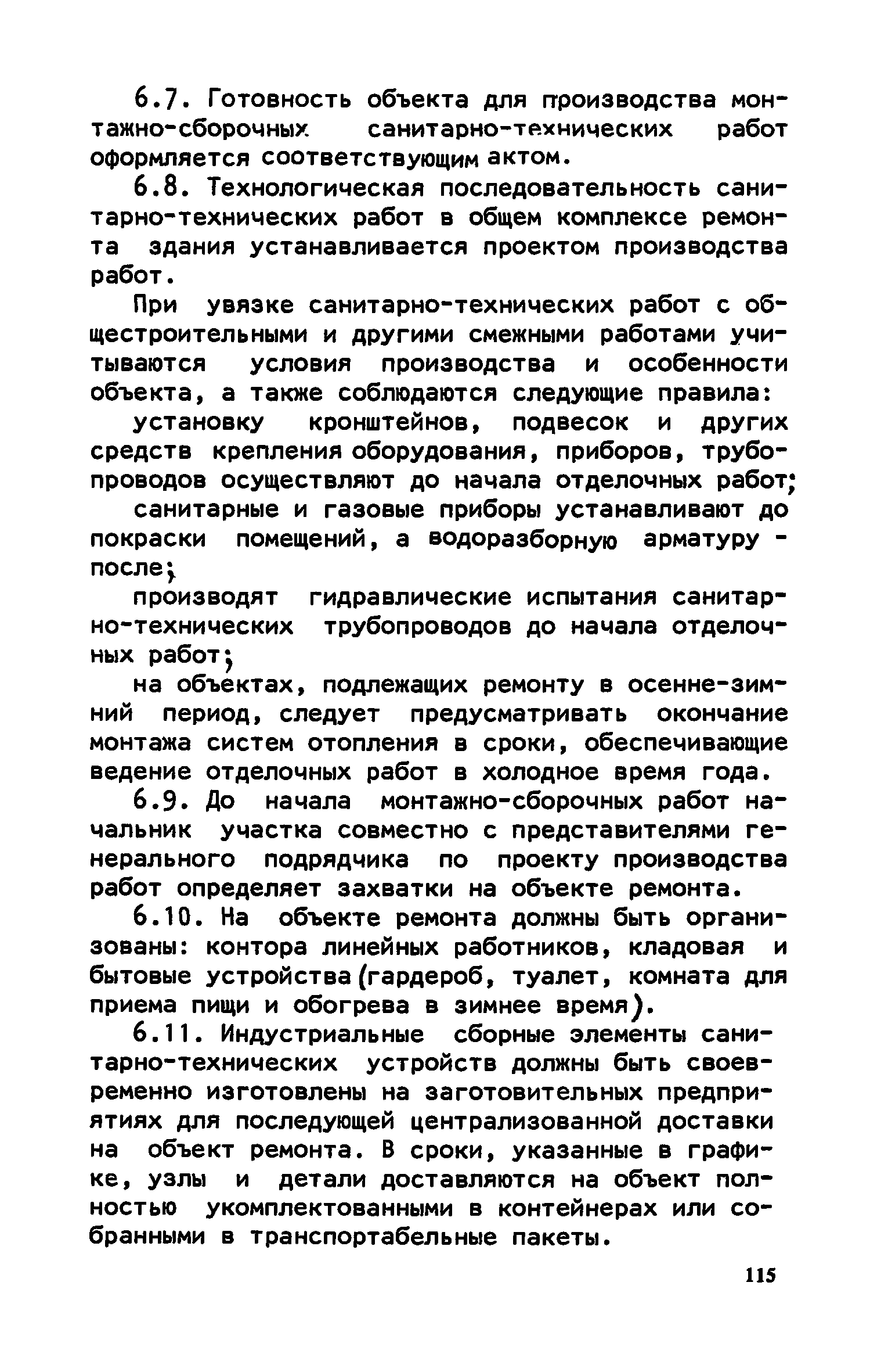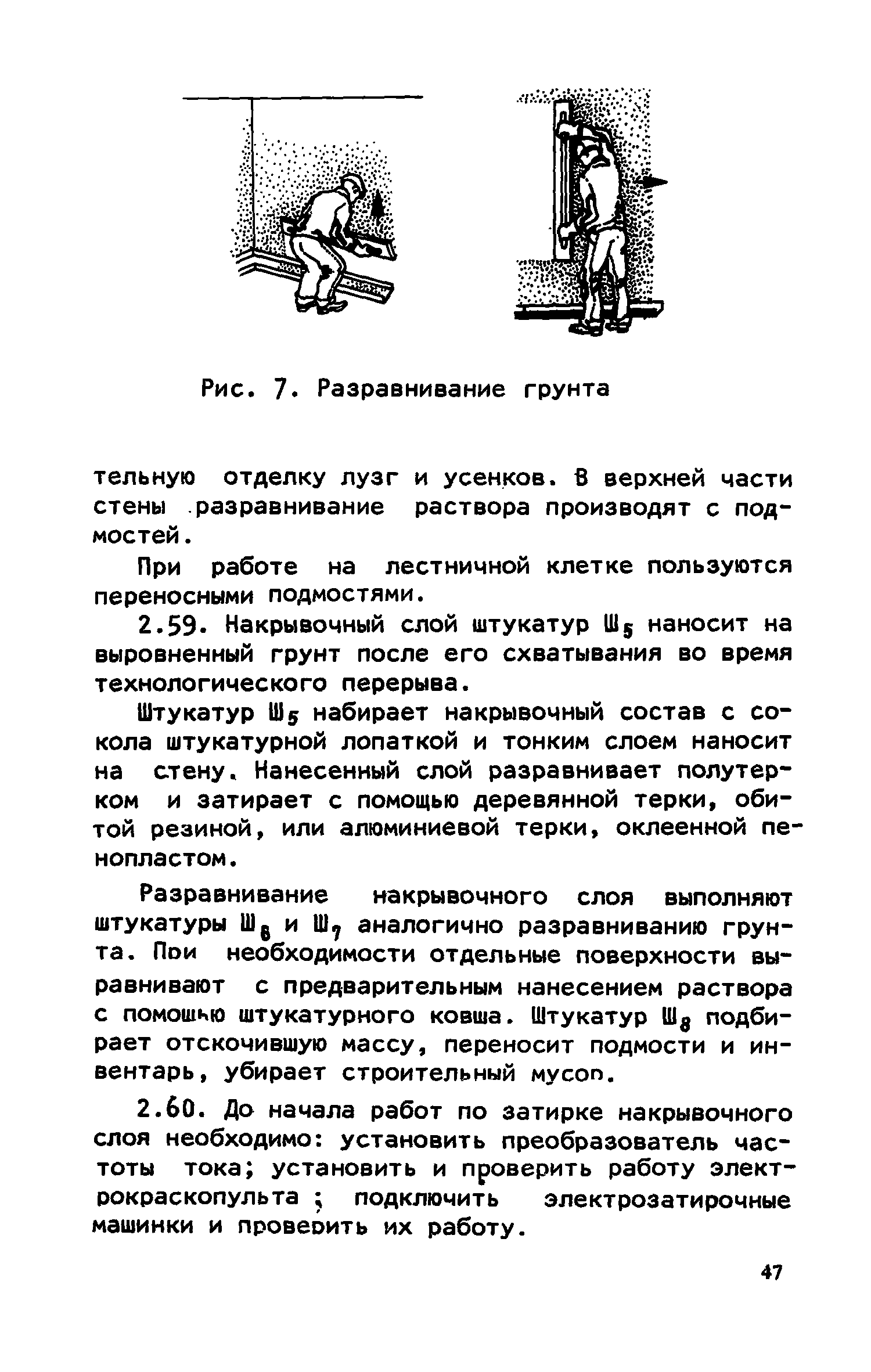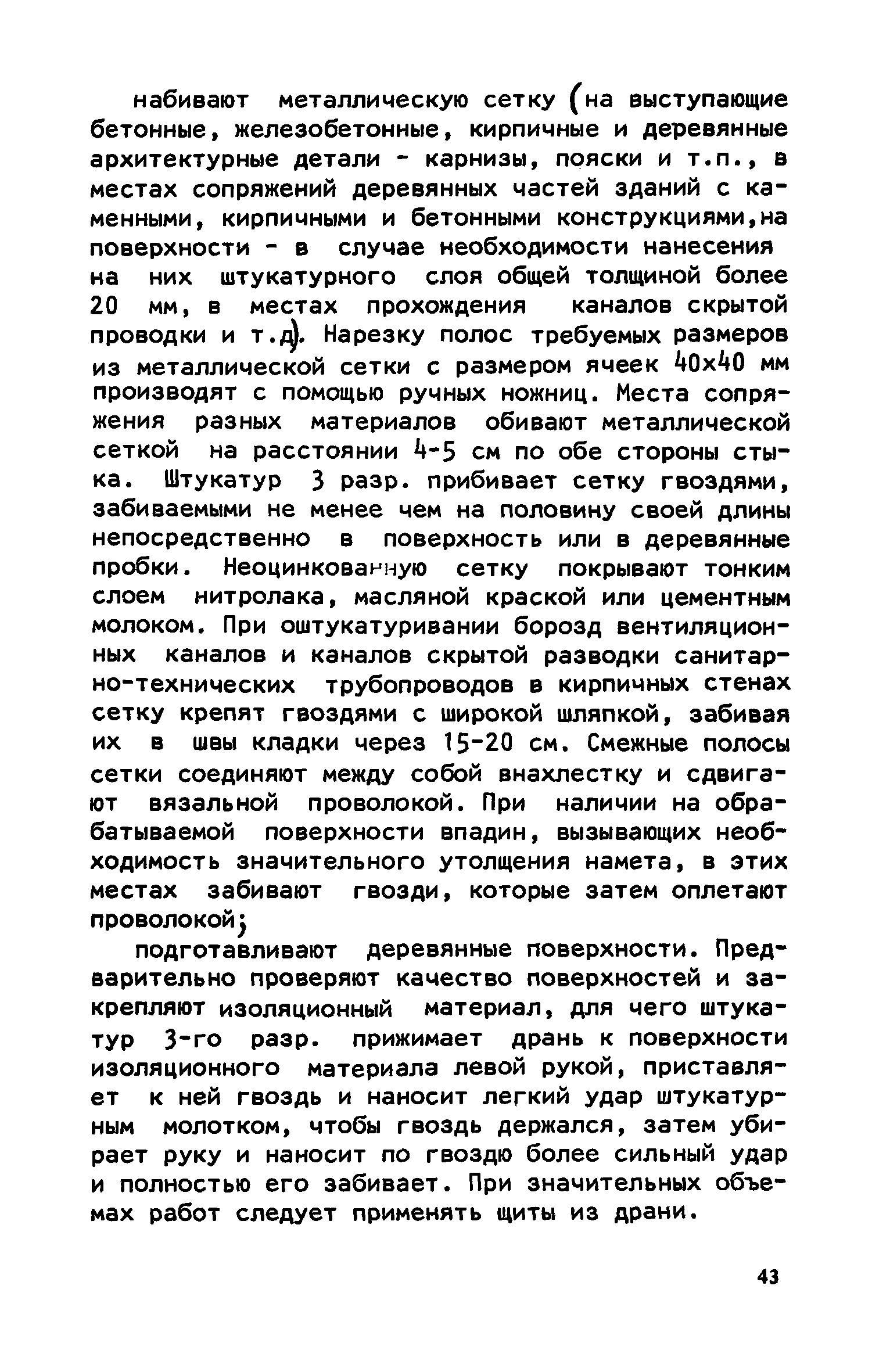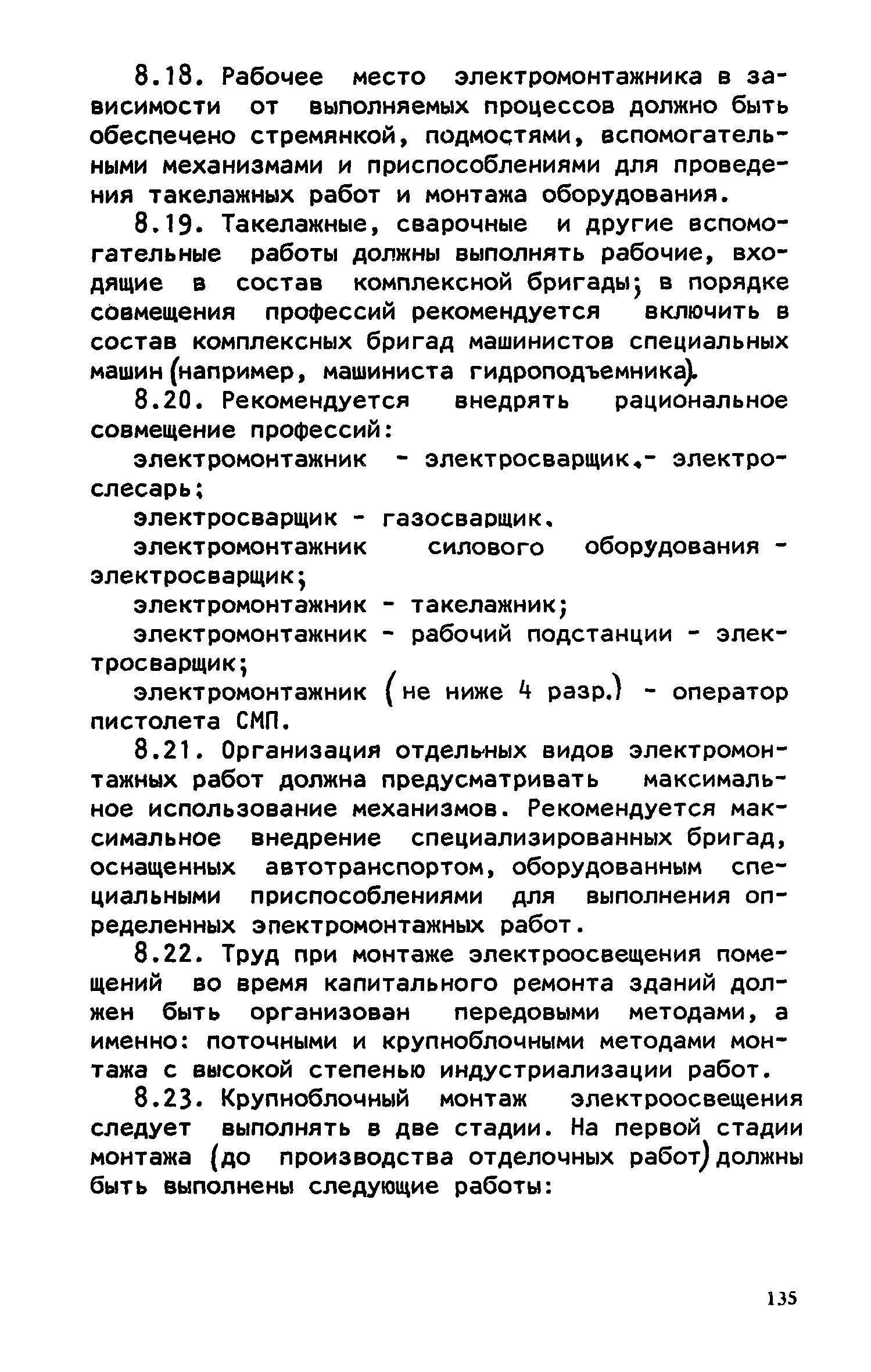 Руководство по организации труда при производстве ремонтно-строительных работ. Часть III. Ремонт внутренней отделки и фасадов, санитарно-технических систем, электрооборудования и объектов внешнего благоустройства| Статус: | действует | | Название рус.: | Руководство по организации труда при производстве ремонтно-строительных работ. Часть III. Ремонт внутренней отделки и фасадов, санитарно-технических систем, электрооборудования и объектов внешнего благоустройства | | Дата добавления в базу: | 01.09.2013 | | Дата актуализации: | 01.01.2021 | | Область применения: | В документе даны рекомендации по оптимальной структуре и оснащению строительных звеньев и бригад инструментами, приспособлениями, механизмами и специальным оборудованием | | Оглавление: | Выпуск XV. Ремонт внутренней отделки 1. Общие положения 2. Производство улучшенной штукатурки механизированным способом Организация труда в звеньях Организация и обслуживание рабочих мест Методы и приемы труда Выпуск XVI. Ремонт фасадов 3. Общие положения Техника безопасности 4. Ремонт и покраска фасадов зданий силикатными красками А. Подготовка поверхности фасадов к оштукатуриванию Организация труда в звеньях Организация рабочих мест Методы труда Б. Ремонт штукатурки Организация труда в звеньях и бригадах Организация рабочих мест Методы и приемы труда В. Покраска фасада силикатными красками Организация труда в звеньях Методы и приемы труда Выпуск XVII. Ремонт санитарно-технических систем 5. Общие положения 6. Подготовка производства 7. Монтаж разводящих магистралей систем водяного отопления из сварных стальных труб Организация труда в звене Методы и приемы труда Выпуск XVIII. Ремонт электрооборудования 8. Общие положения 9. Монтаж электропроводки Организация труда в звеньях Организация рабочего места Методы и приемы труда при монтаже открытой электропроводки Методы и приемы труда при монтаже скрытой электропроводки Выпуск XIX. Ремонт объектов внешнего благоустройства 10. Общие положения 11. Устройство асфальтобетонных покрытий Организация труда в бригаде Организация рабочего места Методы труда при установке боковых упоров Методы труда при укладке асфальтобетонной смеси Методы труда при уплотнении бетонной смеси Список литературы | | Разработан: | ЛНИИ АКХ им. К.Д. Памфилова Минжилкомхоза РСФСР