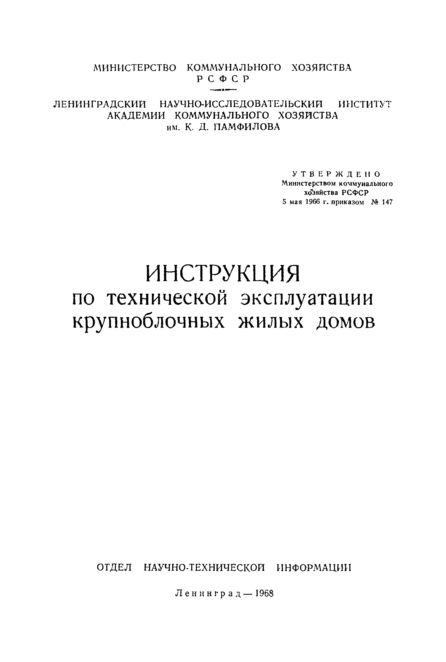 | Утверждён: | 05.05.1966 Министерство коммунального хозяйства РСФСР (147)