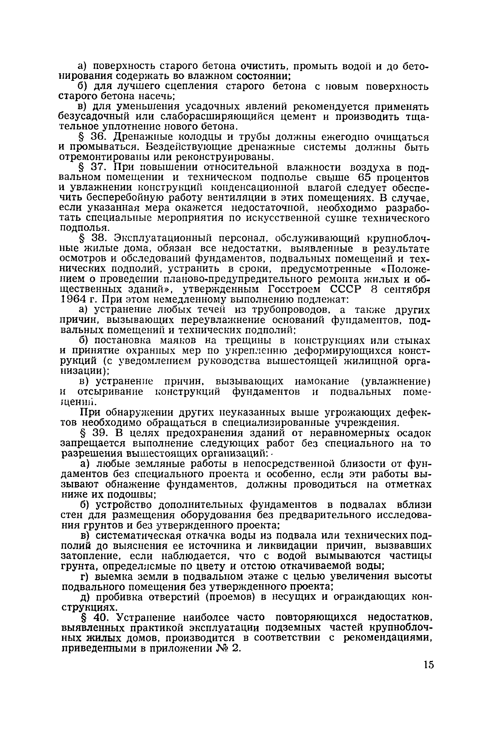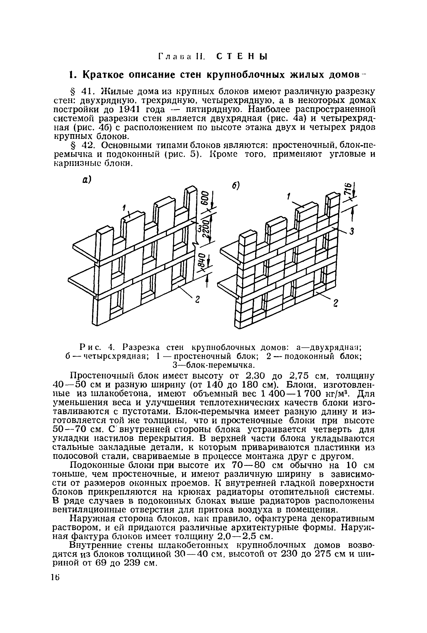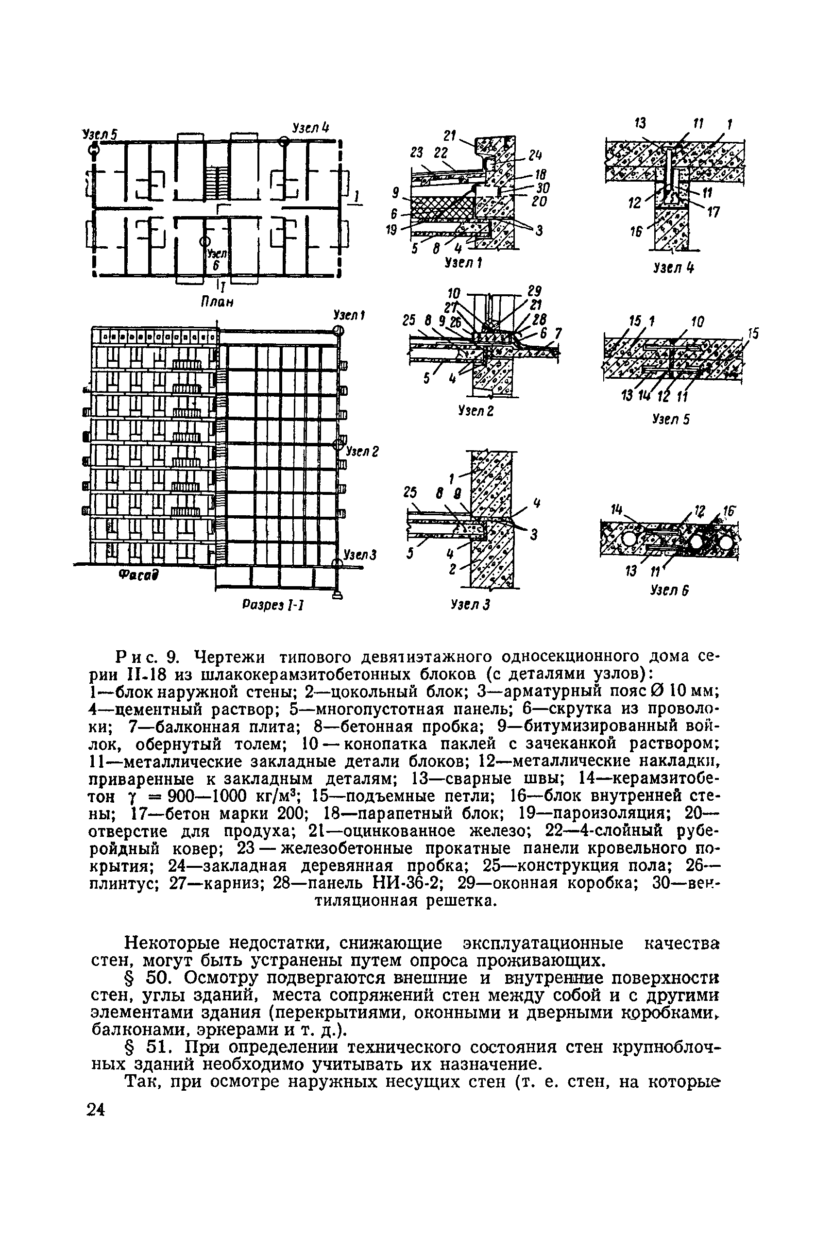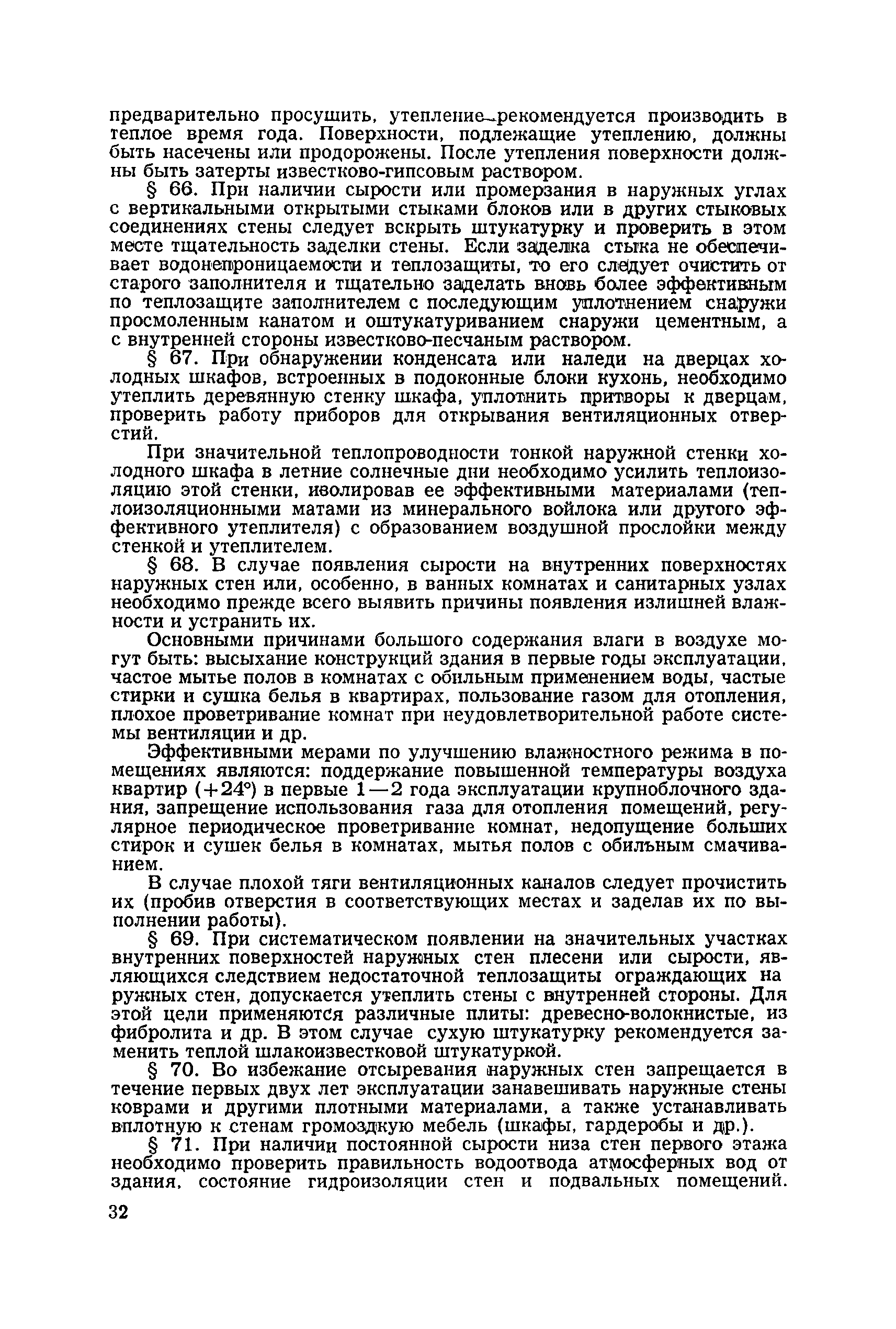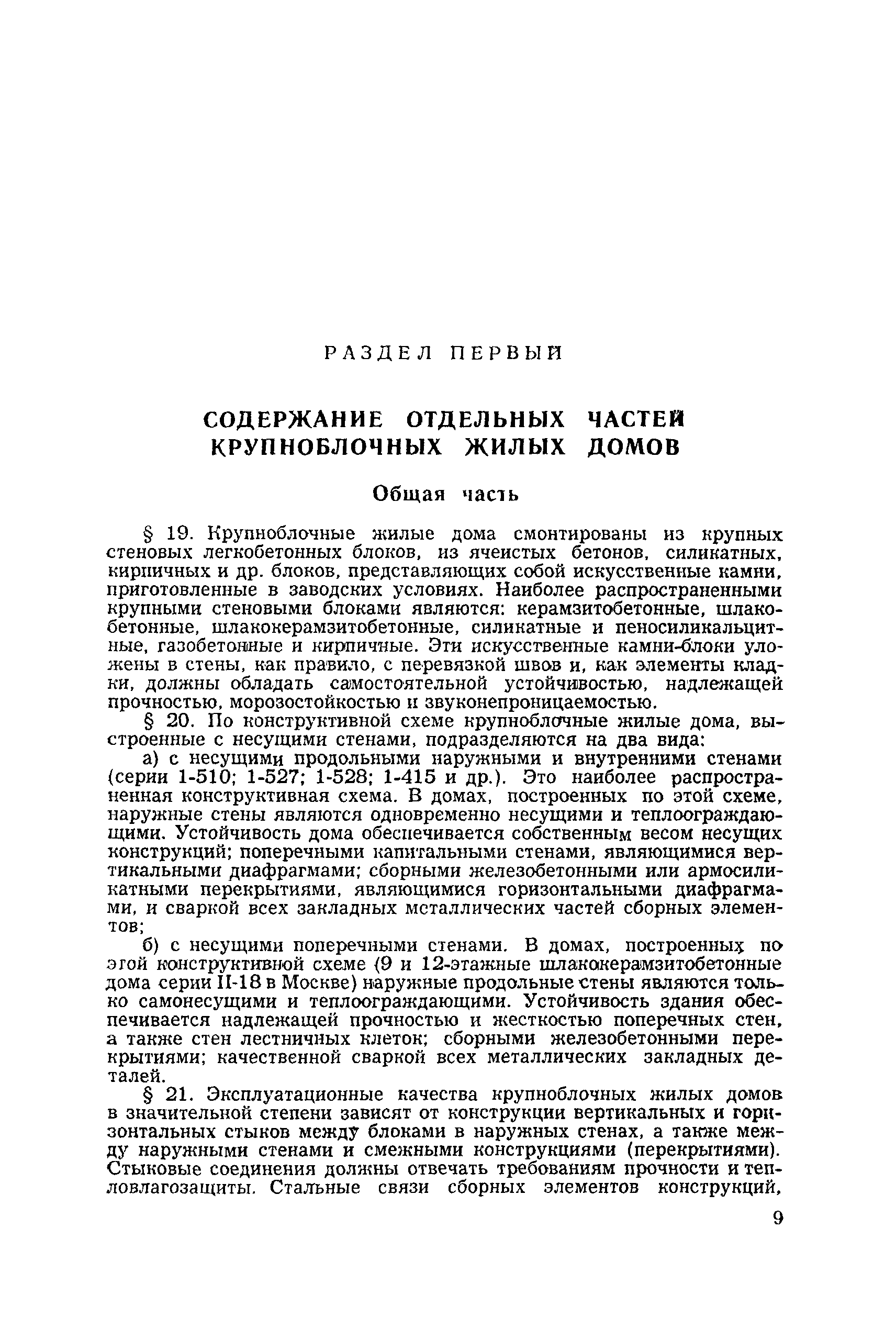 | Оглавление: | Аннотация Введение Общие указания Раздел первый. Содержание отдельных частей крупноблочных жилых домов Общая часть Глава I. Фундаменты и подвальные помещения 1. Краткое описание сборных фундаментов и стен подвальных помещений 2. Содержание фундаментов. Подвальных помещений и технических подполий Глава II. Стены 1. Краткое описание стен крупноблочных жилых домов 2. Содержание крупноблочных стен а) Выявление и устранение повреждений стен и заделка стыков б) Устранение отсыревания и промерзания наружных стен Глава III. Фасады и балконы 1. Краткое описание 2. Содержание фасадов 3. Содержание выступающих архитектурных деталей фасадов (балконов, эркеров, карнизов и др.) Глава IV. Перекрытия и полы 1. Краткое описание 2. Содержание перекрытий и полов Глава V. Перегородки 1. Краткое описание 2. Содержание перегородок 3. Усиление звукоизоляции внутренних стен Глава VI. Крыши и чердачные помещения 1. Краткое описание 2. Содержание крыш и чердачных помещений Глава VII. Окна и двери 1. Краткое описание 2. Содержание спаренных оконных переплетов и балконных дверей Глава VIII. Лестницы 1. Краткое описание 2. Содержание лестниц Раздел второй. Содержание инженерного оборудования в крупноблочных домах Глава IX. Центральное отопление 1. Краткое описание 2. Содержание системы центрального отопления Глава X. Холодное и горячее водоснабжение, канализация 1. Краткое описание 2. Содержание системы водопровода и канализации Глава XI. Электроснабжение Глава XII. Вентиляция 1. Краткое описание Приложение 1. Перечень основных документов, предъявляемых застройщиком (заказчиком) Государственной комиссии по приемке жилых зданий в эксплуатацию Приложение 2. Основные недостатки, возникающие при эксплуатации подземной части крупноблочных жилых домов, и рекомендации по их устранению Приложение 3. Выписка из временных указаний по гидрофобизационной защите стыков наружных стен и фасадов полносборных зданий (ВСН-7-64) Приложение 4. Указание по наблюдению за трещинами в крупноблочных домах Приложение 5. Указания по технологии очистки эксплуатируемых фасадов от загрязнений |