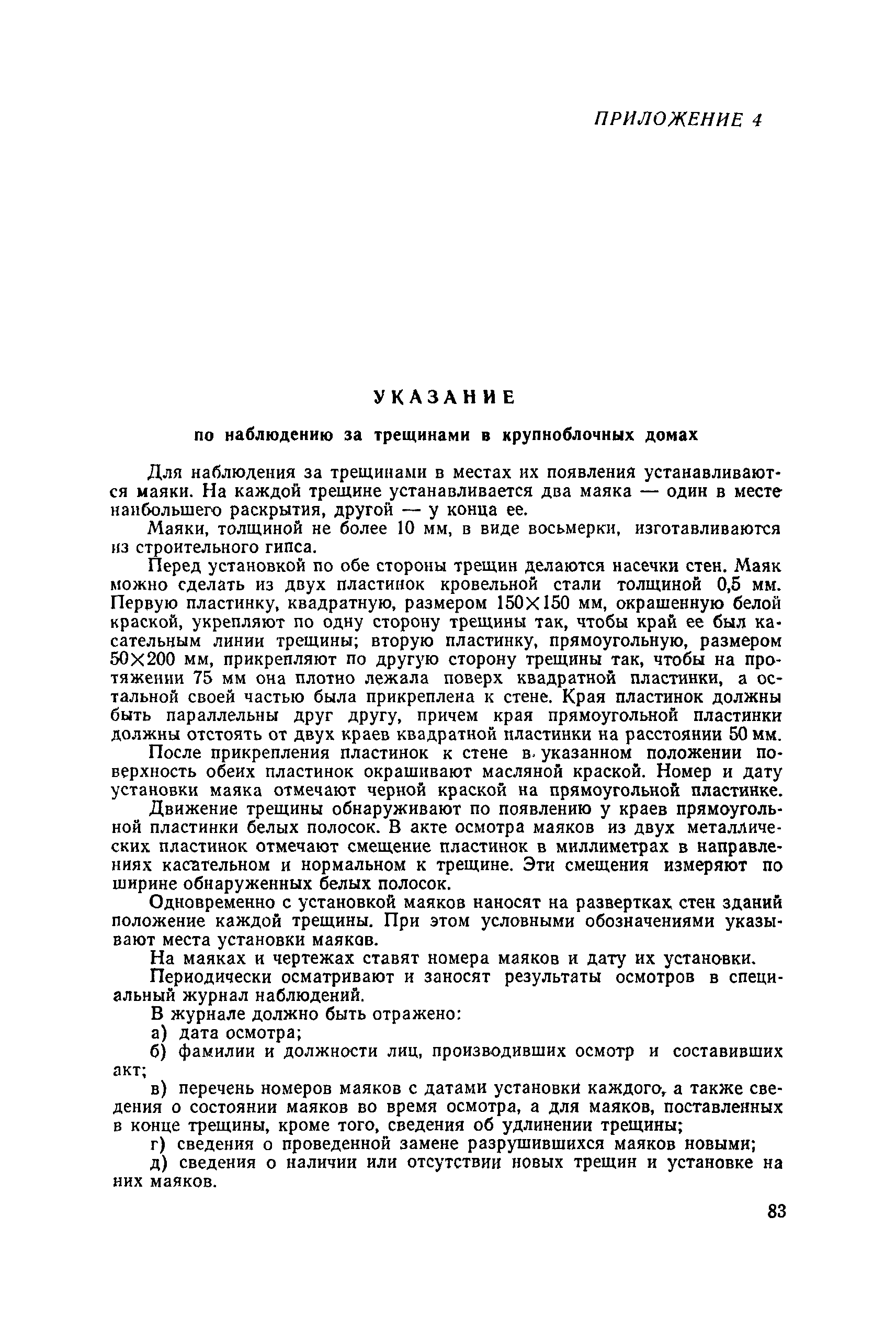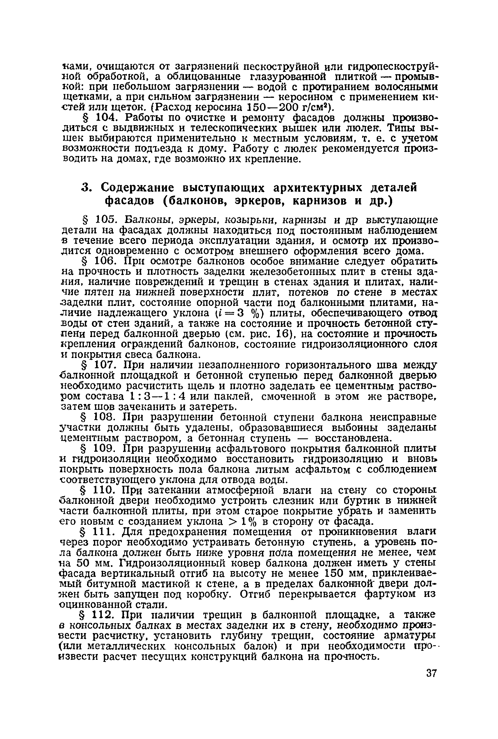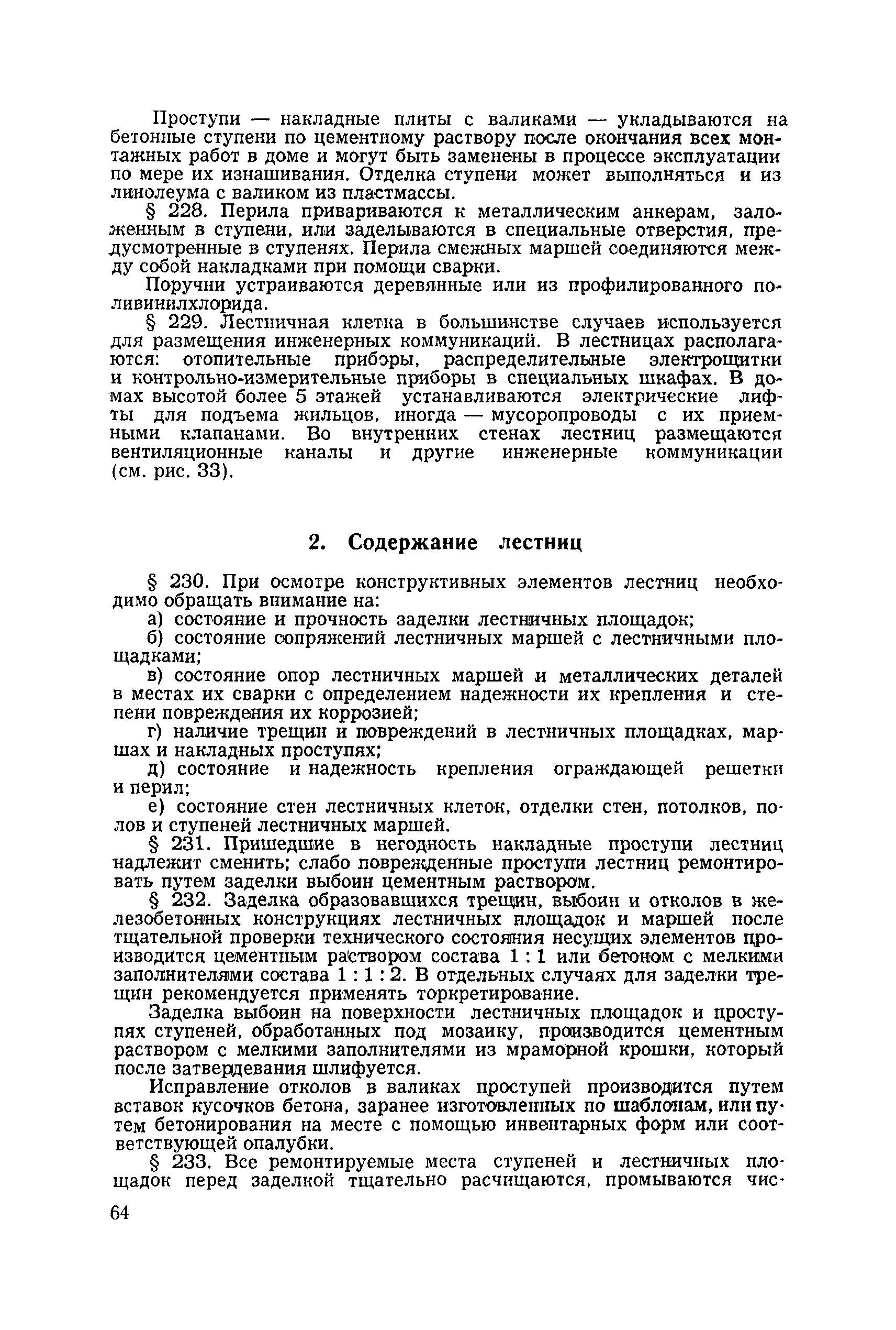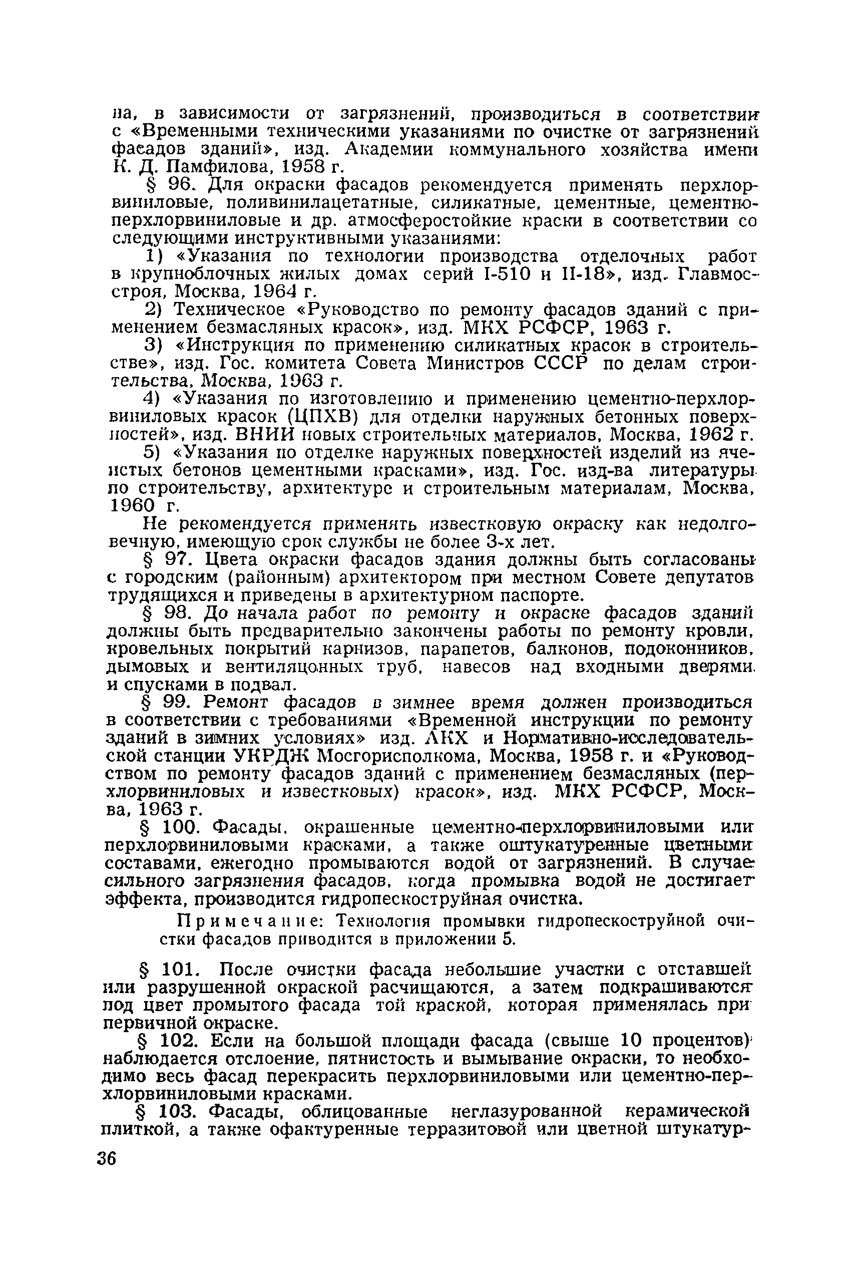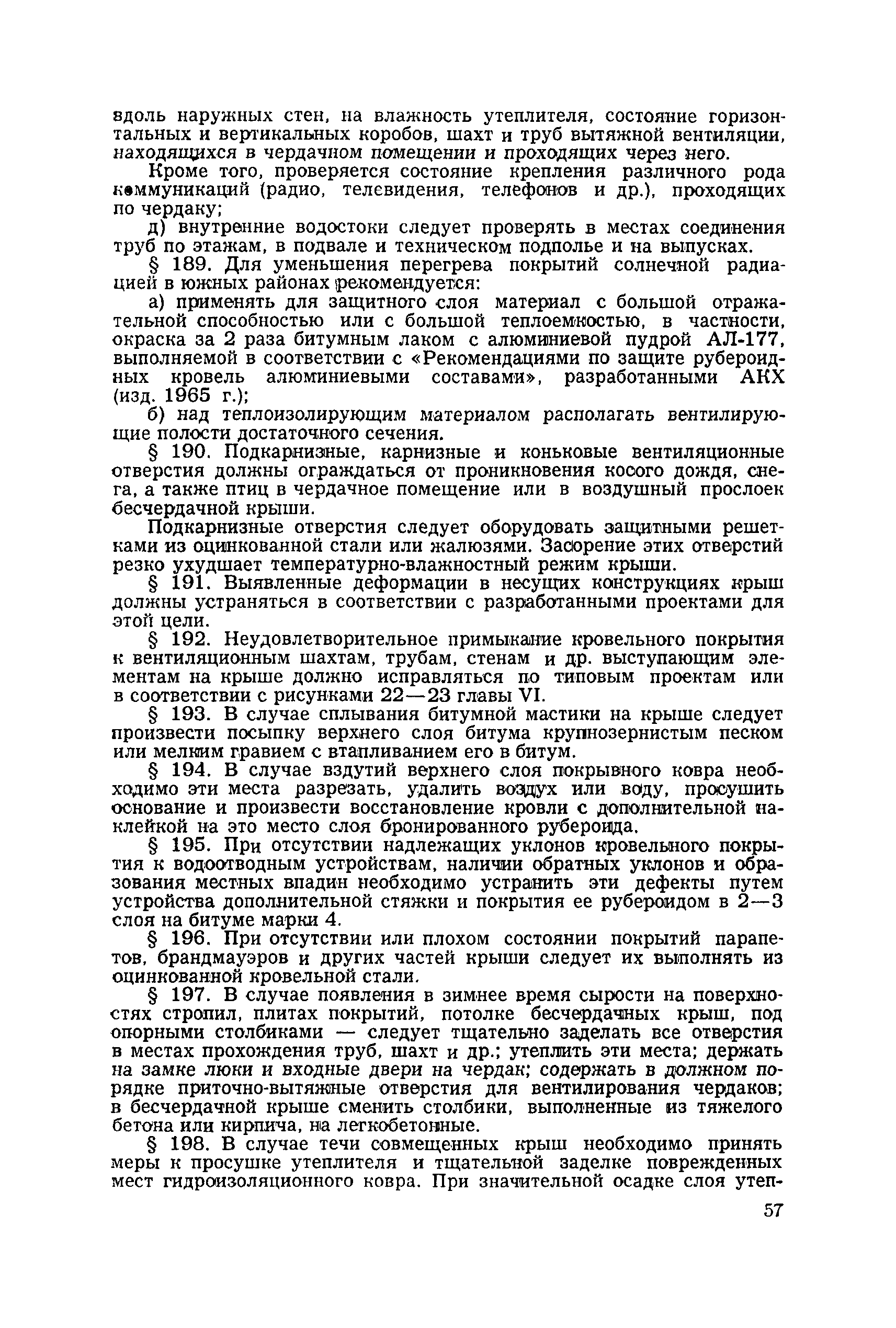 | Оглавление: | Аннотация Введение Общие указания Раздел первый. Содержание отдельных частей крупноблочных жилых домов Общая часть Глава I. Фундаменты и подвальные помещения 1. Краткое описание сборных фундаментов и стен подвальных помещений 2. Содержание фундаментов. Подвальных помещений и технических подполий Глава II. Стены 1. Краткое описание стен крупноблочных жилых домов 2. Содержание крупноблочных стен а) Выявление и устранение повреждений стен и заделка стыков б) Устранение отсыревания и промерзания наружных стен Глава III. Фасады и балконы 1. Краткое описание 2. Содержание фасадов 3. Содержание выступающих архитектурных деталей фасадов (балконов, эркеров, карнизов и др.) Глава IV. Перекрытия и полы 1. Краткое описание 2. Содержание перекрытий и полов Глава V. Перегородки 1. Краткое описание 2. Содержание перегородок 3. Усиление звукоизоляции внутренних стен Глава VI. Крыши и чердачные помещения 1. Краткое описание 2. Содержание крыш и чердачных помещений Глава VII. Окна и двери 1. Краткое описание 2. Содержание спаренных оконных переплетов и балконных дверей Глава VIII. Лестницы 1. Краткое описание 2. Содержание лестниц Раздел второй. Содержание инженерного оборудования в крупноблочных домах Глава IX. Центральное отопление 1. Краткое описание 2. Содержание системы центрального отопления Глава X. Холодное и горячее водоснабжение, канализация 1. Краткое описание 2. Содержание системы водопровода и канализации Глава XI. Электроснабжение Глава XII. Вентиляция 1. Краткое описание Приложение 1. Перечень основных документов, предъявляемых застройщиком (заказчиком) Государственной комиссии по приемке жилых зданий в эксплуатацию Приложение 2. Основные недостатки, возникающие при эксплуатации подземной части крупноблочных жилых домов, и рекомендации по их устранению Приложение 3. Выписка из временных указаний по гидрофобизационной защите стыков наружных стен и фасадов полносборных зданий (ВСН-7-64) Приложение 4. Указание по наблюдению за трещинами в крупноблочных домах Приложение 5. Указания по технологии очистки эксплуатируемых фасадов от загрязнений |