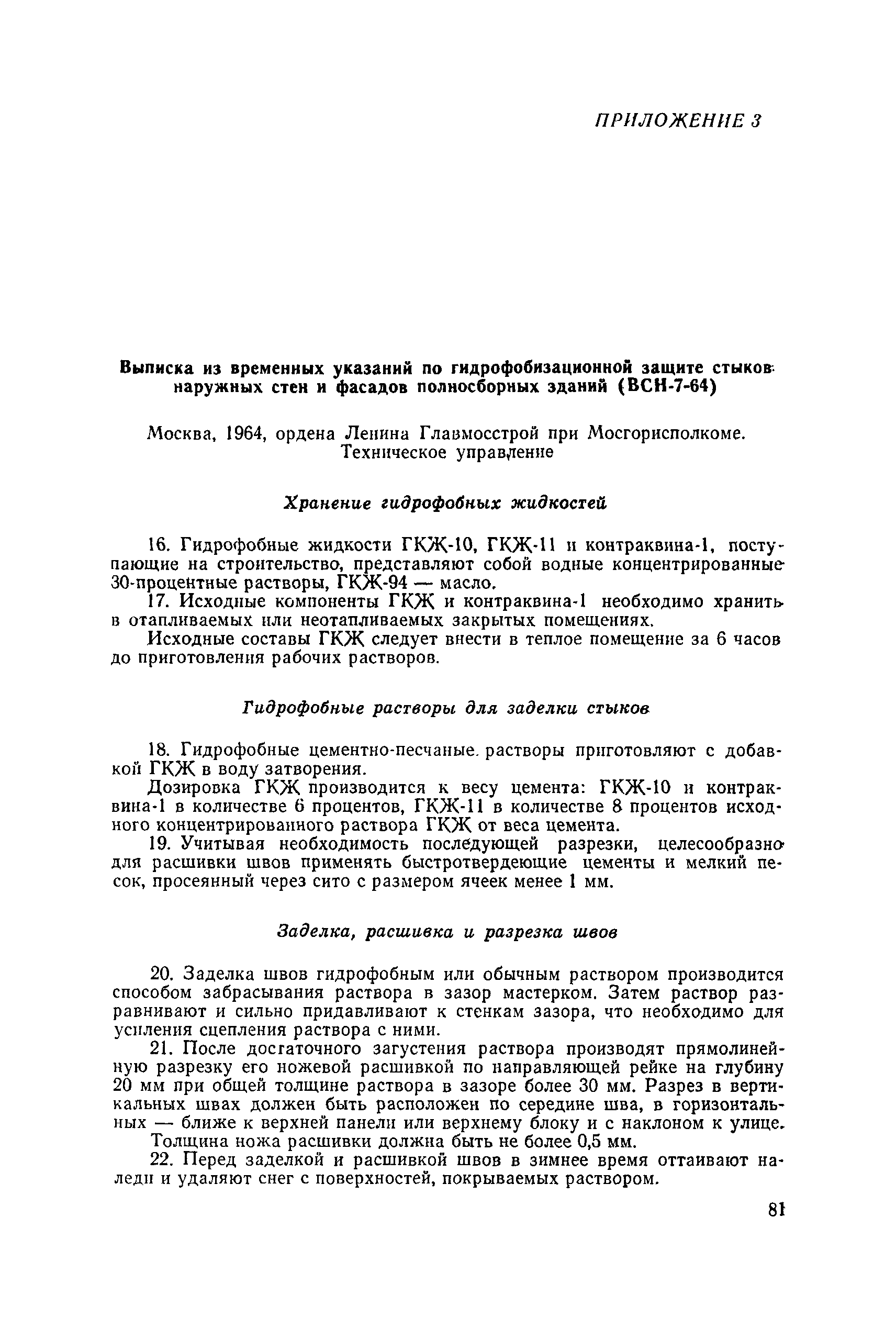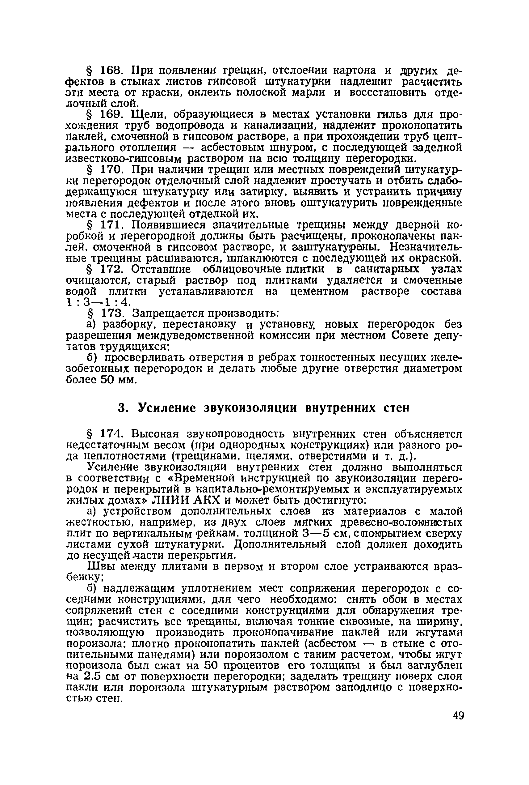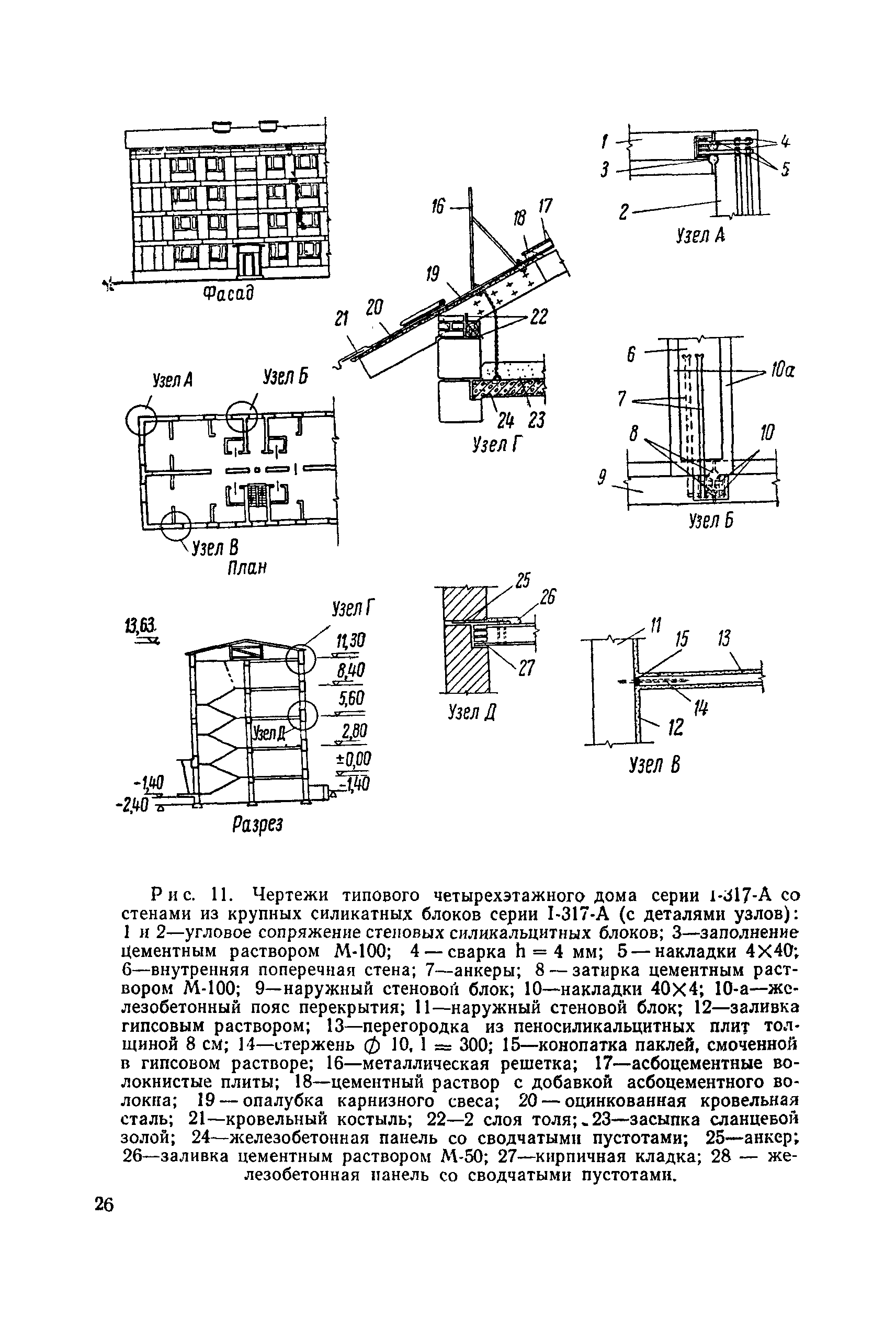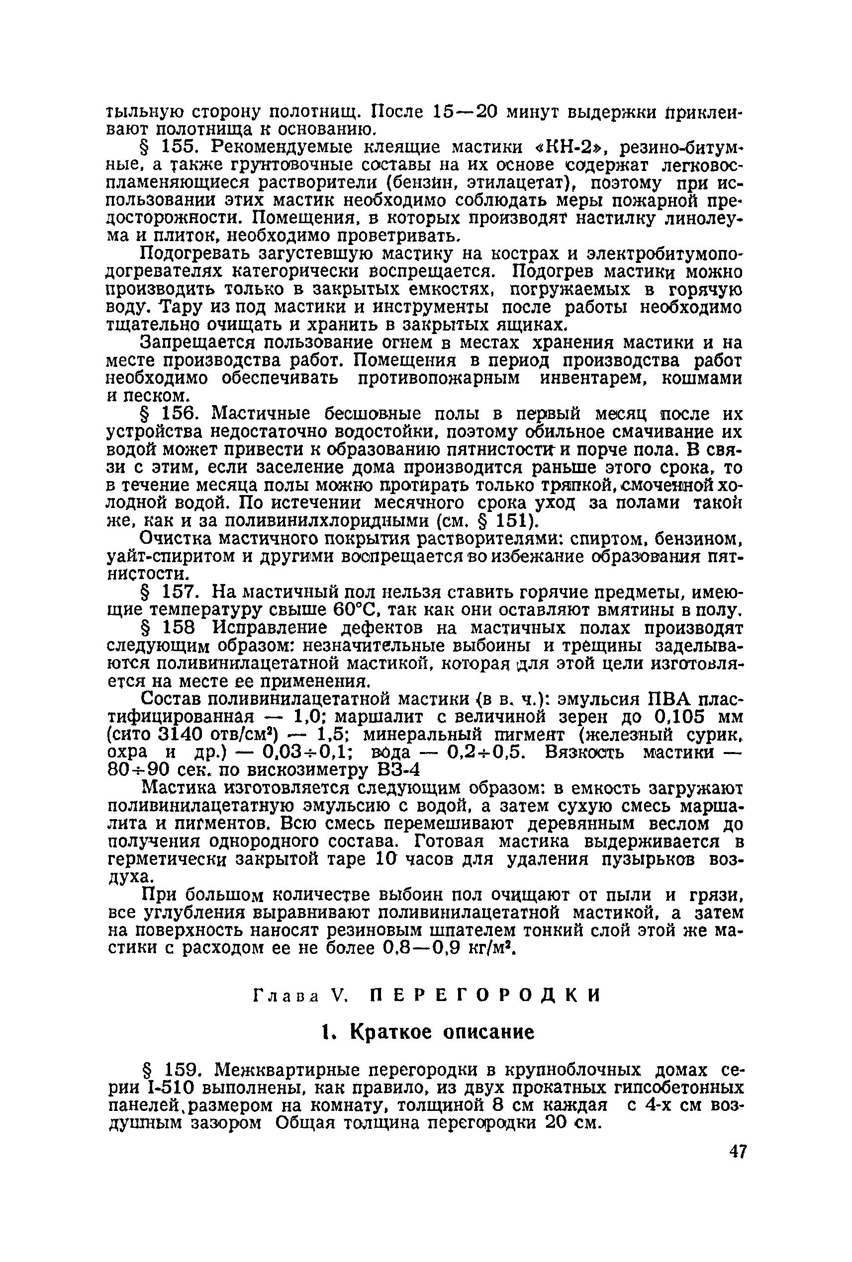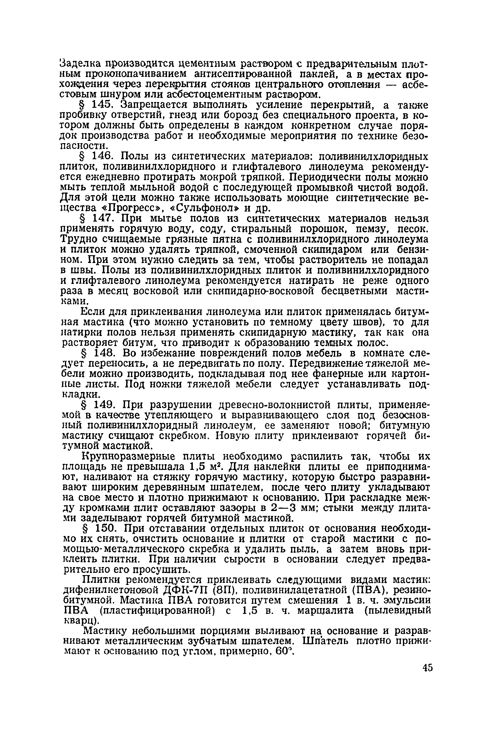 | Оглавление: | Аннотация Введение Общие указания Раздел первый. Содержание отдельных частей крупноблочных жилых домов Общая часть Глава I. Фундаменты и подвальные помещения 1. Краткое описание сборных фундаментов и стен подвальных помещений 2. Содержание фундаментов. Подвальных помещений и технических подполий Глава II. Стены 1. Краткое описание стен крупноблочных жилых домов 2. Содержание крупноблочных стен а) Выявление и устранение повреждений стен и заделка стыков б) Устранение отсыревания и промерзания наружных стен Глава III. Фасады и балконы 1. Краткое описание 2. Содержание фасадов 3. Содержание выступающих архитектурных деталей фасадов (балконов, эркеров, карнизов и др.) Глава IV. Перекрытия и полы 1. Краткое описание 2. Содержание перекрытий и полов Глава V. Перегородки 1. Краткое описание 2. Содержание перегородок 3. Усиление звукоизоляции внутренних стен Глава VI. Крыши и чердачные помещения 1. Краткое описание 2. Содержание крыш и чердачных помещений Глава VII. Окна и двери 1. Краткое описание 2. Содержание спаренных оконных переплетов и балконных дверей Глава VIII. Лестницы 1. Краткое описание 2. Содержание лестниц Раздел второй. Содержание инженерного оборудования в крупноблочных домах Глава IX. Центральное отопление 1. Краткое описание 2. Содержание системы центрального отопления Глава X. Холодное и горячее водоснабжение, канализация 1. Краткое описание 2. Содержание системы водопровода и канализации Глава XI. Электроснабжение Глава XII. Вентиляция 1. Краткое описание Приложение 1. Перечень основных документов, предъявляемых застройщиком (заказчиком) Государственной комиссии по приемке жилых зданий в эксплуатацию Приложение 2. Основные недостатки, возникающие при эксплуатации подземной части крупноблочных жилых домов, и рекомендации по их устранению Приложение 3. Выписка из временных указаний по гидрофобизационной защите стыков наружных стен и фасадов полносборных зданий (ВСН-7-64) Приложение 4. Указание по наблюдению за трещинами в крупноблочных домах Приложение 5. Указания по технологии очистки эксплуатируемых фасадов от загрязнений |