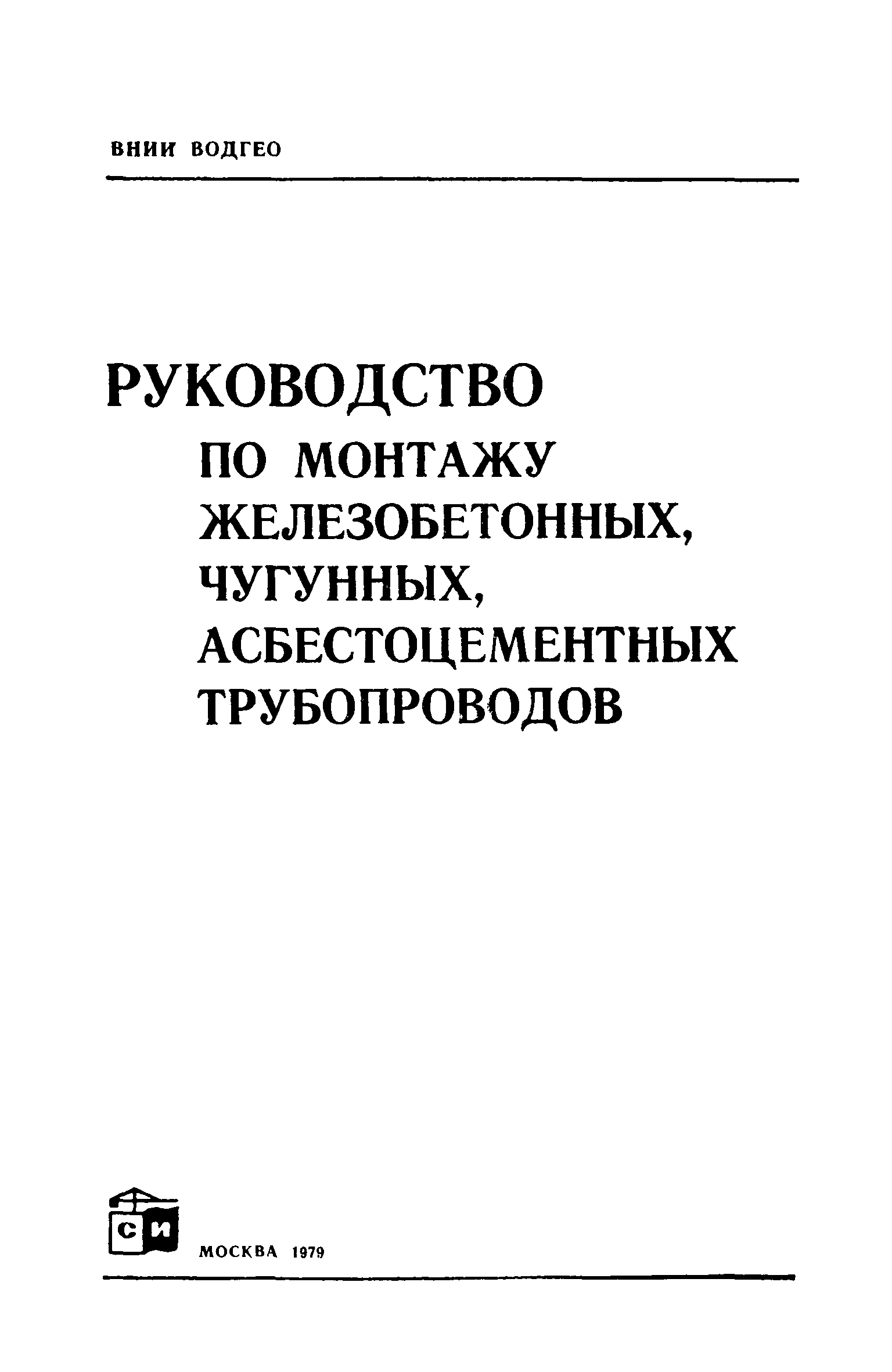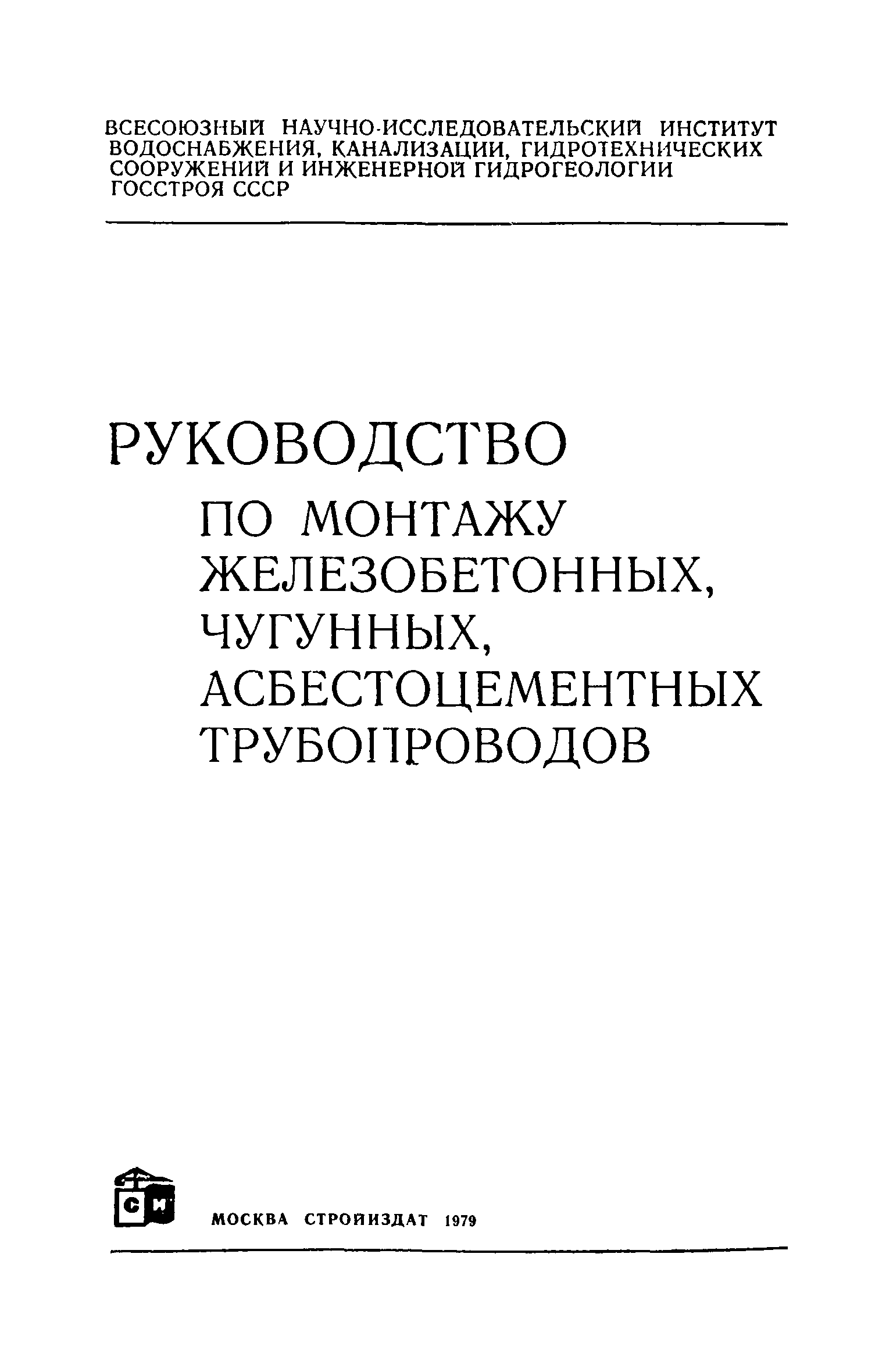| Название рус.: | Руководство по монтажу железобетонных, чугунных, асбестоцементных трубопроводов |