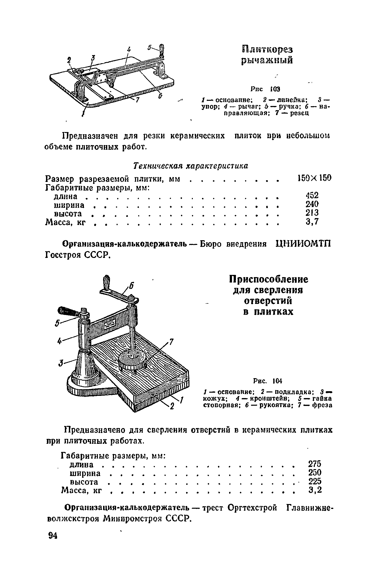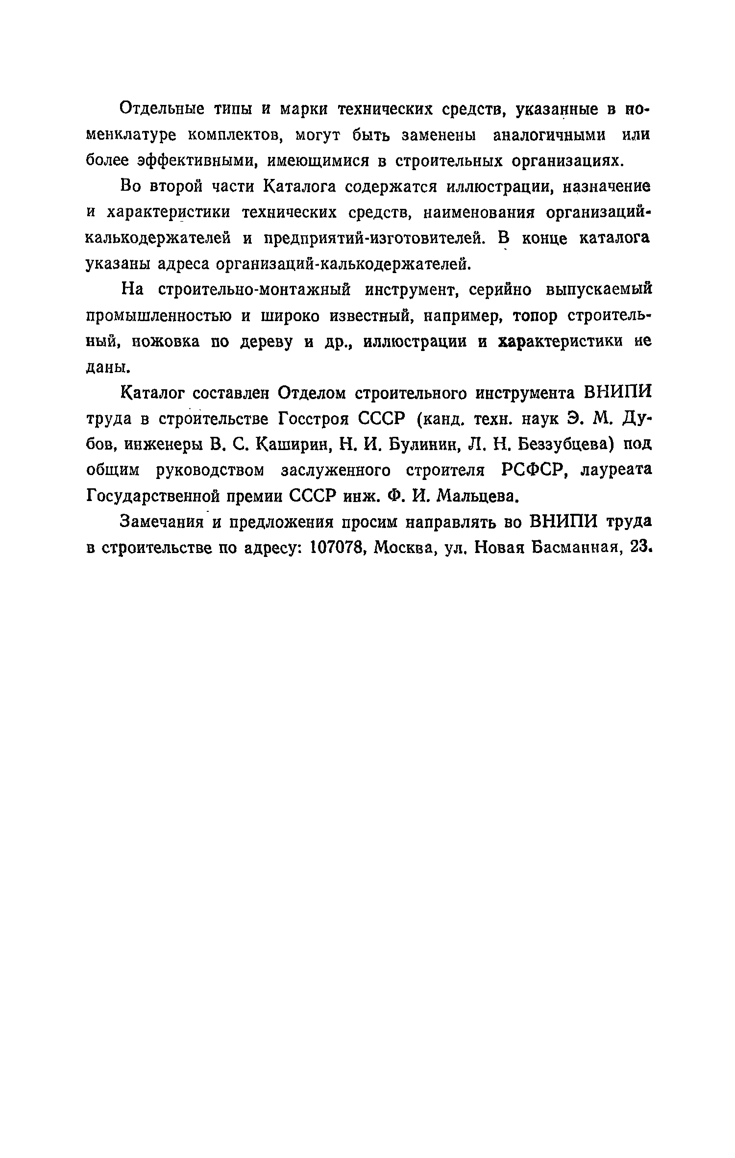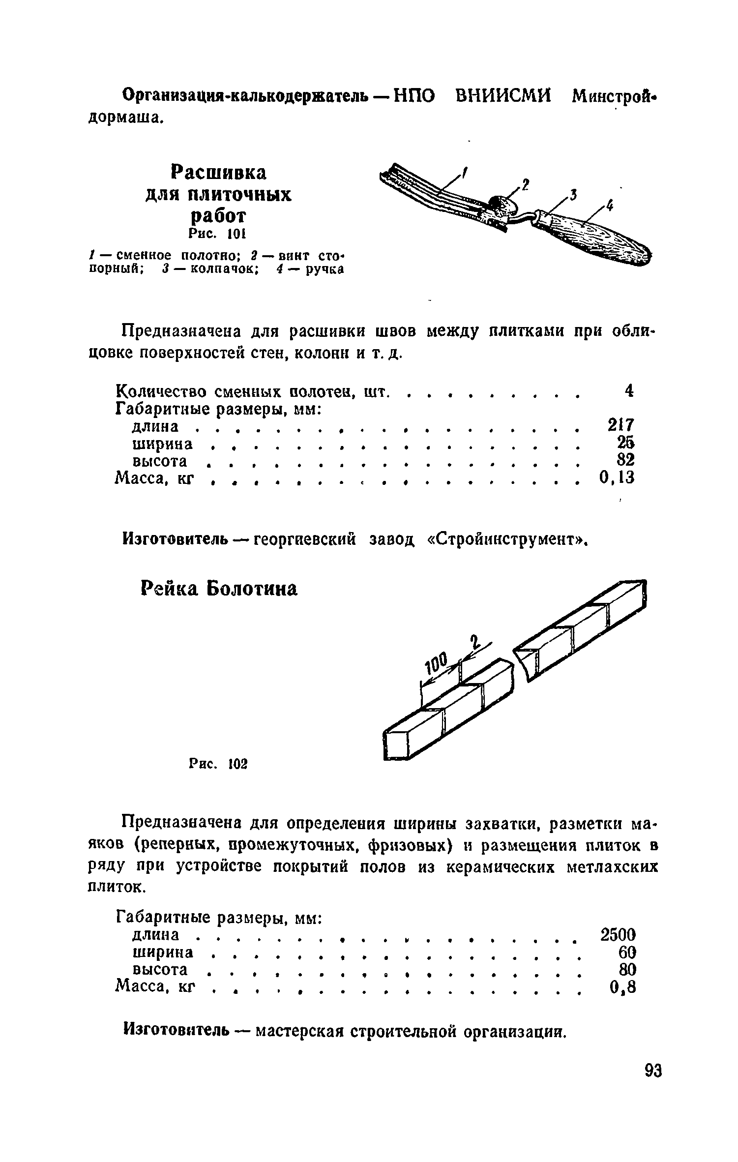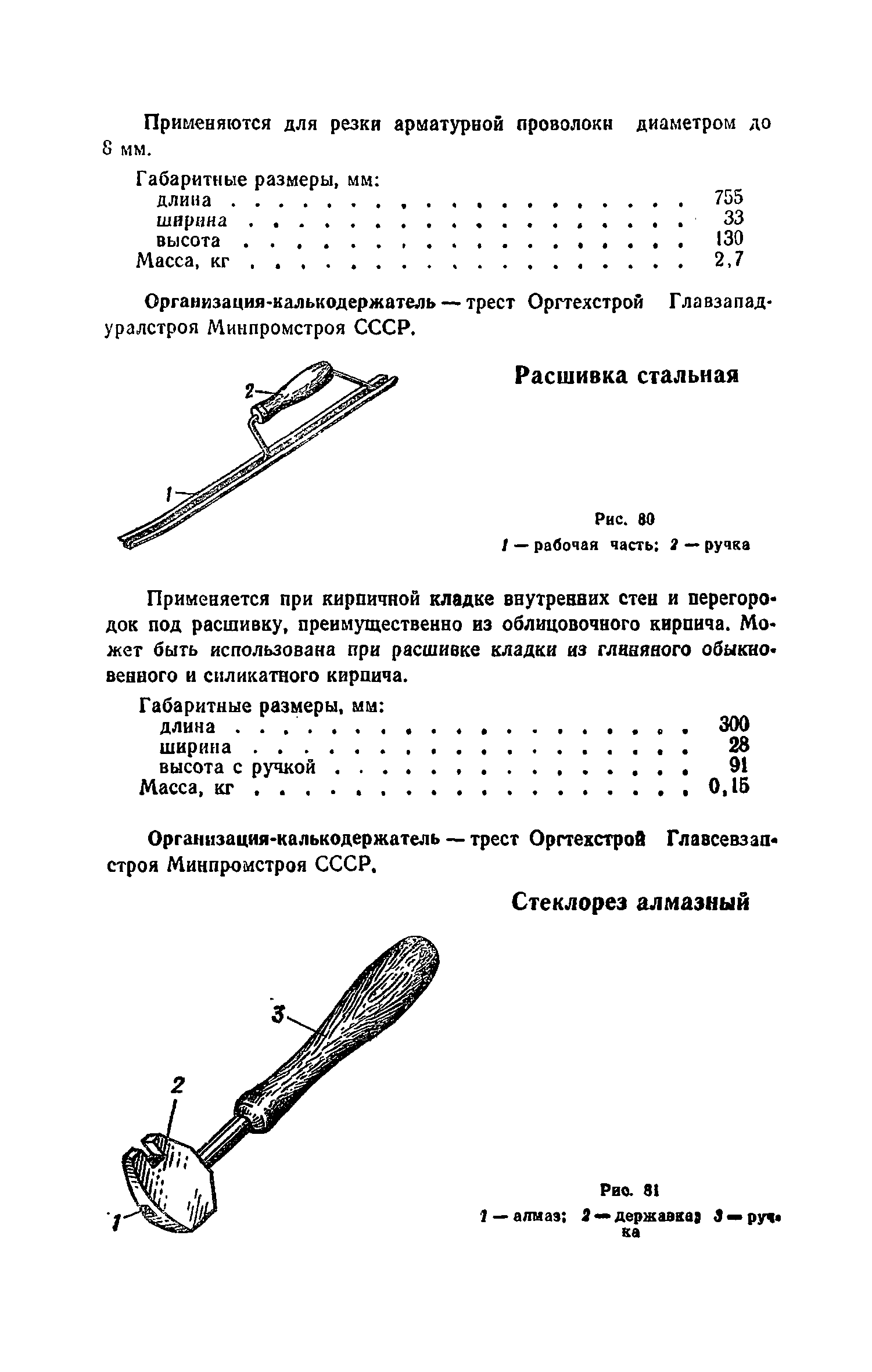 | Оглавление: | Предисловие I. Численный и профессионально-квалификационный состав бригад (звеньев) и трудовые процессы, выполняемые ими II. Состав технологических комплектов (нормокомплектов) 1. Технологический комплект технических средств для производства плотничных и столярных работ 2. Технологический комплект технических средств для производства работ по устройству внутренних стен и перегородок из кирпича при смонтированном каркасе 3. Технологический комплект технических средств для производства работ по остеклению металлических и деревянных переплетов 4. Технологический комплект технических средств для производства плиточных работ III. Характеристики технических средств 1. Средства малой механизации 2. Энергетическое оборудование 3. Строительная оснастка 4. Ручной строительно-монтажный инструмент 5. Средства измерения и контроля 6. Средства индивидуальной защиты Приложение. Организации-калькодержатели |