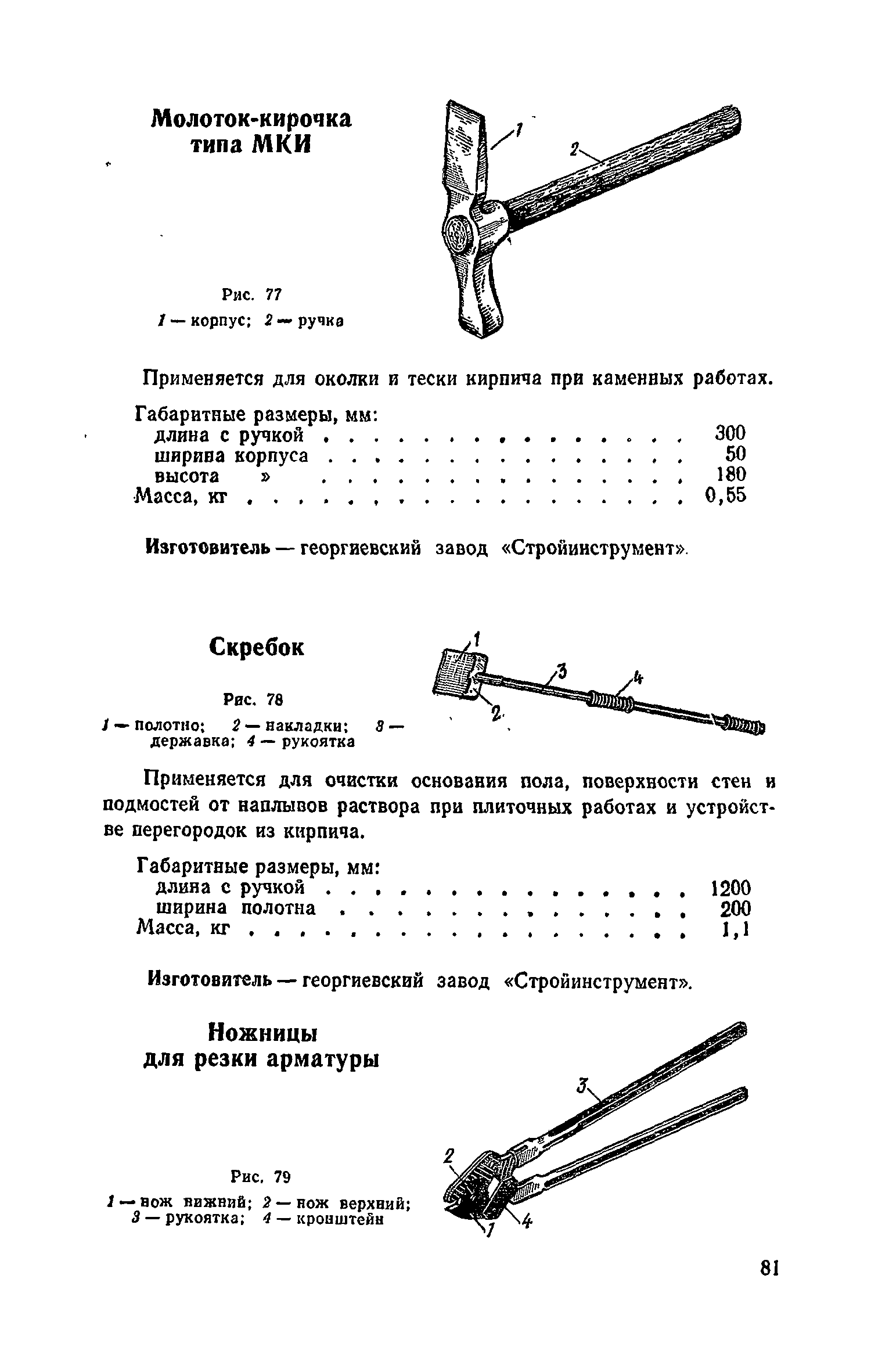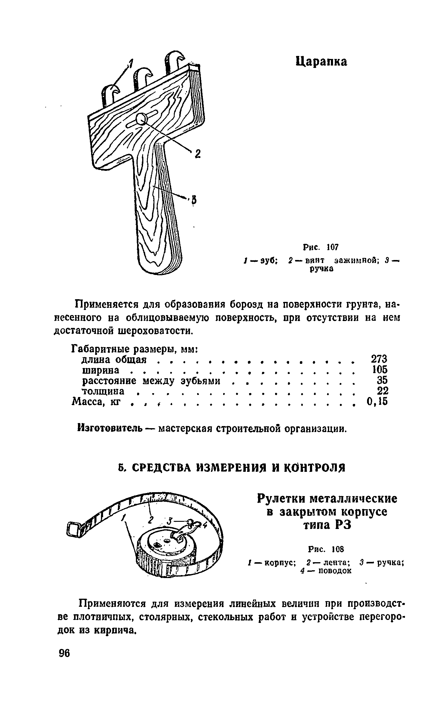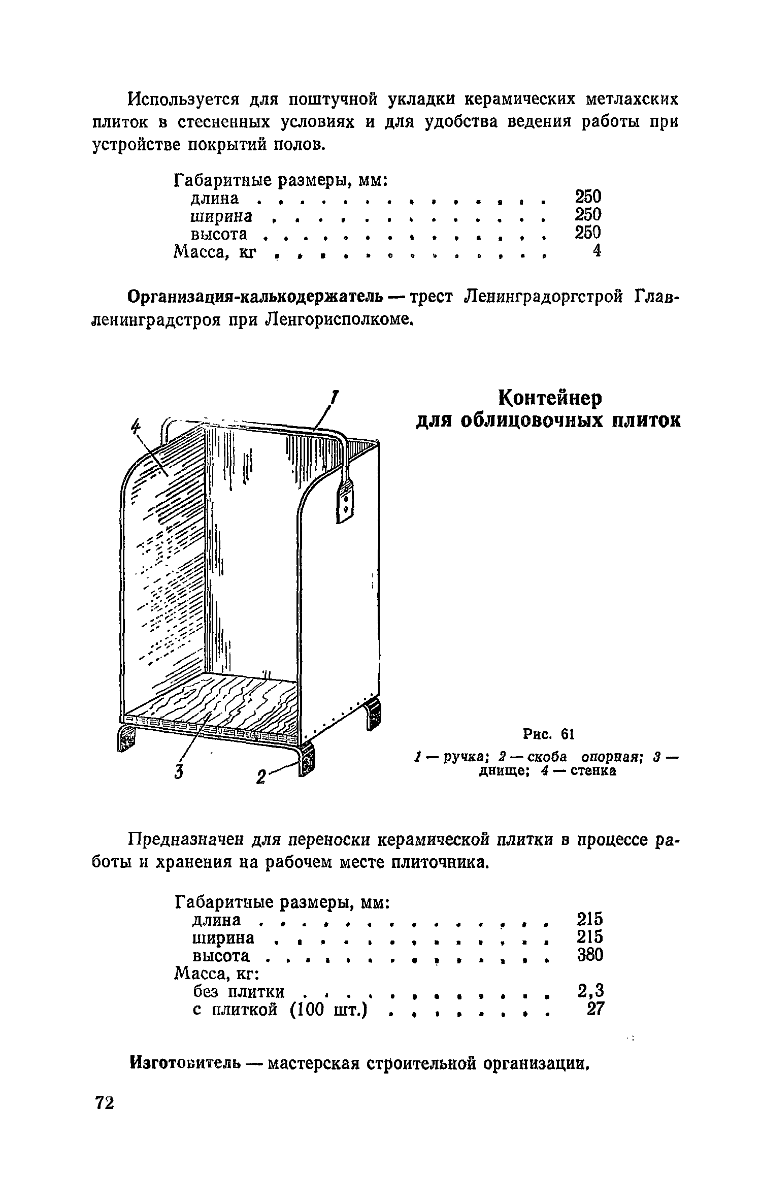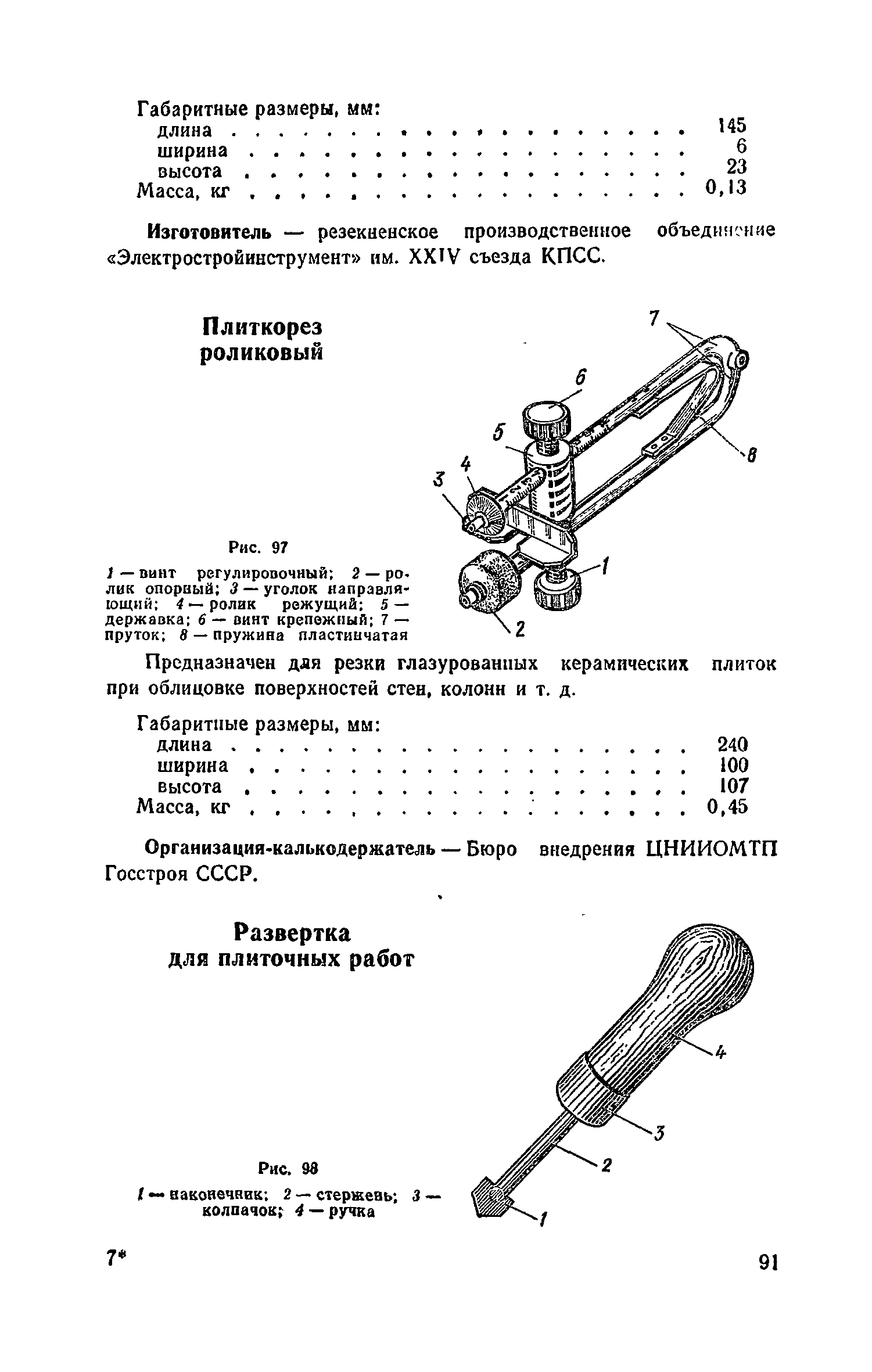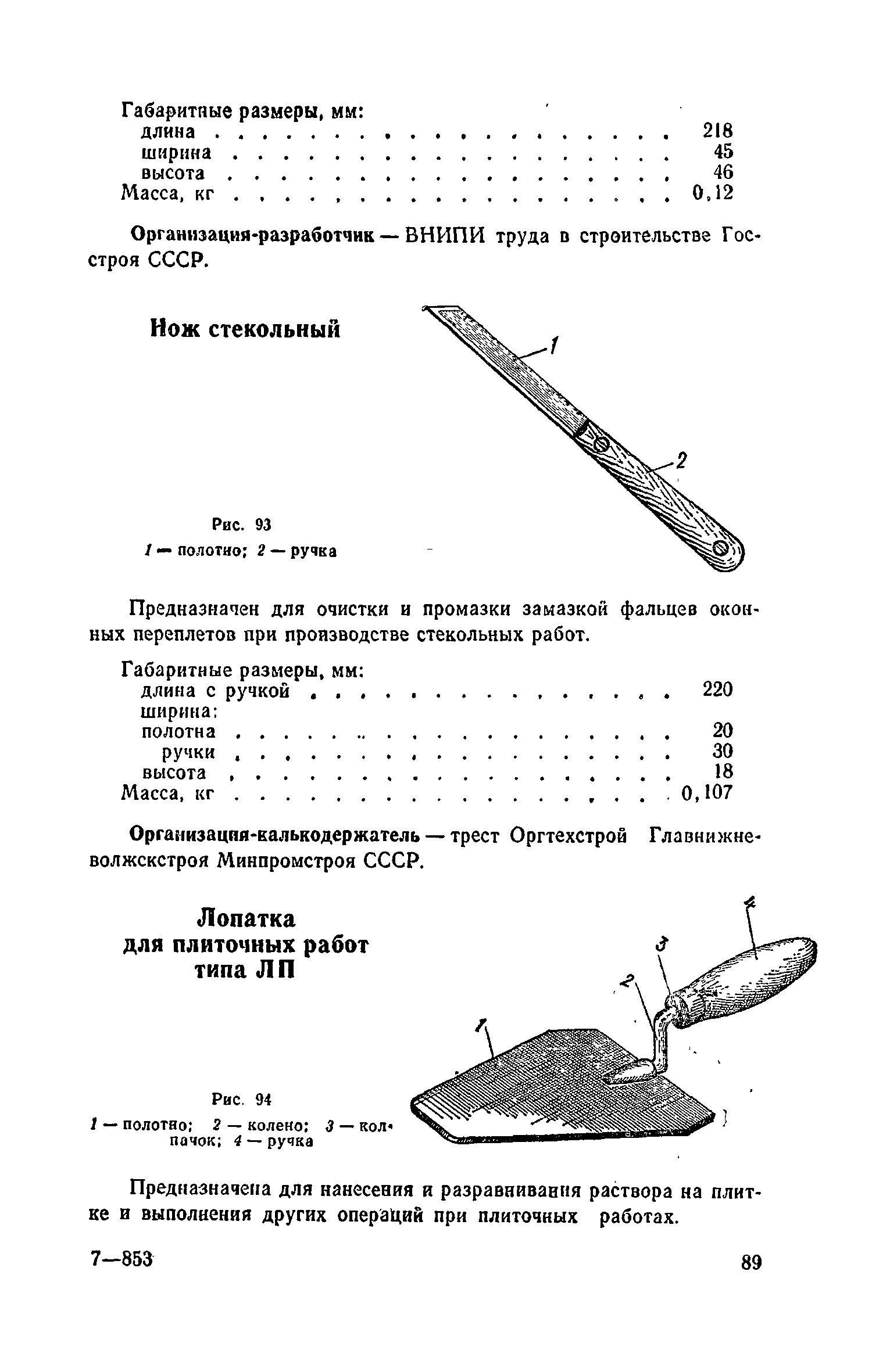 | Оглавление: | Предисловие I. Численный и профессионально-квалификационный состав бригад (звеньев) и трудовые процессы, выполняемые ими II. Состав технологических комплектов (нормокомплектов) 1. Технологический комплект технических средств для производства плотничных и столярных работ 2. Технологический комплект технических средств для производства работ по устройству внутренних стен и перегородок из кирпича при смонтированном каркасе 3. Технологический комплект технических средств для производства работ по остеклению металлических и деревянных переплетов 4. Технологический комплект технических средств для производства плиточных работ III. Характеристики технических средств 1. Средства малой механизации 2. Энергетическое оборудование 3. Строительная оснастка 4. Ручной строительно-монтажный инструмент 5. Средства измерения и контроля 6. Средства индивидуальной защиты Приложение. Организации-калькодержатели |