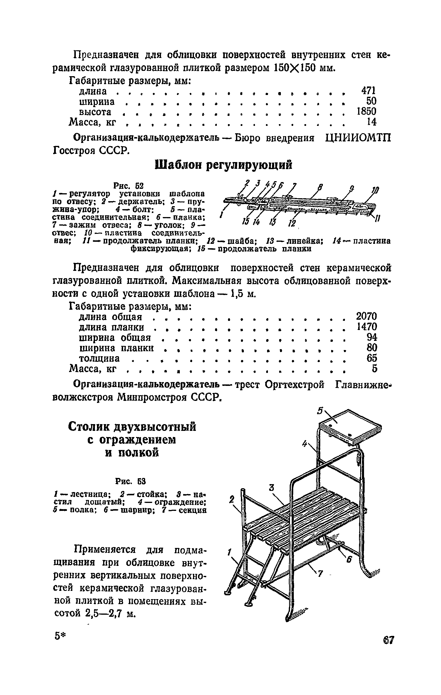| Область применения: | Документ содержит технологические комплекты технических средств для производства плотничных и столярных работ, устройства внутренних стен и перегородок из кирпича, при смонтированном каркасе, для остекления металлических и деревянных переплетов и производства плиточных работ. Для инженерно-технических работников строительных организаций, институтов и трестов Оргтехстрой. |