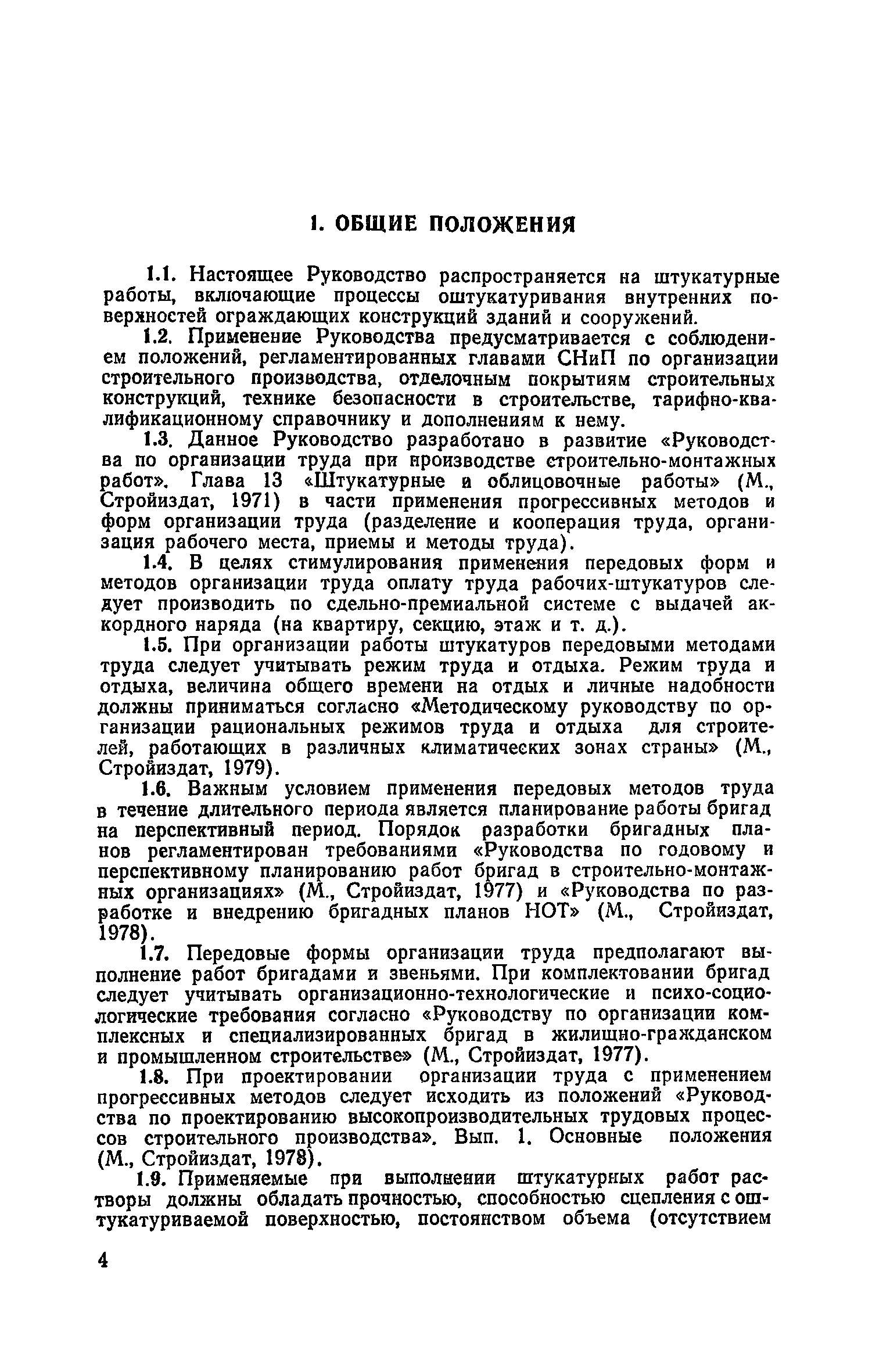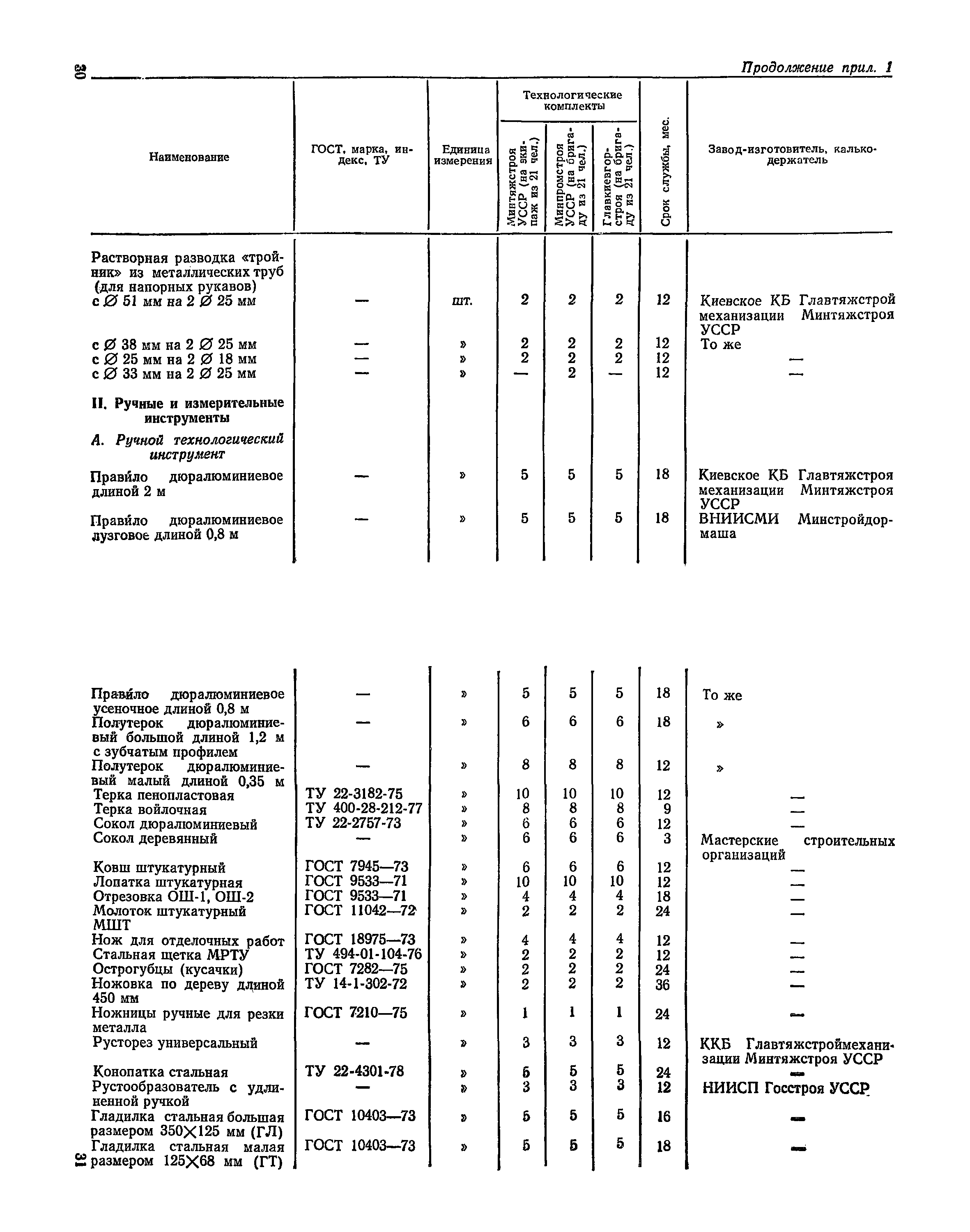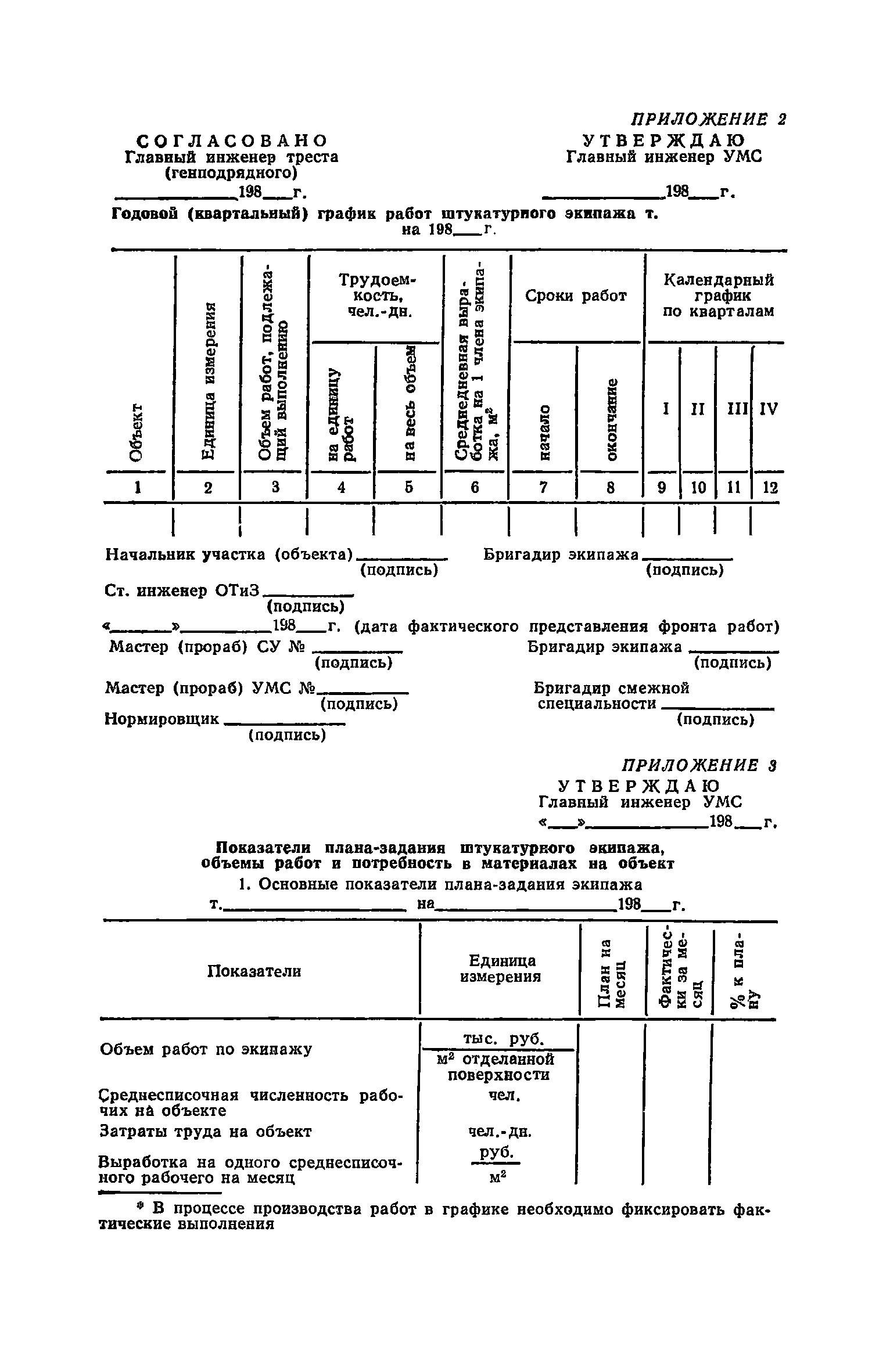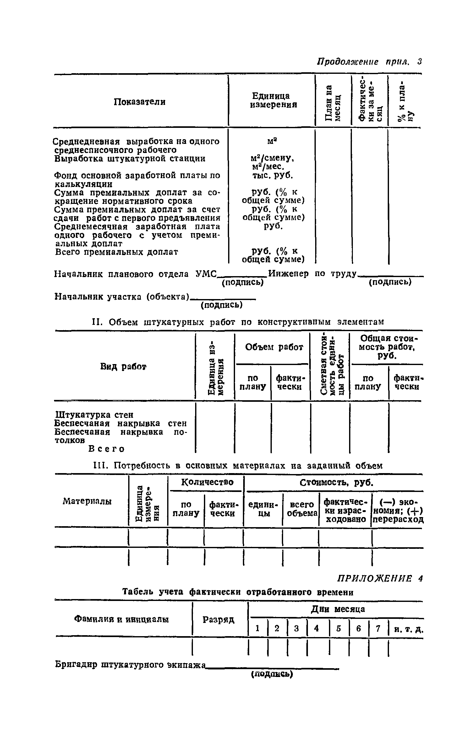 | Оглавление: | Предисловие 1. Общие положения 2. Организация труда при выполнении работ по методу комбината Харьковжилстрой 3. Организация труда при выполнении работ по методу комбината Днепрометаллургстрой 4. Организация труда при работе по методу Главкиевгорстроя 5. Средства механизации Приложение №1. Примеры технологических комплектов средств механизации, инструмента, приспособлений и инвентаря для оснащения специализированных экипажей (бригад) штукатуров Приложение №2. Годовой (квартальный) график работ штукатурного экипажа Приложение №3. Показатели плана-задания штукатурного экипажа, объемы работ и потребность в материалах на объект Приложение №4. Табель учета фактически отработанного времени |