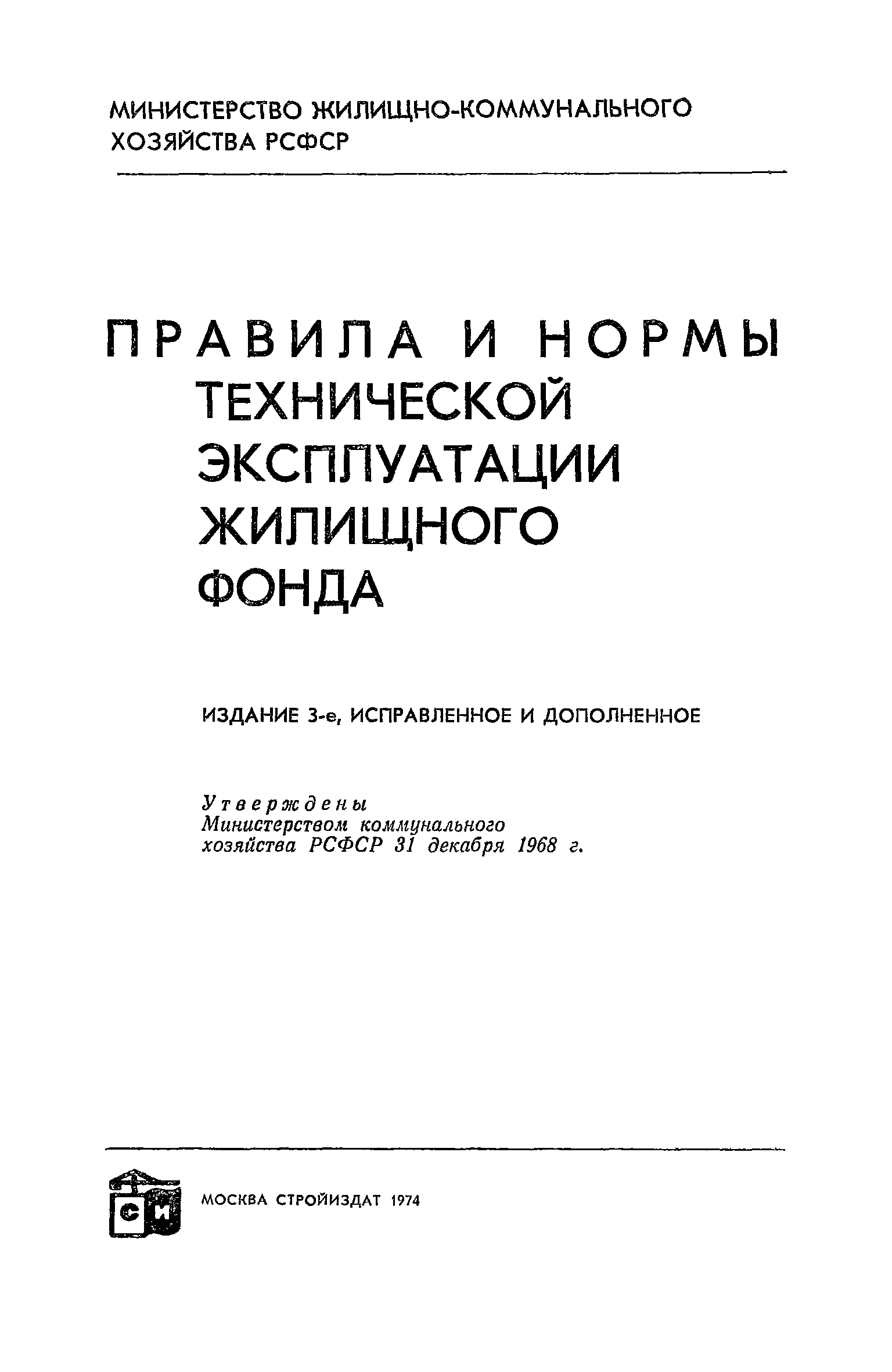 | | Утверждён: | 31.12.1968 Министерство коммунального хозяйства РСФСР