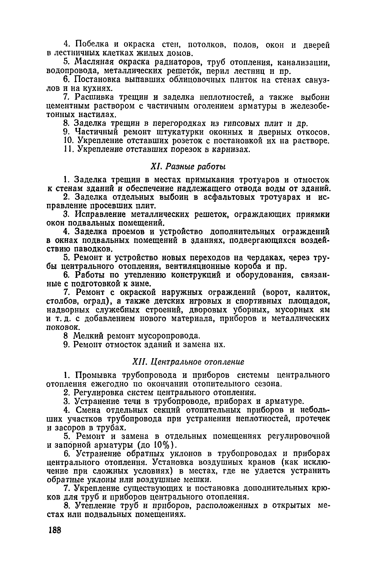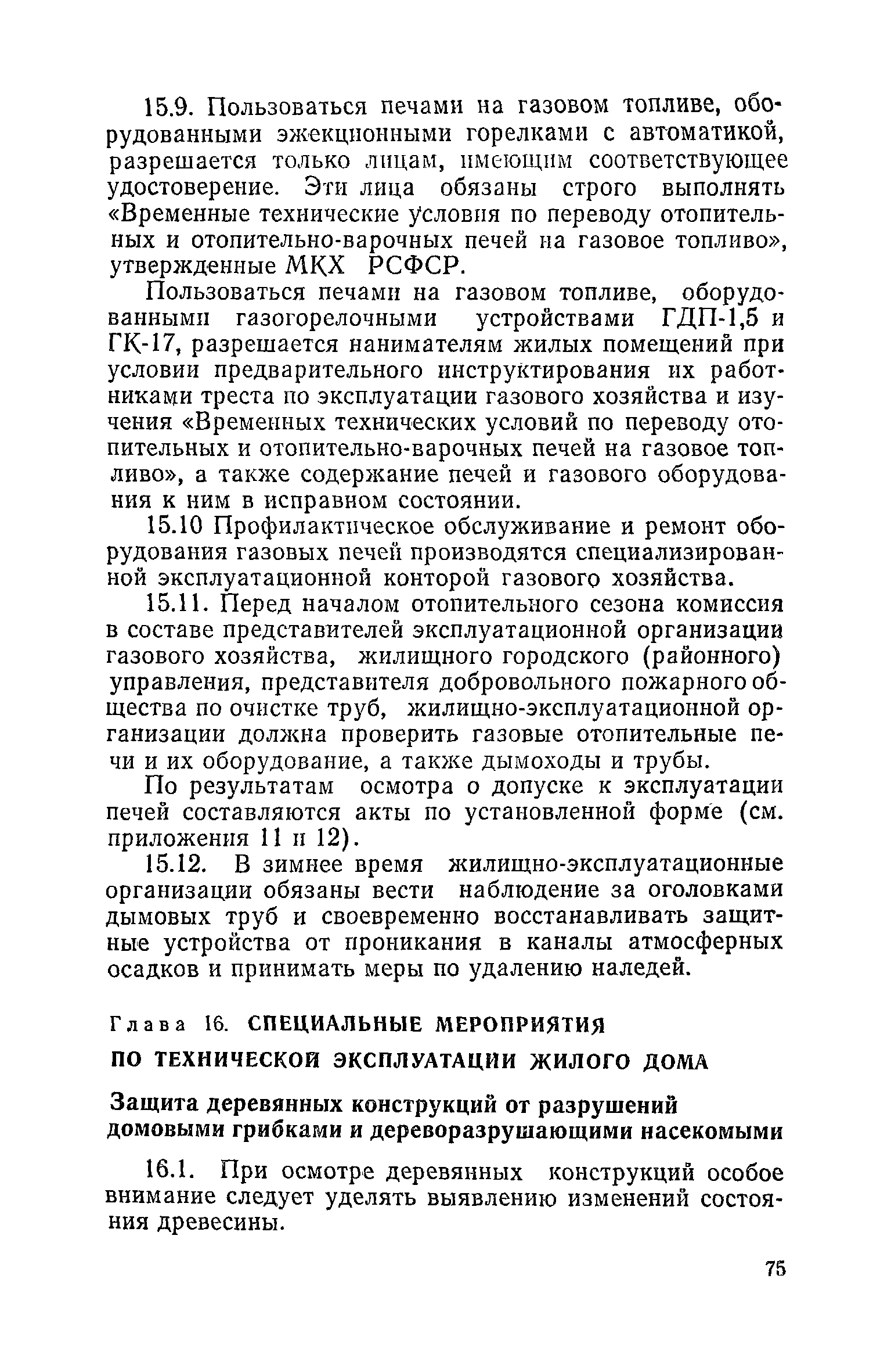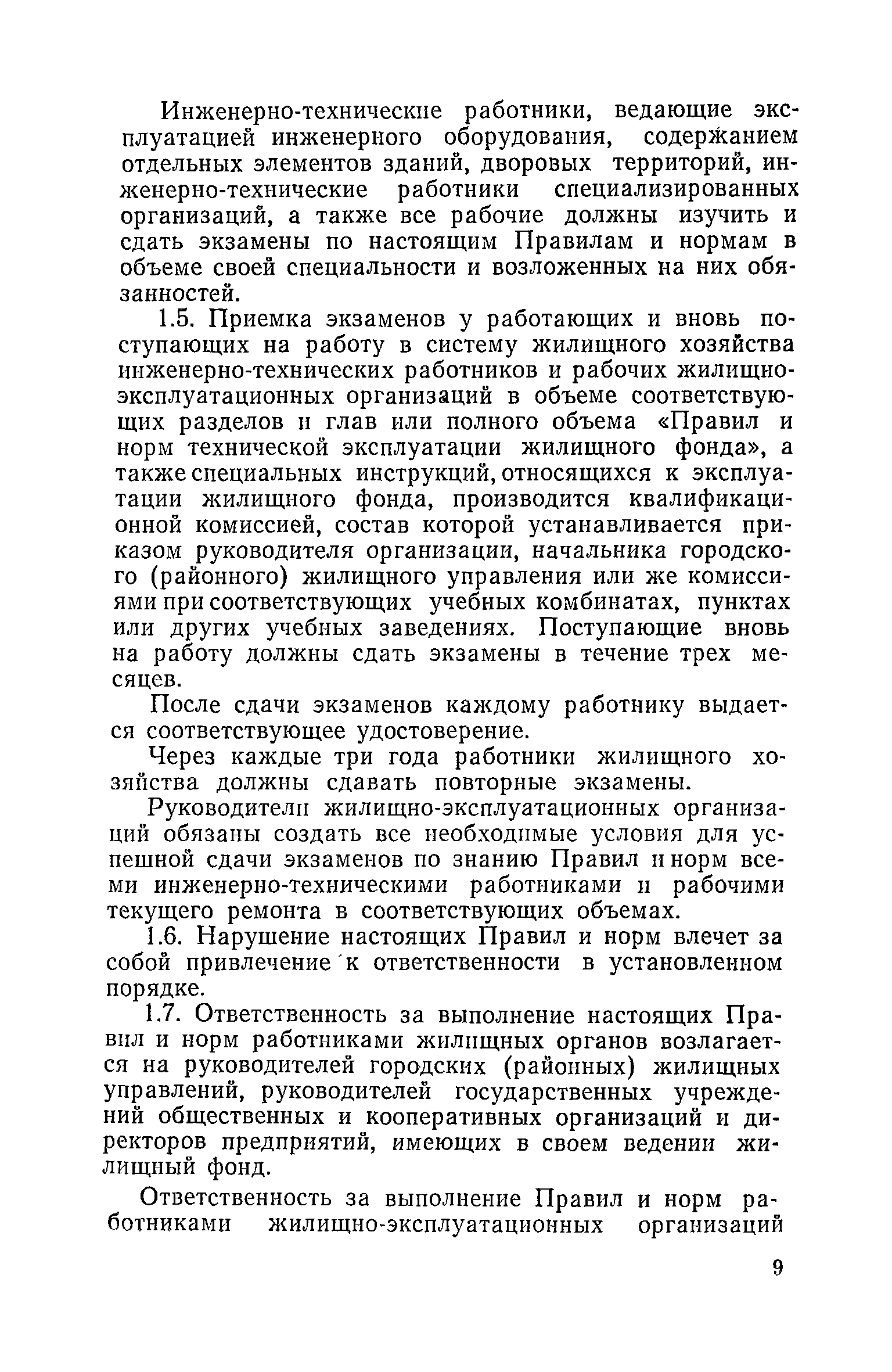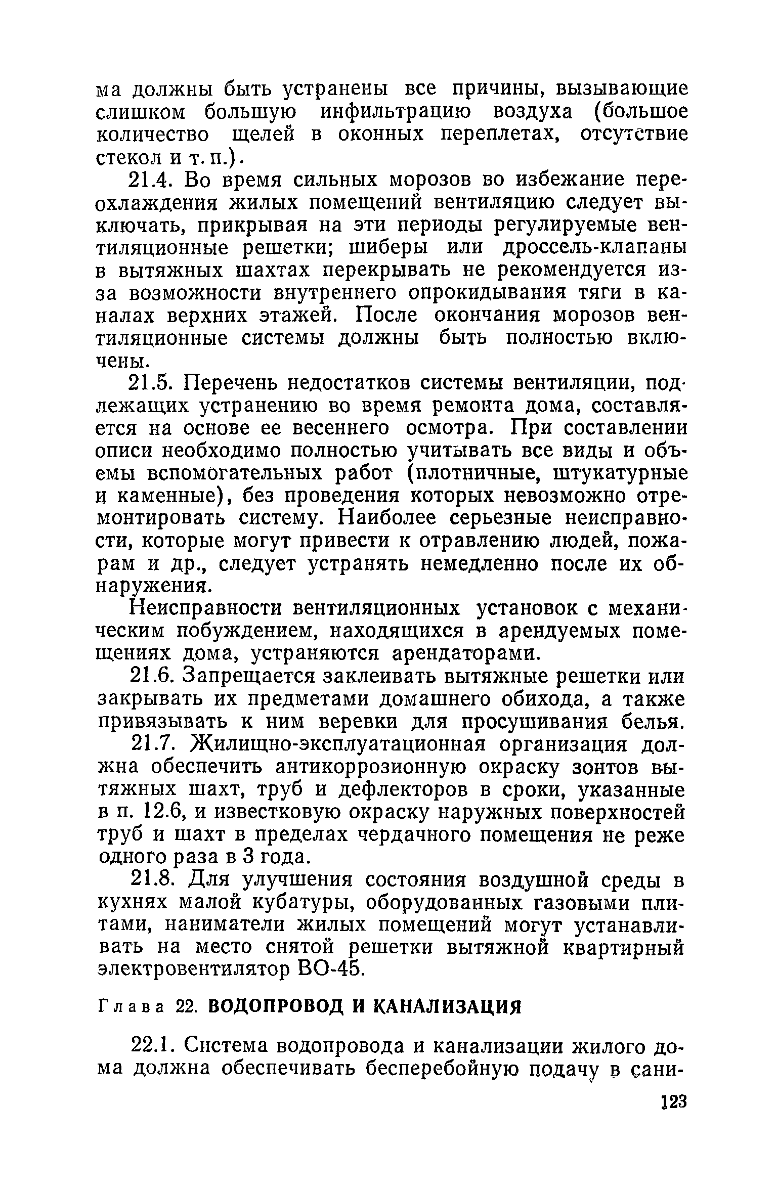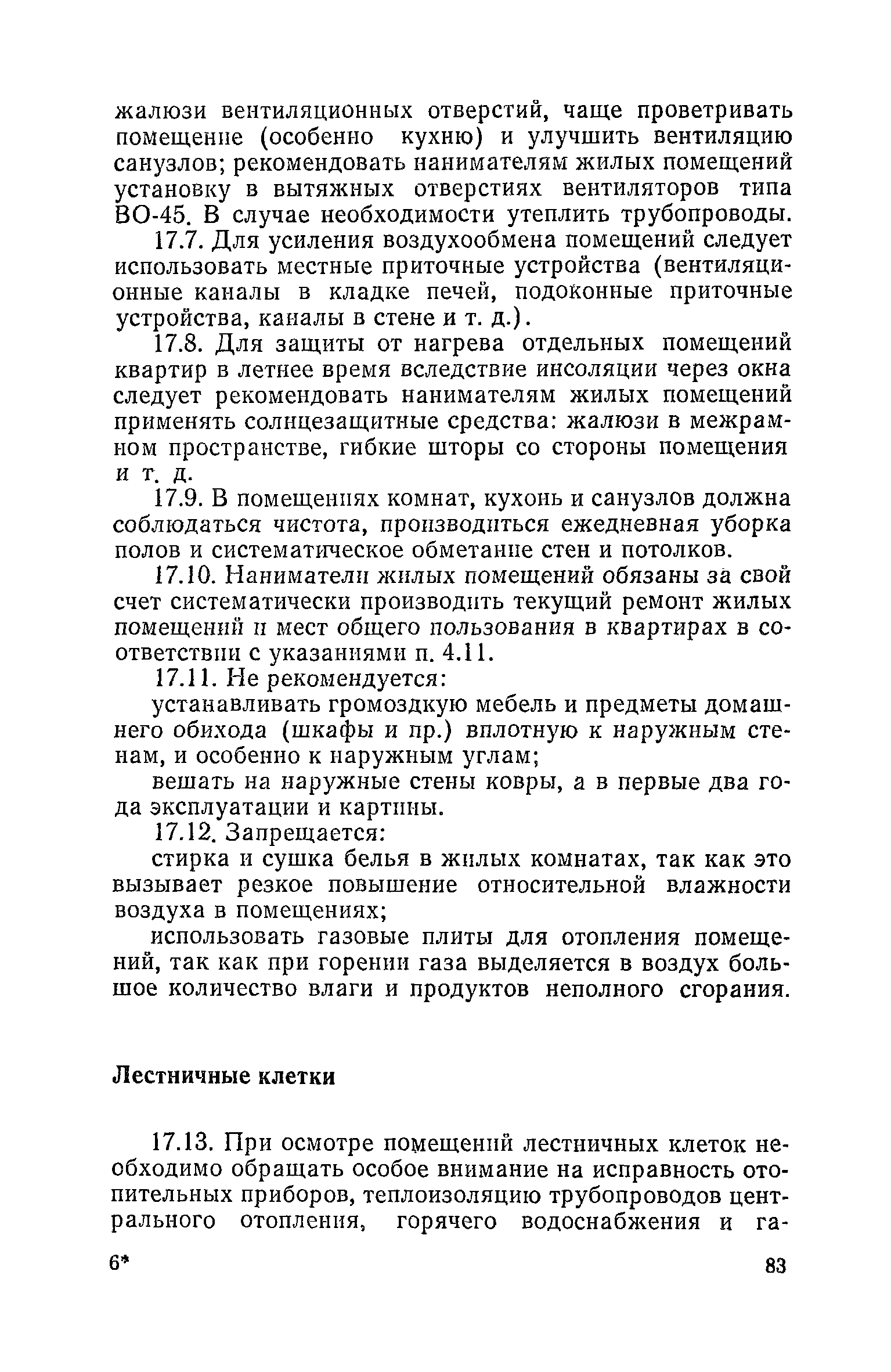 Правила и нормы технической эксплуатации жилищного фонда| Статус: | заменен | | Название рус.: | Правила и нормы технической эксплуатации жилищного фонда | | Дата добавления в базу: | 01.09.2013 | | Дата актуализации: | 01.01.2021 | | Область применения: | В документе приведены основные положения по технической эксплуатации жилищного фонда, содержанию помещений, инженерного оборудования, территорий домовладений, а также указания по переустройству и благоустройству домой старой застройки. | | Оглавление: | Введение Раздел первый. Основные положения Глава 1. Общие положения Глава 2. Управление жилищным хозяйством Глава 3. Порядок приемки жилищного хозяйства Приемка в эксплуатацию вновь выстроенных домов Приемка в эксплуатацию капитально отремонтированных жилых домов Приемка жилищного хозяйства при смене руководства Передача ведомственного жилищного фонда исполкомам местных Советов и инженерных сетей коммунальным предприятиям Глава 4. Система осмотра жилых домов Глава 5. Организация ремонта жилищного фонда и работ по его благоустройству Классификация работ по ремонту жилищного фонда Перечень работ по повышению благоустройства жилых домов, которые могут выполняться за счет средств, выделяемых на капитальный ремонт жилищного фонда Планирование и организация текущего ремонта Планирование и организация капитального ремонта и повышение уровня благоустройства жилых домов Раздел второй. Правила эксплуатации строительных конструкций и помещений Глава 6. Придомовая территория, фундаменты и стены подвальных помещений Придомовая территория Фундаменты и стены подвальных помещений Глава 7. Стены Каменные и крупнопанельные стены Деревянные стены Глава 8. Фасады Отделка фасадов Балконы, козырьки, лоджии и эркеры Глава 9. Перекрытия Железобетонные перекрытия (сборные и монолитные) Деревянные перекрытия (по деревянным и металлическим балкам) Сводчатые перекрытия Глава 10. Полы Деревянные полы Полы из линолеумов и синтетических материалов Ксилолитовые полы Полы керамические, мозаичные и цементные Глава 11. Перегородки Перегородки из неорганических материалов Деревянные перегородки Глава 12. Крыши Чердачные крыши Бесчердачные (совмещенные) крыши Водоотводящие устройства Очистка кровель от снега Глава 13. Окна, двери и световые фонари Окна и двери Световые фонари Глава 14. Лестницы Каменные и железобетонные лестницы Деревянные лестницы Глава 15. Печи Комнатные печи и кухонные очаги на твердом топливе Комнатные печи и кухонные очаги на газовом топливе Глава 16. Специальные мероприятия по технической эксплуатации жилого дома Защита деревянных конструкций от разрушений домовыми грибками и дереворазрушающими насекомыми Устранение сырости в эксплуатируемых зданиях Устранение шумов в жилых домах Противопожарная профилактика Подготовка жилых домов к зиме Глава 17. Эксплуатация жилых и вспомогательных помещений жилого дома Квартиры Лестничные клетки Чердачные помещения Подвалы и технические подполья Глава 18. Техническая эксплуатация жилых зданий в особых условиях Общие положения Районы просадочных грунтов Районы подрабатываемых территорий Сейсмические районы (сейсмичность более 6 баллов) Районы вечной мерзлоты Раздел третий. Правила эксплуатации инженерного оборудования в жилом доме Глава 19. Центральное отопление Глава 20. Горячее водосн