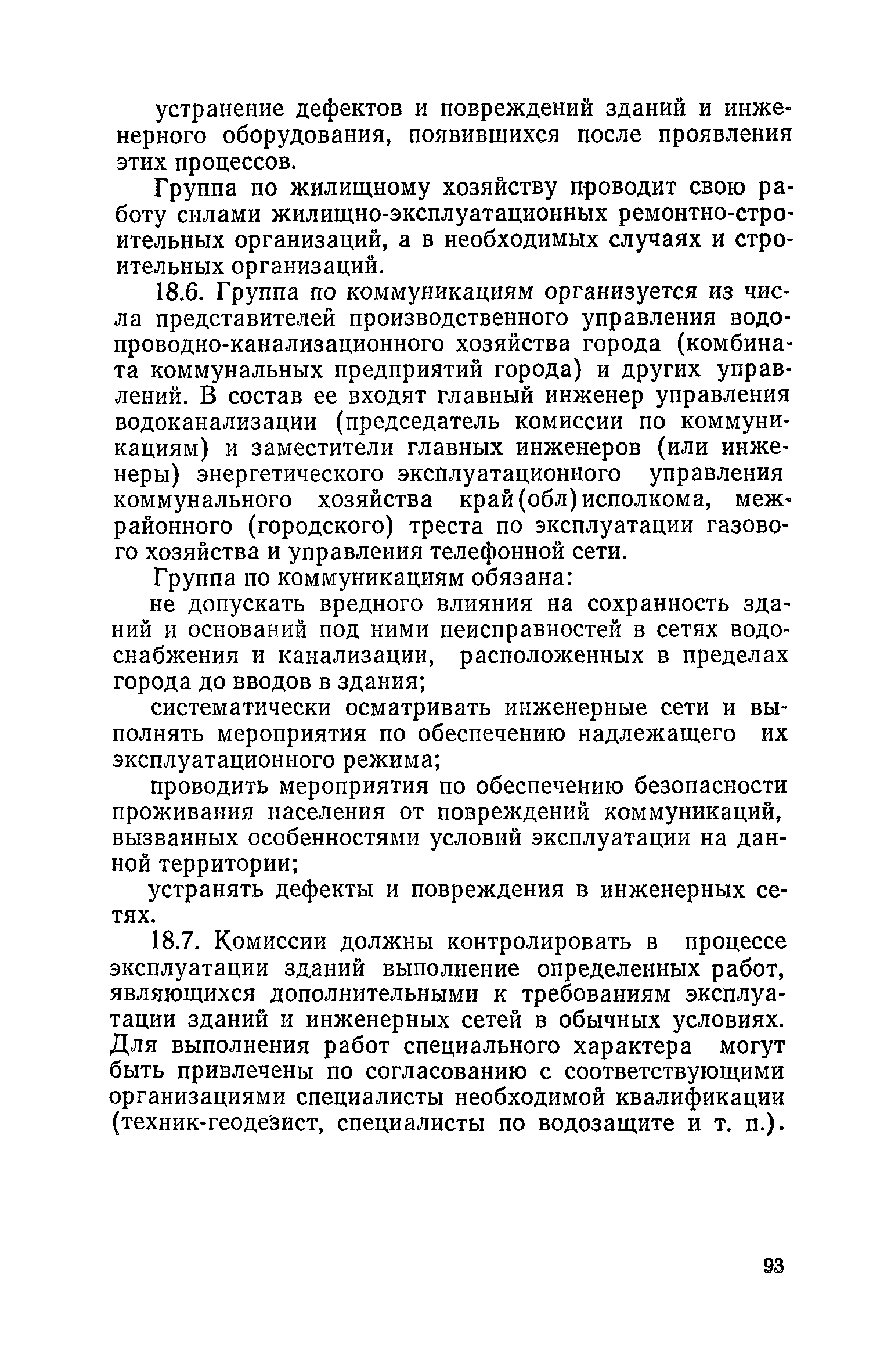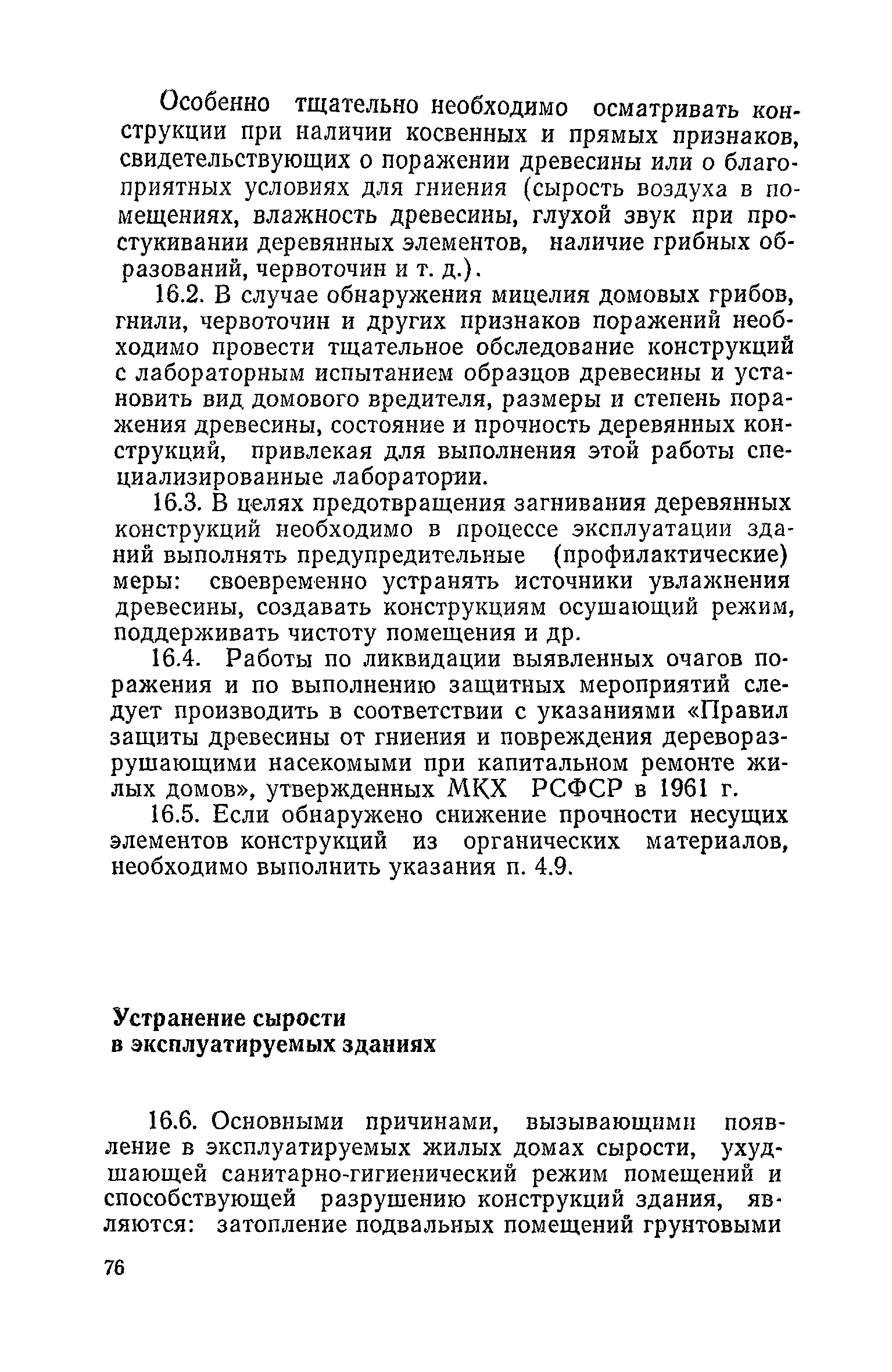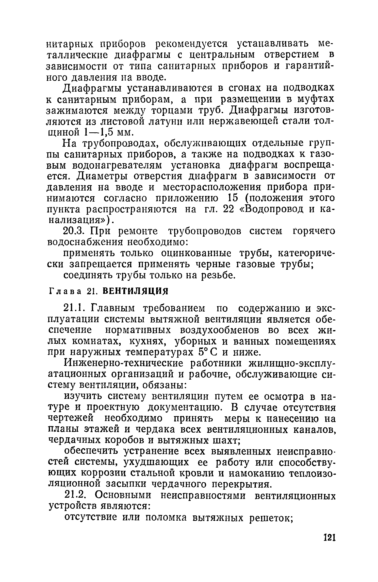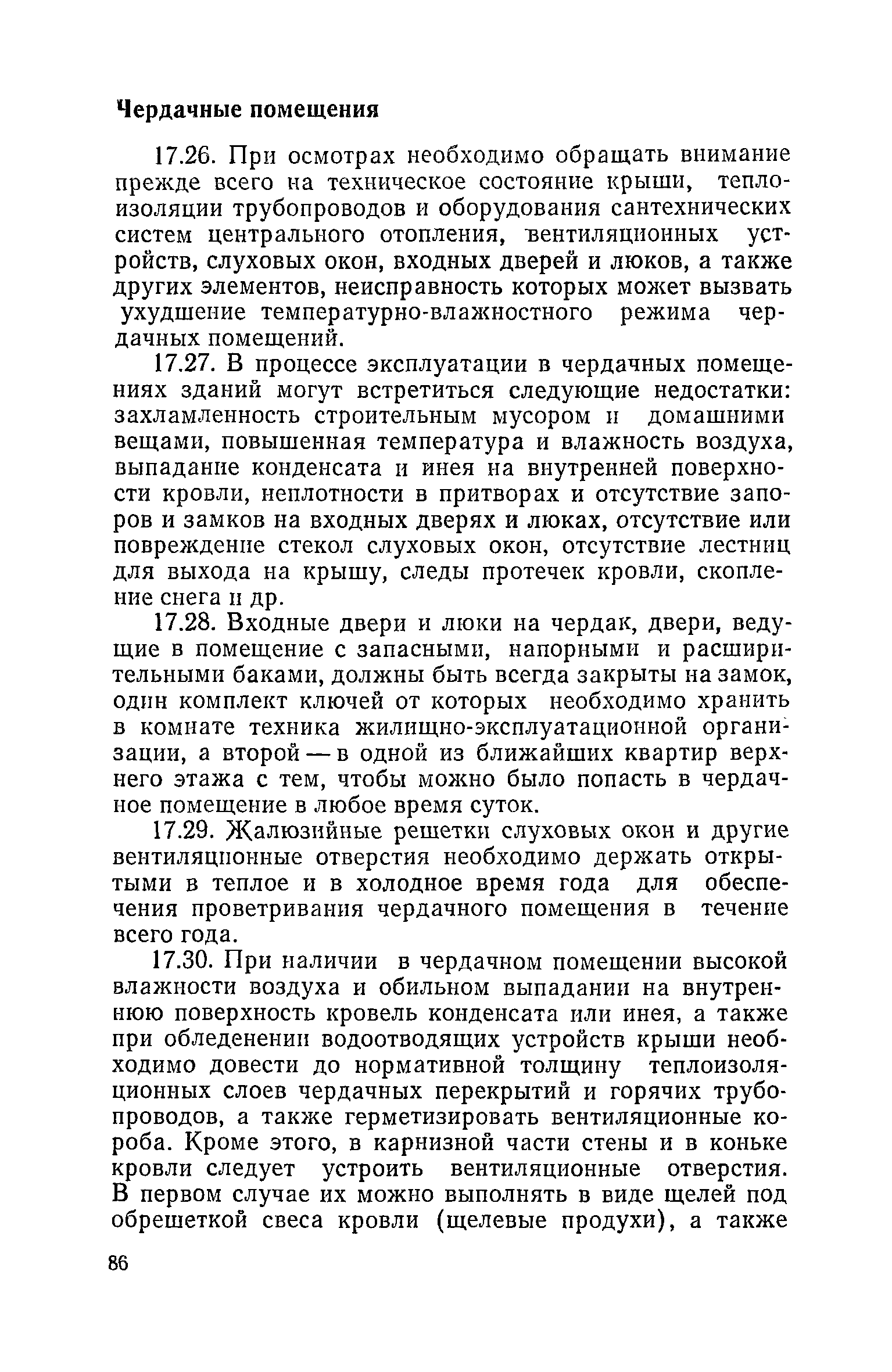 Правила и нормы технической эксплуатации жилищного фонда| Статус: | заменен | | Название рус.: | Правила и нормы технической эксплуатации жилищного фонда | | Дата добавления в базу: | 01.09.2013 | | Дата актуализации: | 01.01.2021 | | Область применения: | В документе приведены основные положения по технической эксплуатации жилищного фонда, содержанию помещений, инженерного оборудования, территорий домовладений, а также указания по переустройству и благоустройству домой старой застройки. | | Оглавление: | Введение Раздел первый. Основные положения Глава 1. Общие положения Глава 2. Управление жилищным хозяйством Глава 3. Порядок приемки жилищного хозяйства Приемка в эксплуатацию вновь выстроенных домов Приемка в эксплуатацию капитально отремонтированных жилых домов Приемка жилищного хозяйства при смене руководства Передача ведомственного жилищного фонда исполкомам местных Советов и инженерных сетей коммунальным предприятиям Глава 4. Система осмотра жилых домов Глава 5. Организация ремонта жилищного фонда и работ по его благоустройству Классификация работ по ремонту жилищного фонда Перечень работ по повышению благоустройства жилых домов, которые могут выполняться за счет средств, выделяемых на капитальный ремонт жилищного фонда Планирование и организация текущего ремонта Планирование и организация капитального ремонта и повышение уровня благоустройства жилых домов Раздел второй. Правила эксплуатации строительных конструкций и помещений Глава 6. Придомовая территория, фундаменты и стены подвальных помещений Придомовая территория Фундаменты и стены подвальных помещений Глава 7. Стены Каменные и крупнопанельные стены Деревянные стены Глава 8. Фасады Отделка фасадов Балконы, козырьки, лоджии и эркеры Глава 9. Перекрытия Железобетонные перекрытия (сборные и монолитные) Деревянные перекрытия (по деревянным и металлическим балкам) Сводчатые перекрытия Глава 10. Полы Деревянные полы Полы из линолеумов и синтетических материалов Ксилолитовые полы Полы керамические, мозаичные и цементные Глава 11. Перегородки Перегородки из неорганических материалов Деревянные перегородки Глава 12. Крыши Чердачные крыши Бесчердачные (совмещенные) крыши Водоотводящие устройства Очистка кровель от снега Глава 13. Окна, двери и световые фонари Окна и двери Световые фонари Глава 14. Лестницы Каменные и железобетонные лестницы Деревянные лестницы Глава 15. Печи Комнатные печи и кухонные очаги на твердом топливе Комнатные печи и кухонные очаги на газовом топливе Глава 16. Специальные мероприятия по технической эксплуатации жилого дома Защита деревянных конструкций от разрушений домовыми грибками и дереворазрушающими насекомыми Устранение сырости в эксплуатируемых зданиях Устранение шумов в жилых домах Противопожарная профилактика Подготовка жилых домов к зиме Глава 17. Эксплуатация жилых и вспомогательных помещений жилого дома Квартиры Лестничные клетки Чердачные помещения Подвалы и технические подполья Глава 18. Техническая эксплуатация жилых зданий в особых условиях Общие положения Районы просадочных грунтов Районы подрабатываемых территорий Сейсмические районы (сейсмичность более 6 баллов) Районы вечной мерзлоты Раздел третий. Правила эксплуатации инженерного оборудования в жилом доме Глава 19. Центральное отопление Глава 20. Горячее водосн