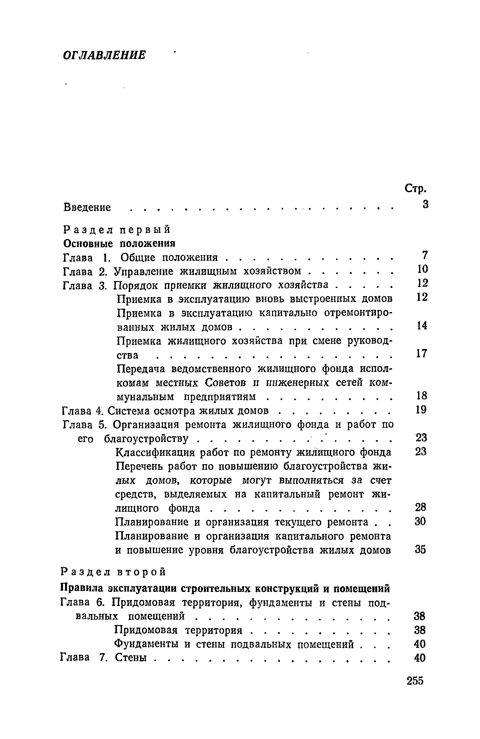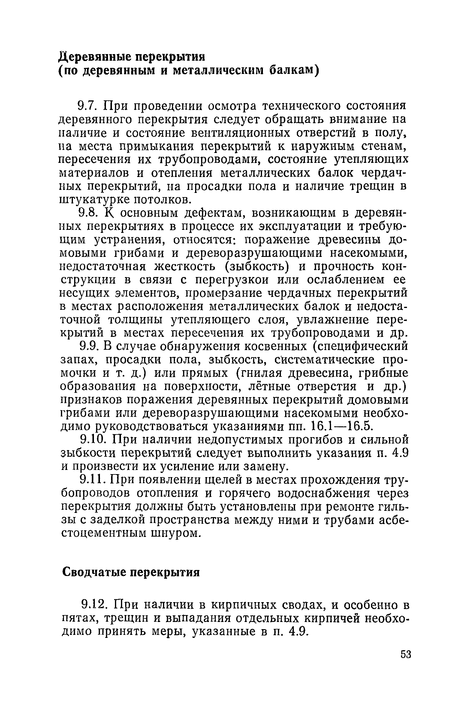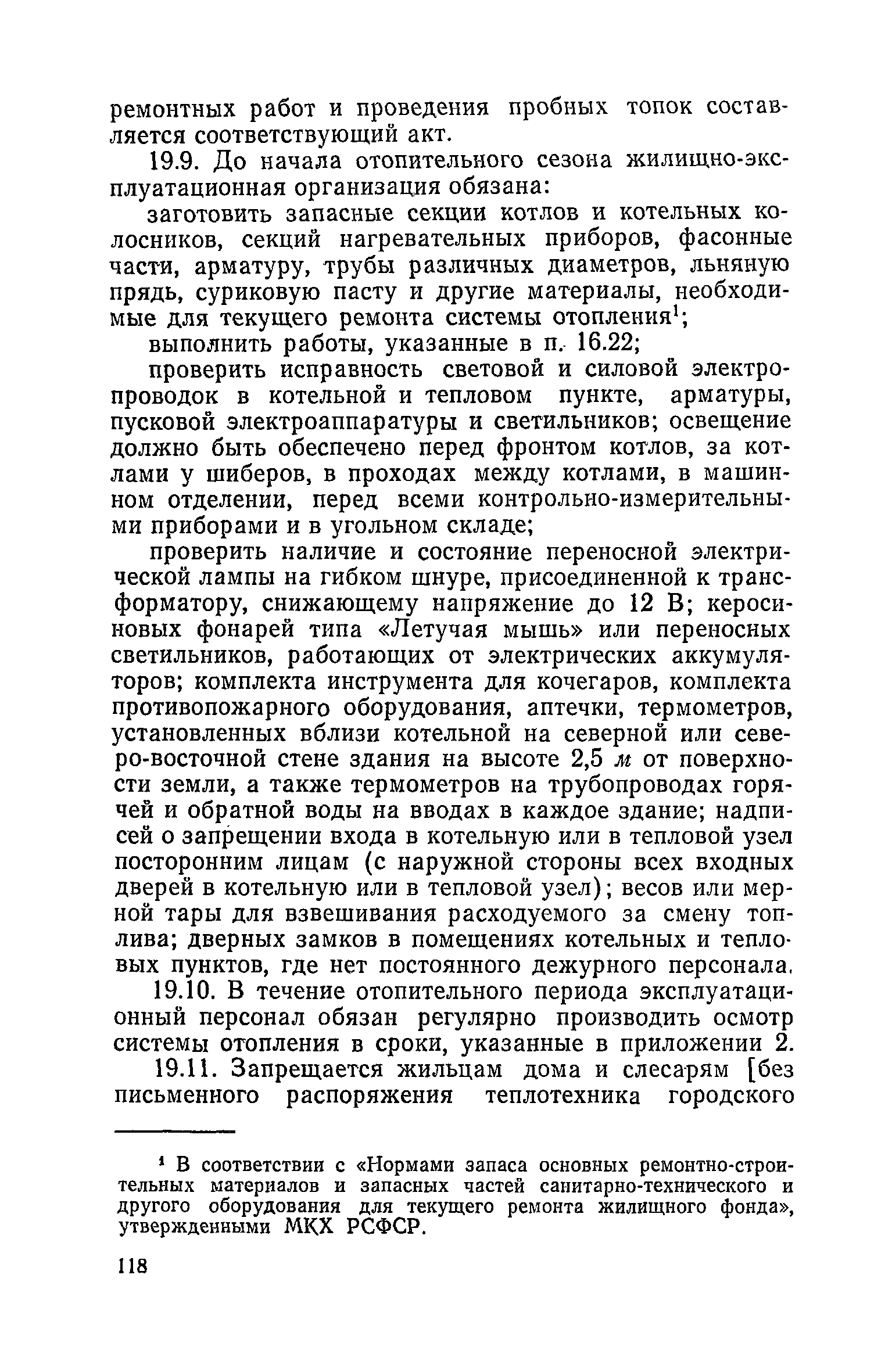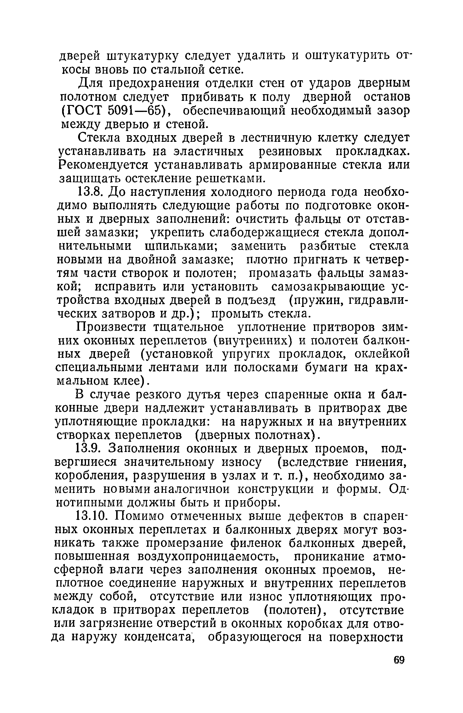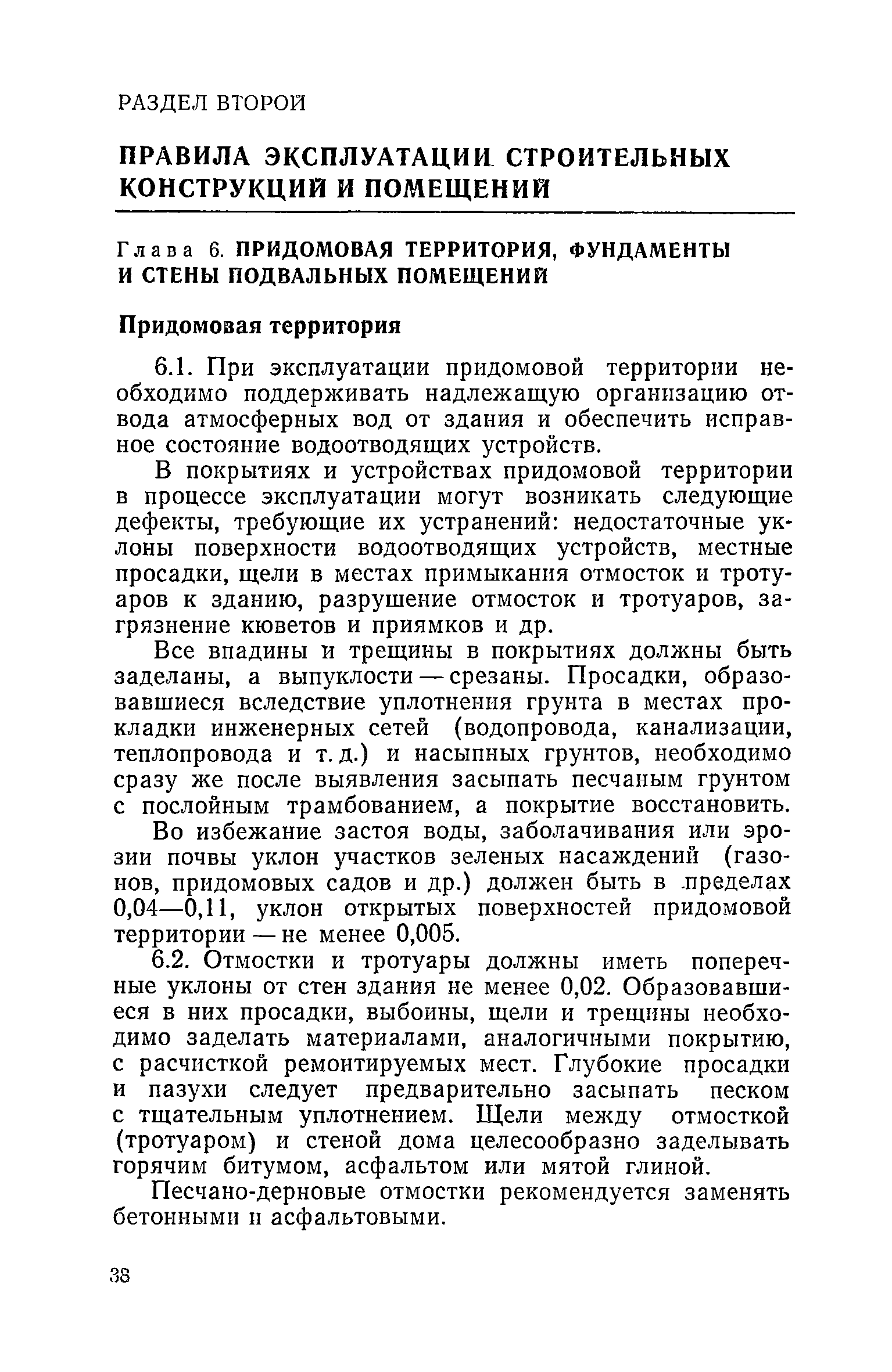 Правила и нормы технической эксплуатации жилищного фонда| Статус: | заменен | | Название рус.: | Правила и нормы технической эксплуатации жилищного фонда | | Дата добавления в базу: | 01.09.2013 | | Дата актуализации: | 01.01.2021 | | Область применения: | В документе приведены основные положения по технической эксплуатации жилищного фонда, содержанию помещений, инженерного оборудования, территорий домовладений, а также указания по переустройству и благоустройству домой старой застройки. | | Оглавление: | Введение Раздел первый. Основные положения Глава 1. Общие положения Глава 2. Управление жилищным хозяйством Глава 3. Порядок приемки жилищного хозяйства Приемка в эксплуатацию вновь выстроенных домов Приемка в эксплуатацию капитально отремонтированных жилых домов Приемка жилищного хозяйства при смене руководства Передача ведомственного жилищного фонда исполкомам местных Советов и инженерных сетей коммунальным предприятиям Глава 4. Система осмотра жилых домов Глава 5. Организация ремонта жилищного фонда и работ по его благоустройству Классификация работ по ремонту жилищного фонда Перечень работ по повышению благоустройства жилых домов, которые могут выполняться за счет средств, выделяемых на капитальный ремонт жилищного фонда Планирование и организация текущего ремонта Планирование и организация капитального ремонта и повышение уровня благоустройства жилых домов Раздел второй. Правила эксплуатации строительных конструкций и помещений Глава 6. Придомовая территория, фундаменты и стены подвальных помещений Придомовая территория Фундаменты и стены подвальных помещений Глава 7. Стены Каменные и крупнопанельные стены Деревянные стены Глава 8. Фасады Отделка фасадов Балконы, козырьки, лоджии и эркеры Глава 9. Перекрытия Железобетонные перекрытия (сборные и монолитные) Деревянные перекрытия (по деревянным и металлическим балкам) Сводчатые перекрытия Глава 10. Полы Деревянные полы Полы из линолеумов и синтетических материалов Ксилолитовые полы Полы керамические, мозаичные и цементные Глава 11. Перегородки Перегородки из неорганических материалов Деревянные перегородки Глава 12. Крыши Чердачные крыши Бесчердачные (совмещенные) крыши Водоотводящие устройства Очистка кровель от снега Глава 13. Окна, двери и световые фонари Окна и двери Световые фонари Глава 14. Лестницы Каменные и железобетонные лестницы Деревянные лестницы Глава 15. Печи Комнатные печи и кухонные очаги на твердом топливе Комнатные печи и кухонные очаги на газовом топливе Глава 16. Специальные мероприятия по технической эксплуатации жилого дома Защита деревянных конструкций от разрушений домовыми грибками и дереворазрушающими насекомыми Устранение сырости в эксплуатируемых зданиях Устранение шумов в жилых домах Противопожарная профилактика Подготовка жилых домов к зиме Глава 17. Эксплуатация жилых и вспомогательных помещений жилого дома Квартиры Лестничные клетки Чердачные помещения Подвалы и технические подполья Глава 18. Техническая эксплуатация жилых зданий в особых условиях Общие положения Районы просадочных грунтов Районы подрабатываемых территорий Сейсмические районы (сейсмичность более 6 баллов) Районы вечной мерзлоты Раздел третий. Правила эксплуатации инженерного оборудования в жилом доме Глава 19. Центральное отопление Глава 20. Горячее водосн