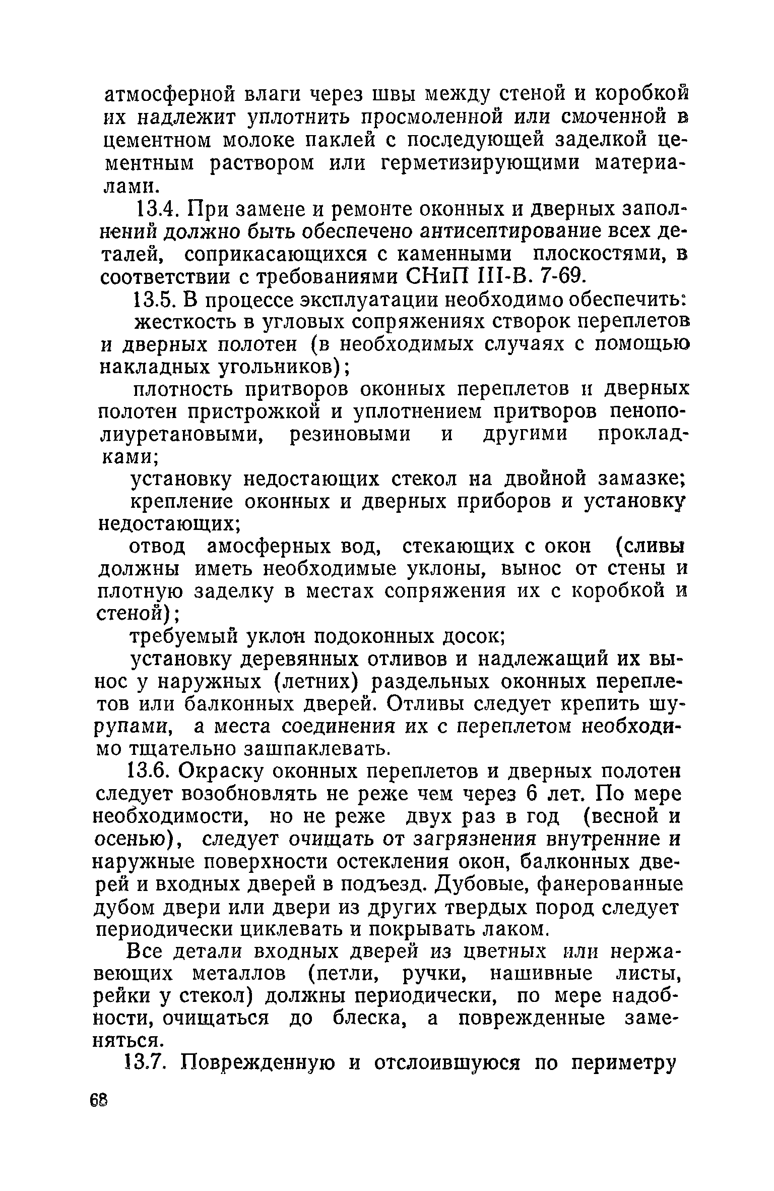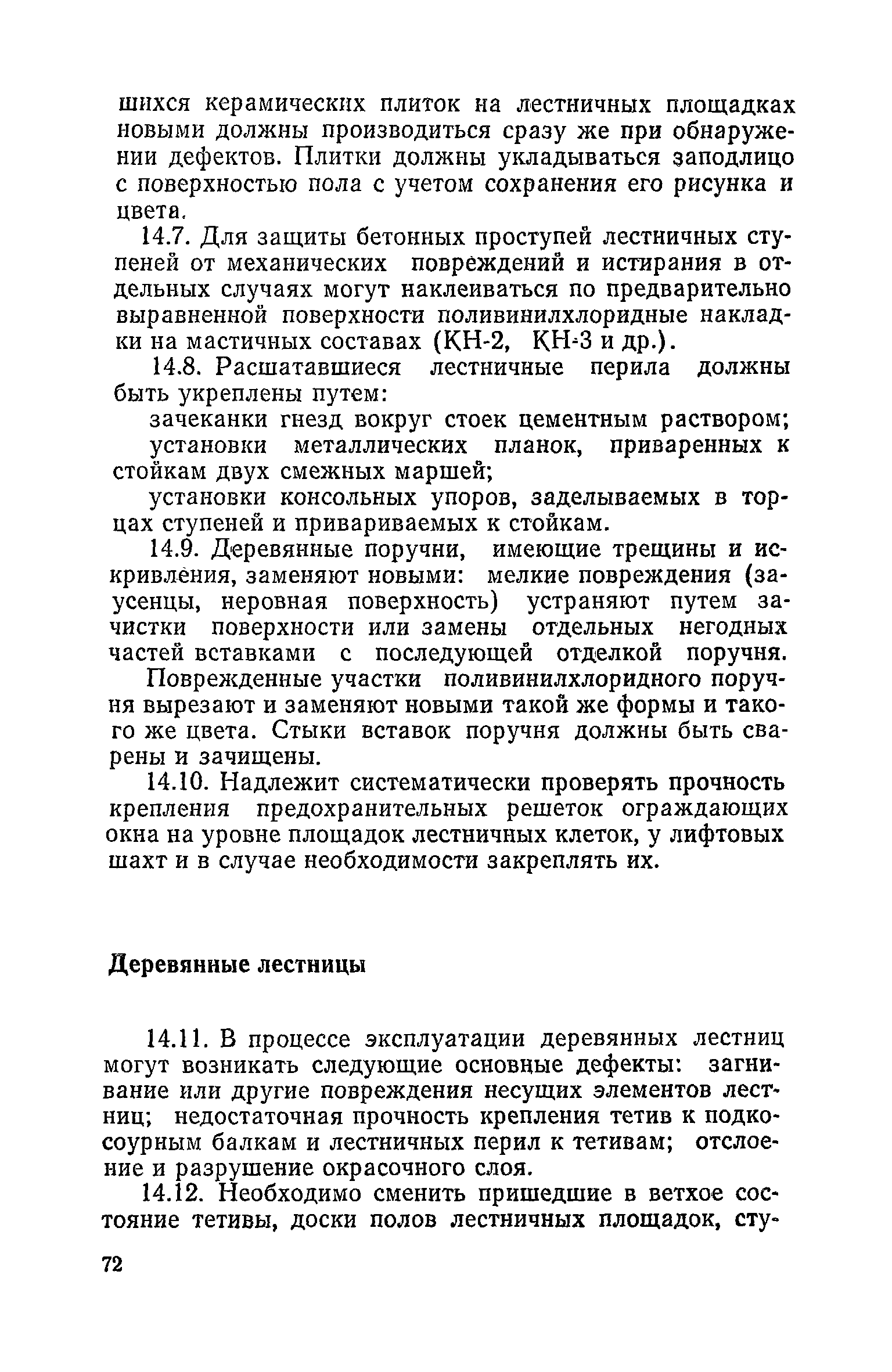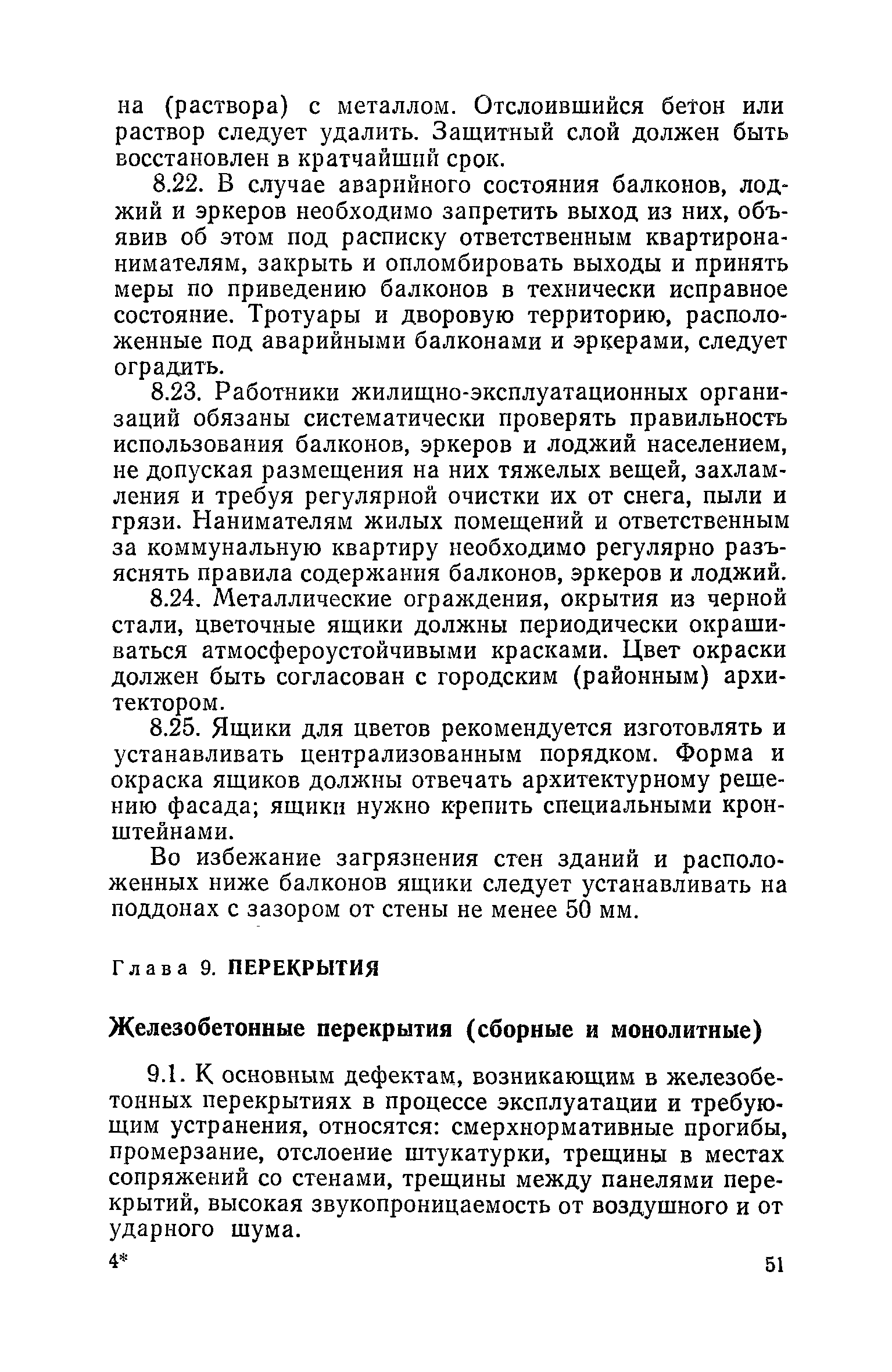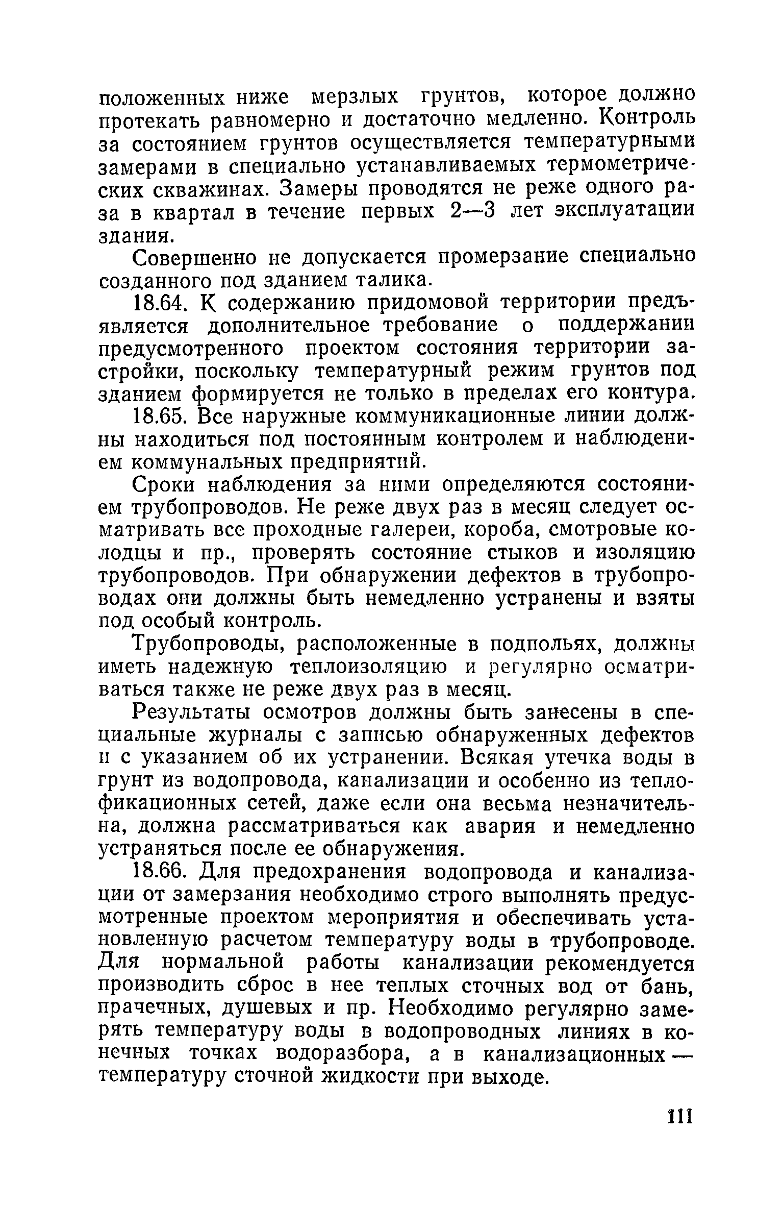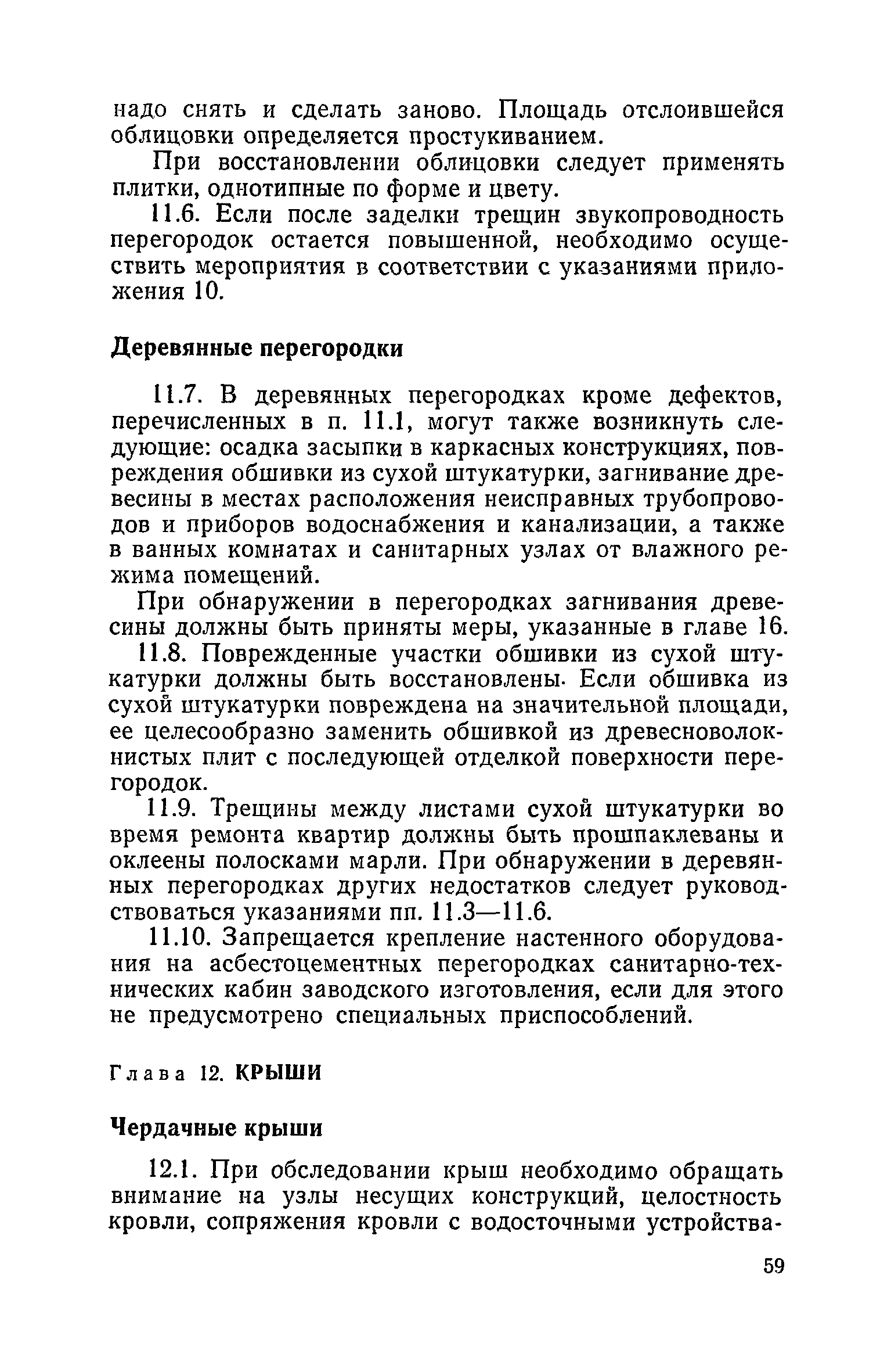 Правила и нормы технической эксплуатации жилищного фонда| Статус: | заменен | | Название рус.: | Правила и нормы технической эксплуатации жилищного фонда | | Дата добавления в базу: | 01.09.2013 | | Дата актуализации: | 01.01.2021 | | Область применения: | В документе приведены основные положения по технической эксплуатации жилищного фонда, содержанию помещений, инженерного оборудования, территорий домовладений, а также указания по переустройству и благоустройству домой старой застройки. | | Оглавление: | Введение Раздел первый. Основные положения Глава 1. Общие положения Глава 2. Управление жилищным хозяйством Глава 3. Порядок приемки жилищного хозяйства Приемка в эксплуатацию вновь выстроенных домов Приемка в эксплуатацию капитально отремонтированных жилых домов Приемка жилищного хозяйства при смене руководства Передача ведомственного жилищного фонда исполкомам местных Советов и инженерных сетей коммунальным предприятиям Глава 4. Система осмотра жилых домов Глава 5. Организация ремонта жилищного фонда и работ по его благоустройству Классификация работ по ремонту жилищного фонда Перечень работ по повышению благоустройства жилых домов, которые могут выполняться за счет средств, выделяемых на капитальный ремонт жилищного фонда Планирование и организация текущего ремонта Планирование и организация капитального ремонта и повышение уровня благоустройства жилых домов Раздел второй. Правила эксплуатации строительных конструкций и помещений Глава 6. Придомовая территория, фундаменты и стены подвальных помещений Придомовая территория Фундаменты и стены подвальных помещений Глава 7. Стены Каменные и крупнопанельные стены Деревянные стены Глава 8. Фасады Отделка фасадов Балконы, козырьки, лоджии и эркеры Глава 9. Перекрытия Железобетонные перекрытия (сборные и монолитные) Деревянные перекрытия (по деревянным и металлическим балкам) Сводчатые перекрытия Глава 10. Полы Деревянные полы Полы из линолеумов и синтетических материалов Ксилолитовые полы Полы керамические, мозаичные и цементные Глава 11. Перегородки Перегородки из неорганических материалов Деревянные перегородки Глава 12. Крыши Чердачные крыши Бесчердачные (совмещенные) крыши Водоотводящие устройства Очистка кровель от снега Глава 13. Окна, двери и световые фонари Окна и двери Световые фонари Глава 14. Лестницы Каменные и железобетонные лестницы Деревянные лестницы Глава 15. Печи Комнатные печи и кухонные очаги на твердом топливе Комнатные печи и кухонные очаги на газовом топливе Глава 16. Специальные мероприятия по технической эксплуатации жилого дома Защита деревянных конструкций от разрушений домовыми грибками и дереворазрушающими насекомыми Устранение сырости в эксплуатируемых зданиях Устранение шумов в жилых домах Противопожарная профилактика Подготовка жилых домов к зиме Глава 17. Эксплуатация жилых и вспомогательных помещений жилого дома Квартиры Лестничные клетки Чердачные помещения Подвалы и технические подполья Глава 18. Техническая эксплуатация жилых зданий в особых условиях Общие положения Районы просадочных грунтов Районы подрабатываемых территорий Сейсмические районы (сейсмичность более 6 баллов) Районы вечной мерзлоты Раздел третий. Правила эксплуатации инженерного оборудования в жилом доме Глава 19. Центральное отопление Глава 20. Горячее водосн