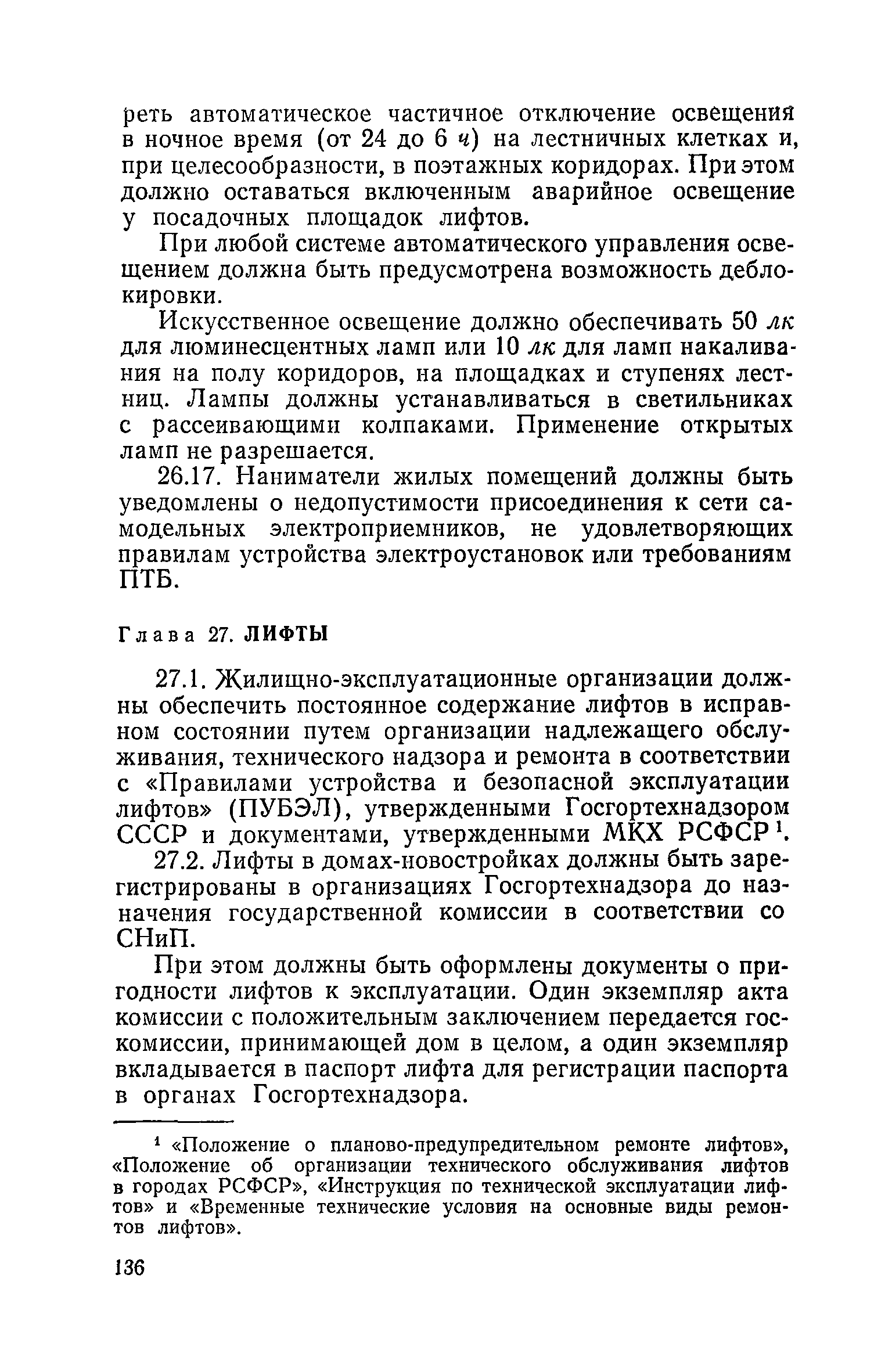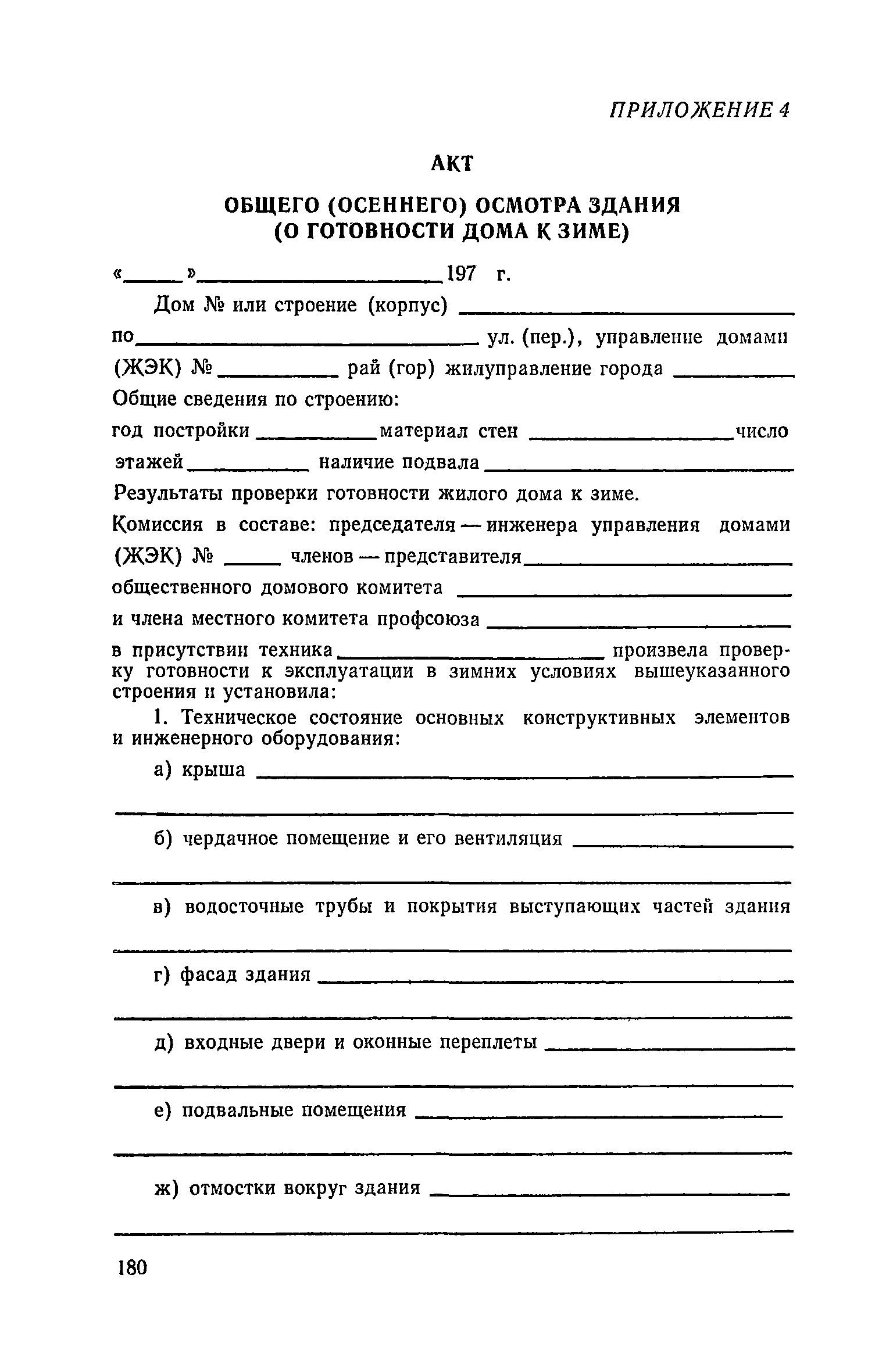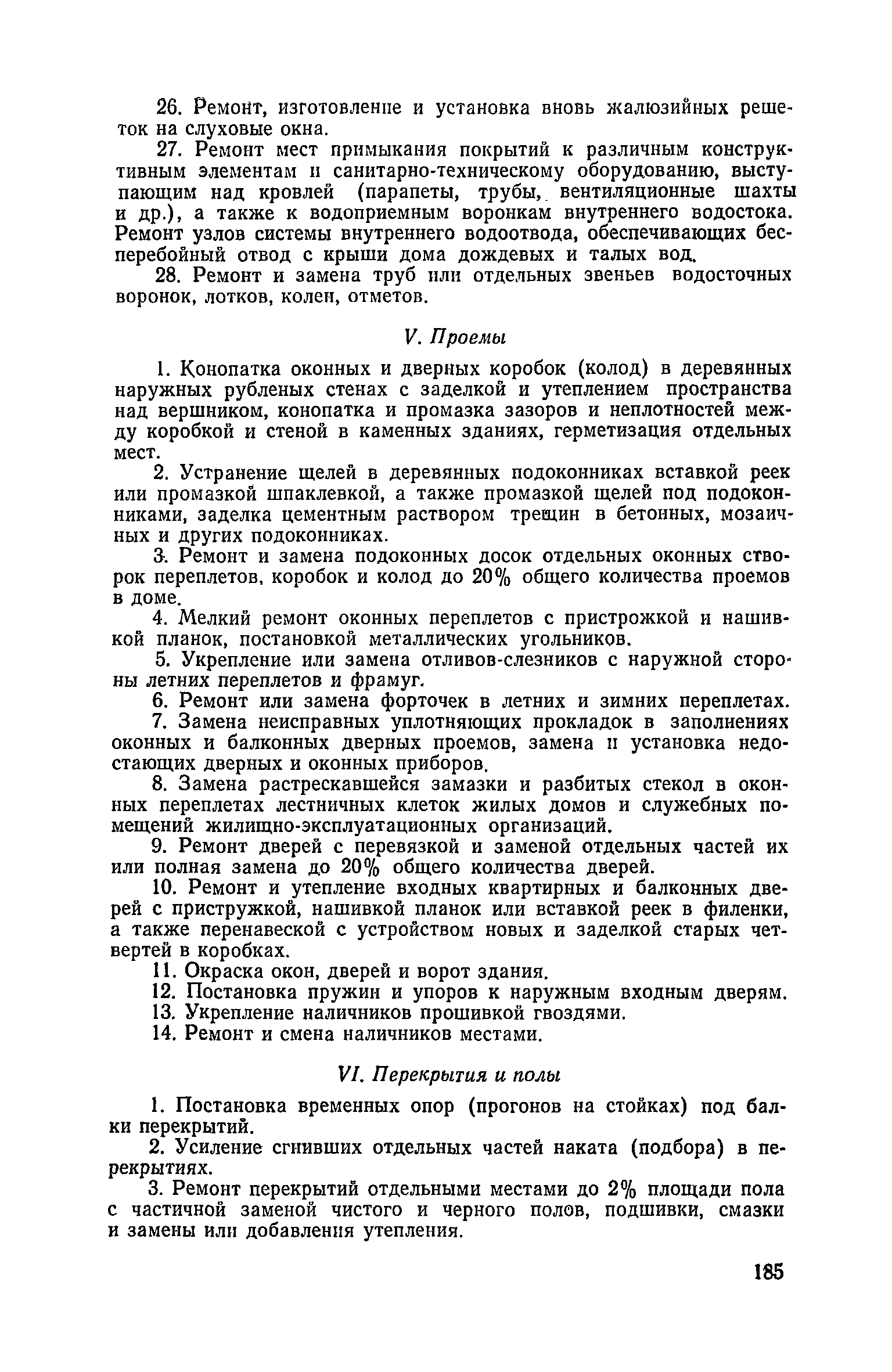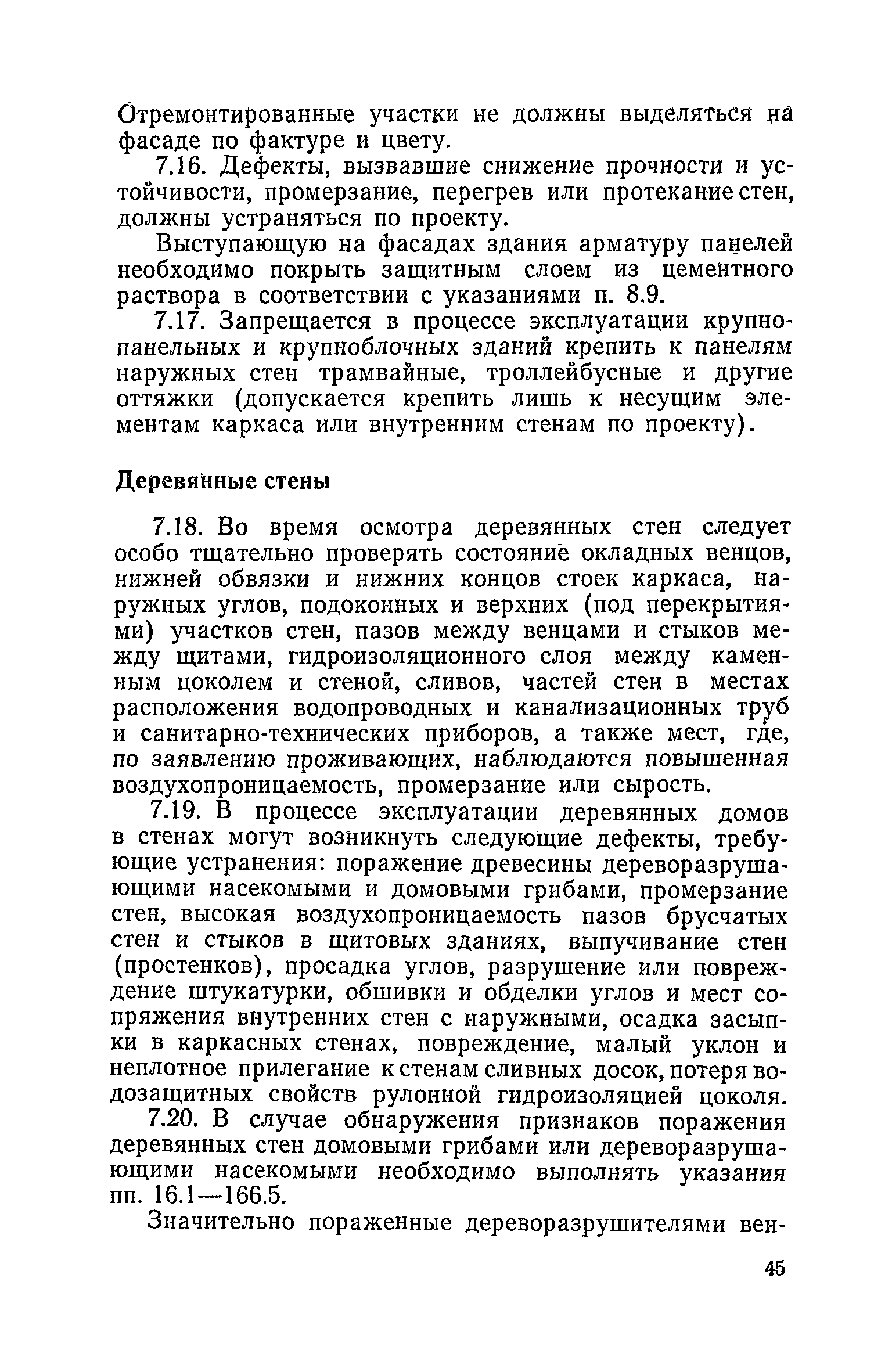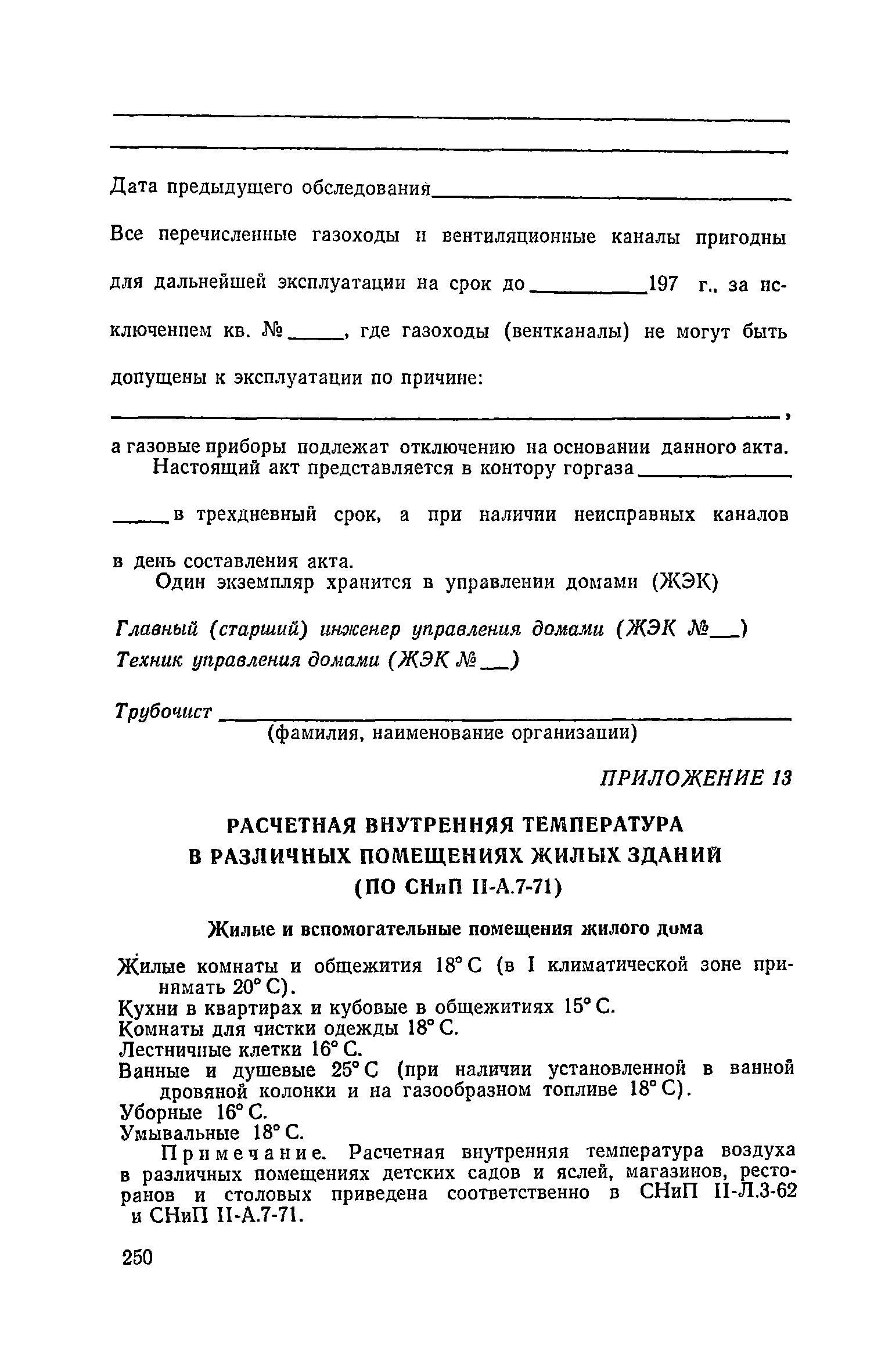 Правила и нормы технической эксплуатации жилищного фонда| Статус: | заменен | | Название рус.: | Правила и нормы технической эксплуатации жилищного фонда | | Дата добавления в базу: | 01.09.2013 | | Дата актуализации: | 01.01.2021 | | Область применения: | В документе приведены основные положения по технической эксплуатации жилищного фонда, содержанию помещений, инженерного оборудования, территорий домовладений, а также указания по переустройству и благоустройству домой старой застройки. | | Оглавление: | Введение Раздел первый. Основные положения Глава 1. Общие положения Глава 2. Управление жилищным хозяйством Глава 3. Порядок приемки жилищного хозяйства Приемка в эксплуатацию вновь выстроенных домов Приемка в эксплуатацию капитально отремонтированных жилых домов Приемка жилищного хозяйства при смене руководства Передача ведомственного жилищного фонда исполкомам местных Советов и инженерных сетей коммунальным предприятиям Глава 4. Система осмотра жилых домов Глава 5. Организация ремонта жилищного фонда и работ по его благоустройству Классификация работ по ремонту жилищного фонда Перечень работ по повышению благоустройства жилых домов, которые могут выполняться за счет средств, выделяемых на капитальный ремонт жилищного фонда Планирование и организация текущего ремонта Планирование и организация капитального ремонта и повышение уровня благоустройства жилых домов Раздел второй. Правила эксплуатации строительных конструкций и помещений Глава 6. Придомовая территория, фундаменты и стены подвальных помещений Придомовая территория Фундаменты и стены подвальных помещений Глава 7. Стены Каменные и крупнопанельные стены Деревянные стены Глава 8. Фасады Отделка фасадов Балконы, козырьки, лоджии и эркеры Глава 9. Перекрытия Железобетонные перекрытия (сборные и монолитные) Деревянные перекрытия (по деревянным и металлическим балкам) Сводчатые перекрытия Глава 10. Полы Деревянные полы Полы из линолеумов и синтетических материалов Ксилолитовые полы Полы керамические, мозаичные и цементные Глава 11. Перегородки Перегородки из неорганических материалов Деревянные перегородки Глава 12. Крыши Чердачные крыши Бесчердачные (совмещенные) крыши Водоотводящие устройства Очистка кровель от снега Глава 13. Окна, двери и световые фонари Окна и двери Световые фонари Глава 14. Лестницы Каменные и железобетонные лестницы Деревянные лестницы Глава 15. Печи Комнатные печи и кухонные очаги на твердом топливе Комнатные печи и кухонные очаги на газовом топливе Глава 16. Специальные мероприятия по технической эксплуатации жилого дома Защита деревянных конструкций от разрушений домовыми грибками и дереворазрушающими насекомыми Устранение сырости в эксплуатируемых зданиях Устранение шумов в жилых домах Противопожарная профилактика Подготовка жилых домов к зиме Глава 17. Эксплуатация жилых и вспомогательных помещений жилого дома Квартиры Лестничные клетки Чердачные помещения Подвалы и технические подполья Глава 18. Техническая эксплуатация жилых зданий в особых условиях Общие положения Районы просадочных грунтов Районы подрабатываемых территорий Сейсмические районы (сейсмичность более 6 баллов) Районы вечной мерзлоты Раздел третий. Правила эксплуатации инженерного оборудования в жилом доме Глава 19. Центральное отопление Глава 20. Горячее водосн
