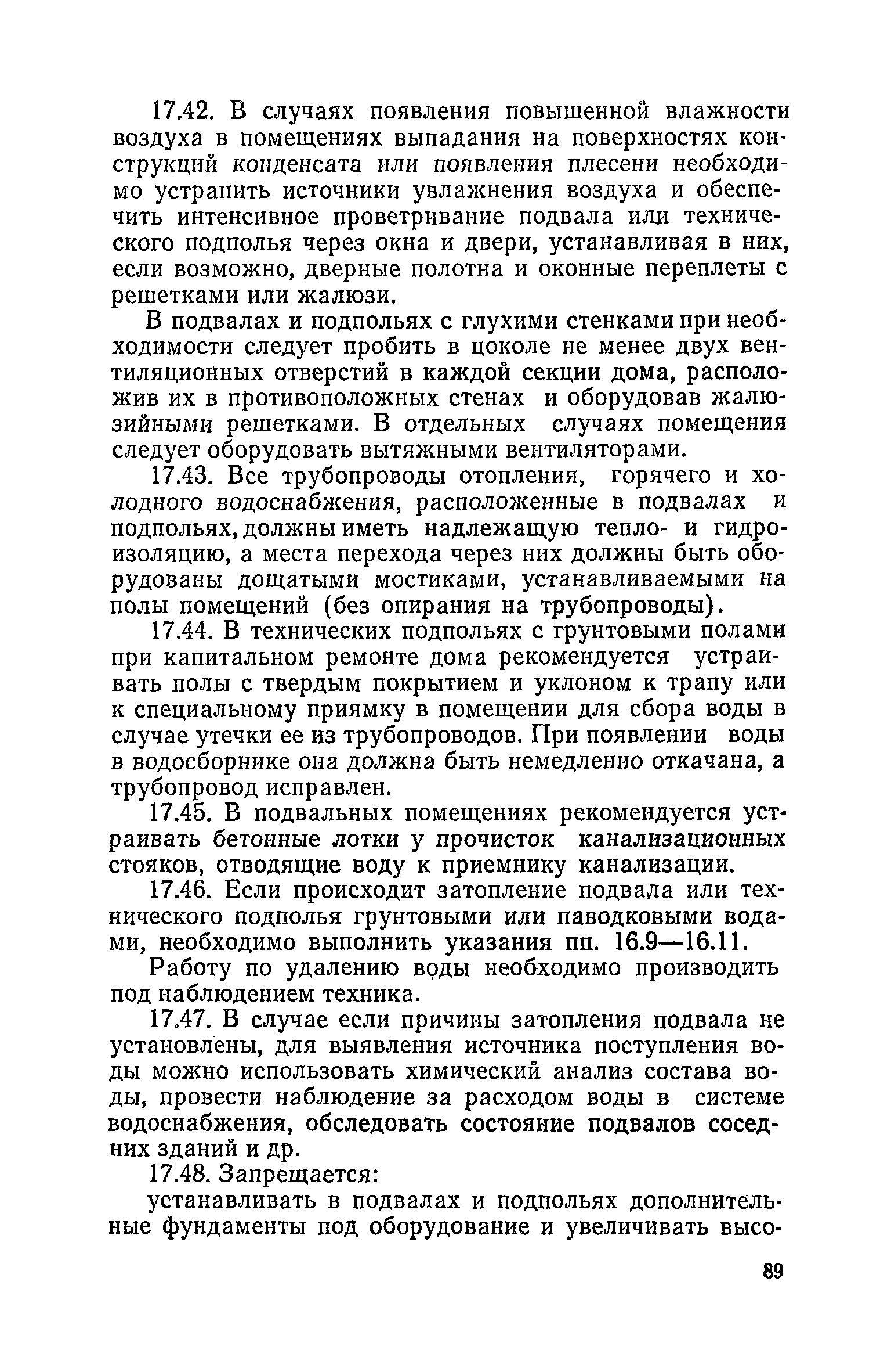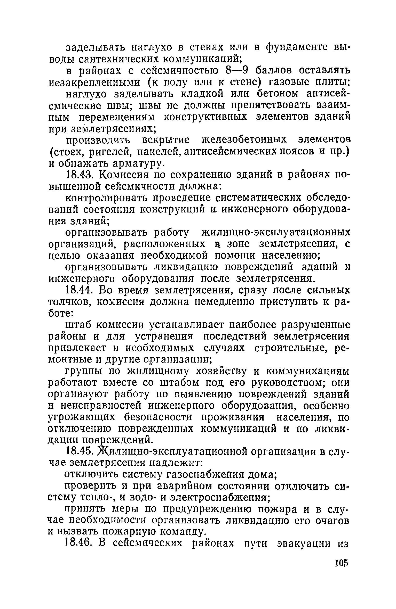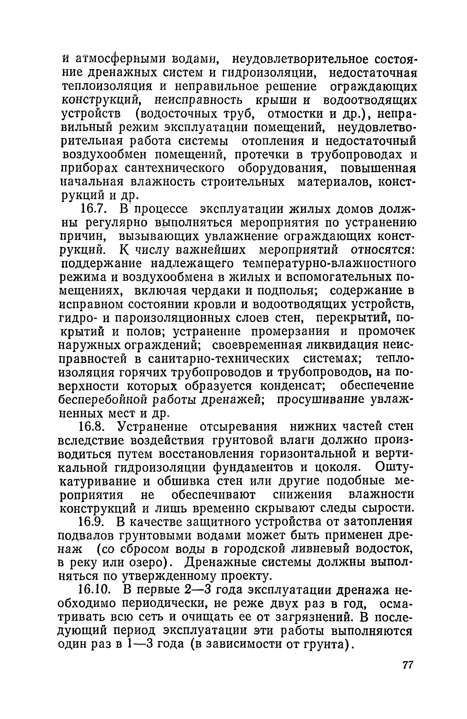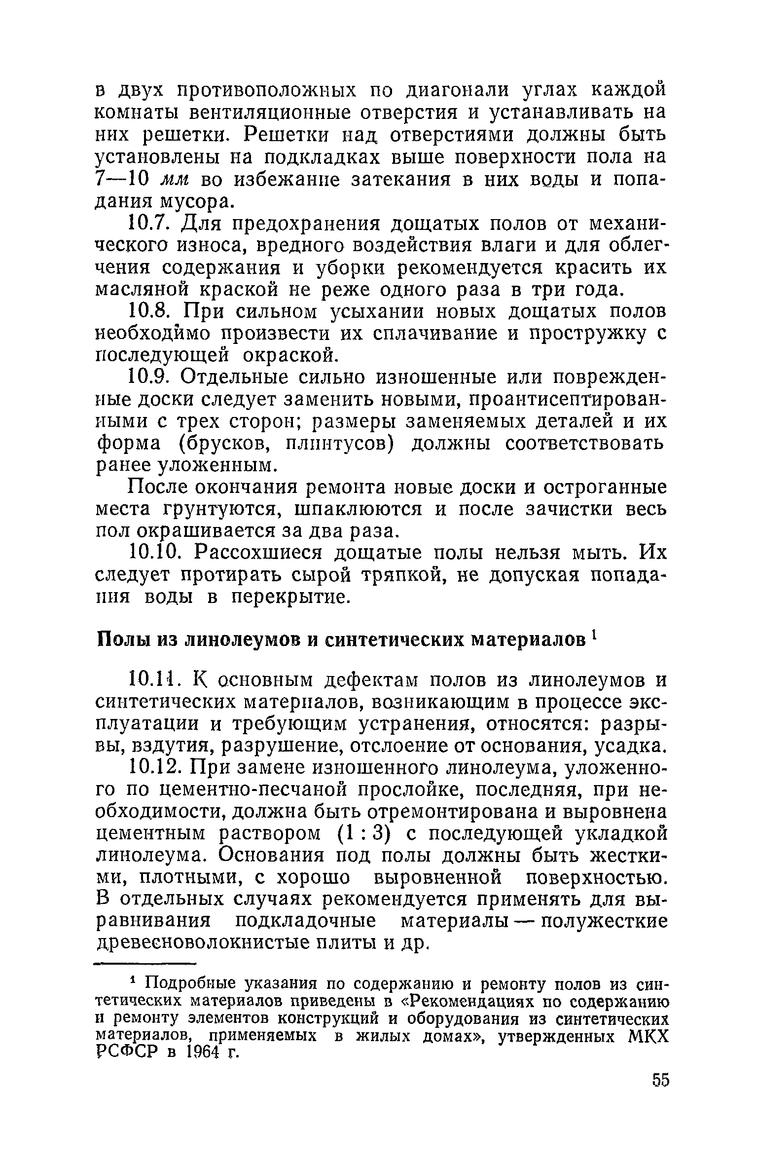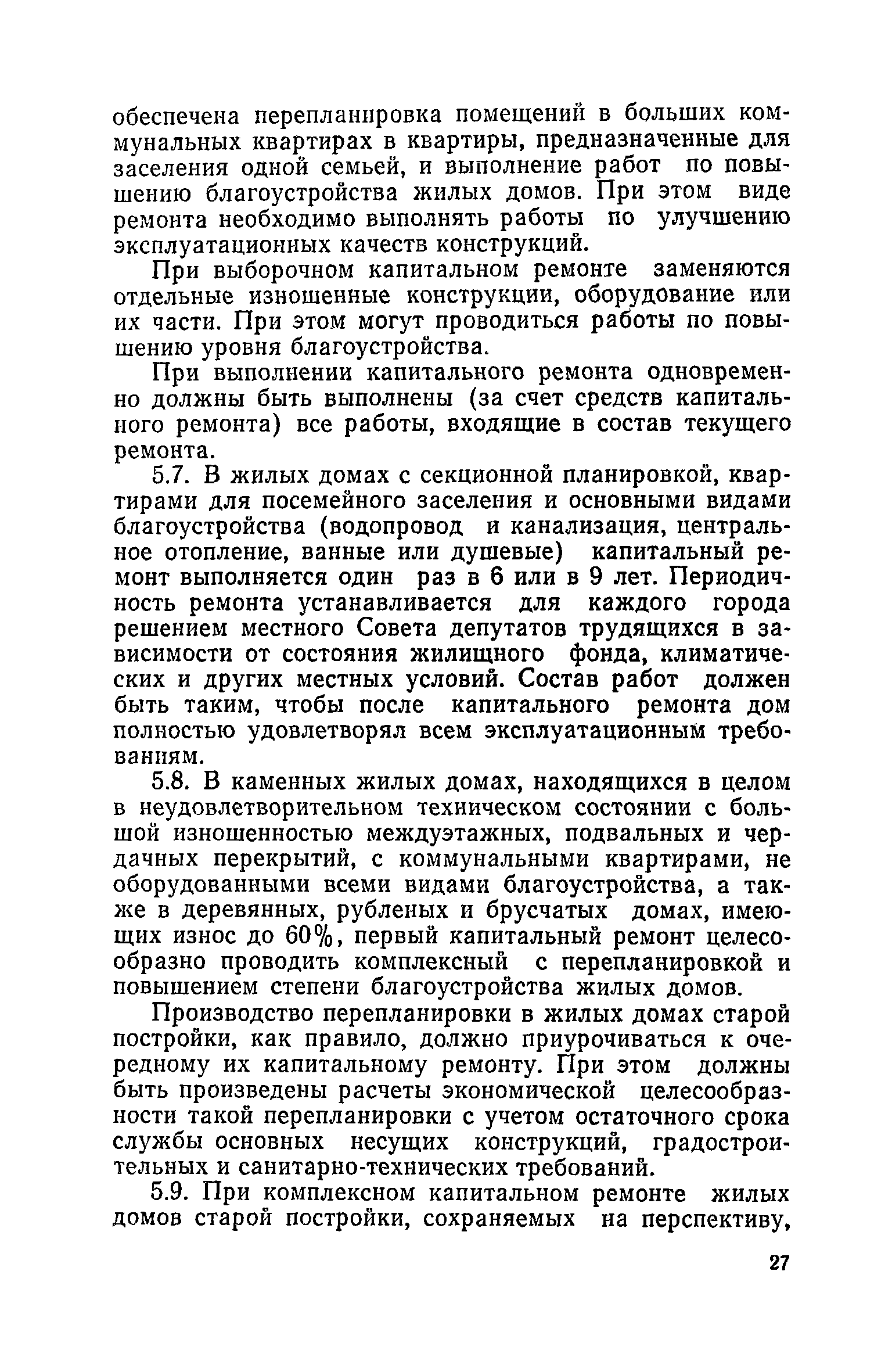 Правила и нормы технической эксплуатации жилищного фонда| Статус: | заменен | | Название рус.: | Правила и нормы технической эксплуатации жилищного фонда | | Дата добавления в базу: | 01.09.2013 | | Дата актуализации: | 01.01.2021 | | Область применения: | В документе приведены основные положения по технической эксплуатации жилищного фонда, содержанию помещений, инженерного оборудования, территорий домовладений, а также указания по переустройству и благоустройству домой старой застройки. | | Оглавление: | Введение Раздел первый. Основные положения Глава 1. Общие положения Глава 2. Управление жилищным хозяйством Глава 3. Порядок приемки жилищного хозяйства Приемка в эксплуатацию вновь выстроенных домов Приемка в эксплуатацию капитально отремонтированных жилых домов Приемка жилищного хозяйства при смене руководства Передача ведомственного жилищного фонда исполкомам местных Советов и инженерных сетей коммунальным предприятиям Глава 4. Система осмотра жилых домов Глава 5. Организация ремонта жилищного фонда и работ по его благоустройству Классификация работ по ремонту жилищного фонда Перечень работ по повышению благоустройства жилых домов, которые могут выполняться за счет средств, выделяемых на капитальный ремонт жилищного фонда Планирование и организация текущего ремонта Планирование и организация капитального ремонта и повышение уровня благоустройства жилых домов Раздел второй. Правила эксплуатации строительных конструкций и помещений Глава 6. Придомовая территория, фундаменты и стены подвальных помещений Придомовая территория Фундаменты и стены подвальных помещений Глава 7. Стены Каменные и крупнопанельные стены Деревянные стены Глава 8. Фасады Отделка фасадов Балконы, козырьки, лоджии и эркеры Глава 9. Перекрытия Железобетонные перекрытия (сборные и монолитные) Деревянные перекрытия (по деревянным и металлическим балкам) Сводчатые перекрытия Глава 10. Полы Деревянные полы Полы из линолеумов и синтетических материалов Ксилолитовые полы Полы керамические, мозаичные и цементные Глава 11. Перегородки Перегородки из неорганических материалов Деревянные перегородки Глава 12. Крыши Чердачные крыши Бесчердачные (совмещенные) крыши Водоотводящие устройства Очистка кровель от снега Глава 13. Окна, двери и световые фонари Окна и двери Световые фонари Глава 14. Лестницы Каменные и железобетонные лестницы Деревянные лестницы Глава 15. Печи Комнатные печи и кухонные очаги на твердом топливе Комнатные печи и кухонные очаги на газовом топливе Глава 16. Специальные мероприятия по технической эксплуатации жилого дома Защита деревянных конструкций от разрушений домовыми грибками и дереворазрушающими насекомыми Устранение сырости в эксплуатируемых зданиях Устранение шумов в жилых домах Противопожарная профилактика Подготовка жилых домов к зиме Глава 17. Эксплуатация жилых и вспомогательных помещений жилого дома Квартиры Лестничные клетки Чердачные помещения Подвалы и технические подполья Глава 18. Техническая эксплуатация жилых зданий в особых условиях Общие положения Районы просадочных грунтов Районы подрабатываемых территорий Сейсмические районы (сейсмичность более 6 баллов) Районы вечной мерзлоты Раздел третий. Правила эксплуатации инженерного оборудования в жилом доме Глава 19. Центральное отопление Глава 20. Горячее водосн