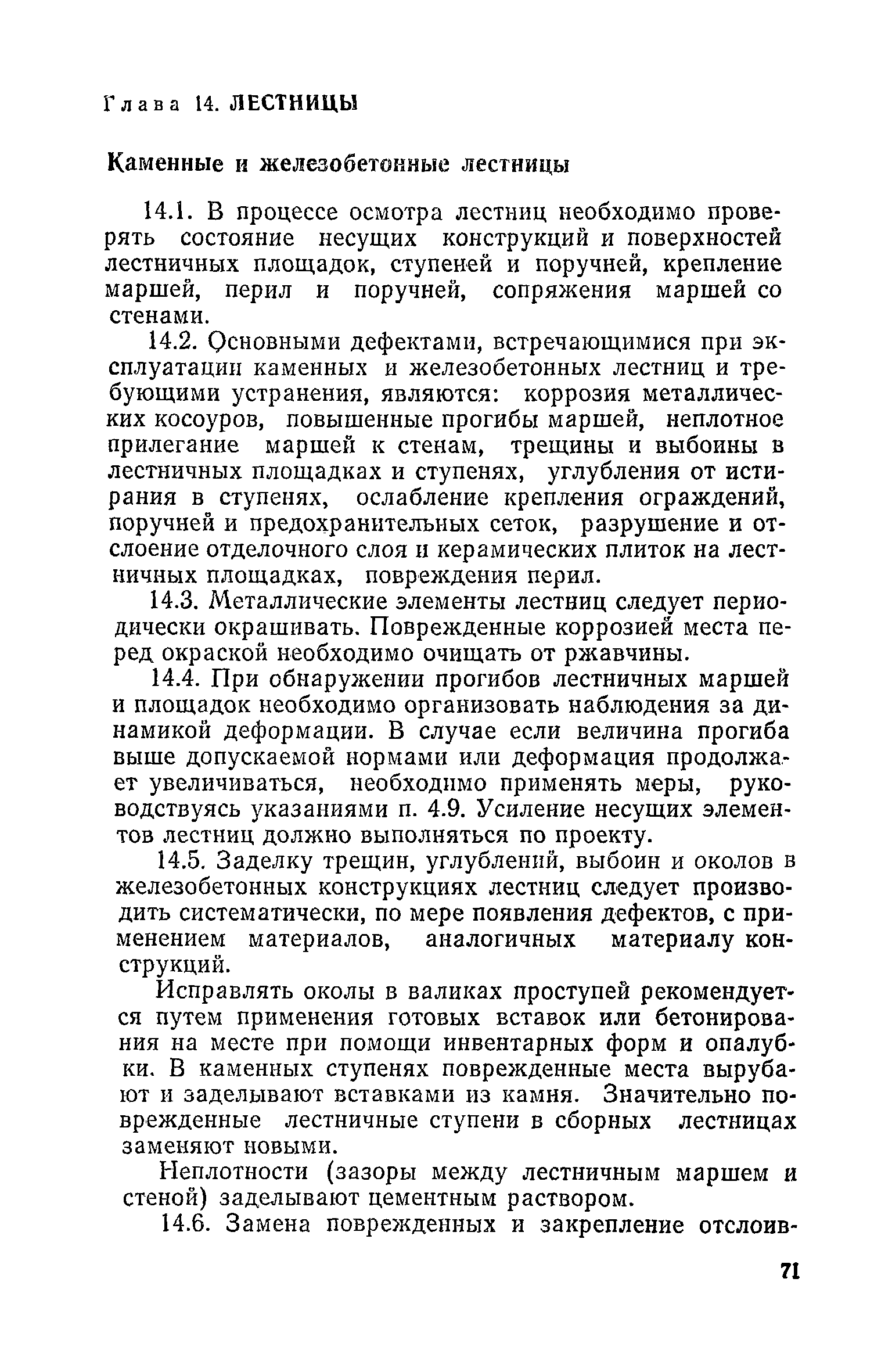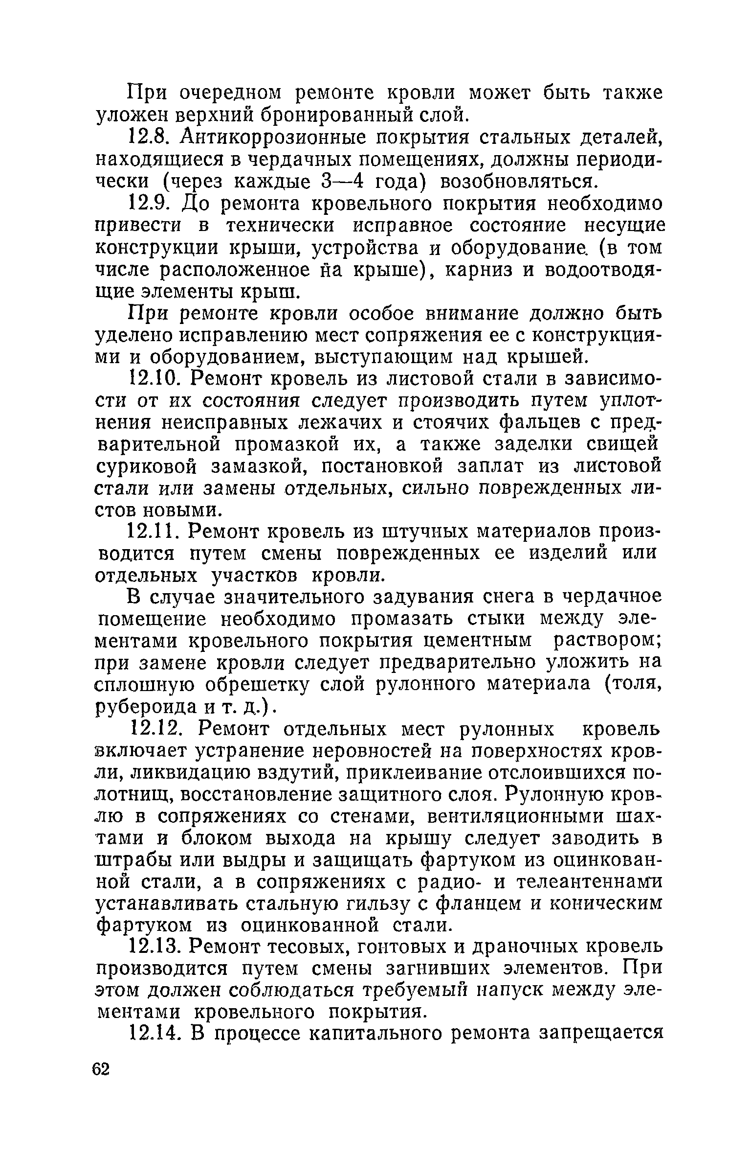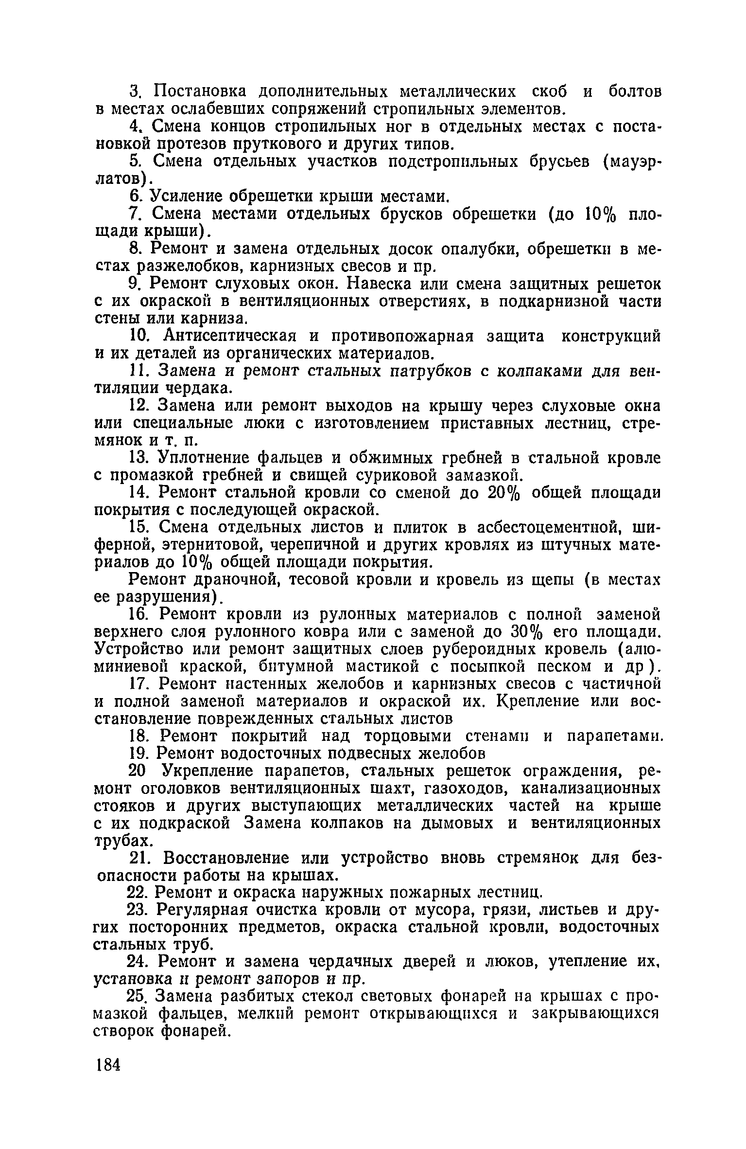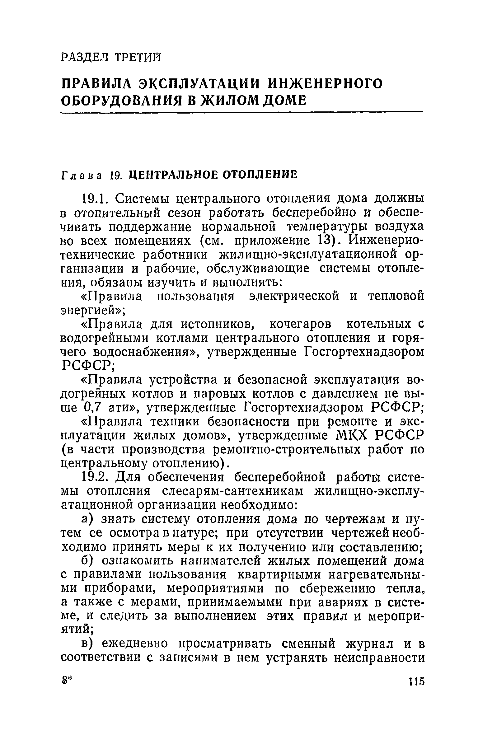 Правила и нормы технической эксплуатации жилищного фонда| Статус: | заменен | | Название рус.: | Правила и нормы технической эксплуатации жилищного фонда | | Дата добавления в базу: | 01.09.2013 | | Дата актуализации: | 01.01.2021 | | Область применения: | В документе приведены основные положения по технической эксплуатации жилищного фонда, содержанию помещений, инженерного оборудования, территорий домовладений, а также указания по переустройству и благоустройству домой старой застройки. | | Оглавление: | Введение Раздел первый. Основные положения Глава 1. Общие положения Глава 2. Управление жилищным хозяйством Глава 3. Порядок приемки жилищного хозяйства Приемка в эксплуатацию вновь выстроенных домов Приемка в эксплуатацию капитально отремонтированных жилых домов Приемка жилищного хозяйства при смене руководства Передача ведомственного жилищного фонда исполкомам местных Советов и инженерных сетей коммунальным предприятиям Глава 4. Система осмотра жилых домов Глава 5. Организация ремонта жилищного фонда и работ по его благоустройству Классификация работ по ремонту жилищного фонда Перечень работ по повышению благоустройства жилых домов, которые могут выполняться за счет средств, выделяемых на капитальный ремонт жилищного фонда Планирование и организация текущего ремонта Планирование и организация капитального ремонта и повышение уровня благоустройства жилых домов Раздел второй. Правила эксплуатации строительных конструкций и помещений Глава 6. Придомовая территория, фундаменты и стены подвальных помещений Придомовая территория Фундаменты и стены подвальных помещений Глава 7. Стены Каменные и крупнопанельные стены Деревянные стены Глава 8. Фасады Отделка фасадов Балконы, козырьки, лоджии и эркеры Глава 9. Перекрытия Железобетонные перекрытия (сборные и монолитные) Деревянные перекрытия (по деревянным и металлическим балкам) Сводчатые перекрытия Глава 10. Полы Деревянные полы Полы из линолеумов и синтетических материалов Ксилолитовые полы Полы керамические, мозаичные и цементные Глава 11. Перегородки Перегородки из неорганических материалов Деревянные перегородки Глава 12. Крыши Чердачные крыши Бесчердачные (совмещенные) крыши Водоотводящие устройства Очистка кровель от снега Глава 13. Окна, двери и световые фонари Окна и двери Световые фонари Глава 14. Лестницы Каменные и железобетонные лестницы Деревянные лестницы Глава 15. Печи Комнатные печи и кухонные очаги на твердом топливе Комнатные печи и кухонные очаги на газовом топливе Глава 16. Специальные мероприятия по технической эксплуатации жилого дома Защита деревянных конструкций от разрушений домовыми грибками и дереворазрушающими насекомыми Устранение сырости в эксплуатируемых зданиях Устранение шумов в жилых домах Противопожарная профилактика Подготовка жилых домов к зиме Глава 17. Эксплуатация жилых и вспомогательных помещений жилого дома Квартиры Лестничные клетки Чердачные помещения Подвалы и технические подполья Глава 18. Техническая эксплуатация жилых зданий в особых условиях Общие положения Районы просадочных грунтов Районы подрабатываемых территорий Сейсмические районы (сейсмичность более 6 баллов) Районы вечной мерзлоты Раздел третий. Правила эксплуатации инженерного оборудования в жилом доме Глава 19. Центральное отопление Глава 20. Горячее водосн
