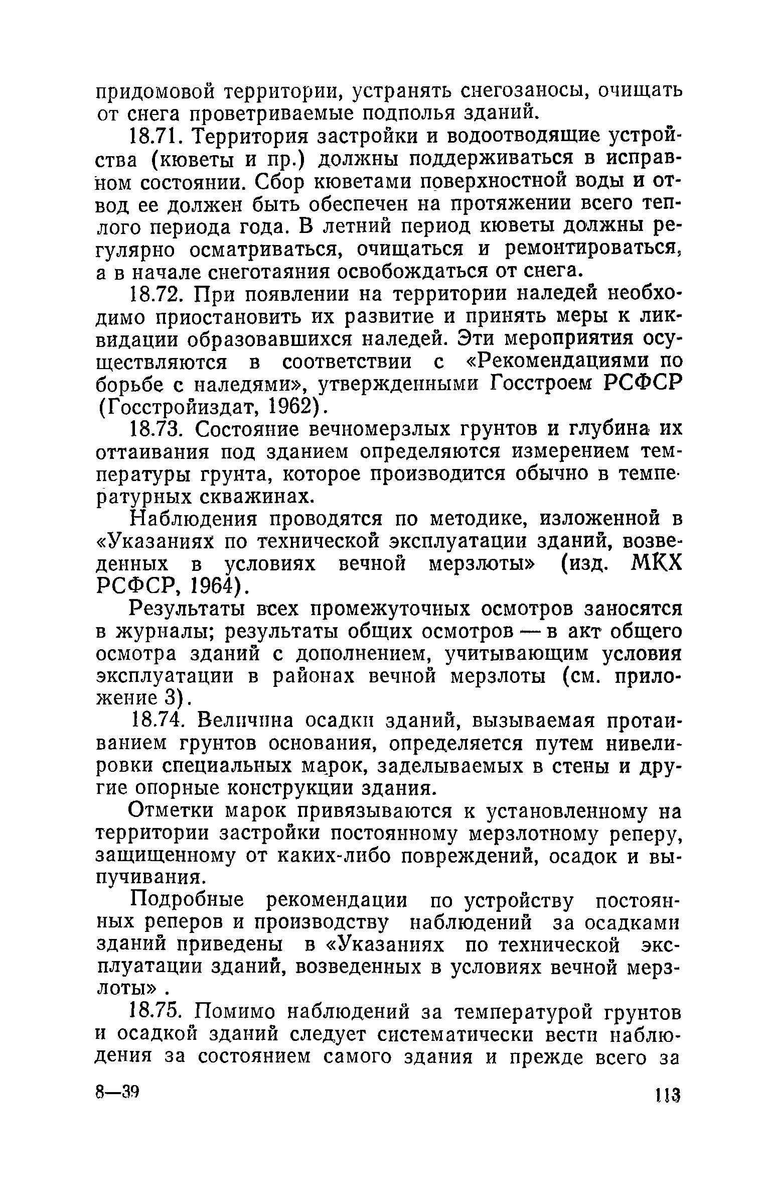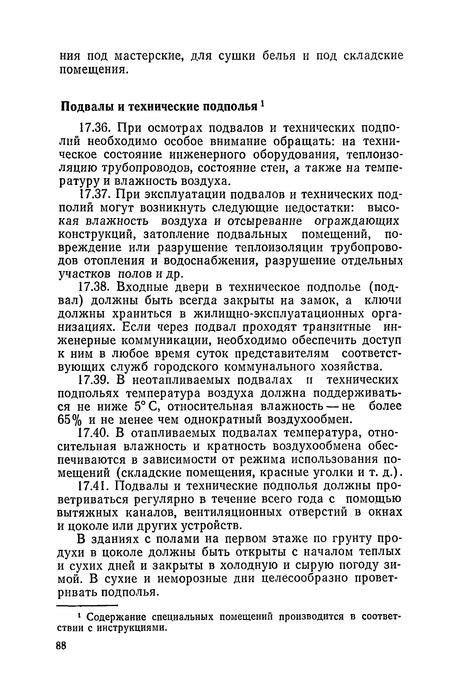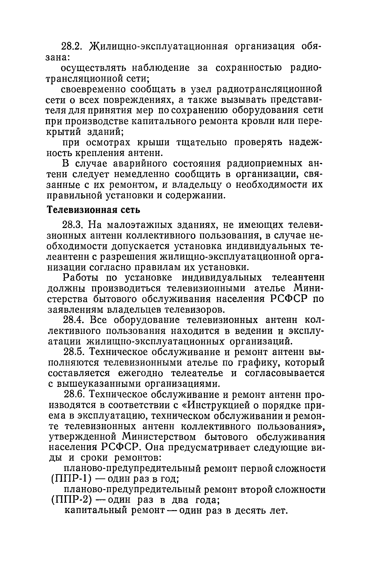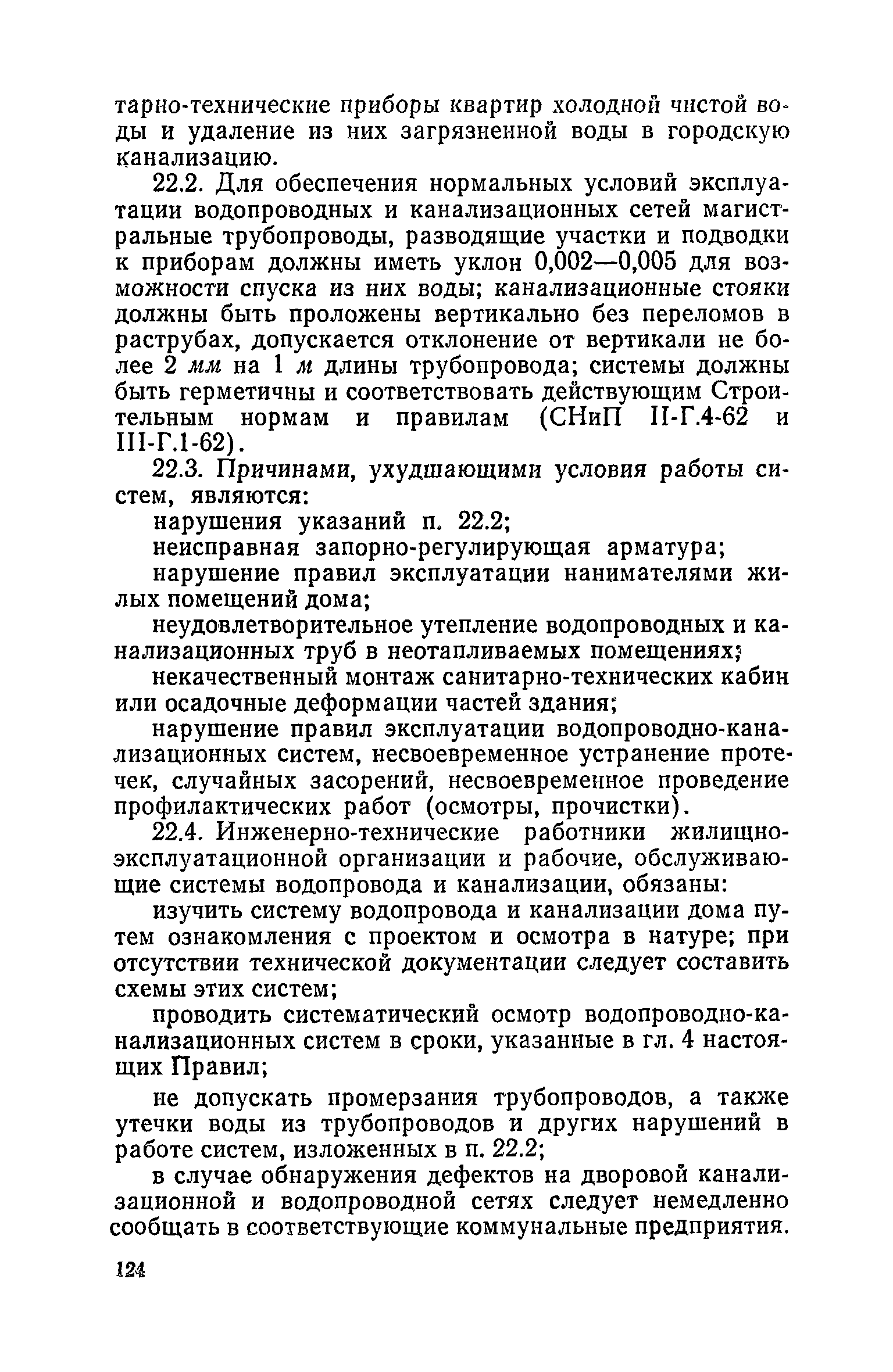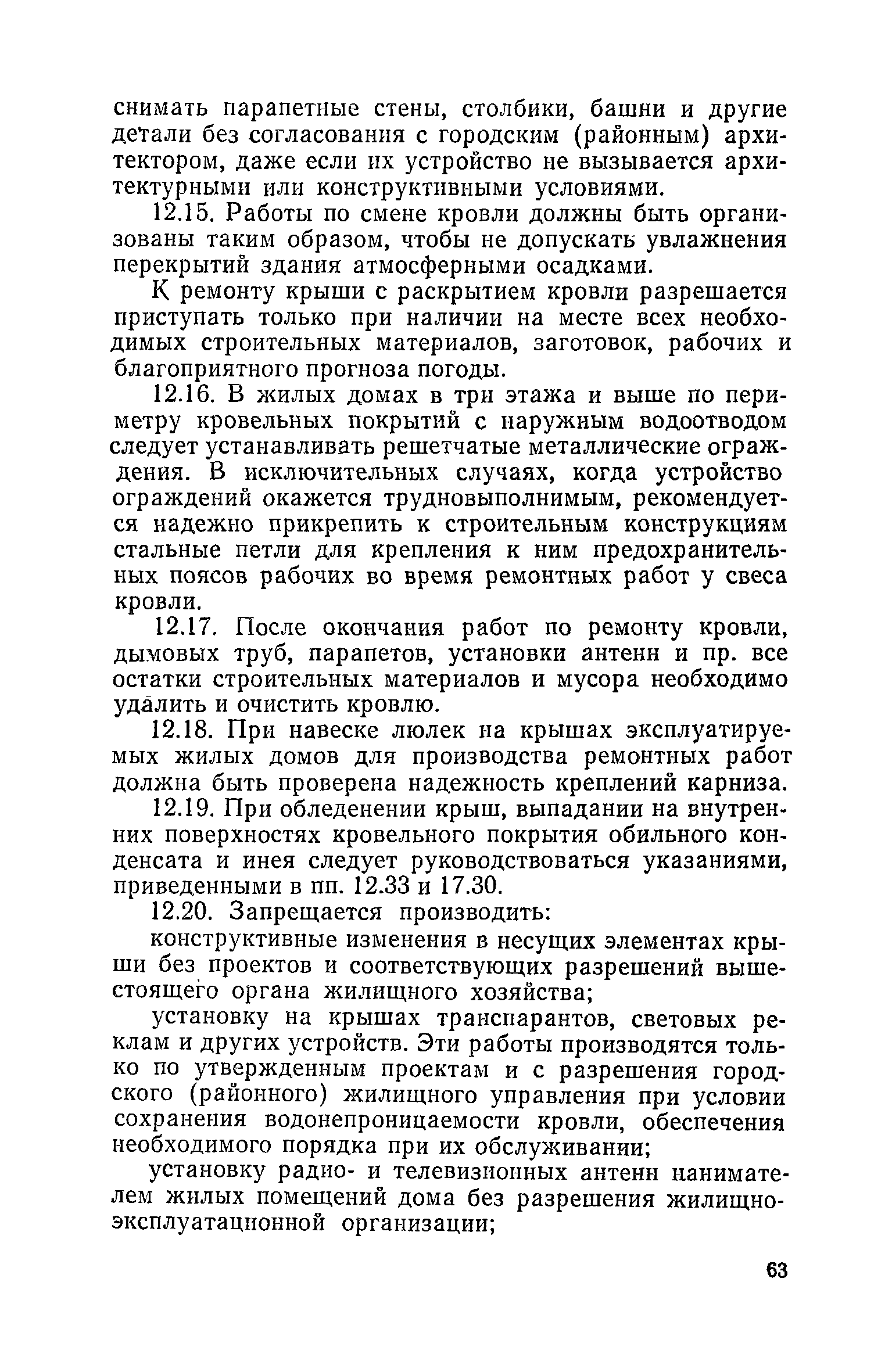 Правила и нормы технической эксплуатации жилищного фонда| Статус: | заменен | | Название рус.: | Правила и нормы технической эксплуатации жилищного фонда | | Дата добавления в базу: | 01.09.2013 | | Дата актуализации: | 01.01.2021 | | Область применения: | В документе приведены основные положения по технической эксплуатации жилищного фонда, содержанию помещений, инженерного оборудования, территорий домовладений, а также указания по переустройству и благоустройству домой старой застройки. | | Оглавление: | Введение Раздел первый. Основные положения Глава 1. Общие положения Глава 2. Управление жилищным хозяйством Глава 3. Порядок приемки жилищного хозяйства Приемка в эксплуатацию вновь выстроенных домов Приемка в эксплуатацию капитально отремонтированных жилых домов Приемка жилищного хозяйства при смене руководства Передача ведомственного жилищного фонда исполкомам местных Советов и инженерных сетей коммунальным предприятиям Глава 4. Система осмотра жилых домов Глава 5. Организация ремонта жилищного фонда и работ по его благоустройству Классификация работ по ремонту жилищного фонда Перечень работ по повышению благоустройства жилых домов, которые могут выполняться за счет средств, выделяемых на капитальный ремонт жилищного фонда Планирование и организация текущего ремонта Планирование и организация капитального ремонта и повышение уровня благоустройства жилых домов Раздел второй. Правила эксплуатации строительных конструкций и помещений Глава 6. Придомовая территория, фундаменты и стены подвальных помещений Придомовая территория Фундаменты и стены подвальных помещений Глава 7. Стены Каменные и крупнопанельные стены Деревянные стены Глава 8. Фасады Отделка фасадов Балконы, козырьки, лоджии и эркеры Глава 9. Перекрытия Железобетонные перекрытия (сборные и монолитные) Деревянные перекрытия (по деревянным и металлическим балкам) Сводчатые перекрытия Глава 10. Полы Деревянные полы Полы из линолеумов и синтетических материалов Ксилолитовые полы Полы керамические, мозаичные и цементные Глава 11. Перегородки Перегородки из неорганических материалов Деревянные перегородки Глава 12. Крыши Чердачные крыши Бесчердачные (совмещенные) крыши Водоотводящие устройства Очистка кровель от снега Глава 13. Окна, двери и световые фонари Окна и двери Световые фонари Глава 14. Лестницы Каменные и железобетонные лестницы Деревянные лестницы Глава 15. Печи Комнатные печи и кухонные очаги на твердом топливе Комнатные печи и кухонные очаги на газовом топливе Глава 16. Специальные мероприятия по технической эксплуатации жилого дома Защита деревянных конструкций от разрушений домовыми грибками и дереворазрушающими насекомыми Устранение сырости в эксплуатируемых зданиях Устранение шумов в жилых домах Противопожарная профилактика Подготовка жилых домов к зиме Глава 17. Эксплуатация жилых и вспомогательных помещений жилого дома Квартиры Лестничные клетки Чердачные помещения Подвалы и технические подполья Глава 18. Техническая эксплуатация жилых зданий в особых условиях Общие положения Районы просадочных грунтов Районы подрабатываемых территорий Сейсмические районы (сейсмичность более 6 баллов) Районы вечной мерзлоты Раздел третий. Правила эксплуатации инженерного оборудования в жилом доме Глава 19. Центральное отопление Глава 20. Горячее водосн