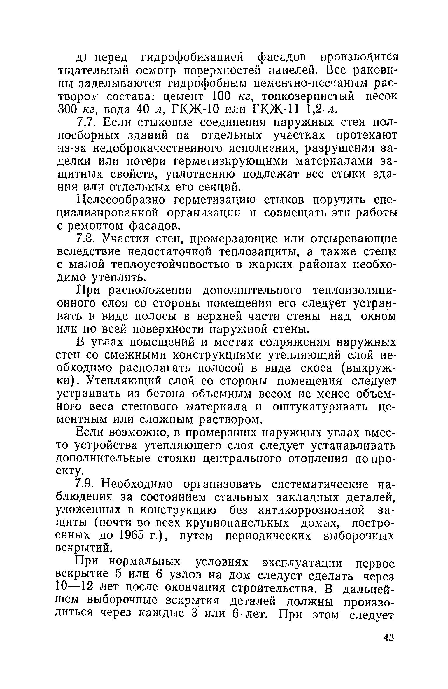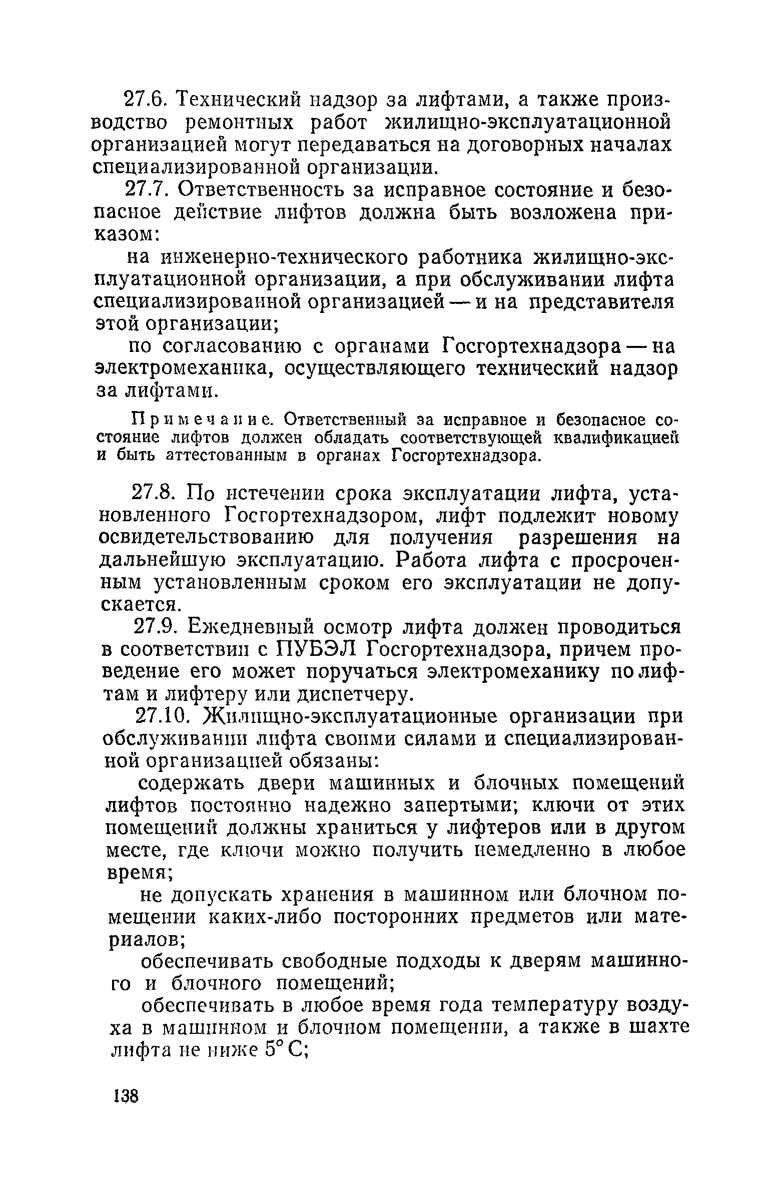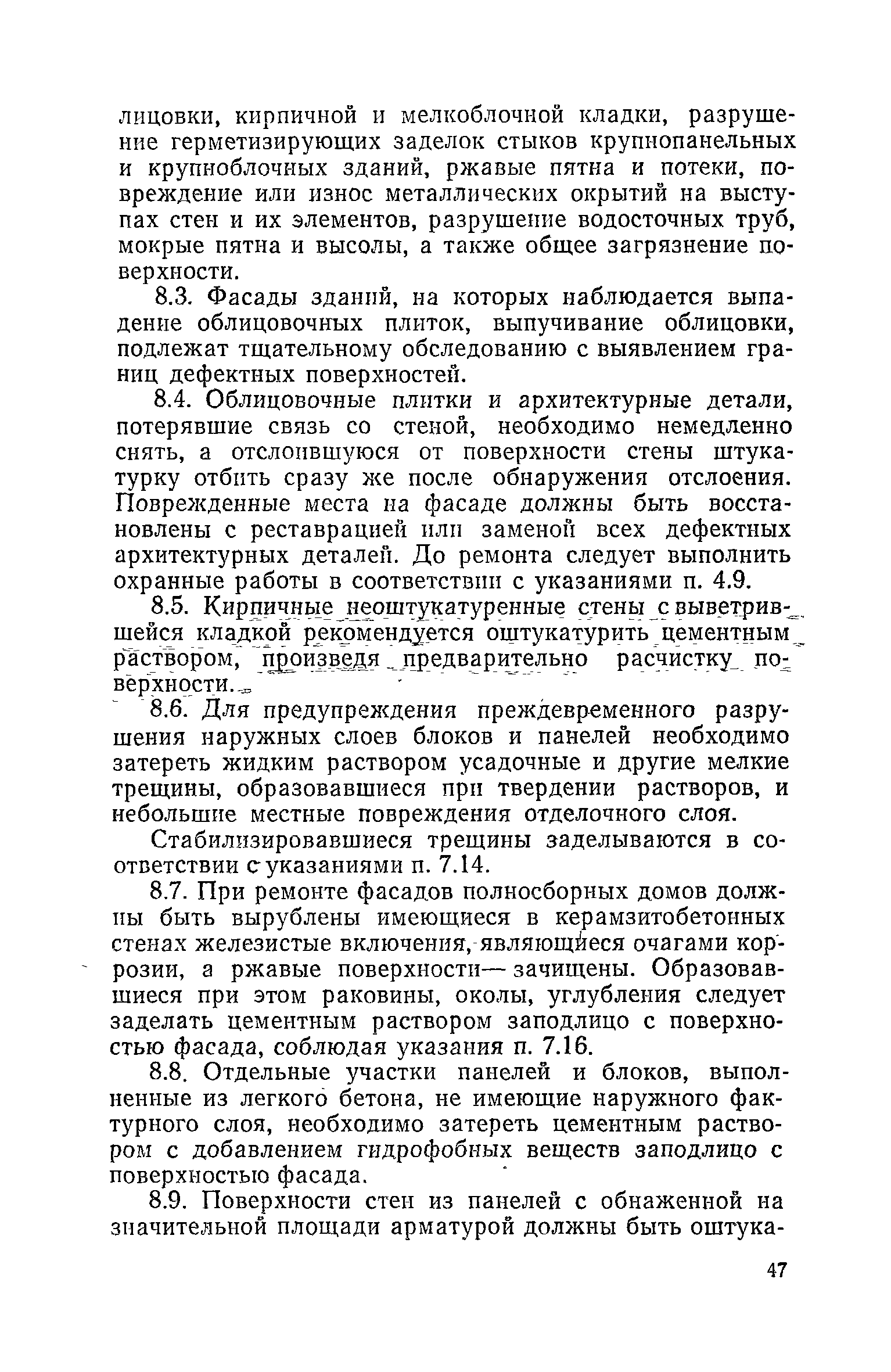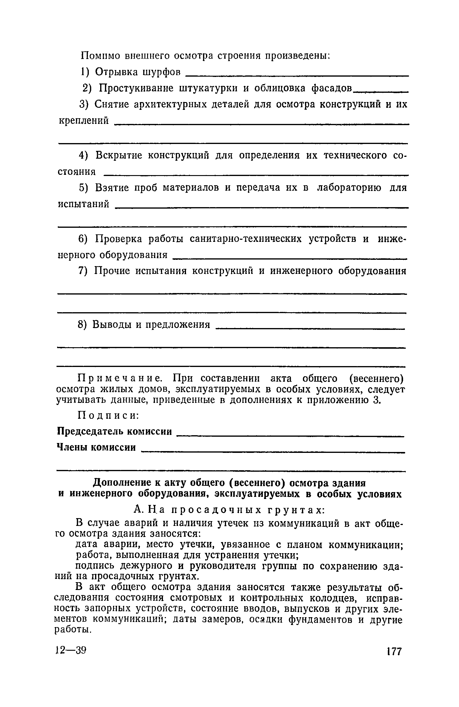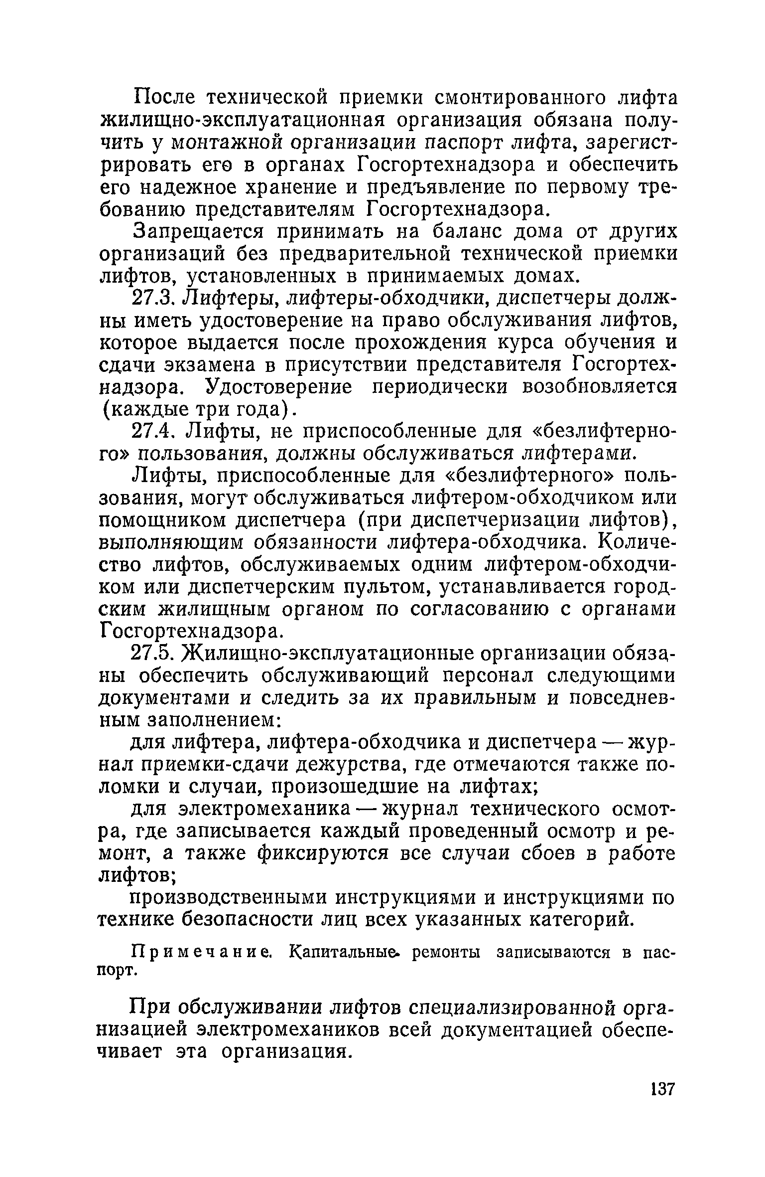 Правила и нормы технической эксплуатации жилищного фонда| Статус: | заменен | | Название рус.: | Правила и нормы технической эксплуатации жилищного фонда | | Дата добавления в базу: | 01.09.2013 | | Дата актуализации: | 01.01.2021 | | Область применения: | В документе приведены основные положения по технической эксплуатации жилищного фонда, содержанию помещений, инженерного оборудования, территорий домовладений, а также указания по переустройству и благоустройству домой старой застройки. | | Оглавление: | Введение Раздел первый. Основные положения Глава 1. Общие положения Глава 2. Управление жилищным хозяйством Глава 3. Порядок приемки жилищного хозяйства Приемка в эксплуатацию вновь выстроенных домов Приемка в эксплуатацию капитально отремонтированных жилых домов Приемка жилищного хозяйства при смене руководства Передача ведомственного жилищного фонда исполкомам местных Советов и инженерных сетей коммунальным предприятиям Глава 4. Система осмотра жилых домов Глава 5. Организация ремонта жилищного фонда и работ по его благоустройству Классификация работ по ремонту жилищного фонда Перечень работ по повышению благоустройства жилых домов, которые могут выполняться за счет средств, выделяемых на капитальный ремонт жилищного фонда Планирование и организация текущего ремонта Планирование и организация капитального ремонта и повышение уровня благоустройства жилых домов Раздел второй. Правила эксплуатации строительных конструкций и помещений Глава 6. Придомовая территория, фундаменты и стены подвальных помещений Придомовая территория Фундаменты и стены подвальных помещений Глава 7. Стены Каменные и крупнопанельные стены Деревянные стены Глава 8. Фасады Отделка фасадов Балконы, козырьки, лоджии и эркеры Глава 9. Перекрытия Железобетонные перекрытия (сборные и монолитные) Деревянные перекрытия (по деревянным и металлическим балкам) Сводчатые перекрытия Глава 10. Полы Деревянные полы Полы из линолеумов и синтетических материалов Ксилолитовые полы Полы керамические, мозаичные и цементные Глава 11. Перегородки Перегородки из неорганических материалов Деревянные перегородки Глава 12. Крыши Чердачные крыши Бесчердачные (совмещенные) крыши Водоотводящие устройства Очистка кровель от снега Глава 13. Окна, двери и световые фонари Окна и двери Световые фонари Глава 14. Лестницы Каменные и железобетонные лестницы Деревянные лестницы Глава 15. Печи Комнатные печи и кухонные очаги на твердом топливе Комнатные печи и кухонные очаги на газовом топливе Глава 16. Специальные мероприятия по технической эксплуатации жилого дома Защита деревянных конструкций от разрушений домовыми грибками и дереворазрушающими насекомыми Устранение сырости в эксплуатируемых зданиях Устранение шумов в жилых домах Противопожарная профилактика Подготовка жилых домов к зиме Глава 17. Эксплуатация жилых и вспомогательных помещений жилого дома Квартиры Лестничные клетки Чердачные помещения Подвалы и технические подполья Глава 18. Техническая эксплуатация жилых зданий в особых условиях Общие положения Районы просадочных грунтов Районы подрабатываемых территорий Сейсмические районы (сейсмичность более 6 баллов) Районы вечной мерзлоты Раздел третий. Правила эксплуатации инженерного оборудования в жилом доме Глава 19. Центральное отопление Глава 20. Горячее водосн