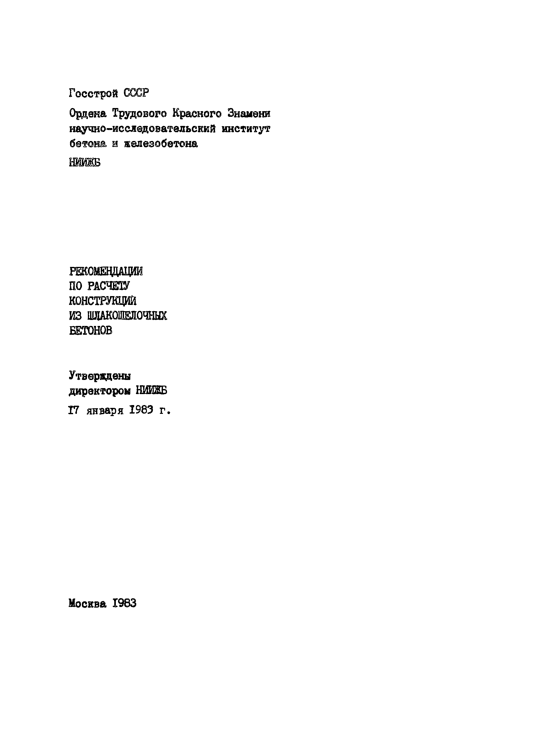 | Утверждён: | 17.01.1983 НИИЖБ Госстроя СССР (NIIZhB, USSR Gosstroy ) |